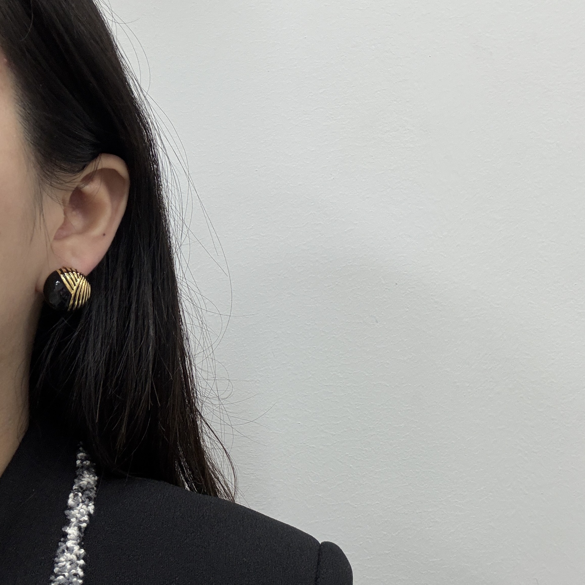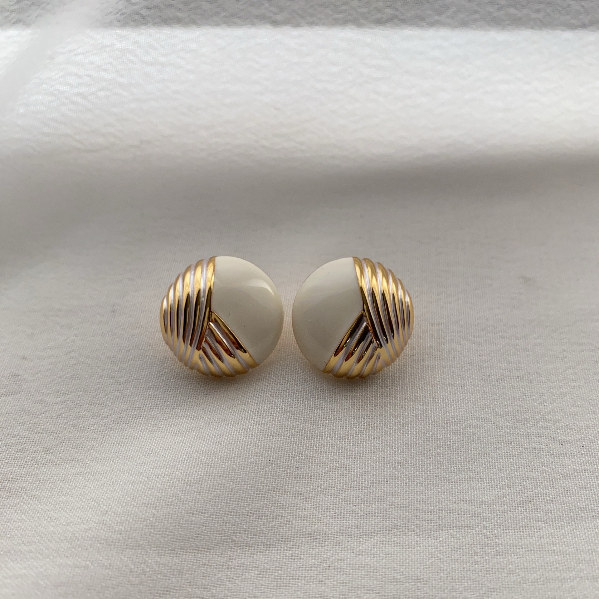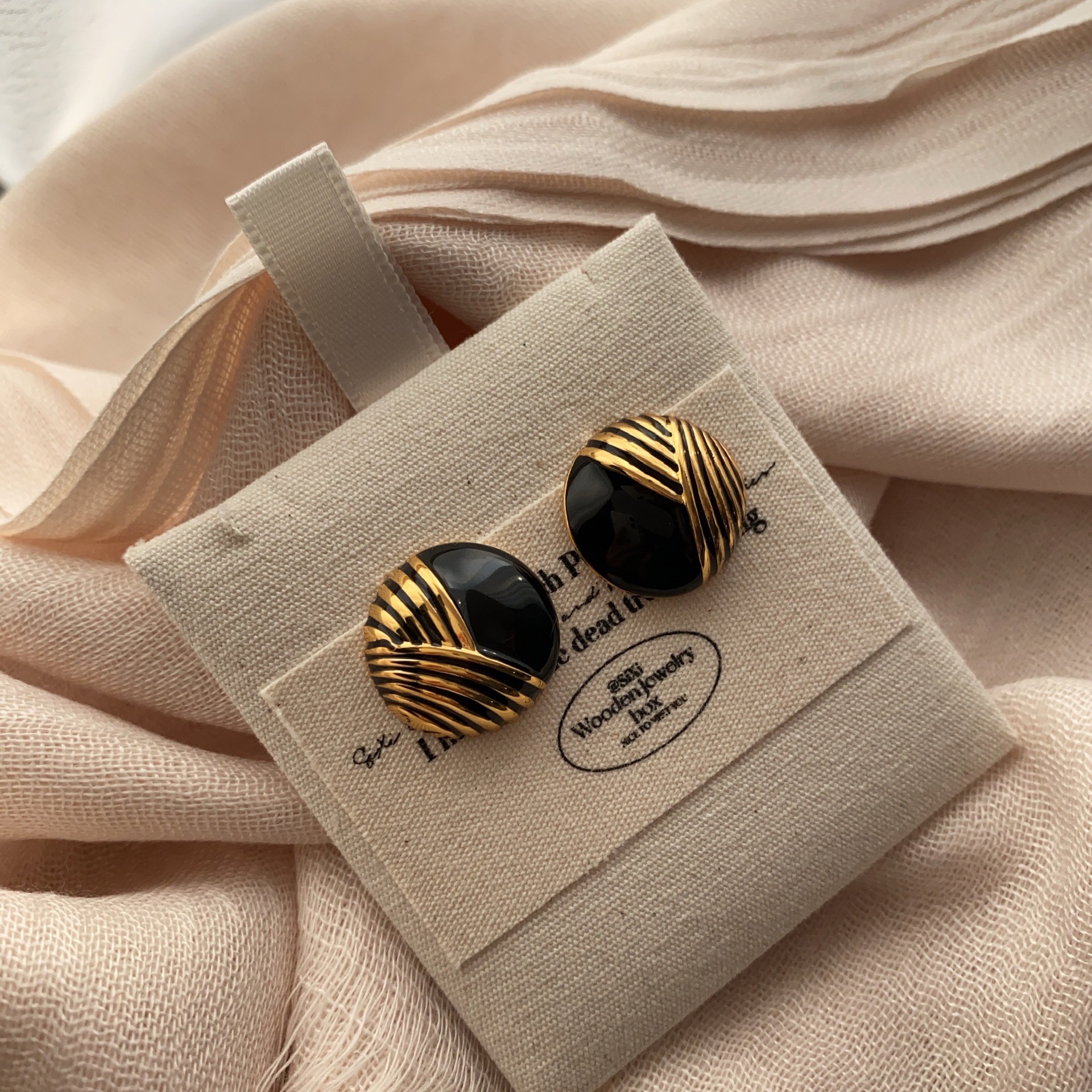 时尚高级鎏金耳钉复古拉丝金属圆球耳饰小众精致设计感法式耳环女