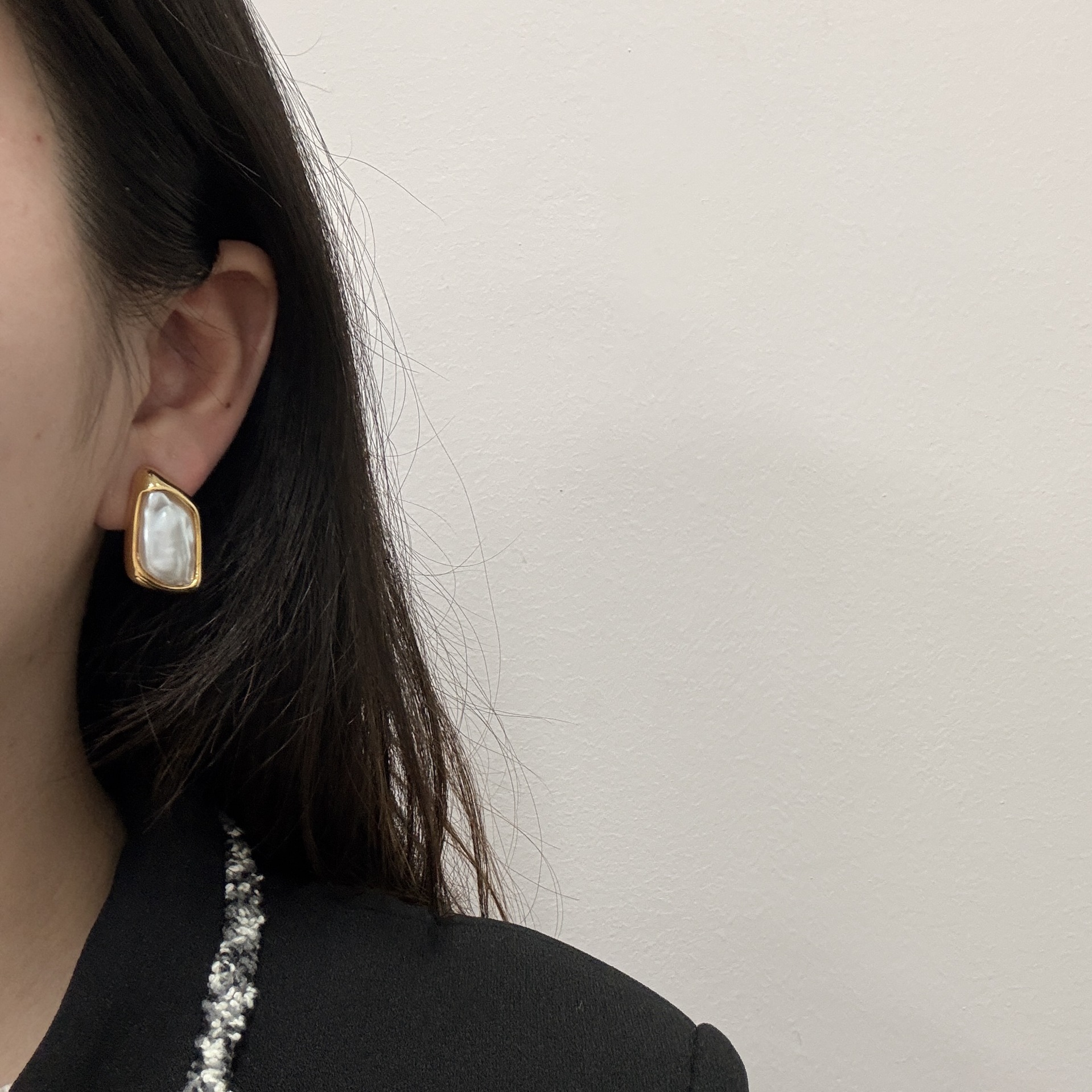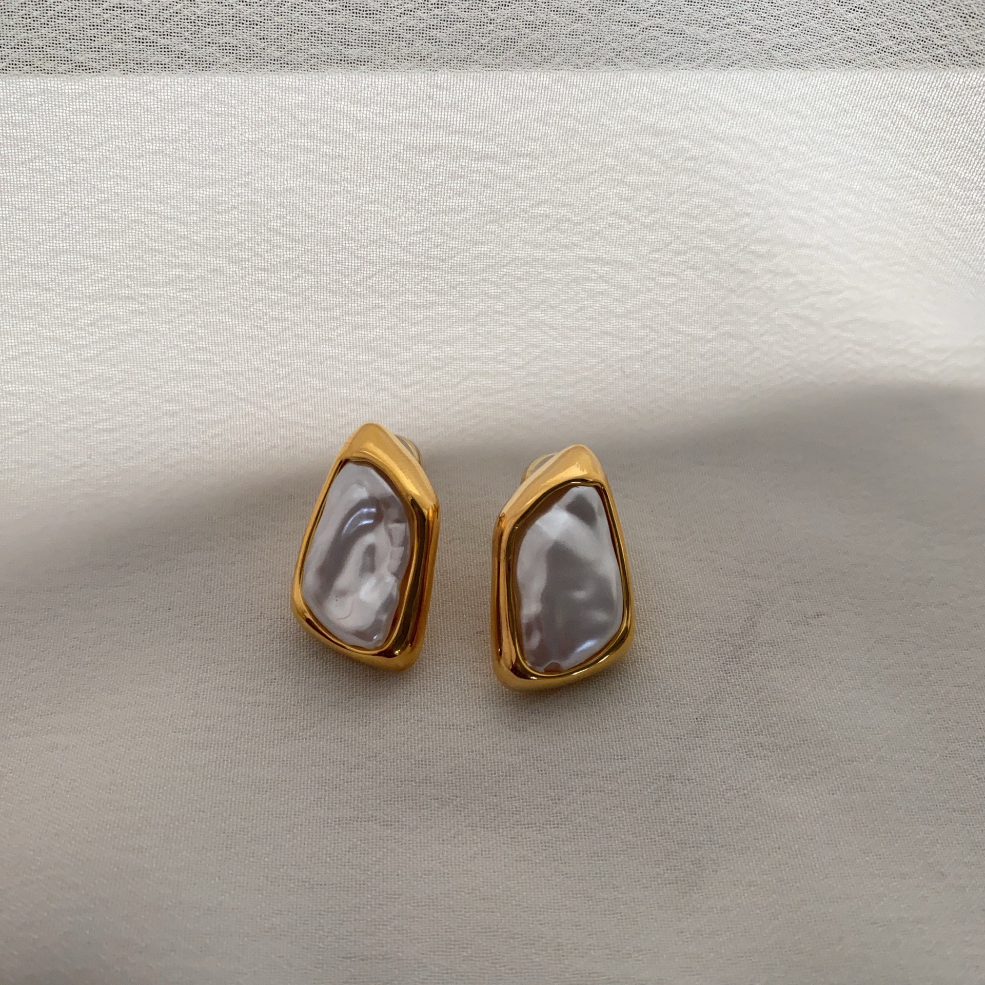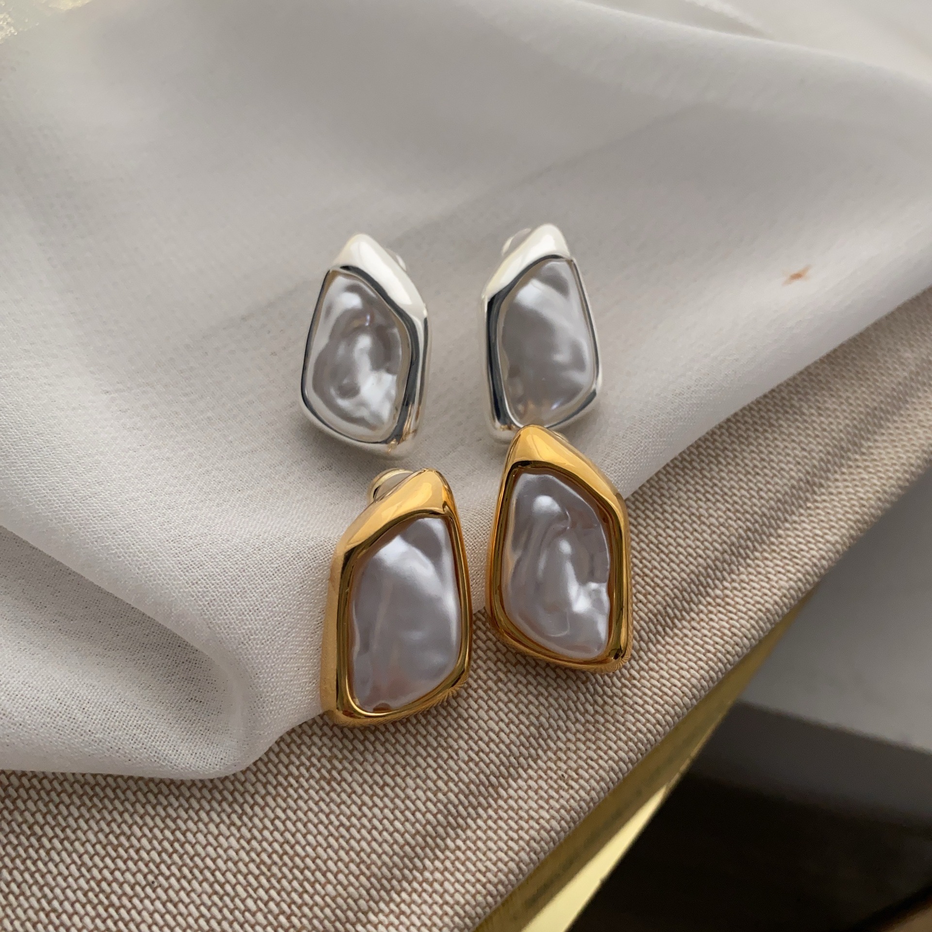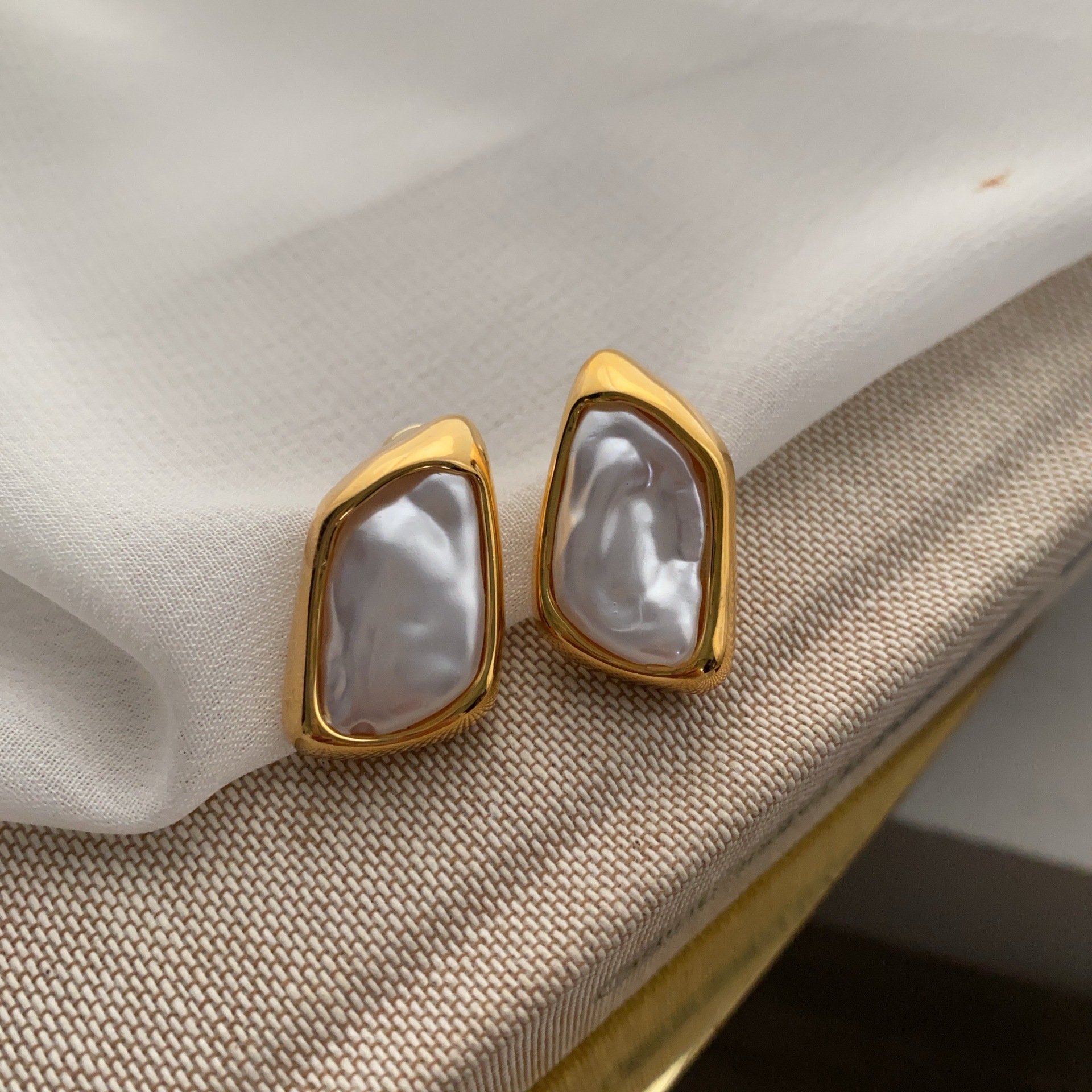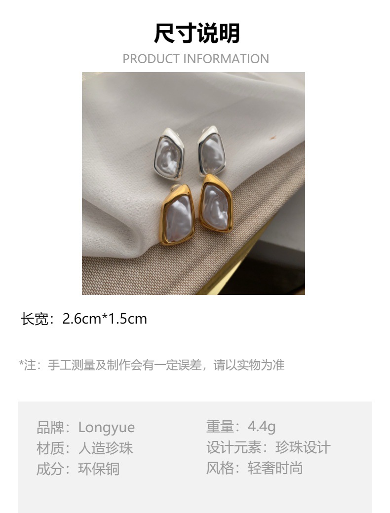浪漫法式金色超仙巴洛克珍珠耳钉时尚新款几何形彩色珍珠耳环耳饰