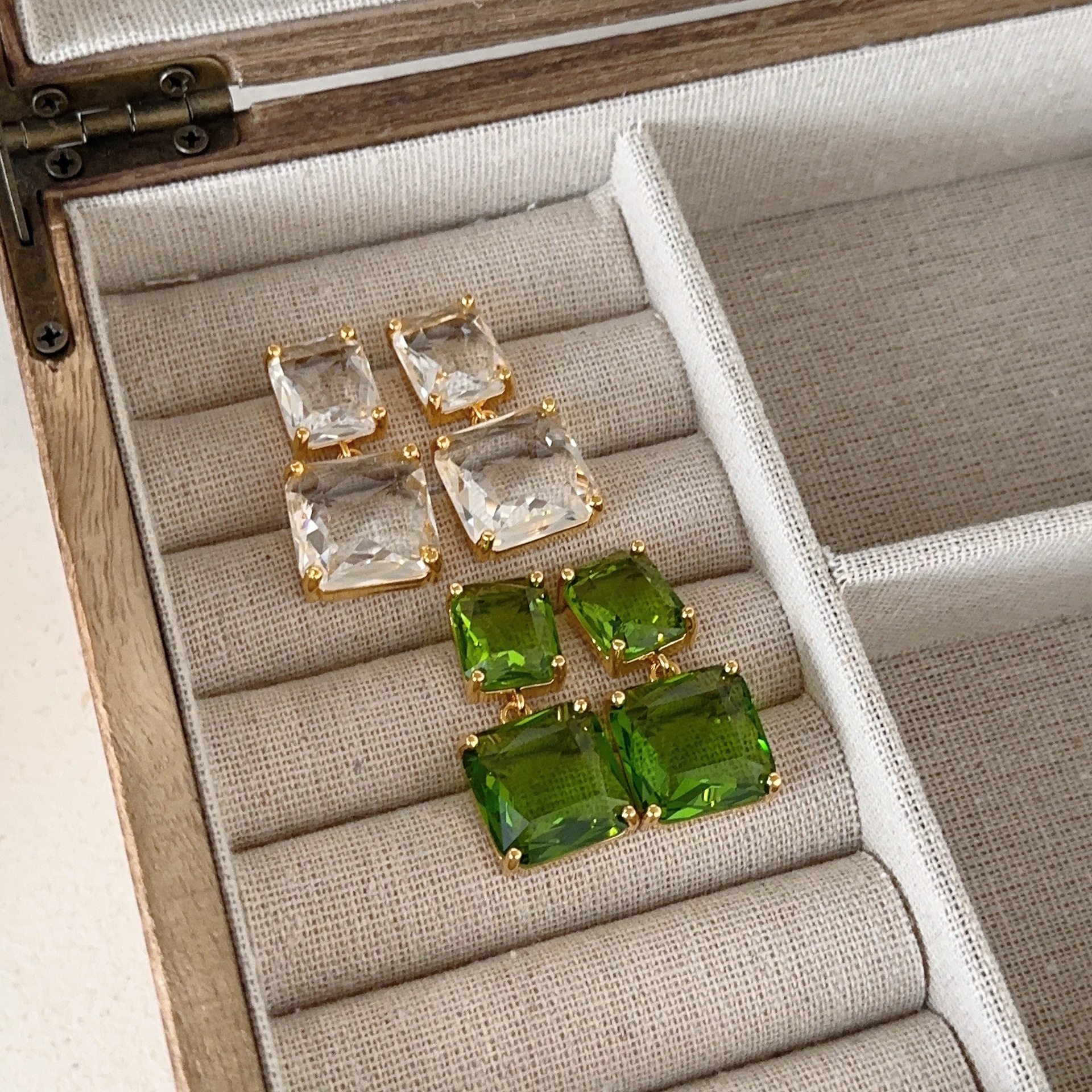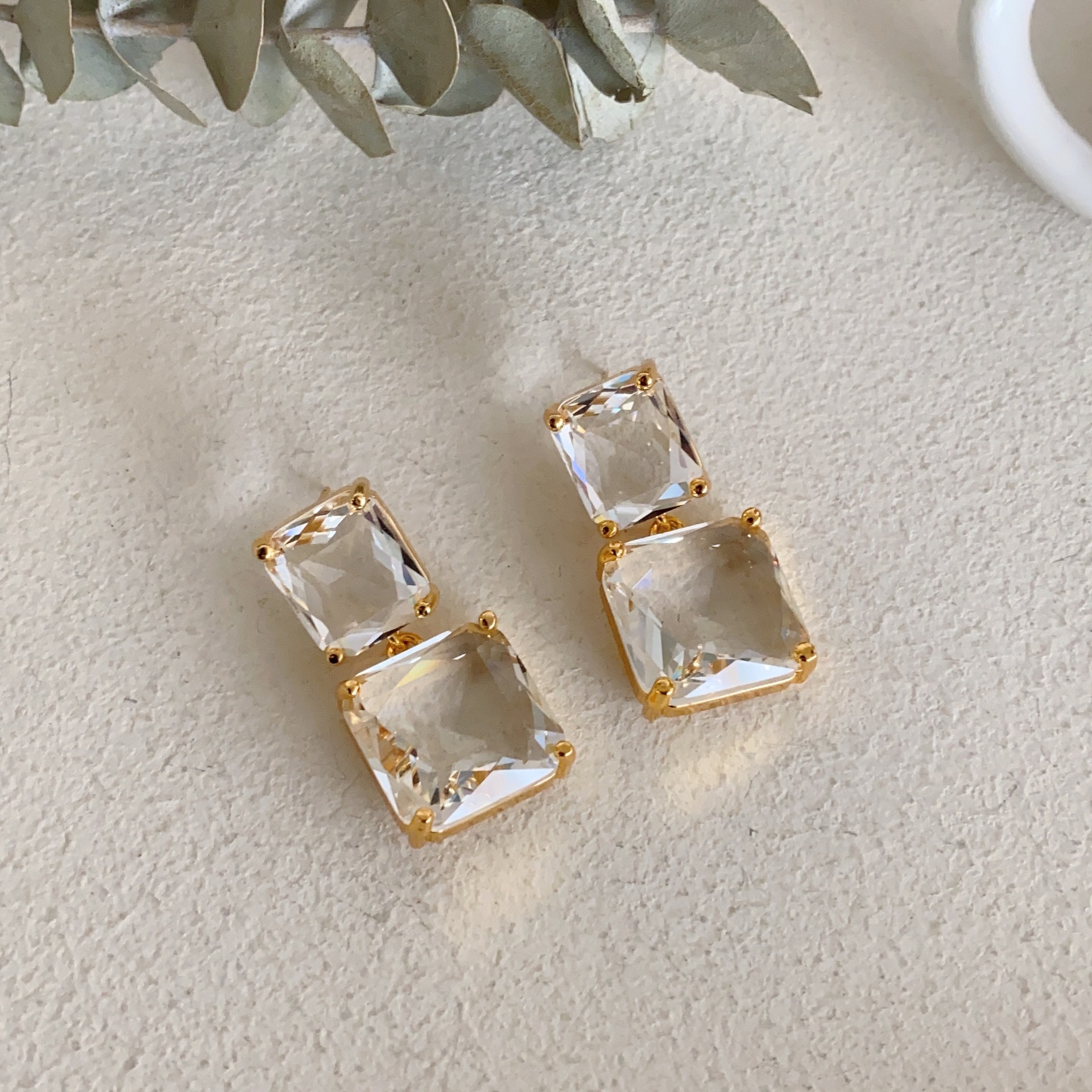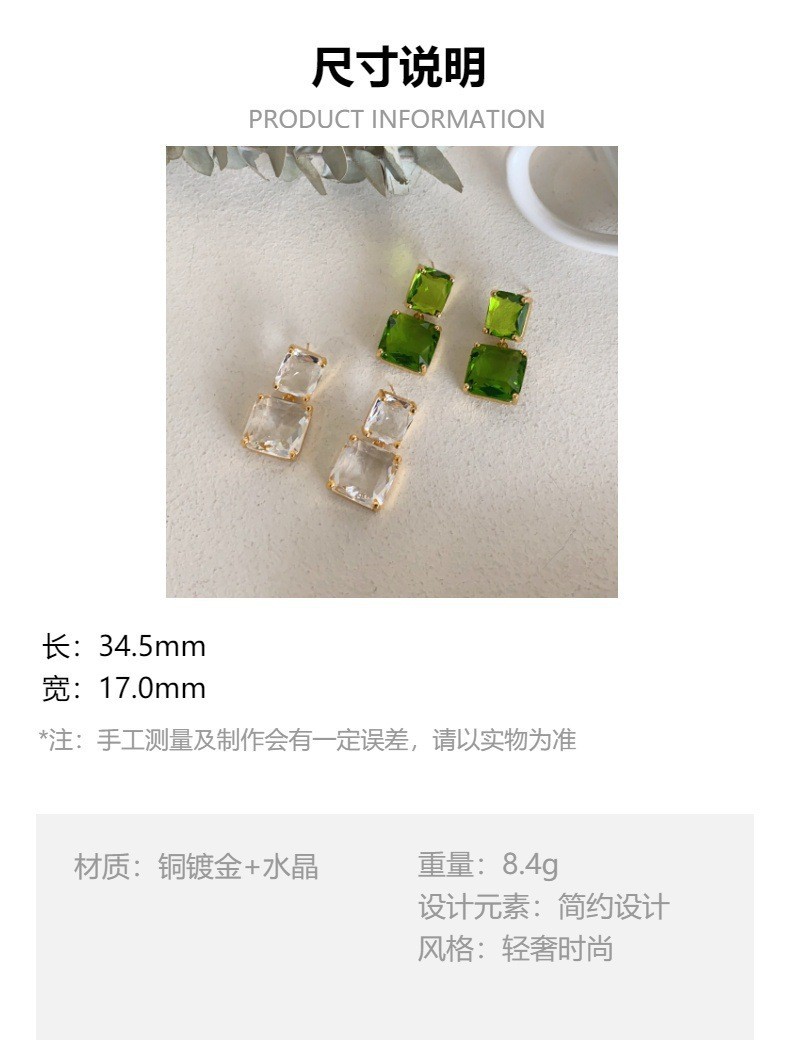 绿野寻踪独特法式复古琉璃耳环高级感水晶方块港风休眠火山耳饰女