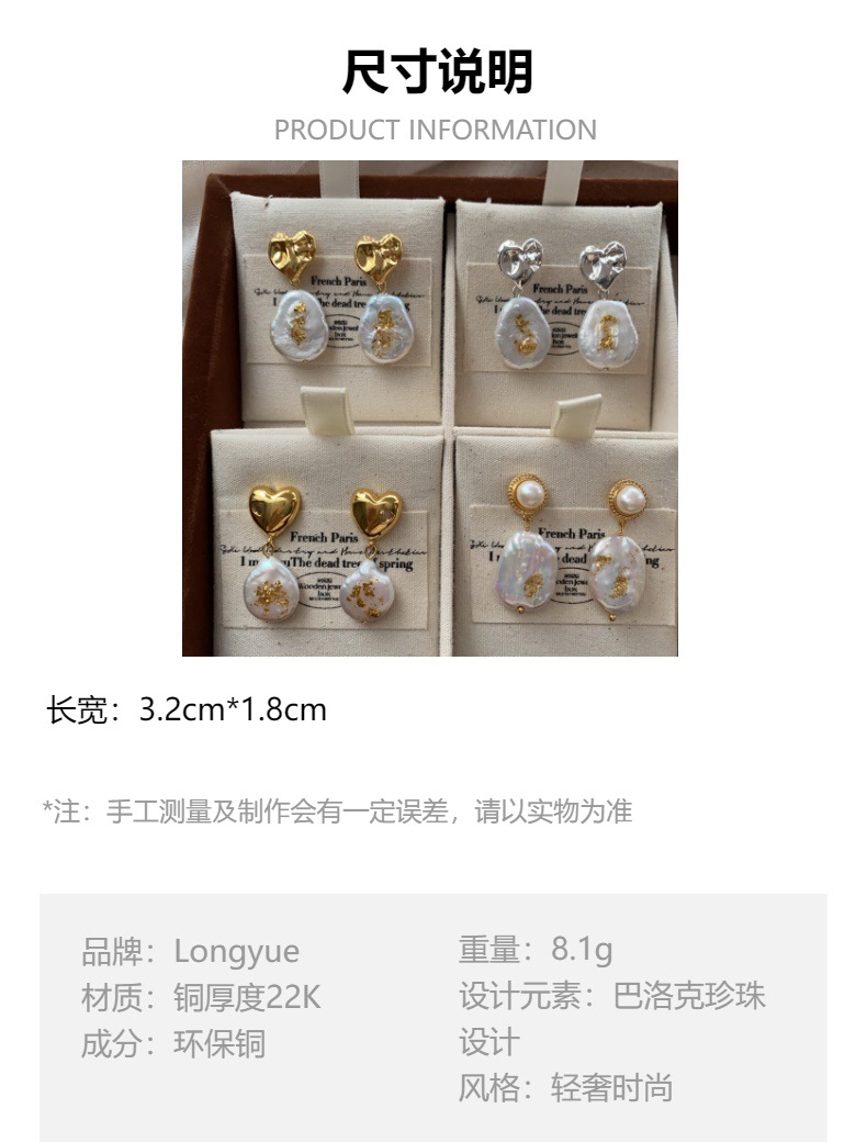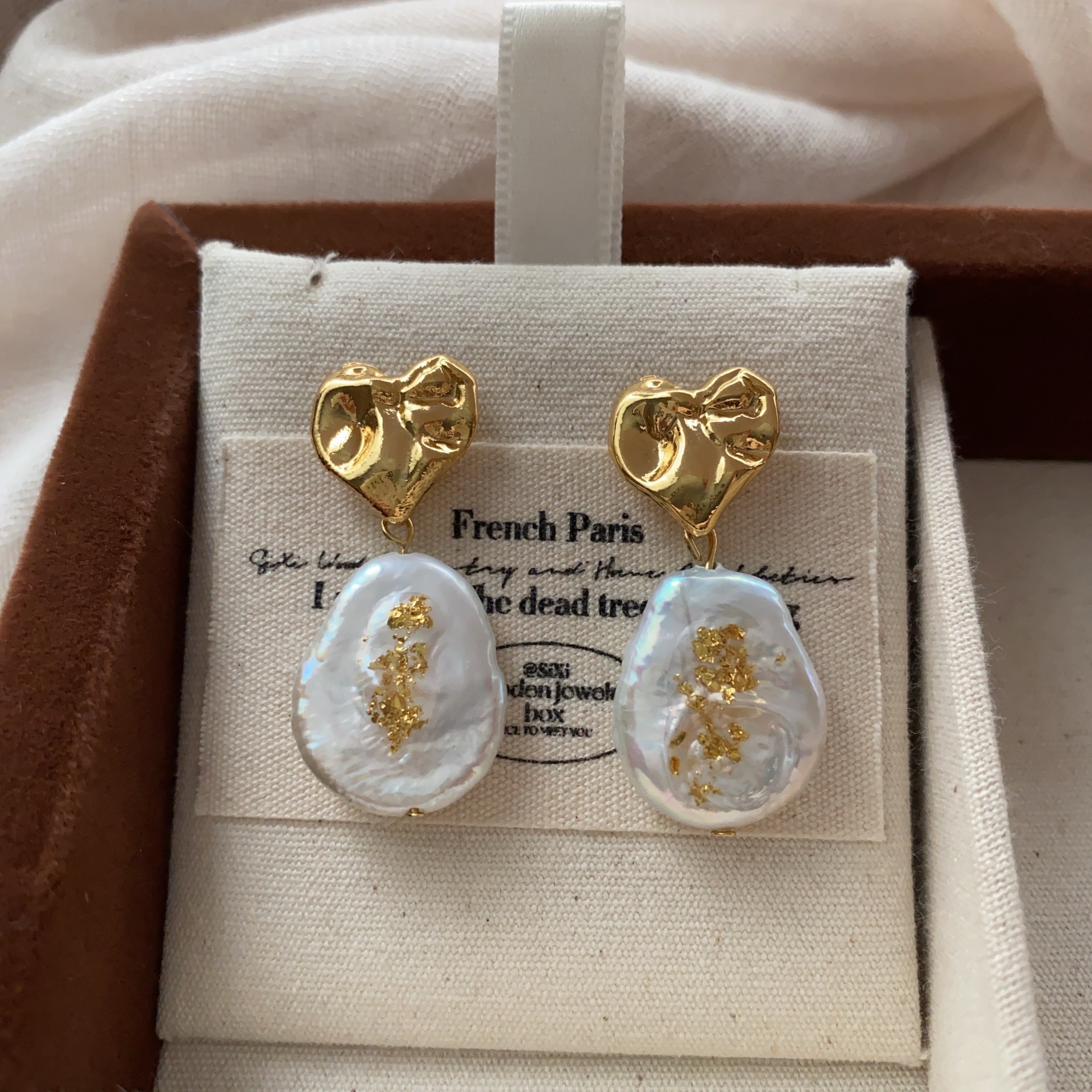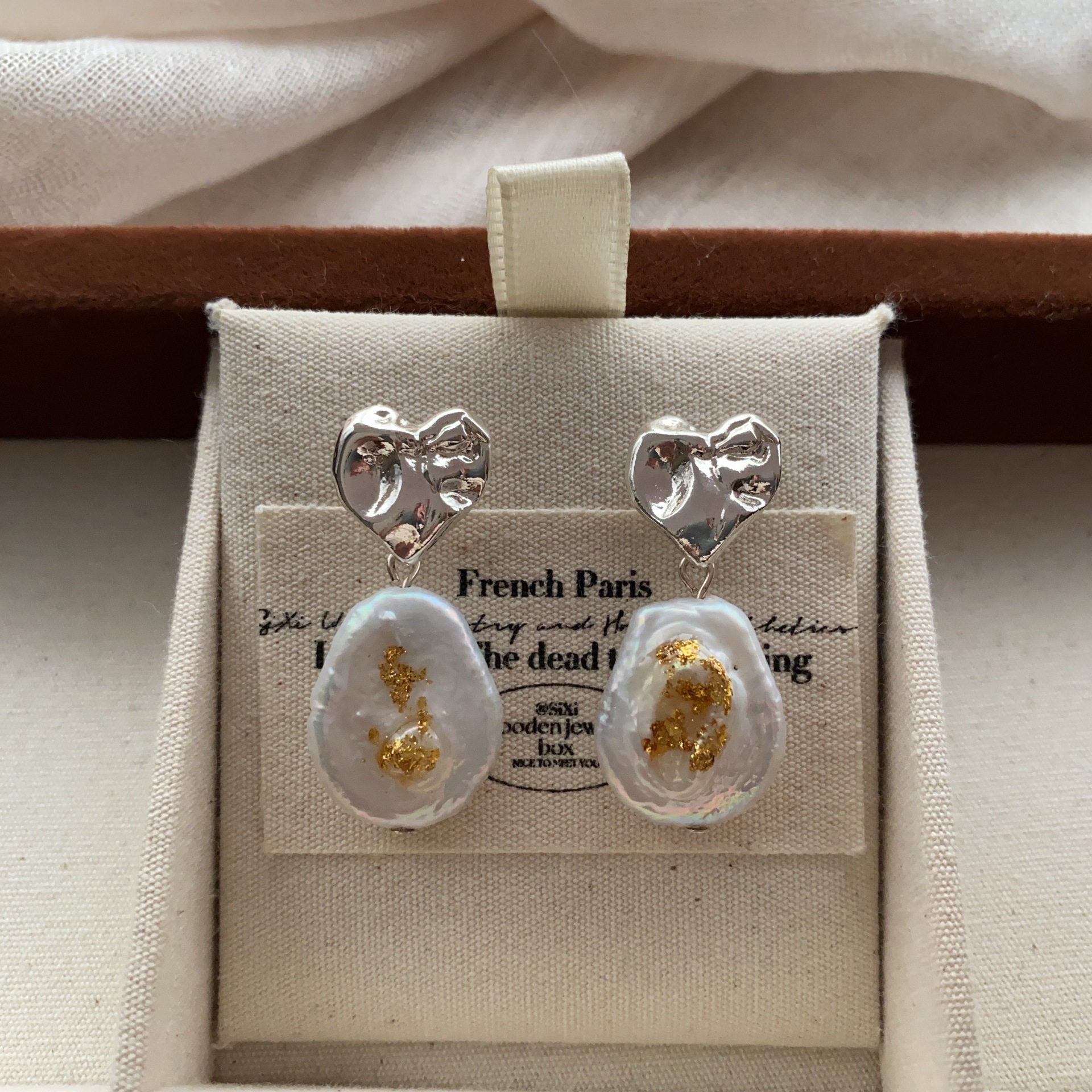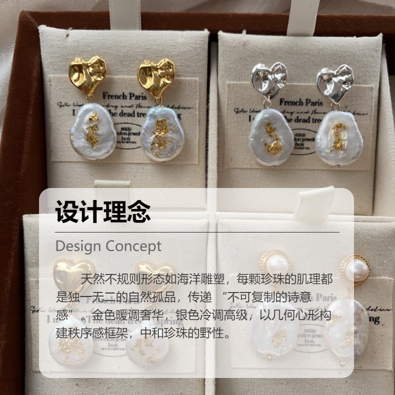 巴洛克天然不规则珍珠耳环耳坠爱心小众独特复古奢华精美时尚百搭