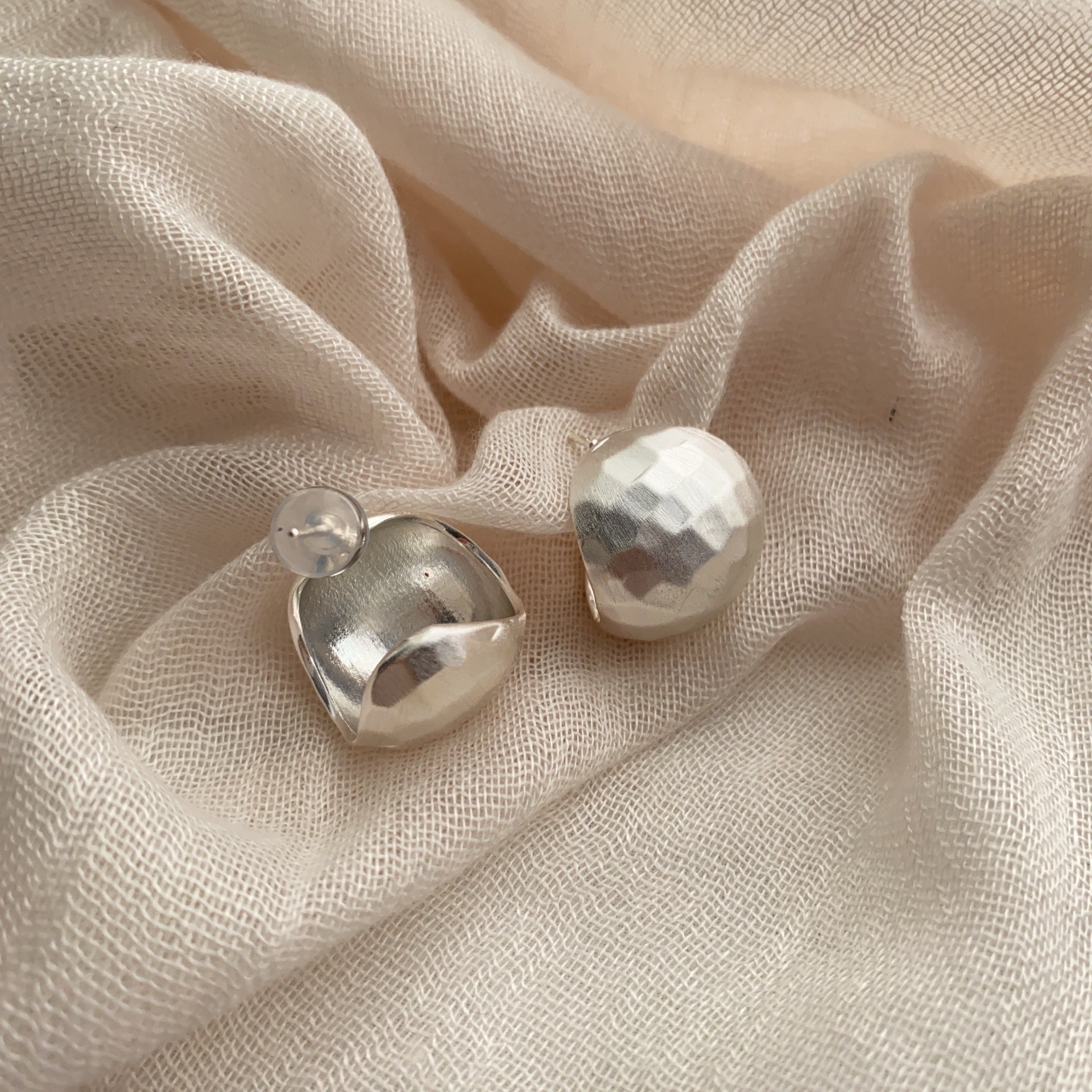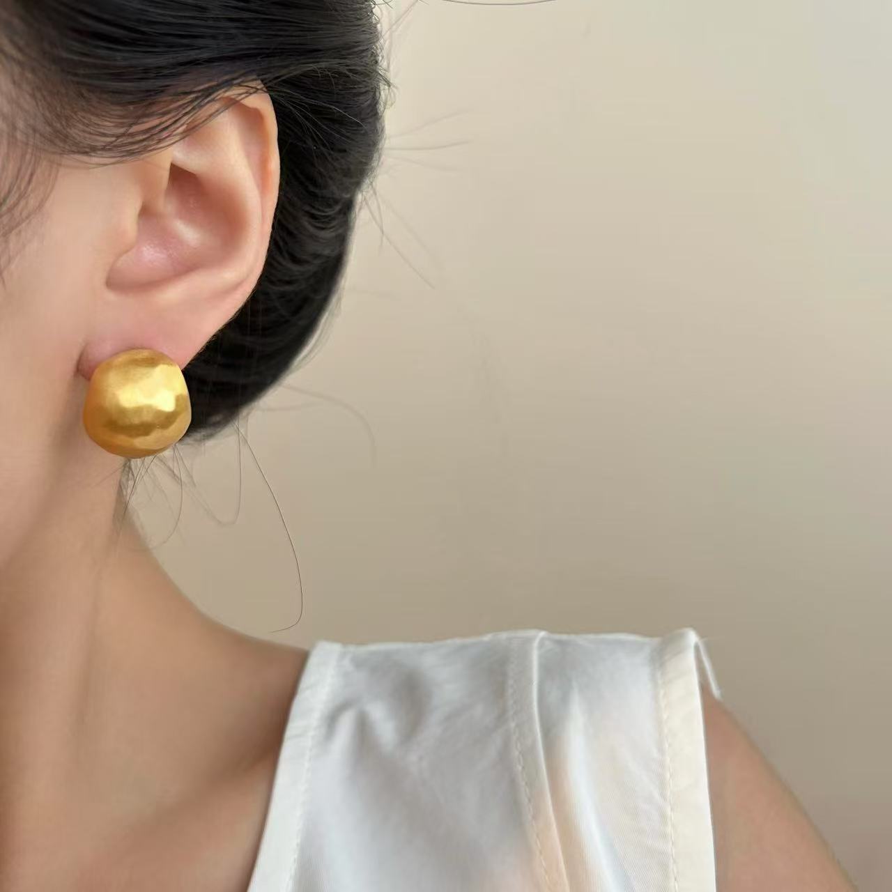 欧美小众金属拉丝切面半圆耳环气质潮人个性几何设计感耳钉耳饰女