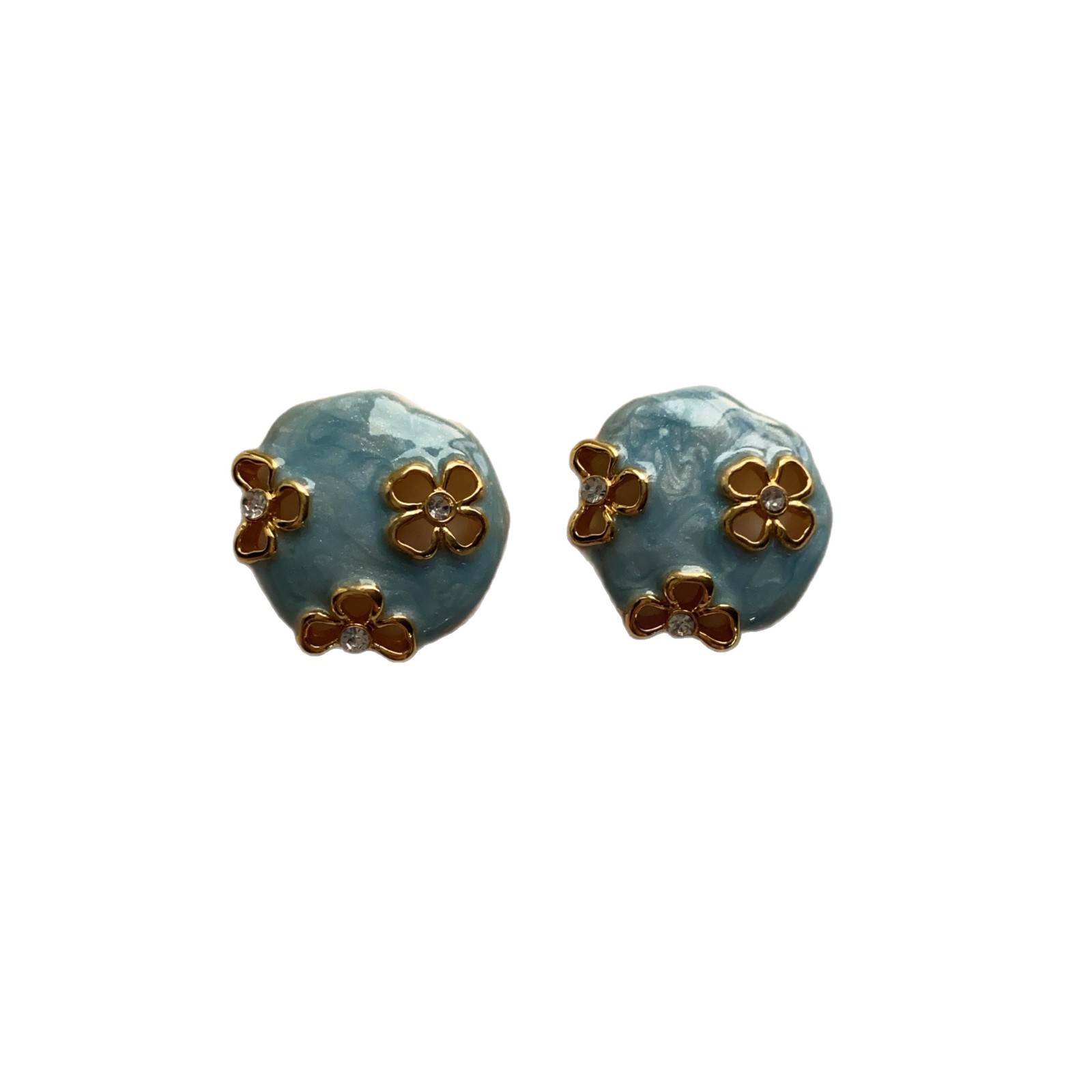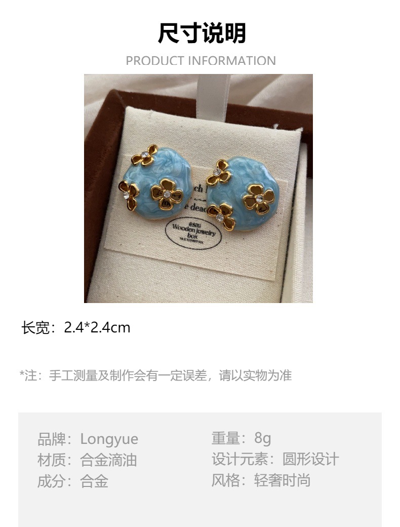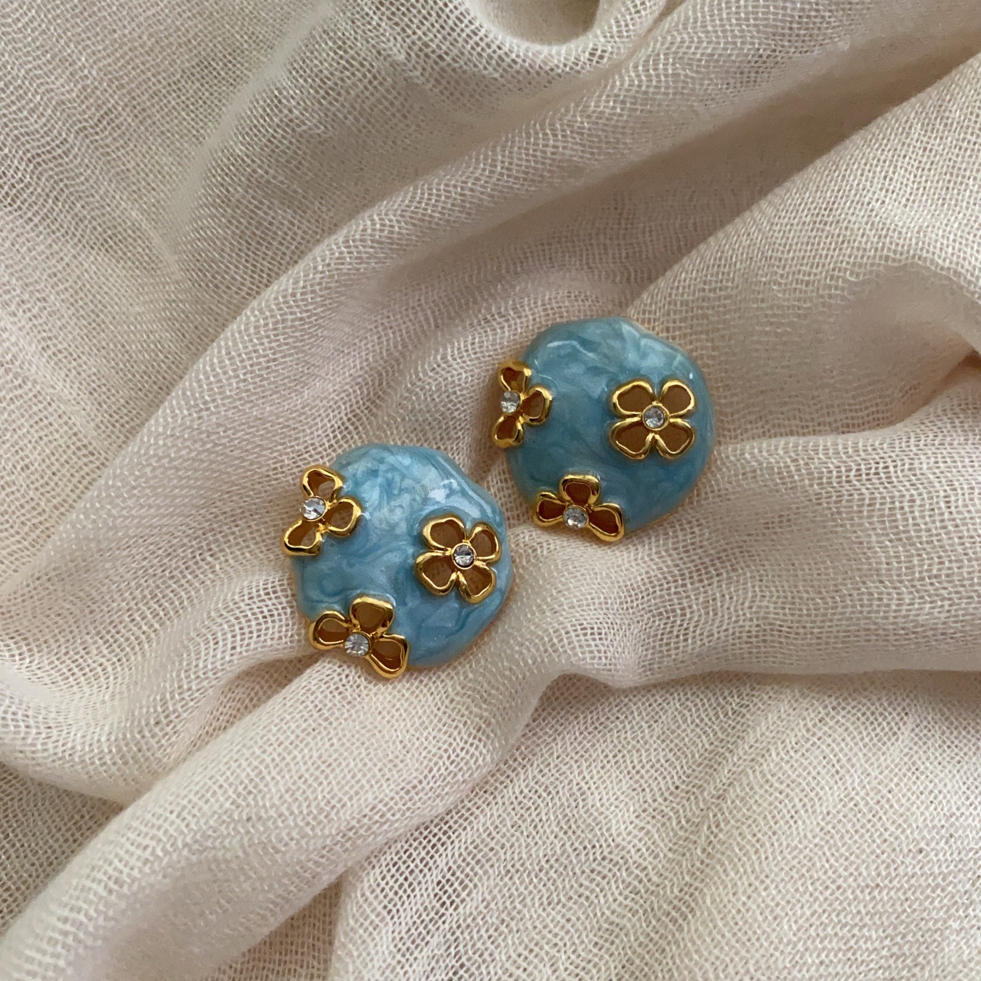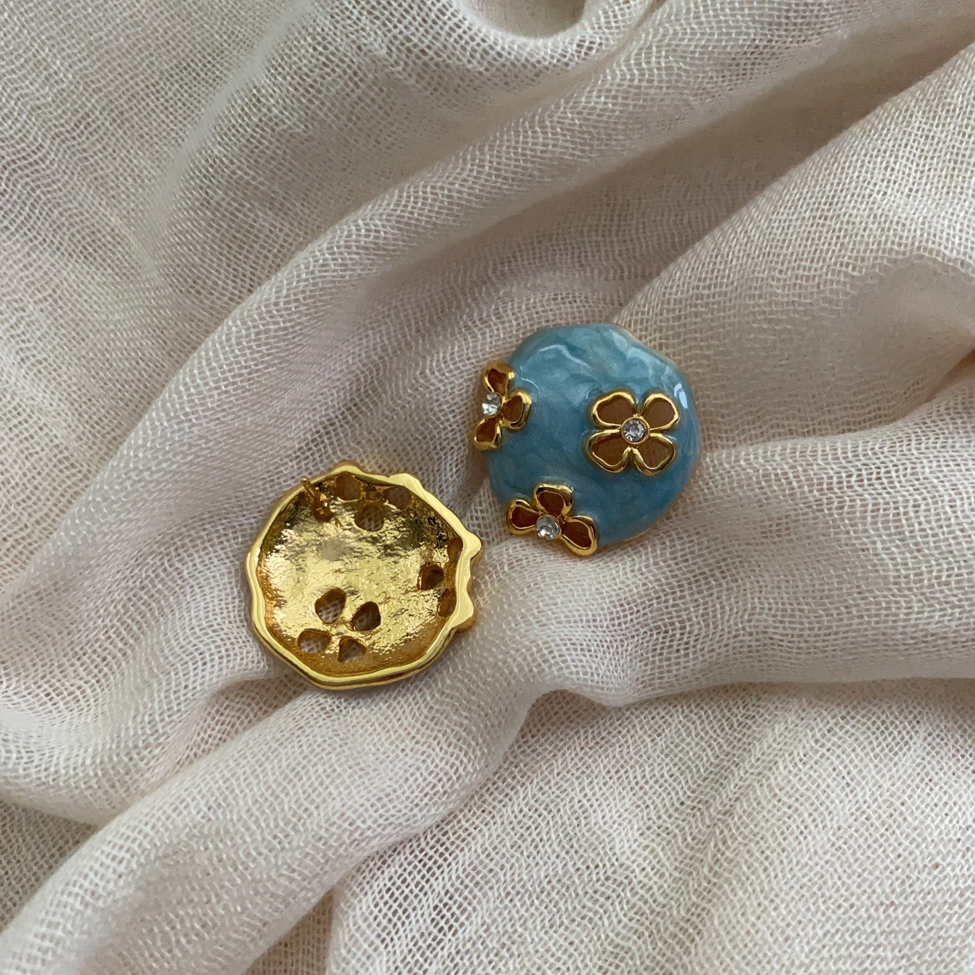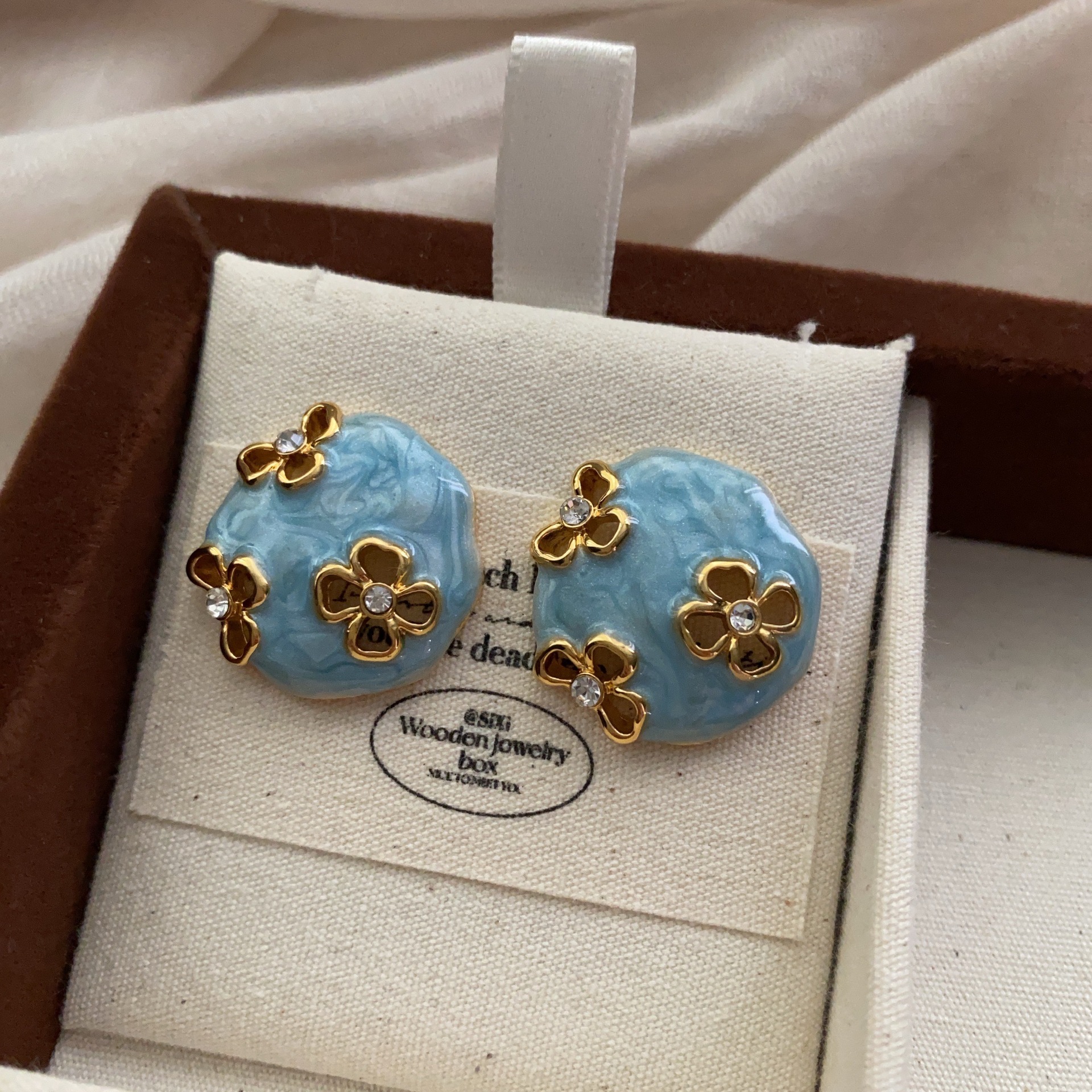 镂空花朵蓝色圆形法式复古简约轻奢高级感清新优雅耳环精致耳钉女