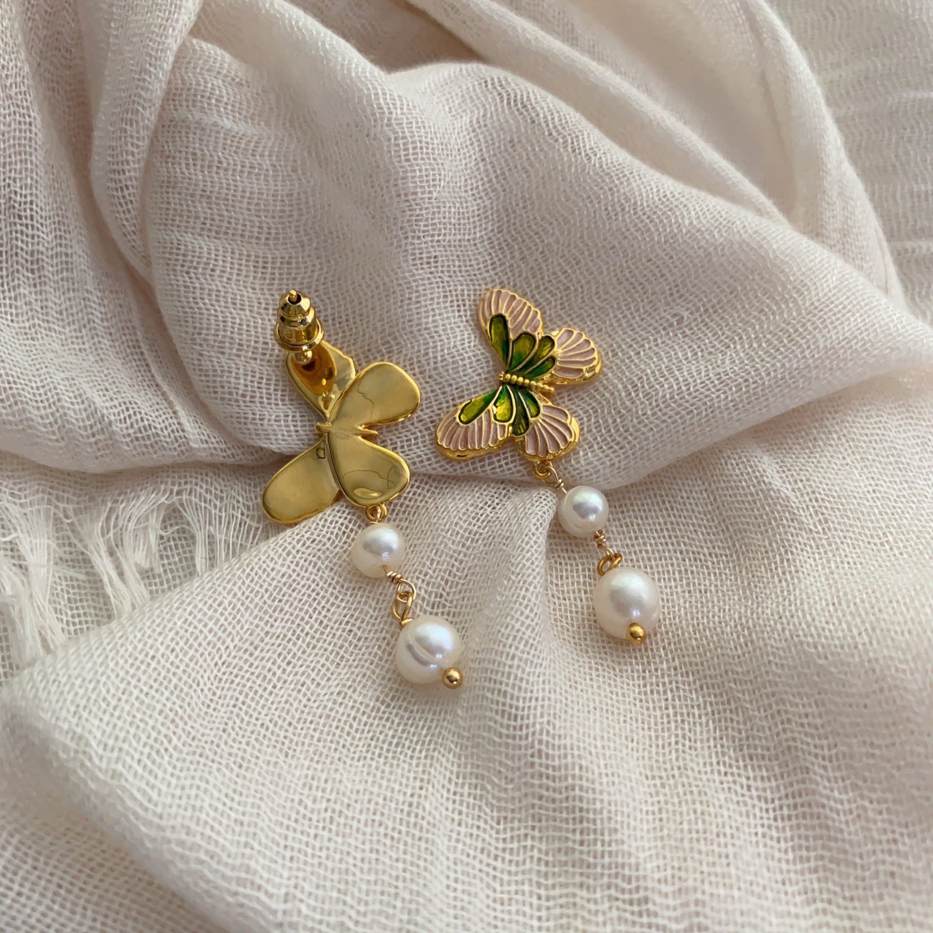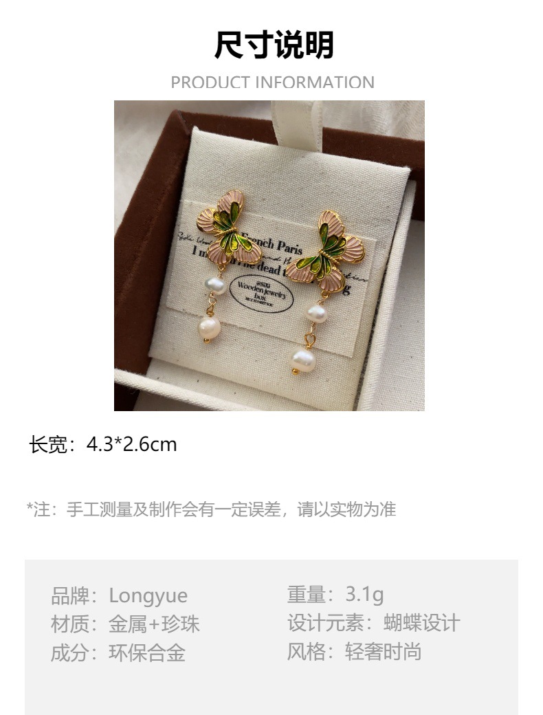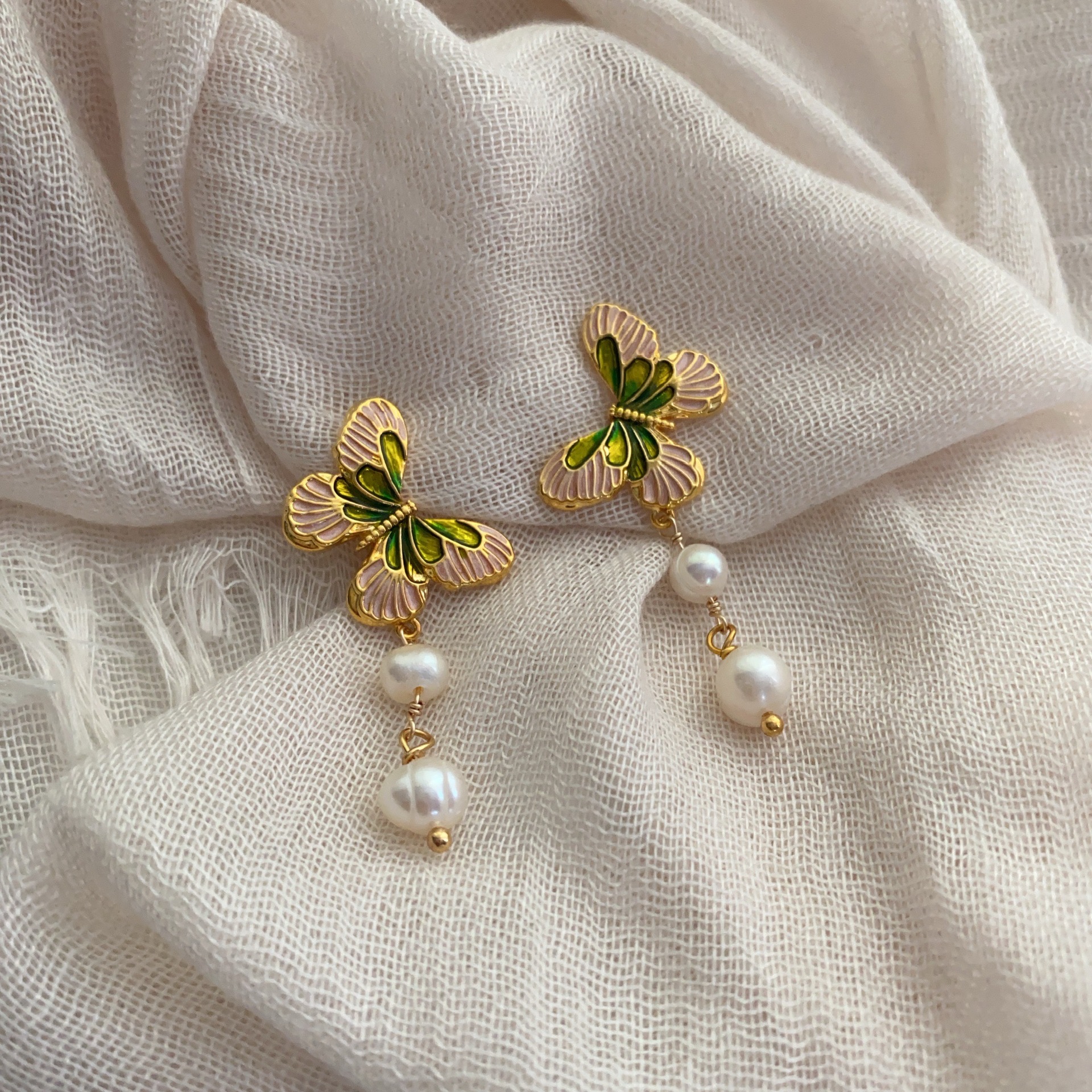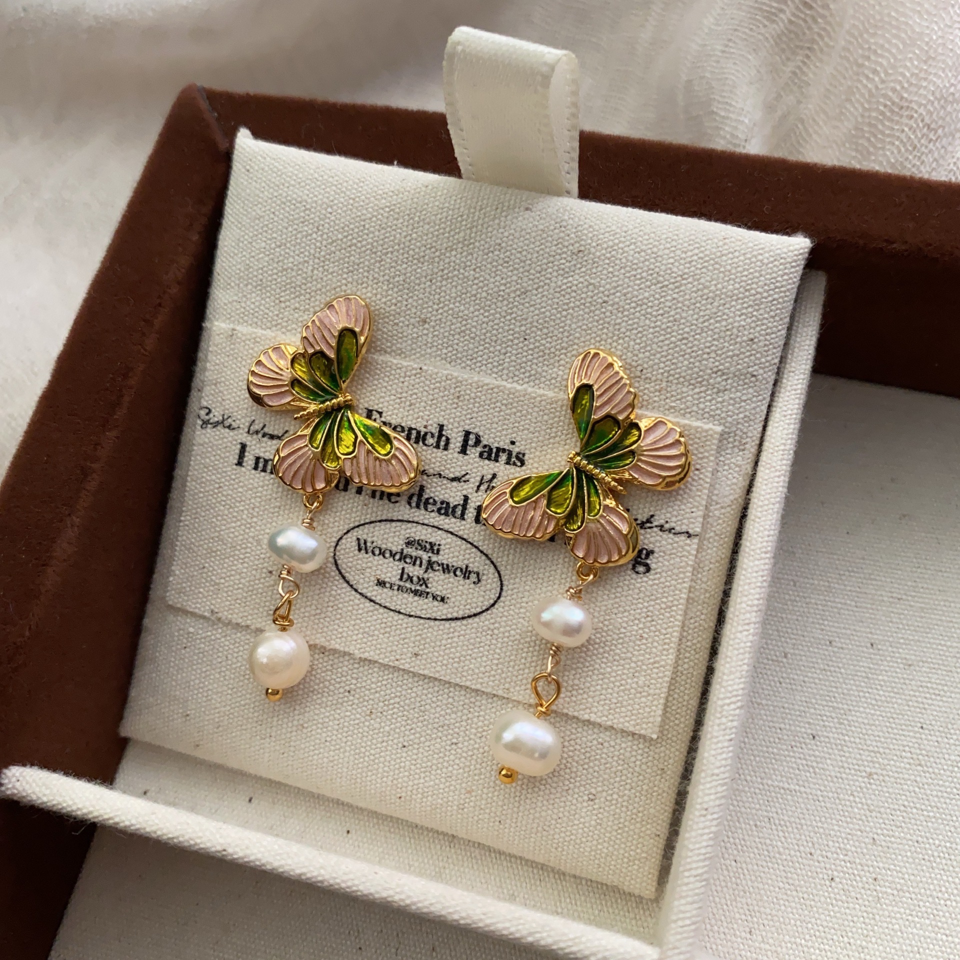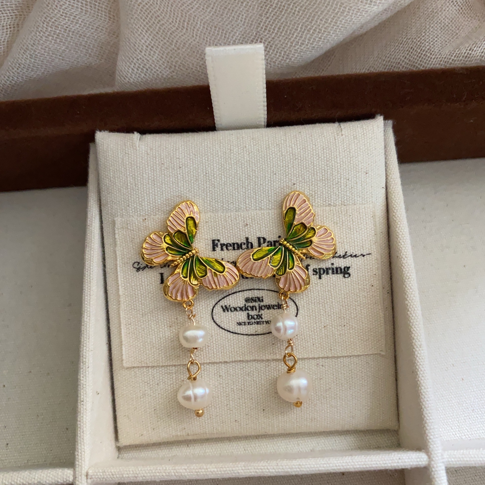 清新珐琅蝴蝶流苏超温柔仙气自然耳环小众设计巴洛克法式优雅耳饰