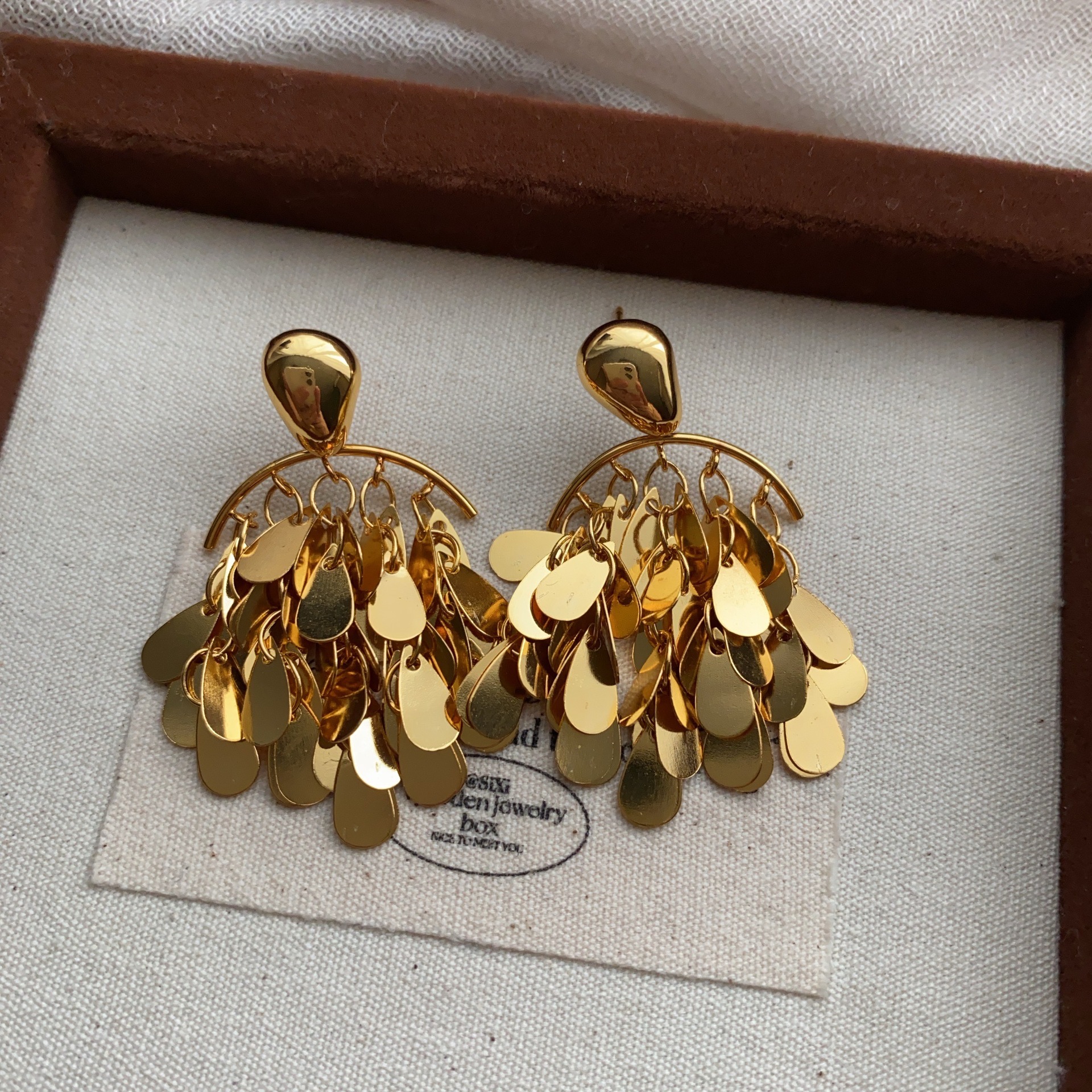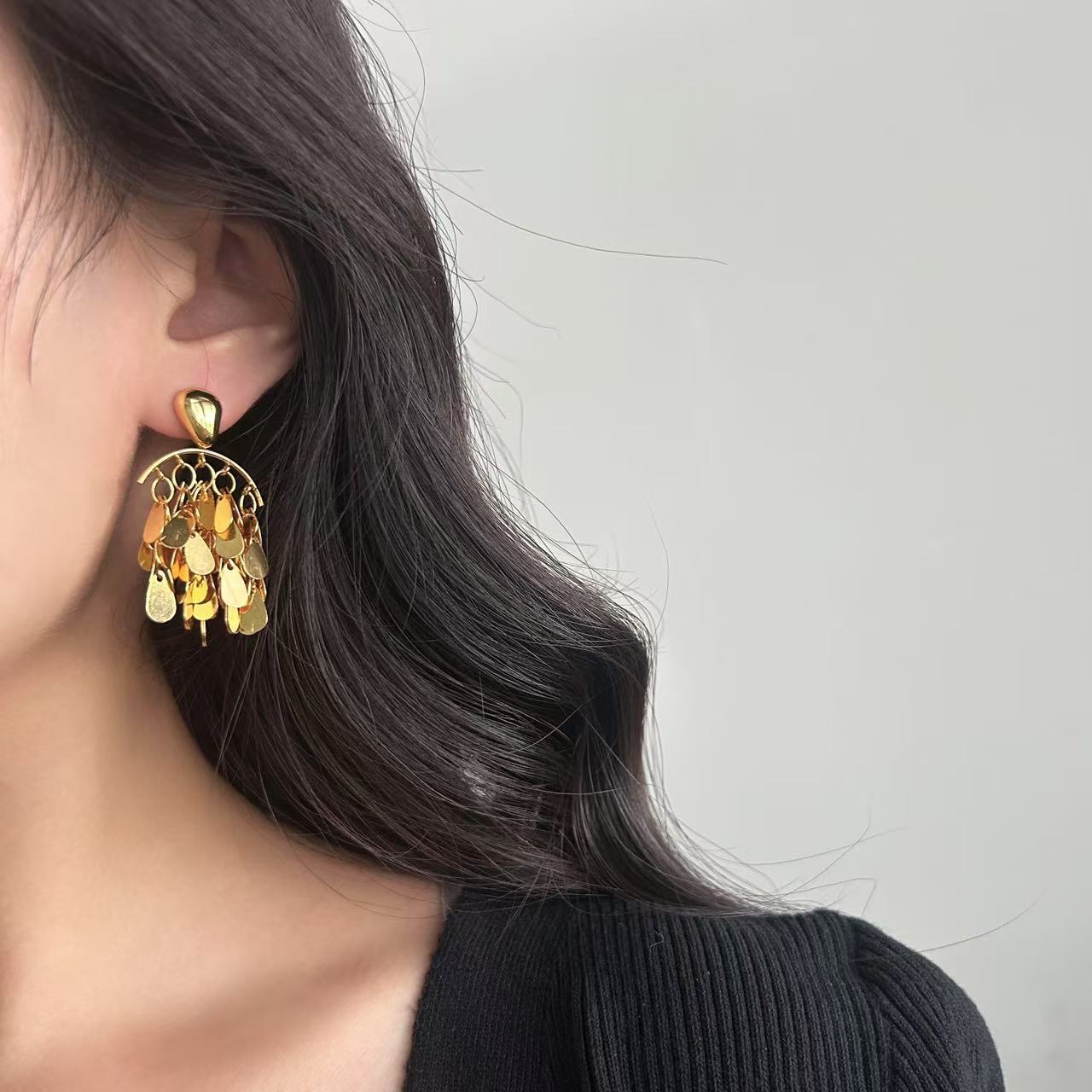 金属亮片流苏耳钉耳环轻奢灵动个性设计时尚百搭独特华丽秋冬耳饰