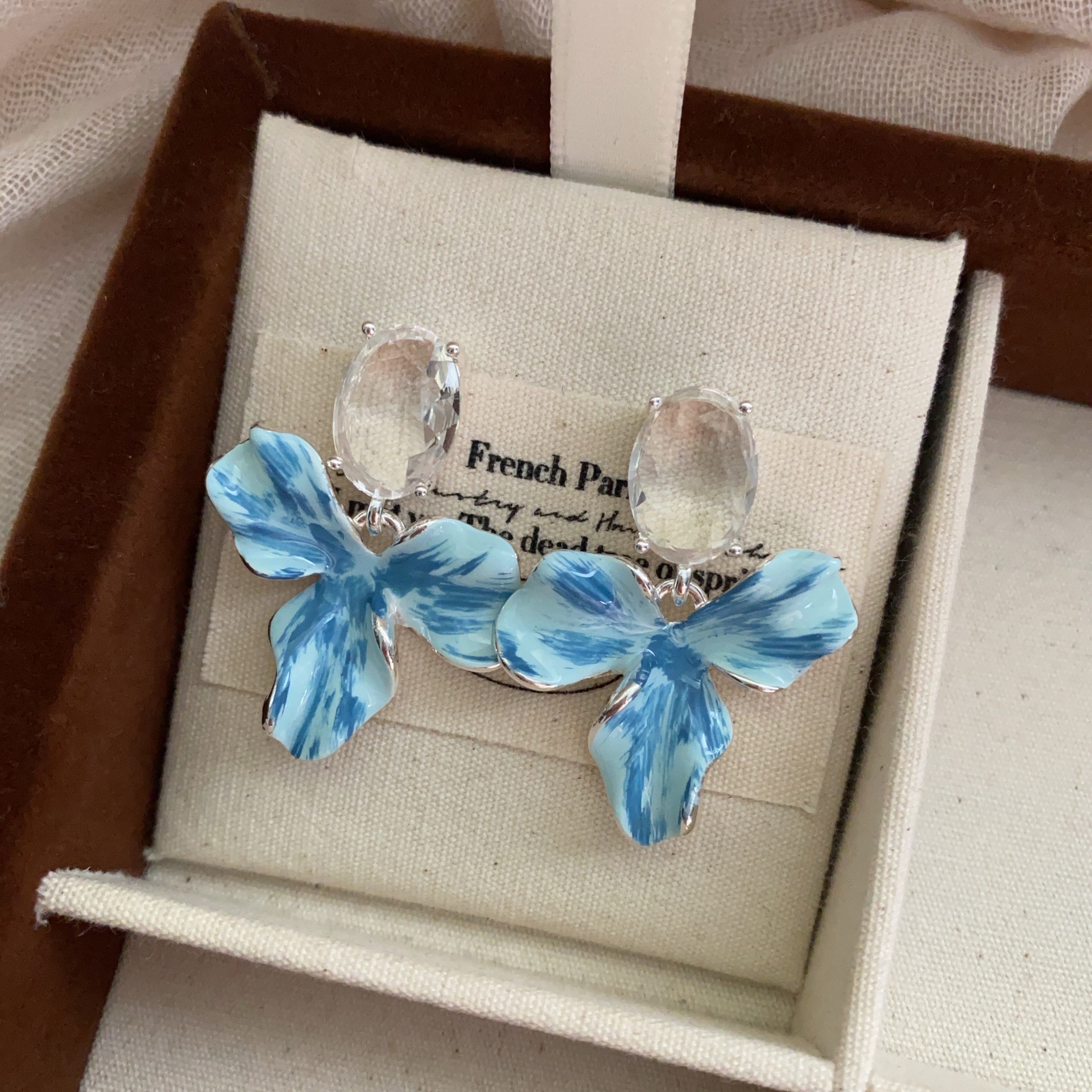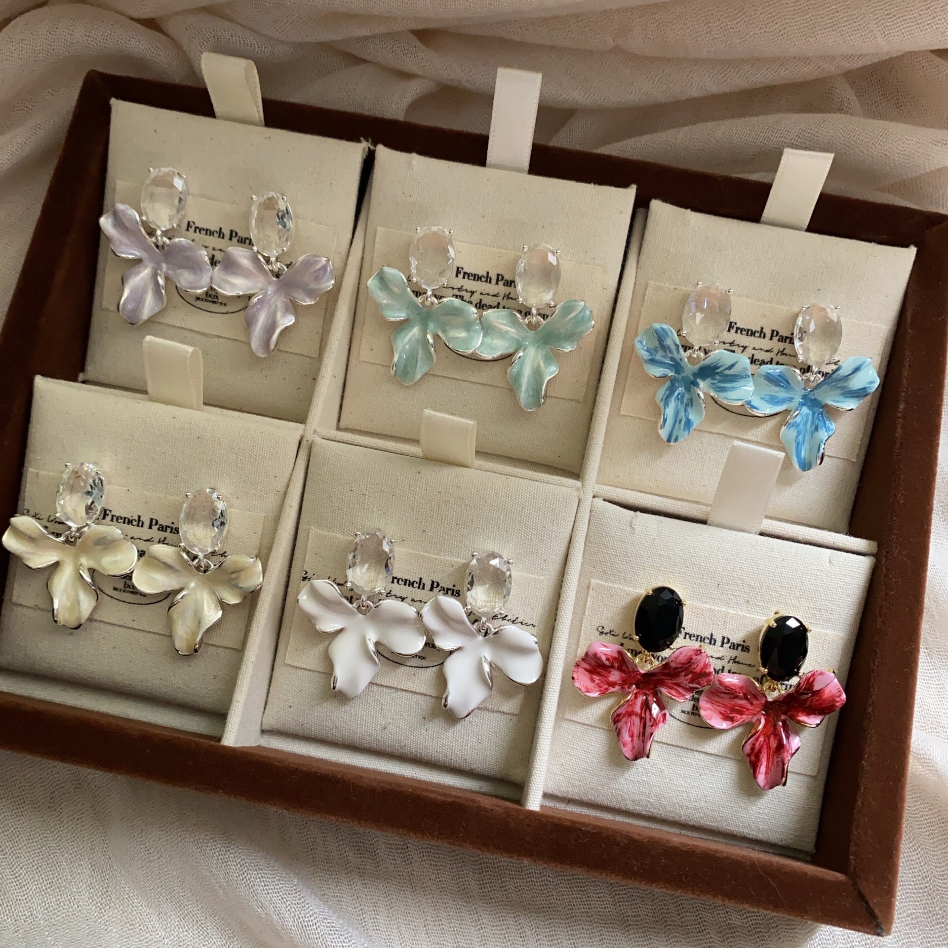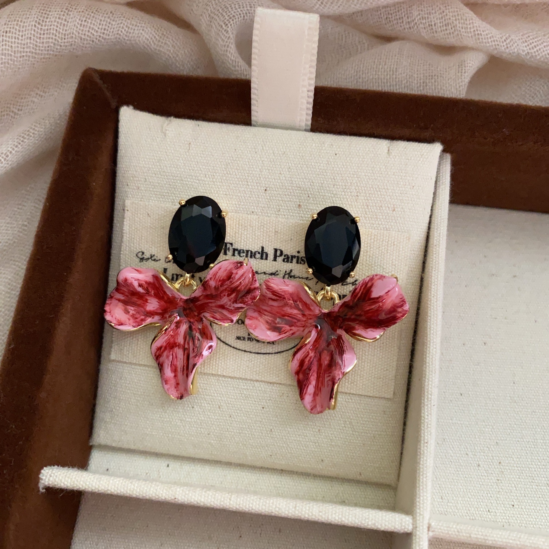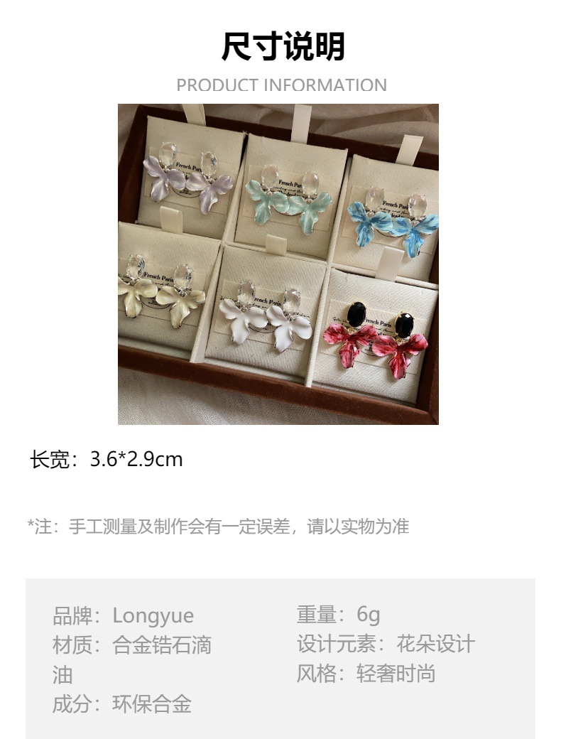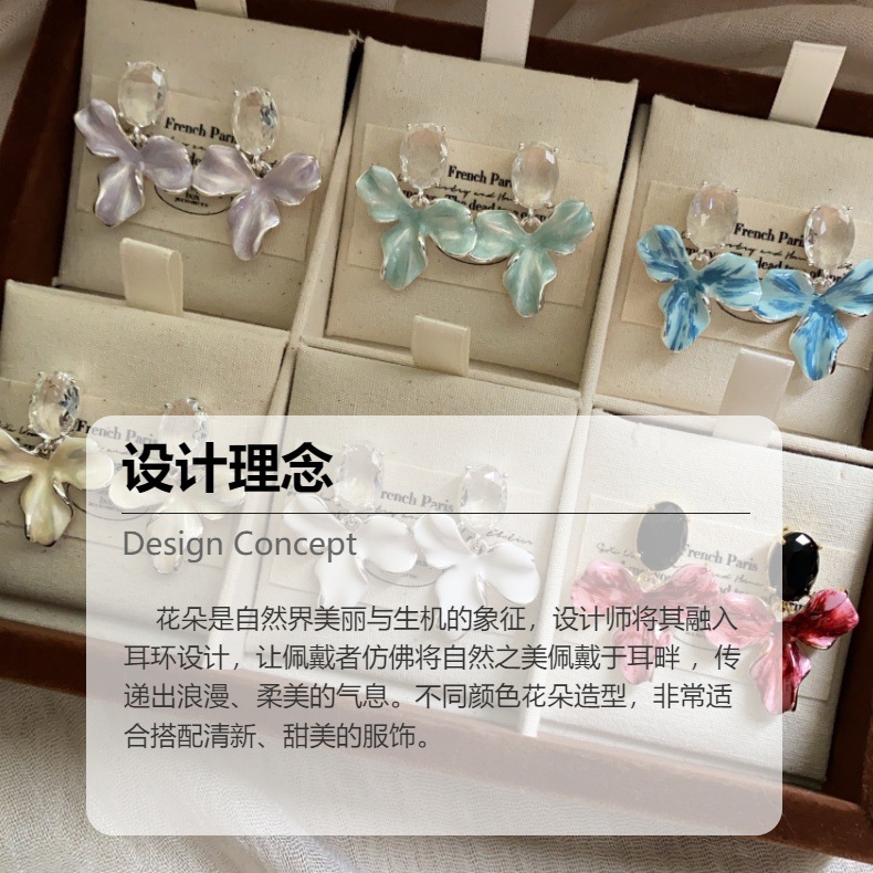 小众滴油撞色花朵镶钻耳钉精致甜美椭圆仿水晶花朵吊坠耳环小清新