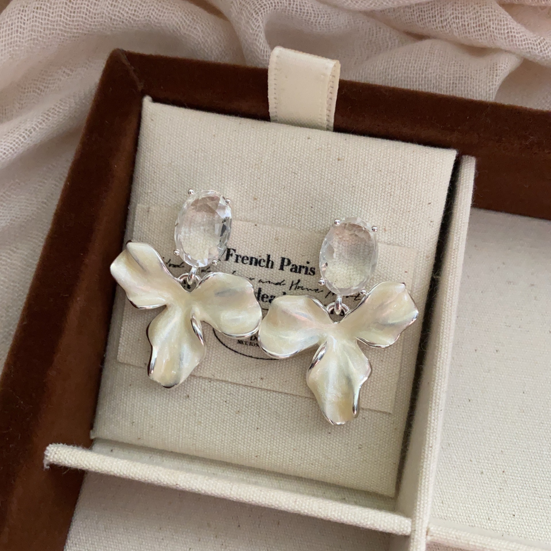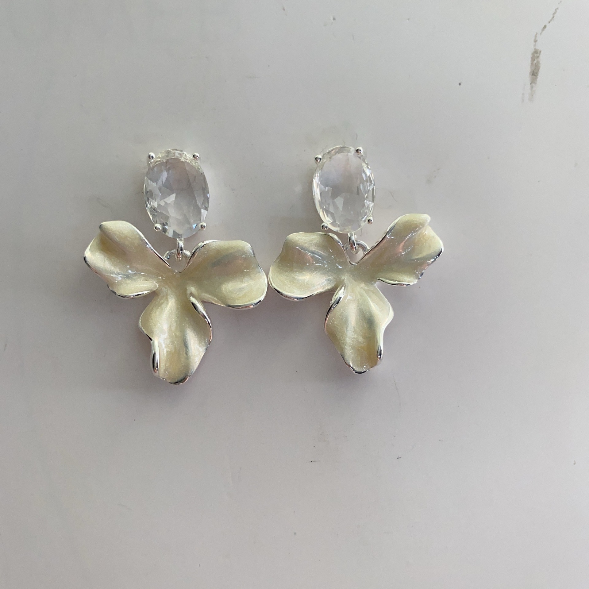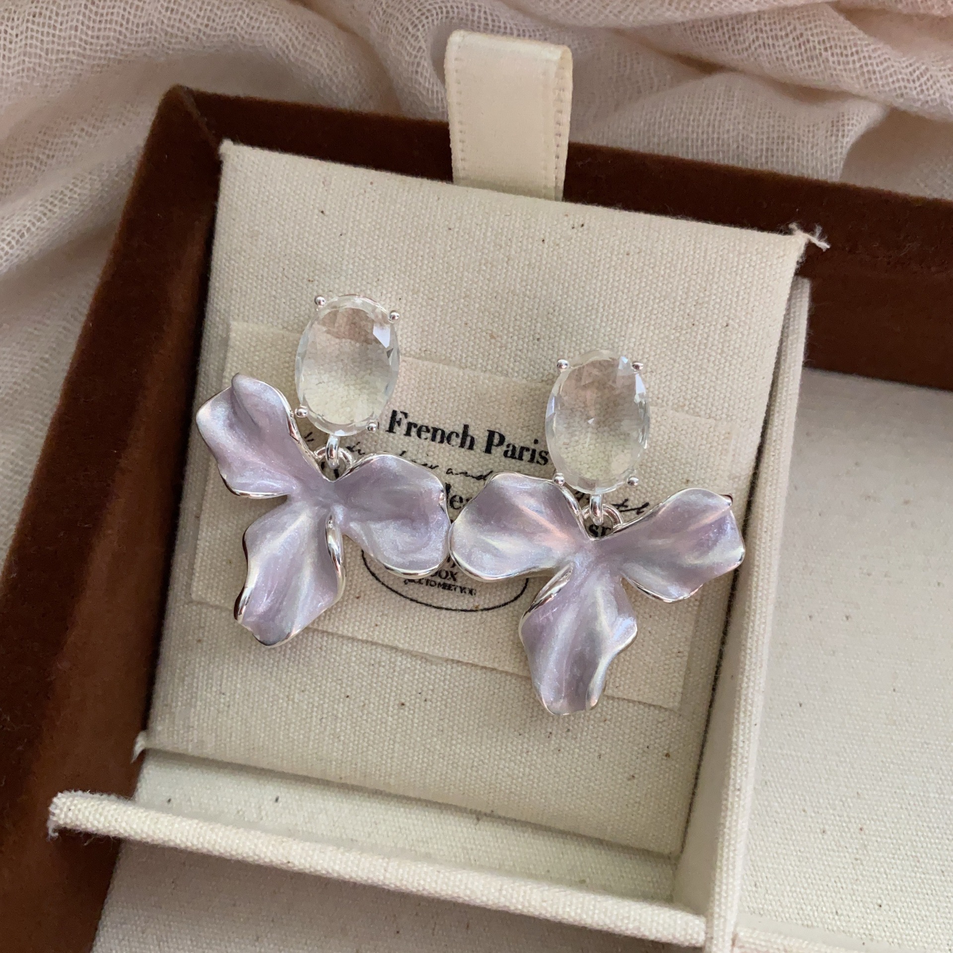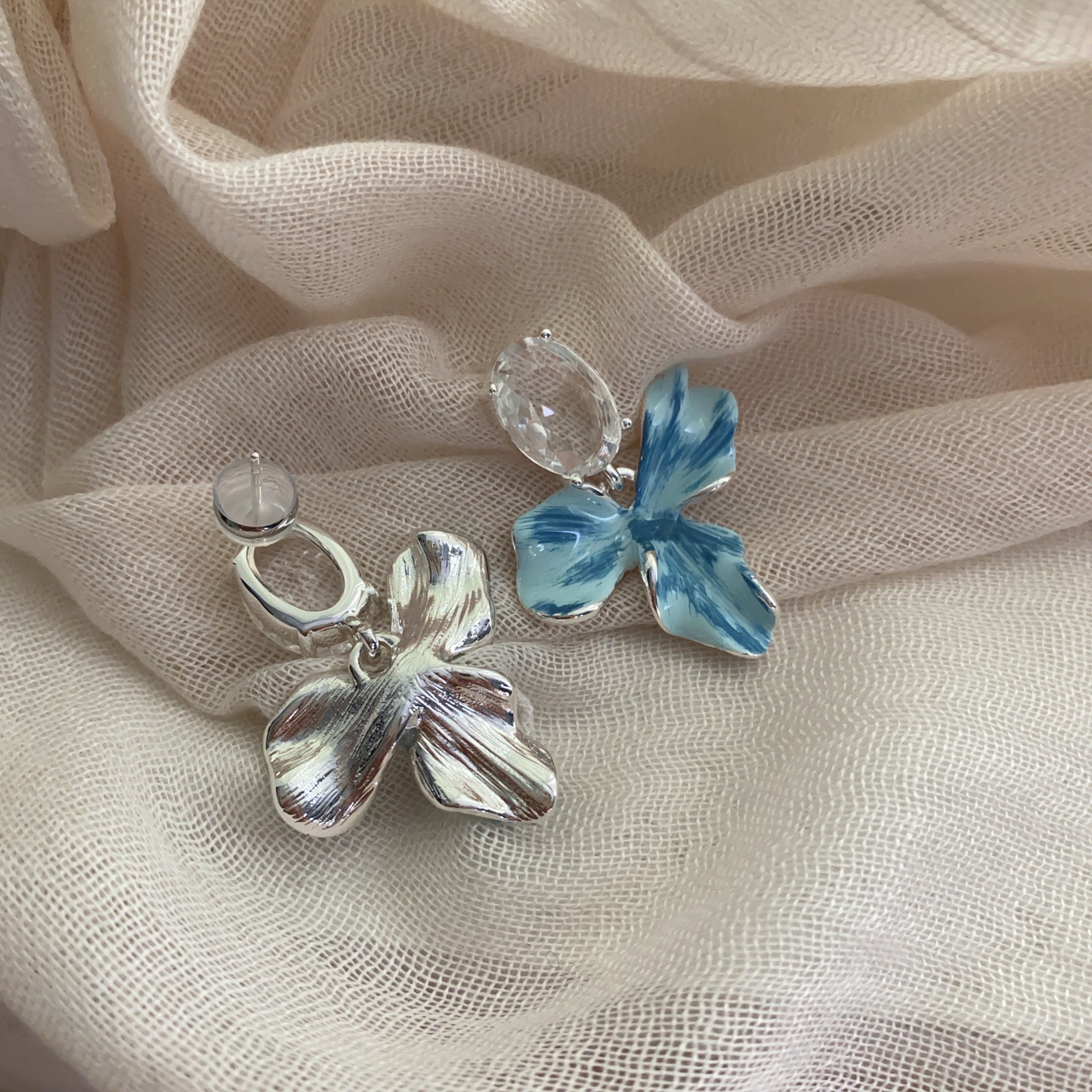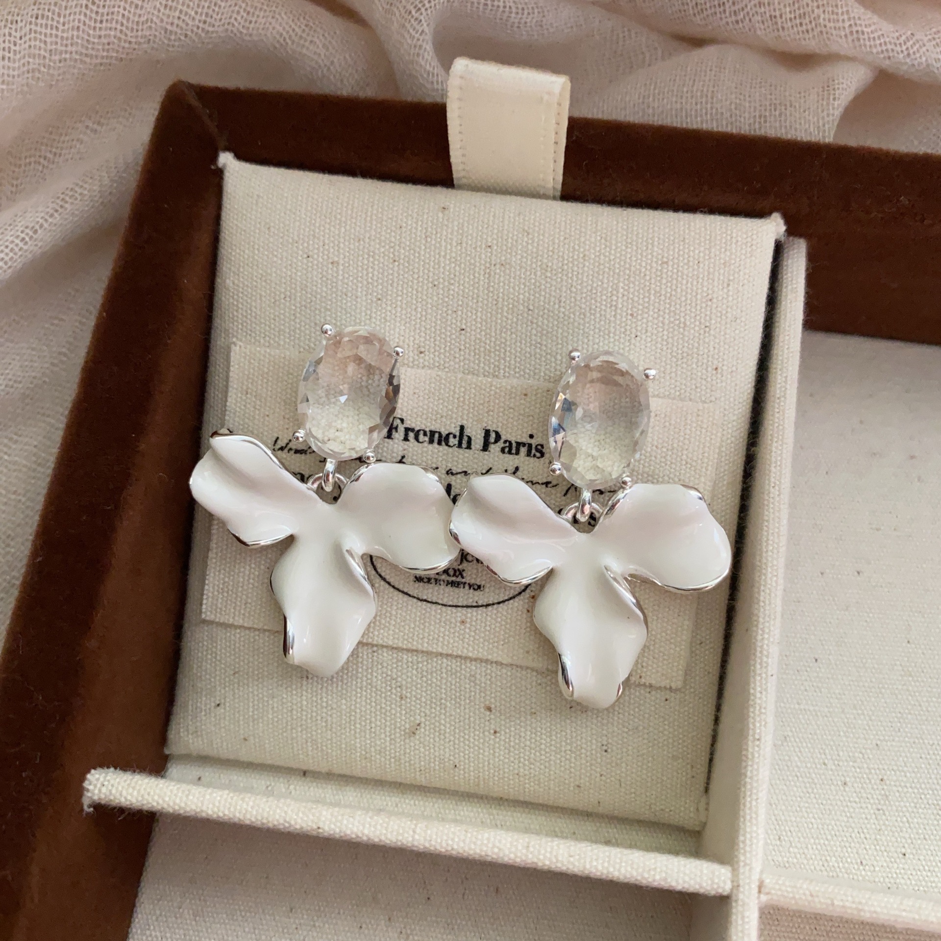 小众滴油撞色花朵镶钻耳钉精致甜美椭圆仿水晶花朵吊坠耳环小清新