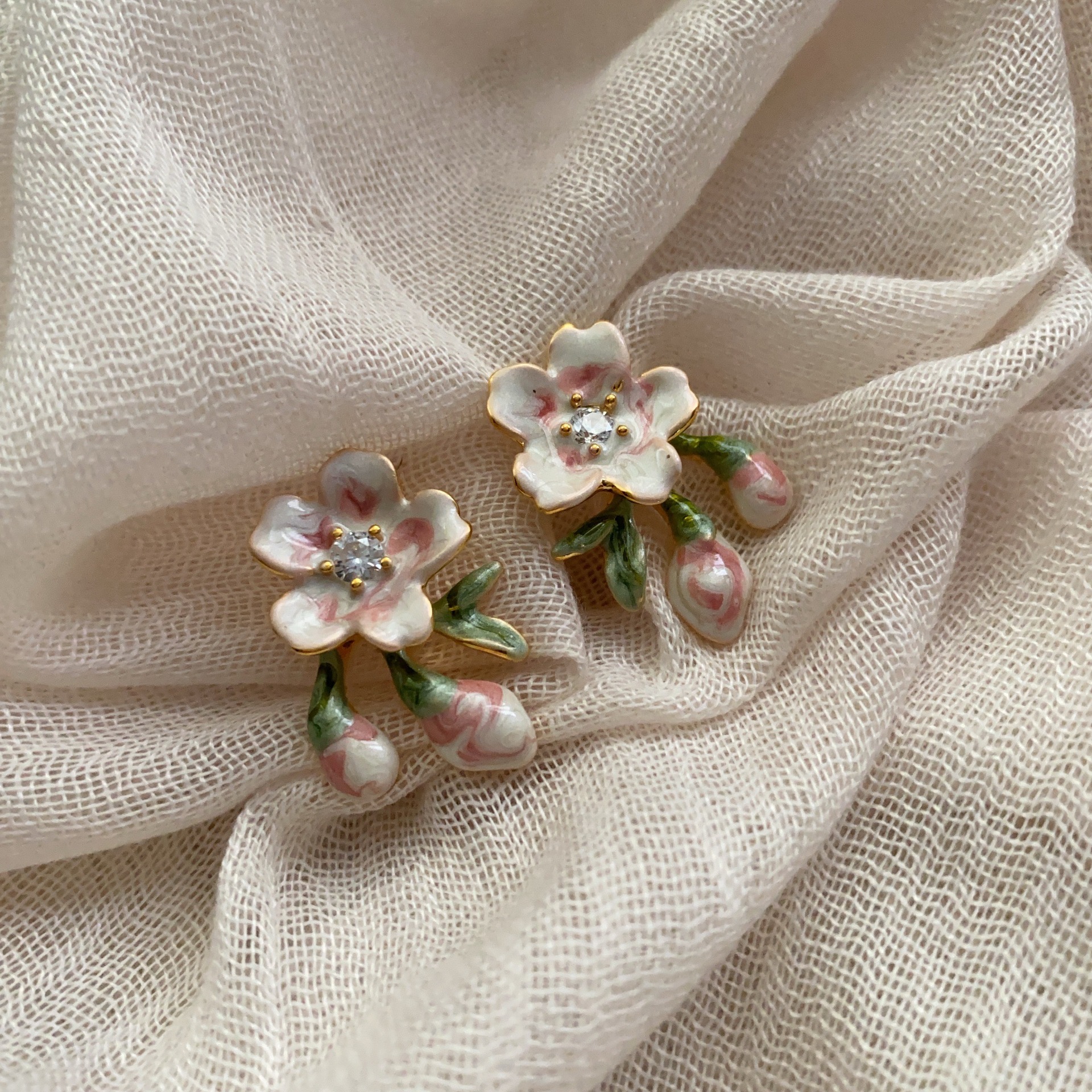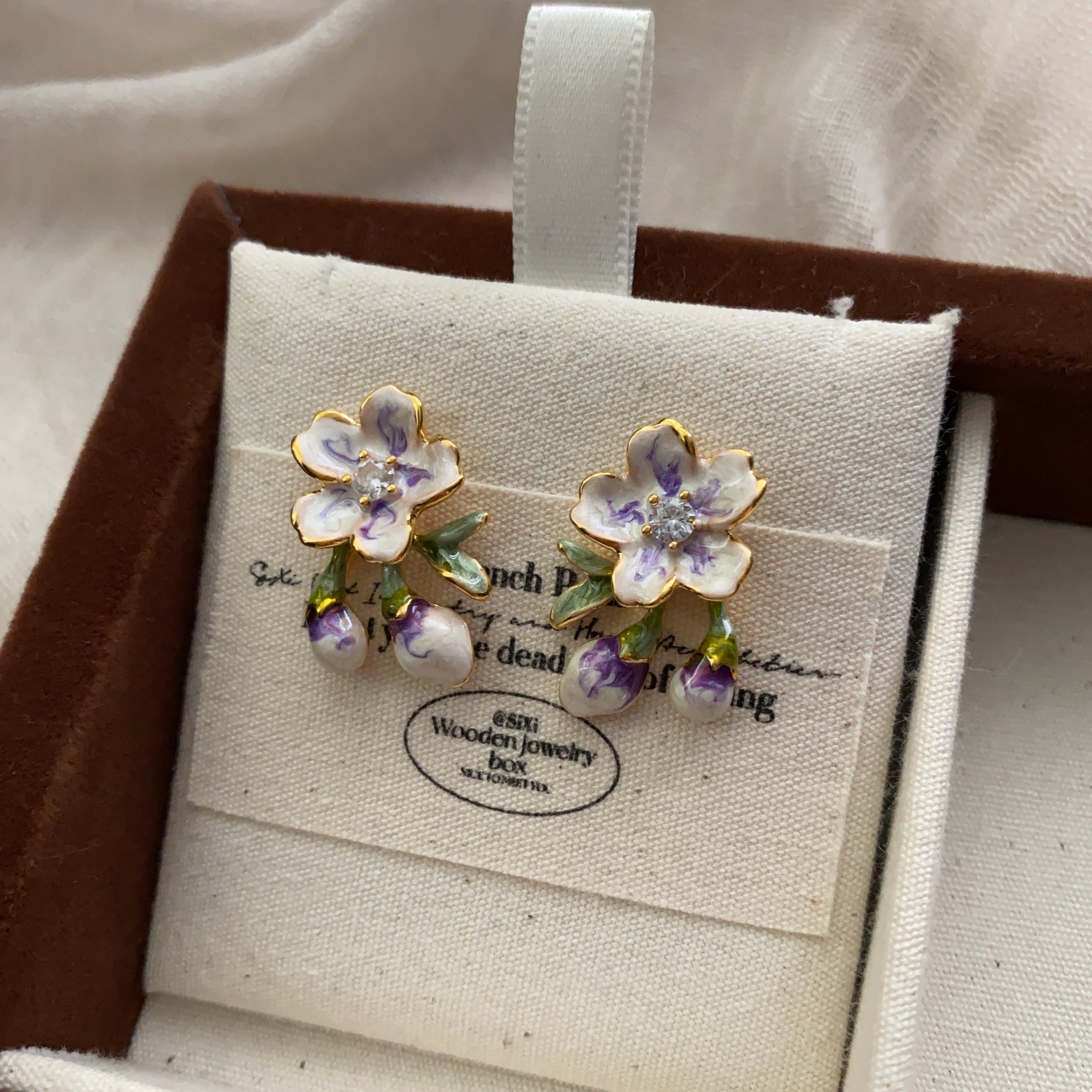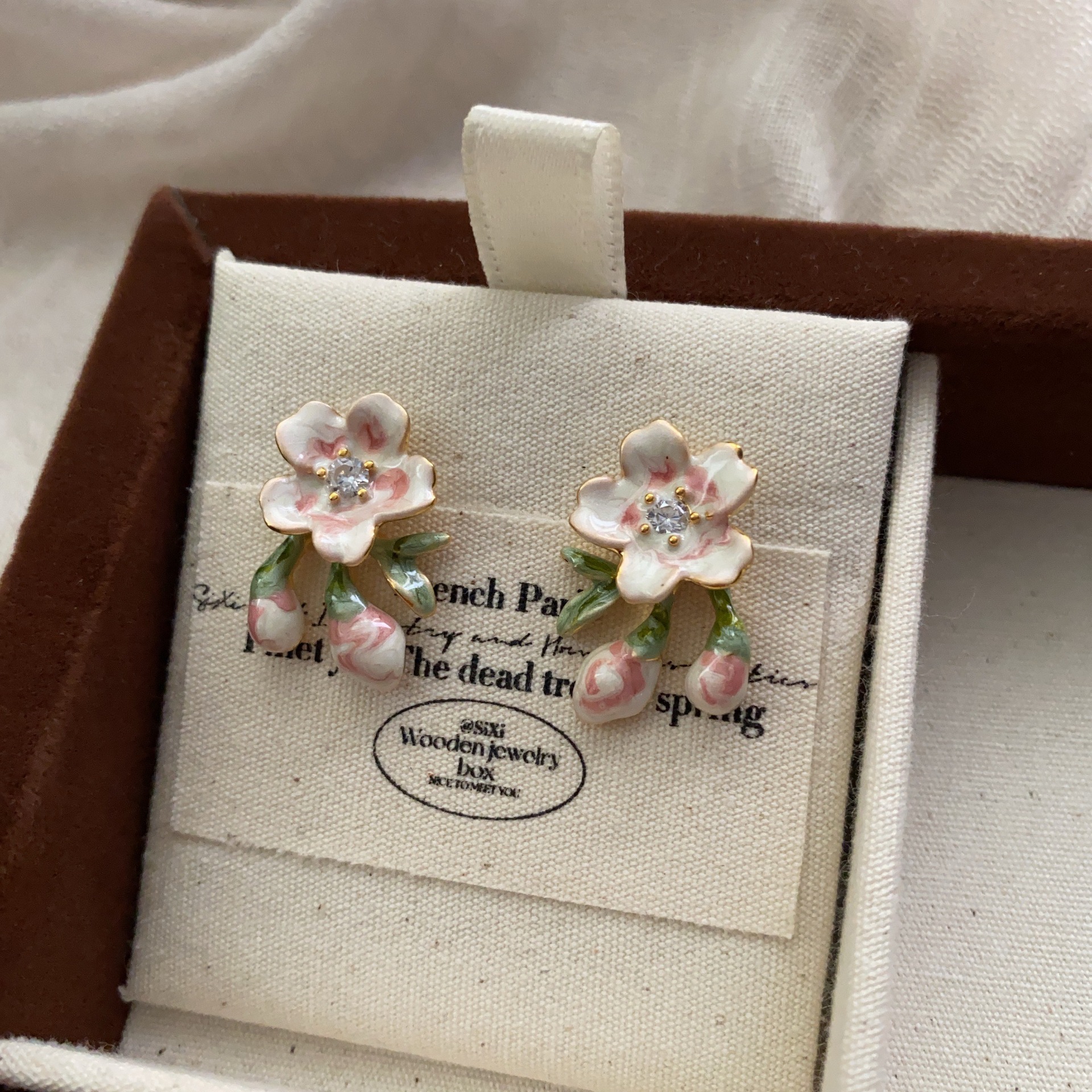 小清新复古铃兰花锆石耳环独特设计精致花朵耳钉气质优雅森系耳环