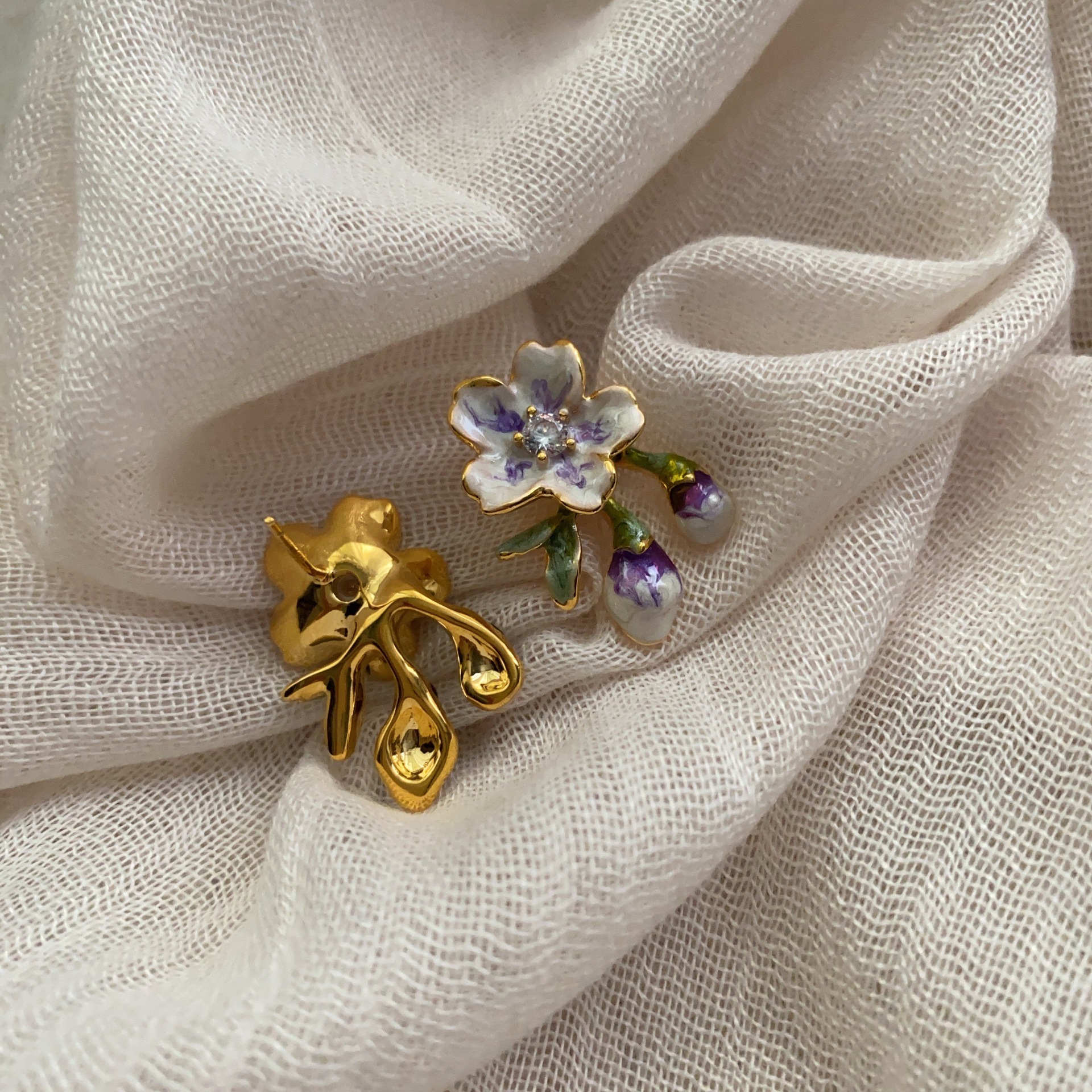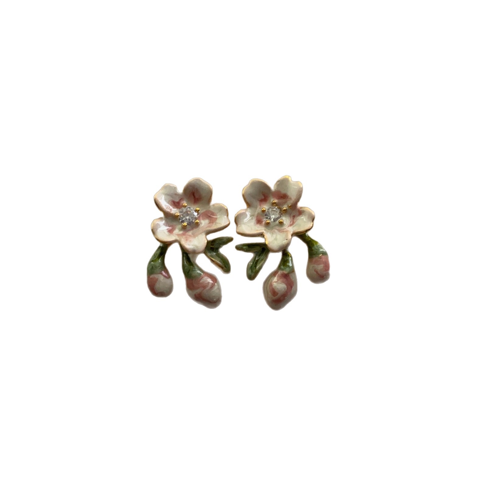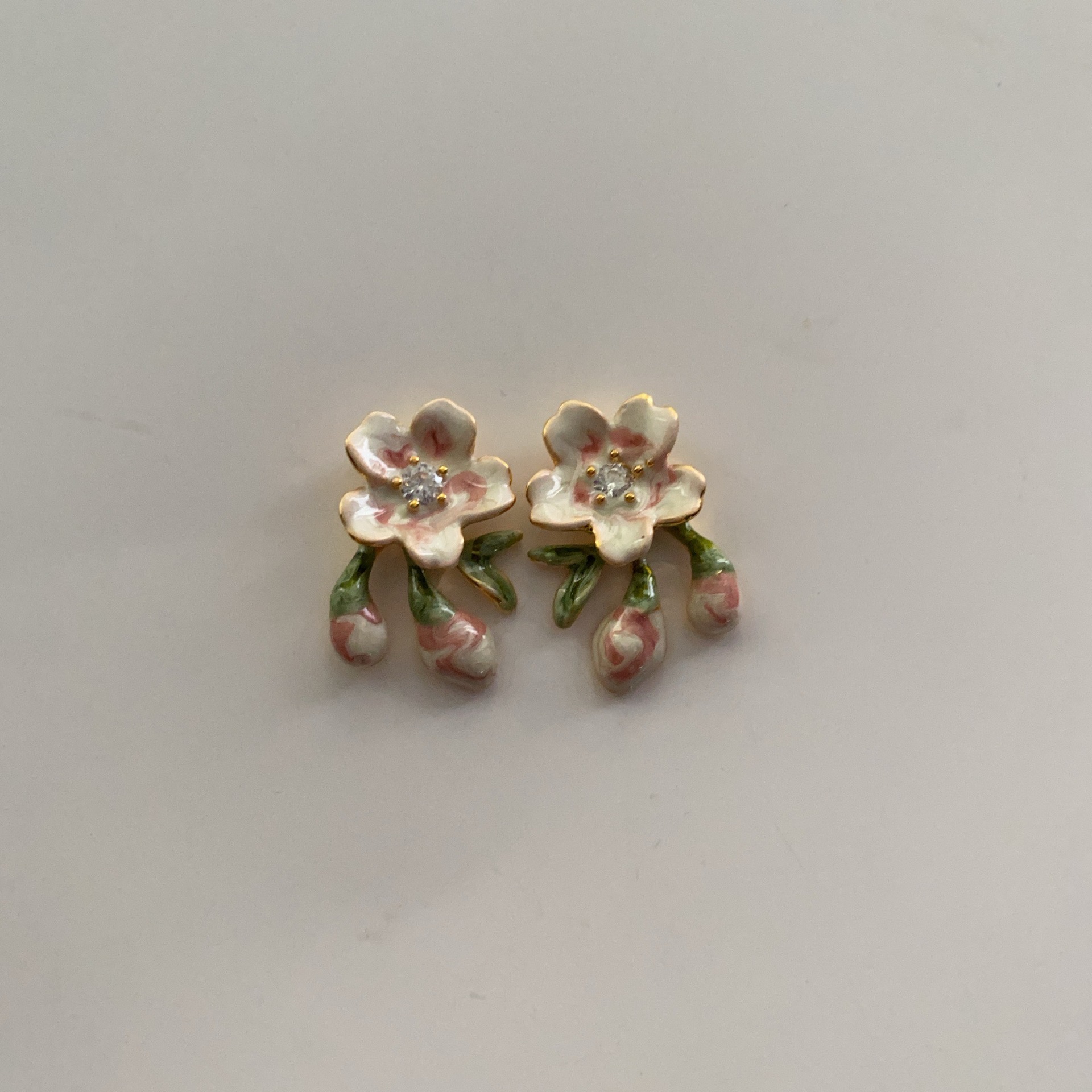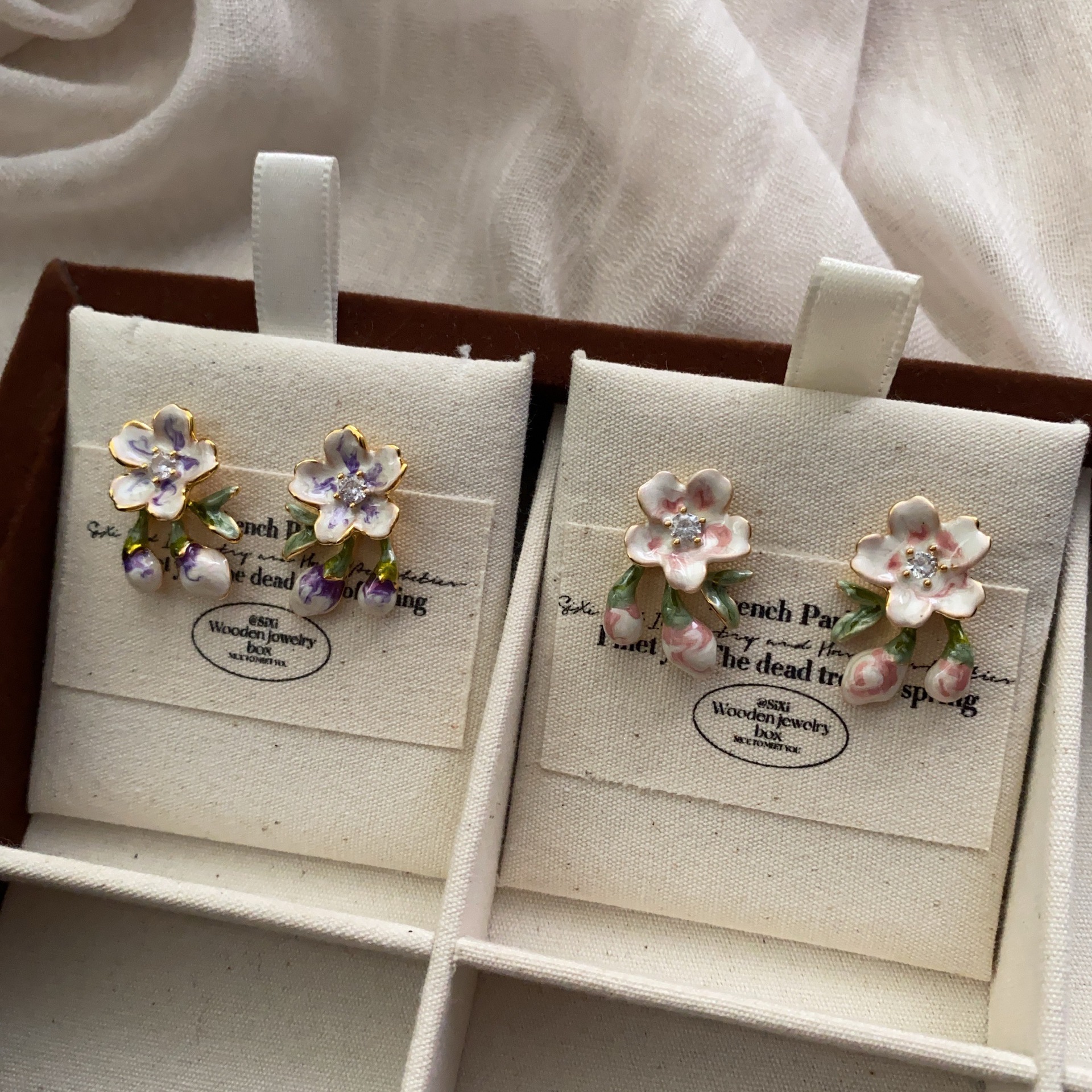 小清新复古铃兰花锆石耳环独特设计精致花朵耳钉气质优雅森系耳环