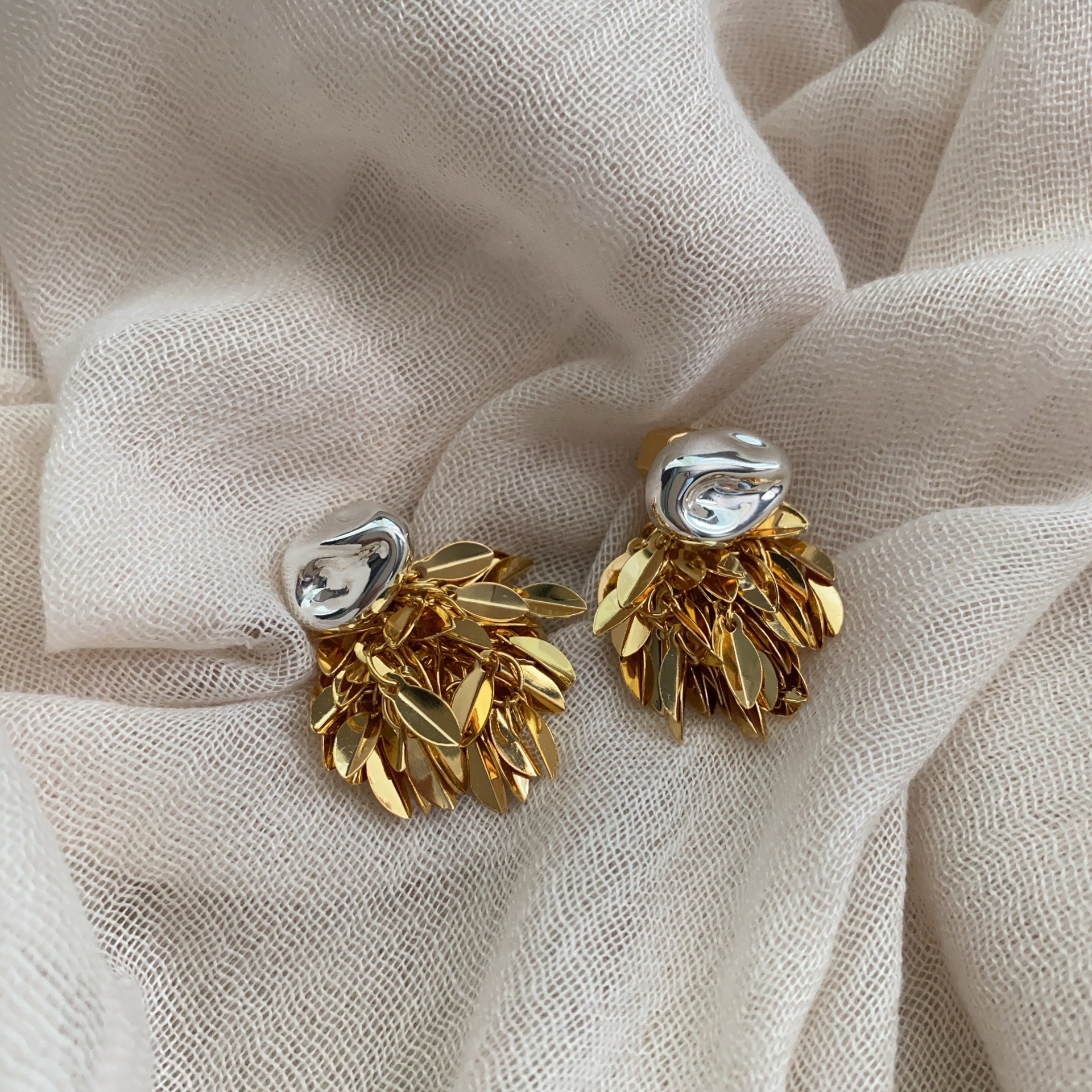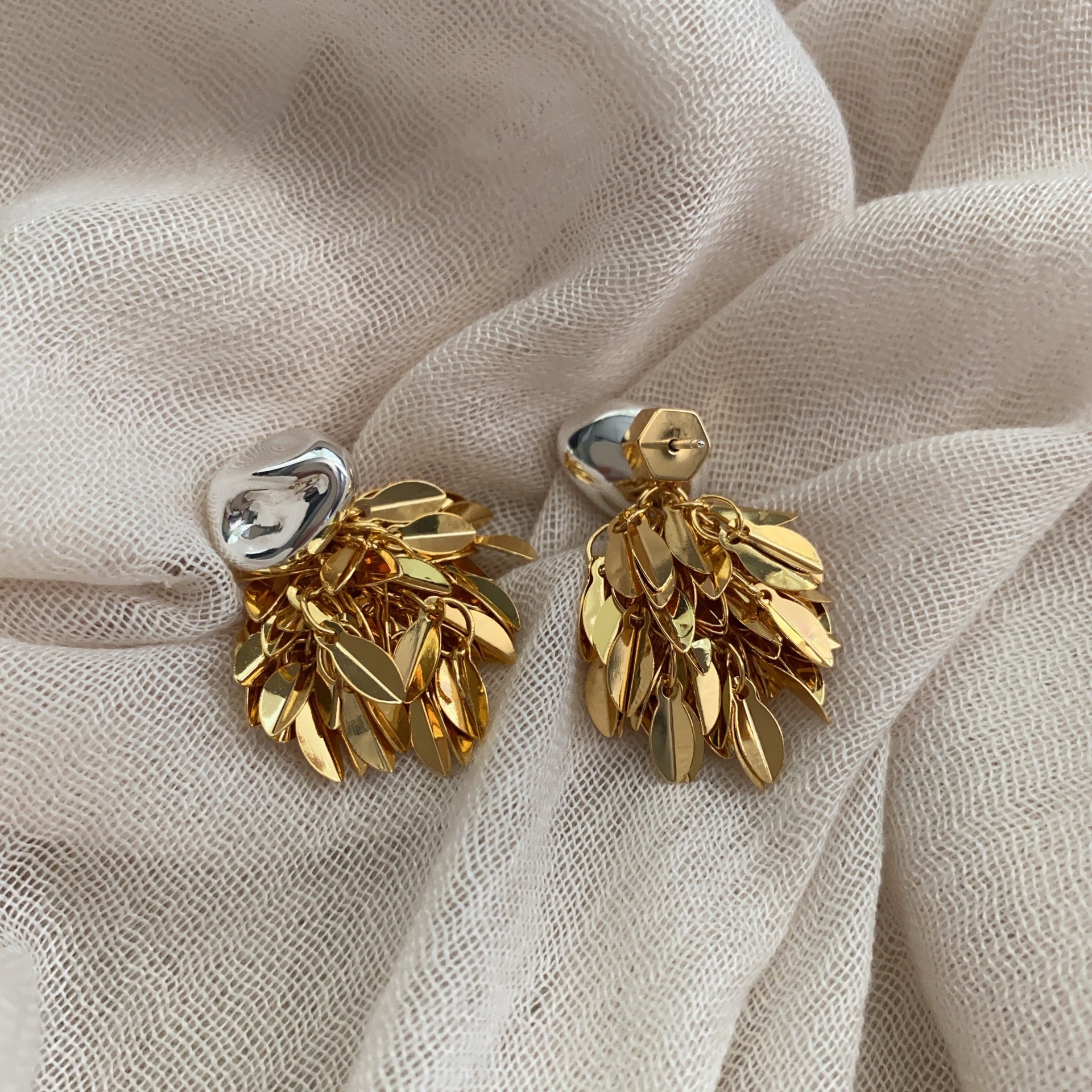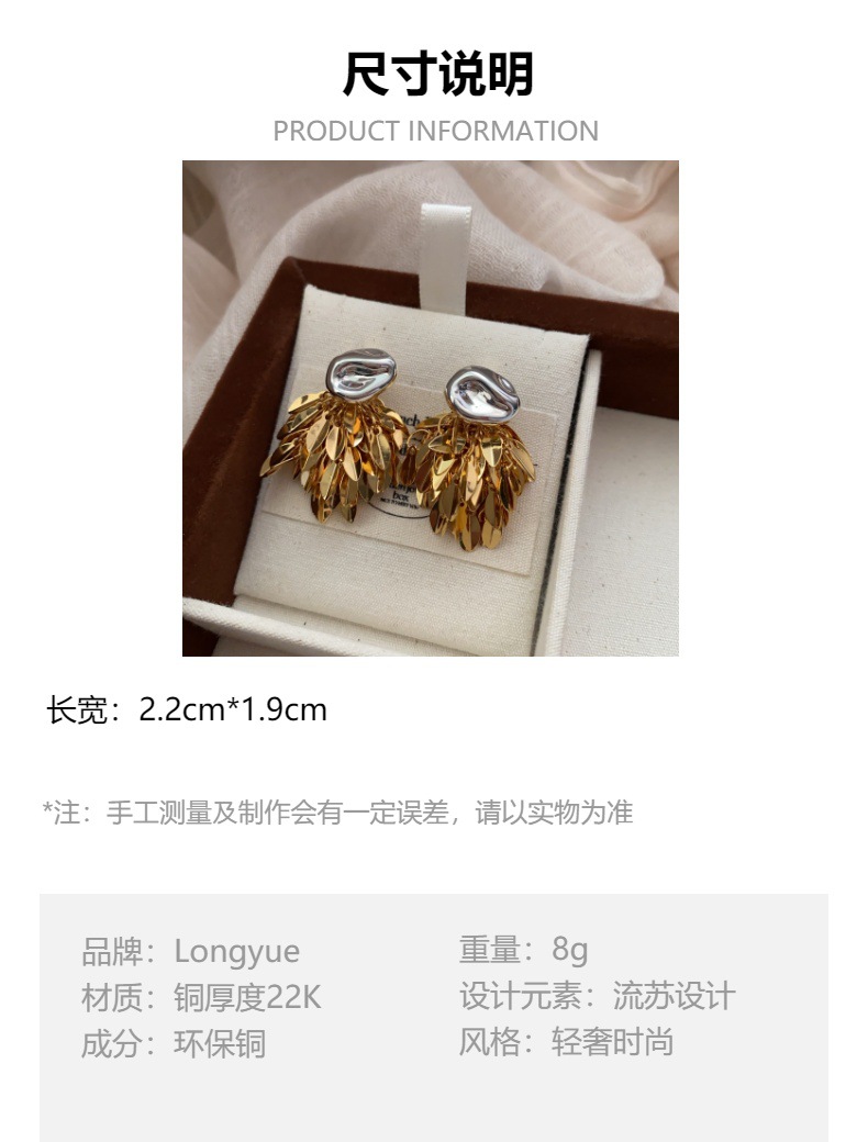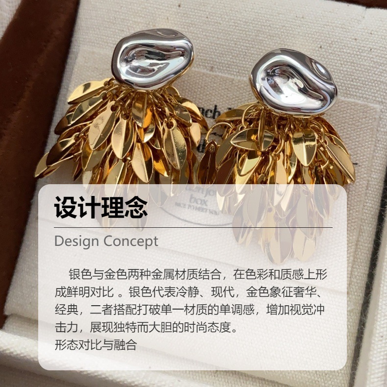 麦穗叶子金银撞色流苏耳环耳坠简约气百搭质高级小众设计耳环耳饰