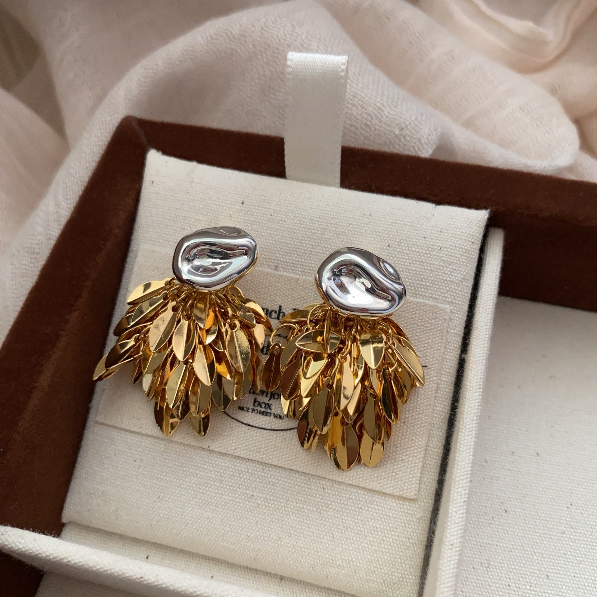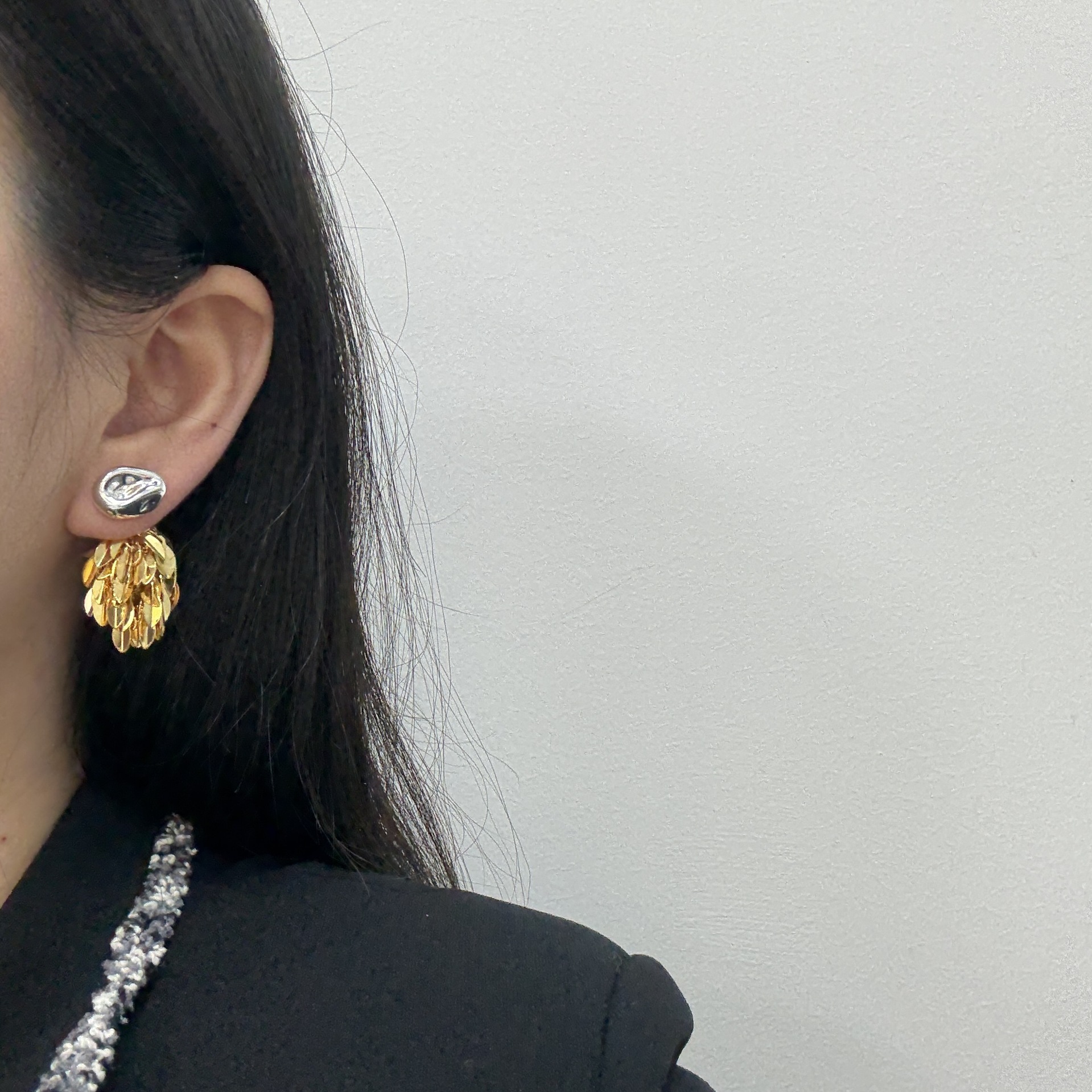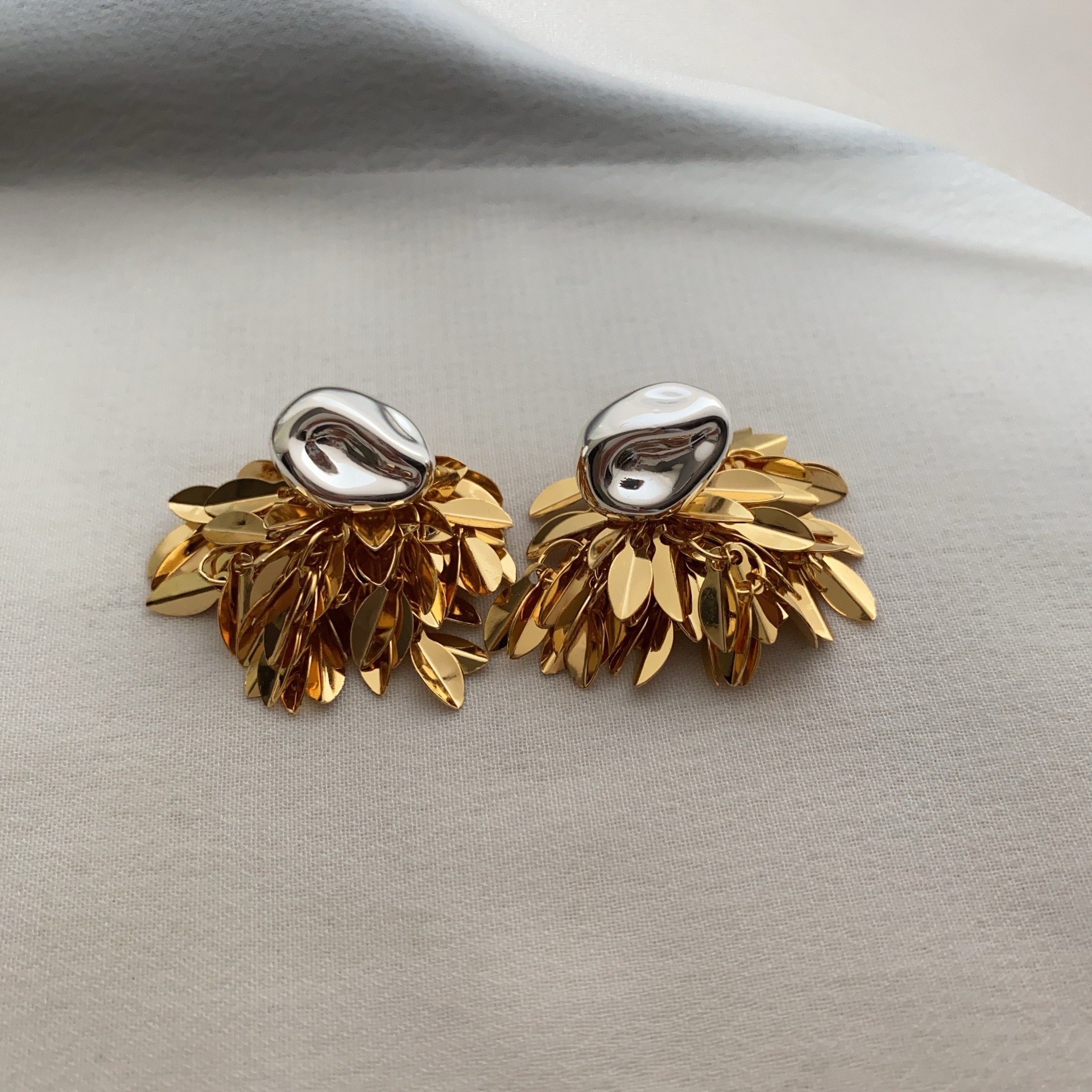麦穗叶子金银撞色流苏耳环耳坠简约气百搭质高级小众设计耳环耳饰