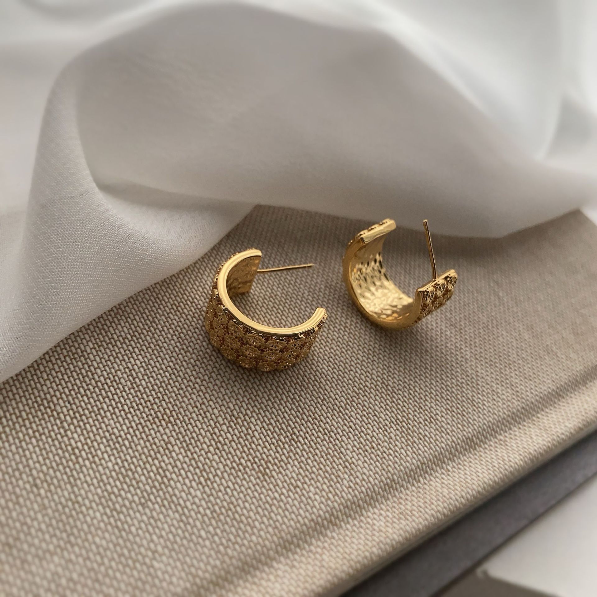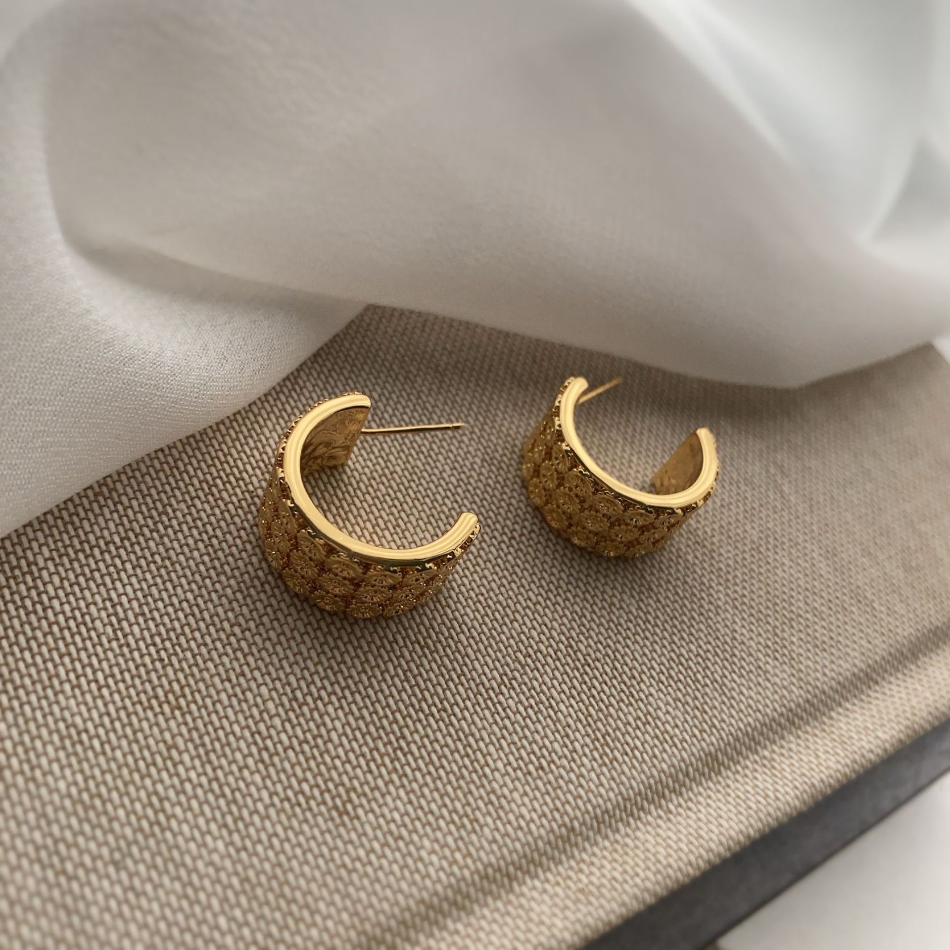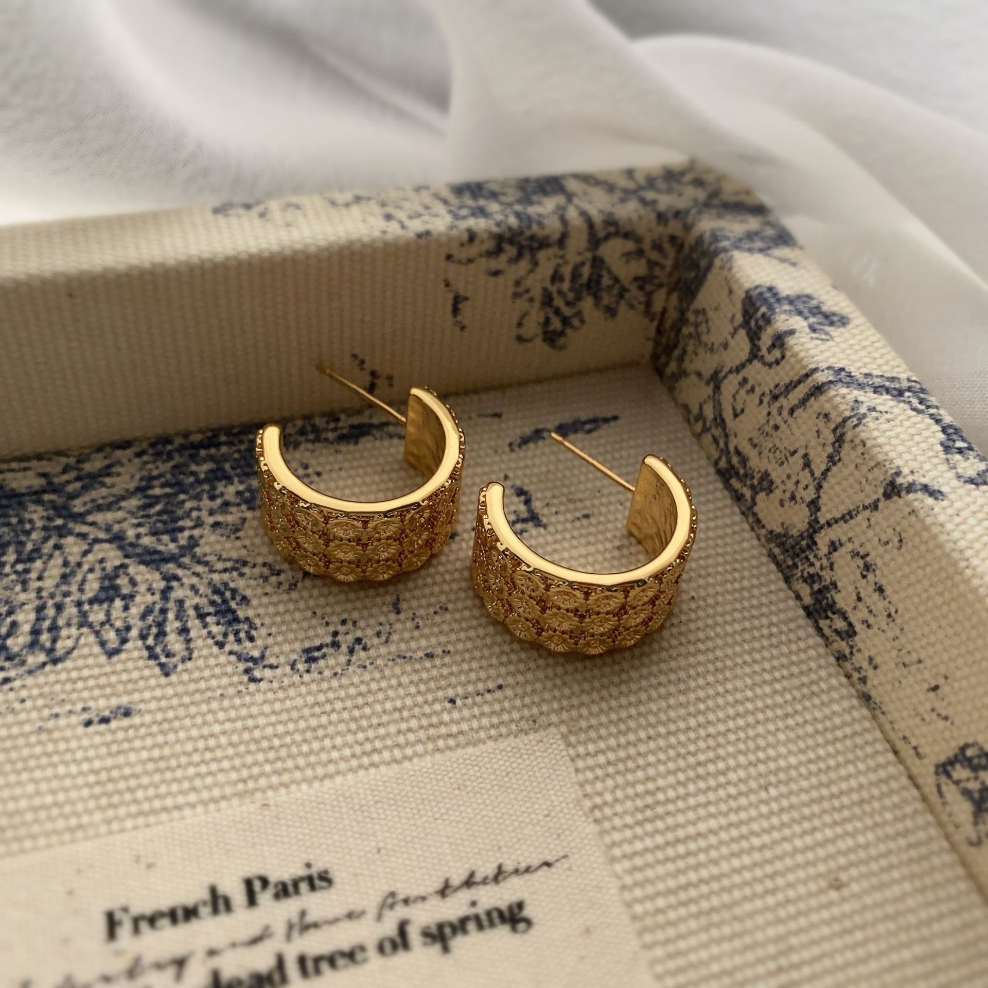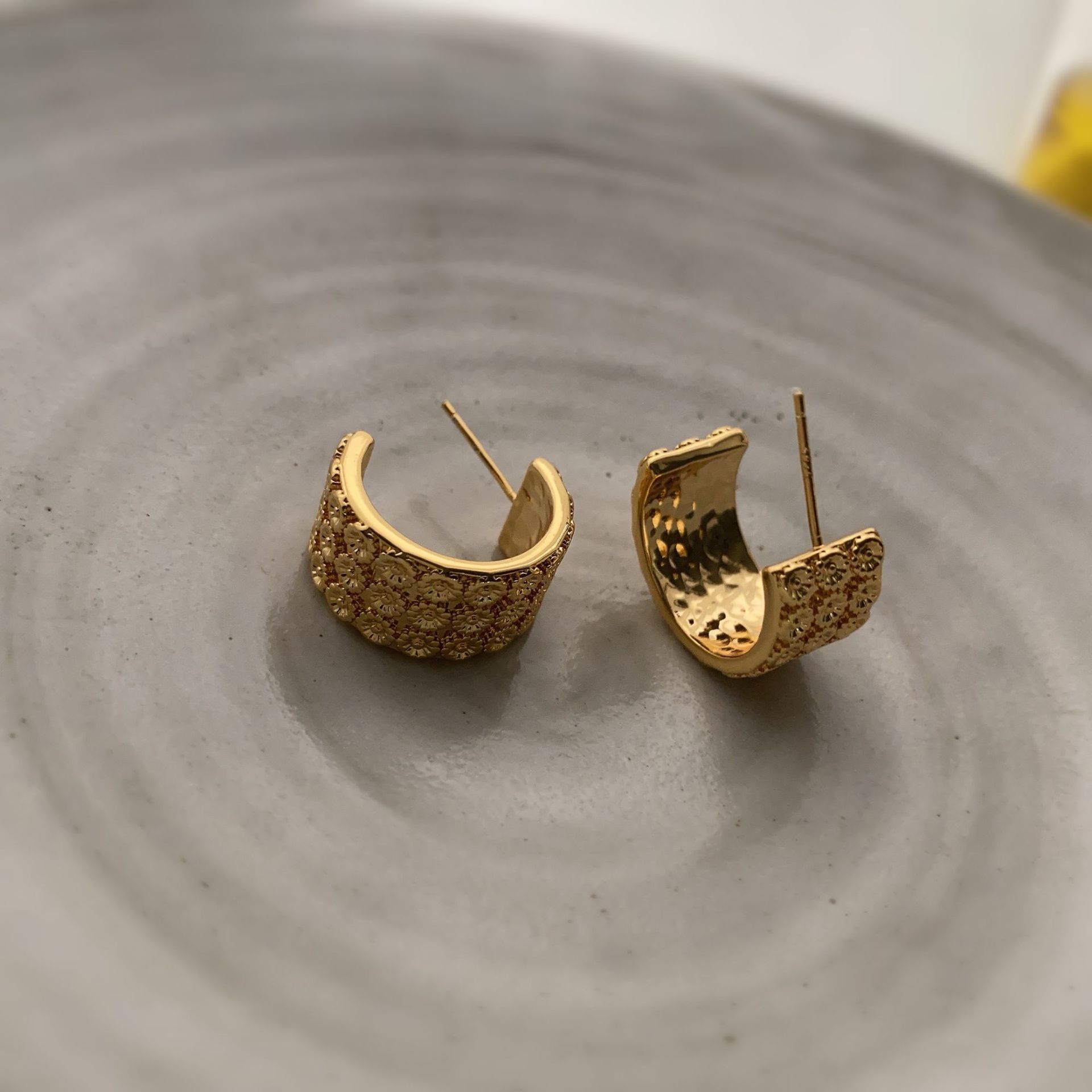 欧美时尚新款爆款圈圈耳环复古金色金属设计小众个性气质百搭耳饰