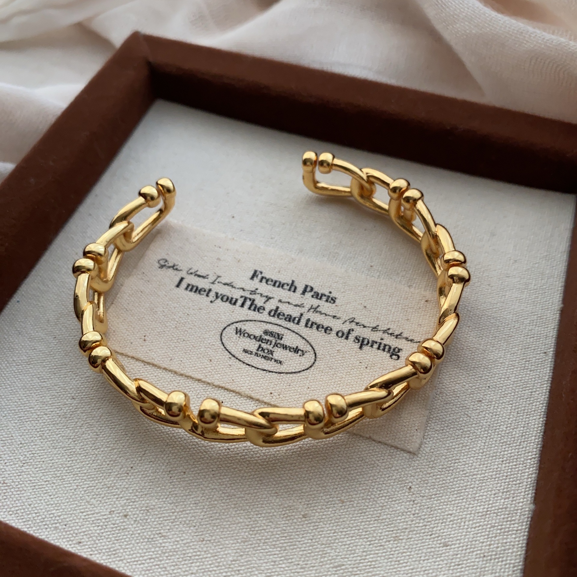 小众设计感气质极简小众设计高端保色板链条手环轻奢简约开口手镯