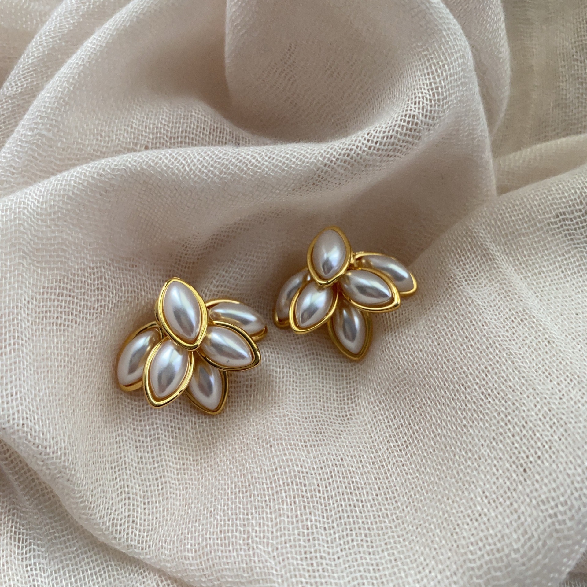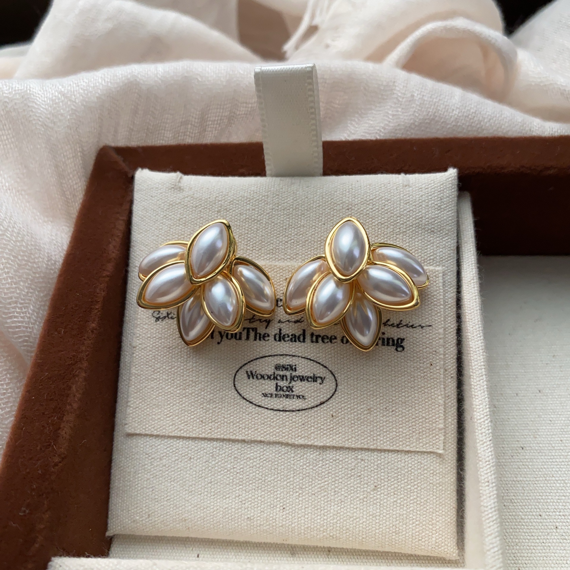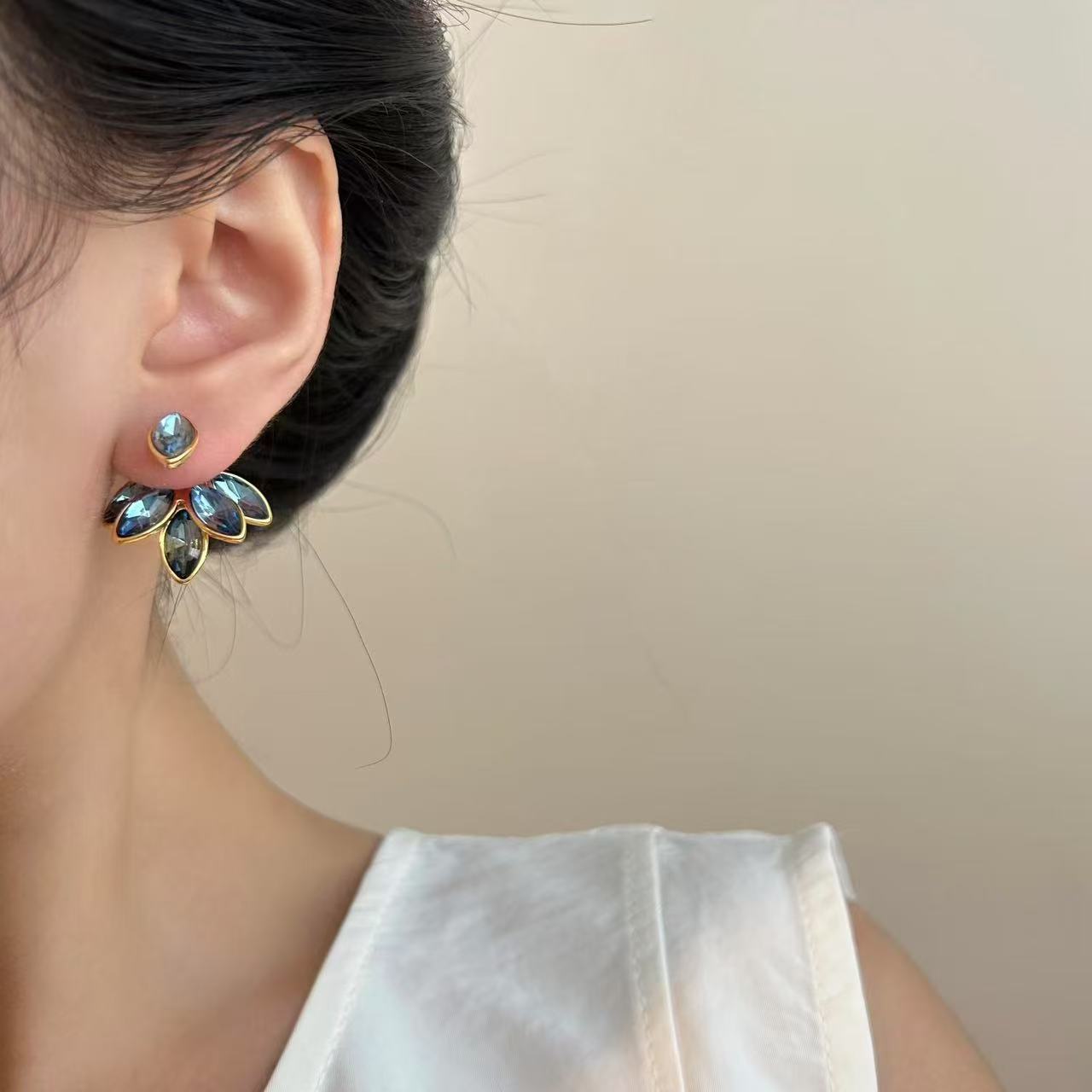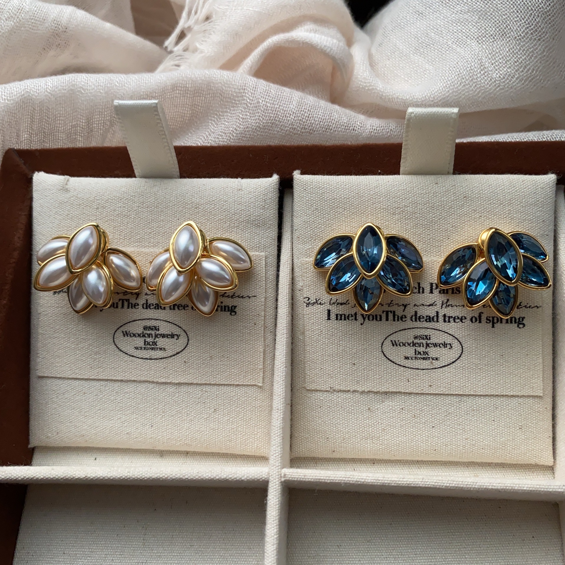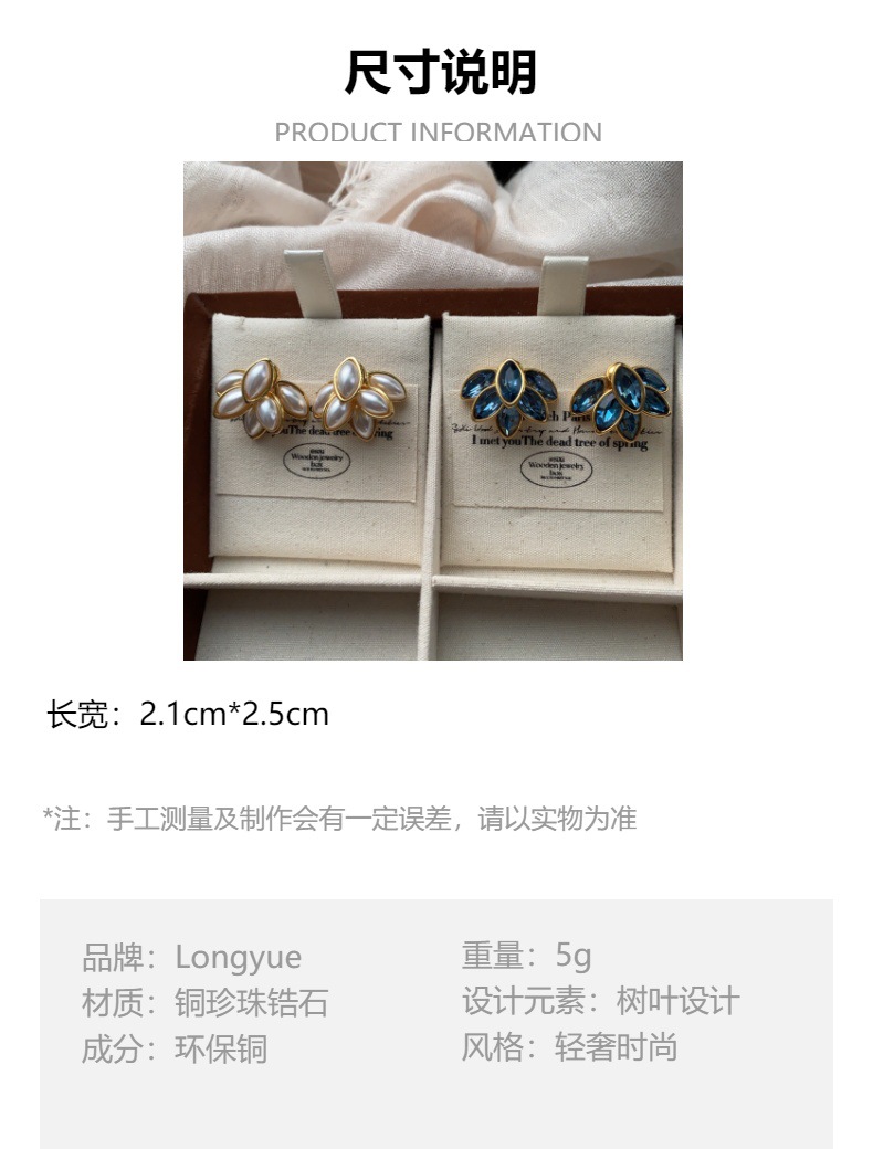树叶珍珠锆石耳环高级感气质耳钉小众设计感轻奢高品质女新款耳饰