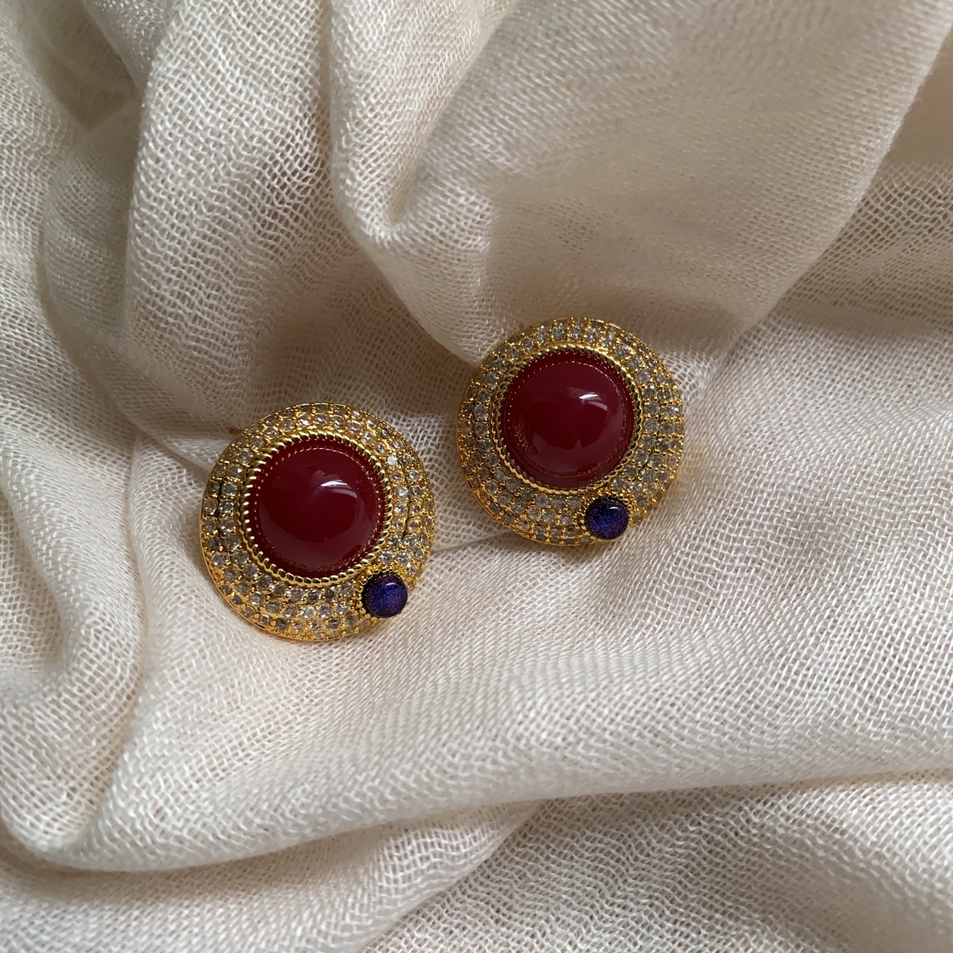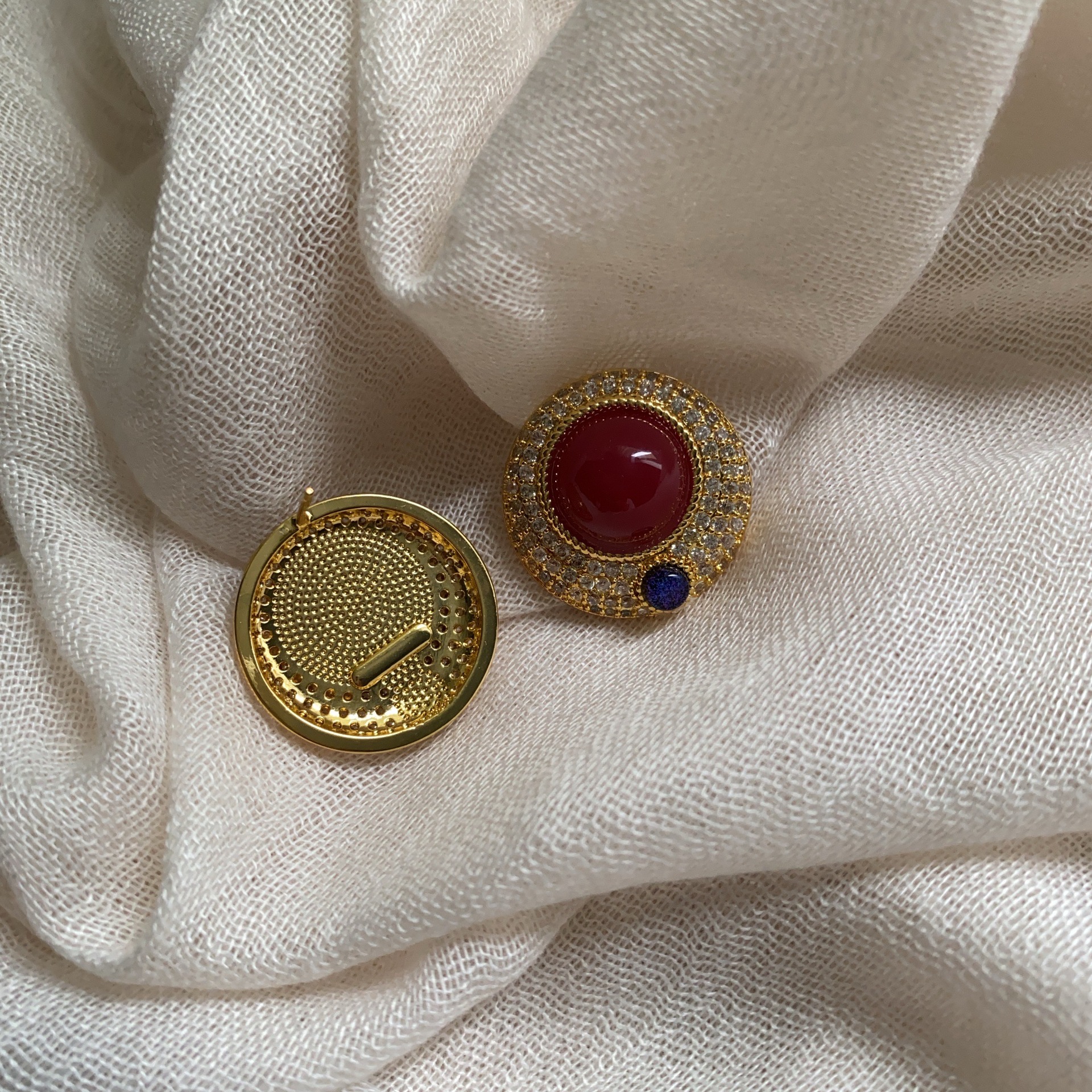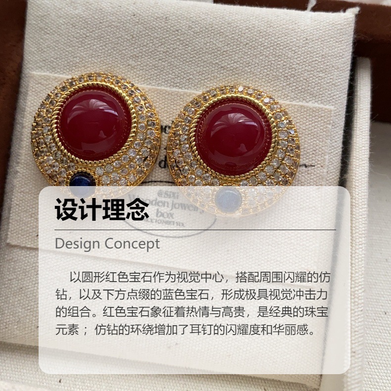 法式复古独特气质风轻奢圆形红色镶钻满钻圆环耳环绝美宝石设计感