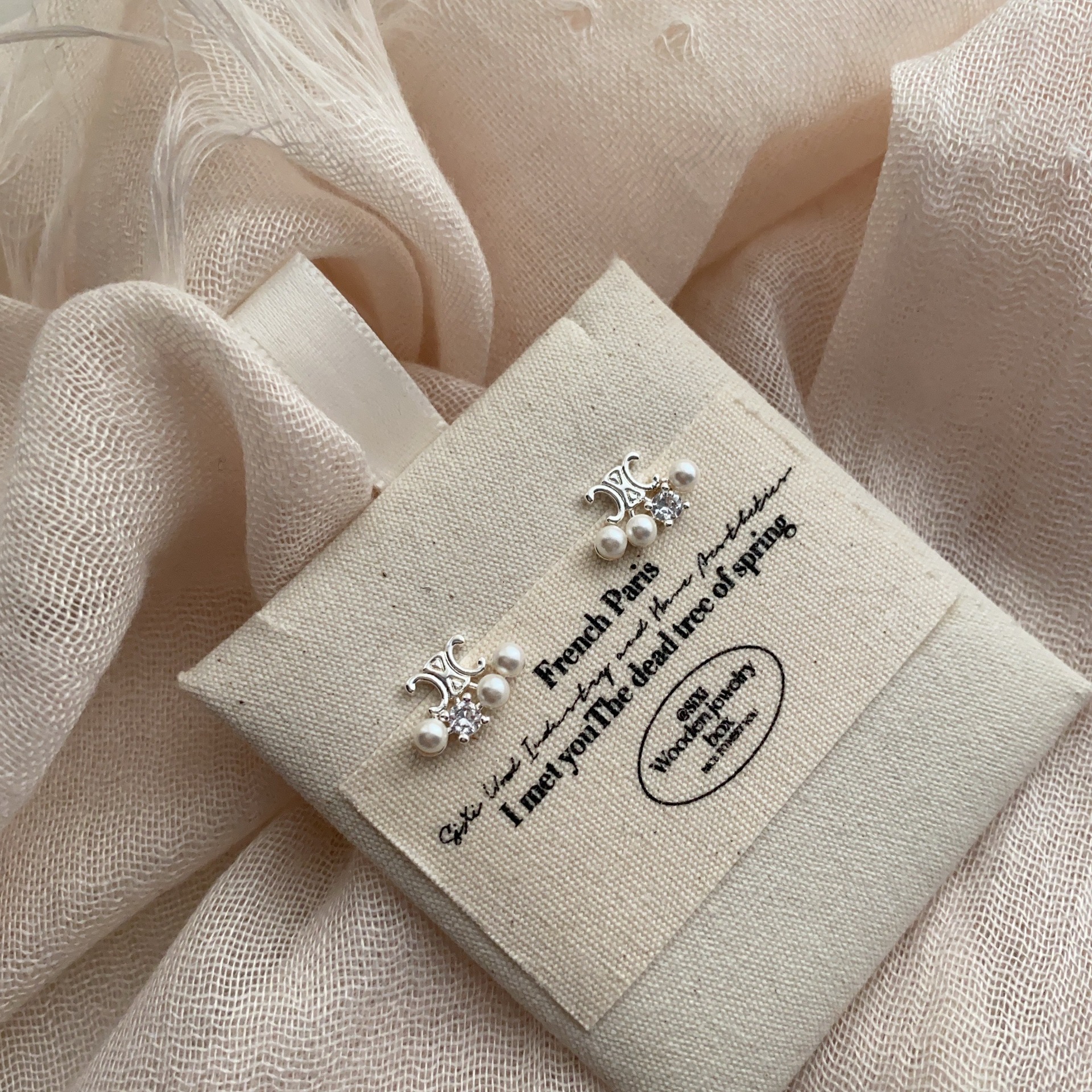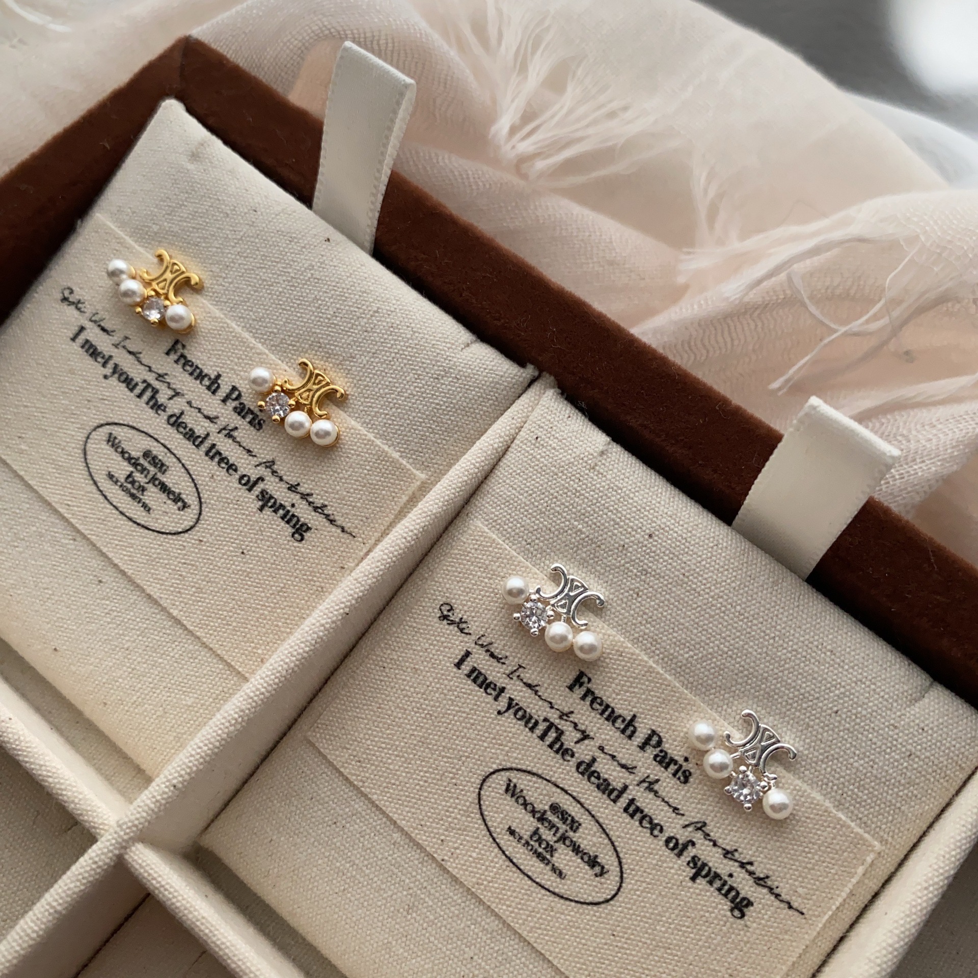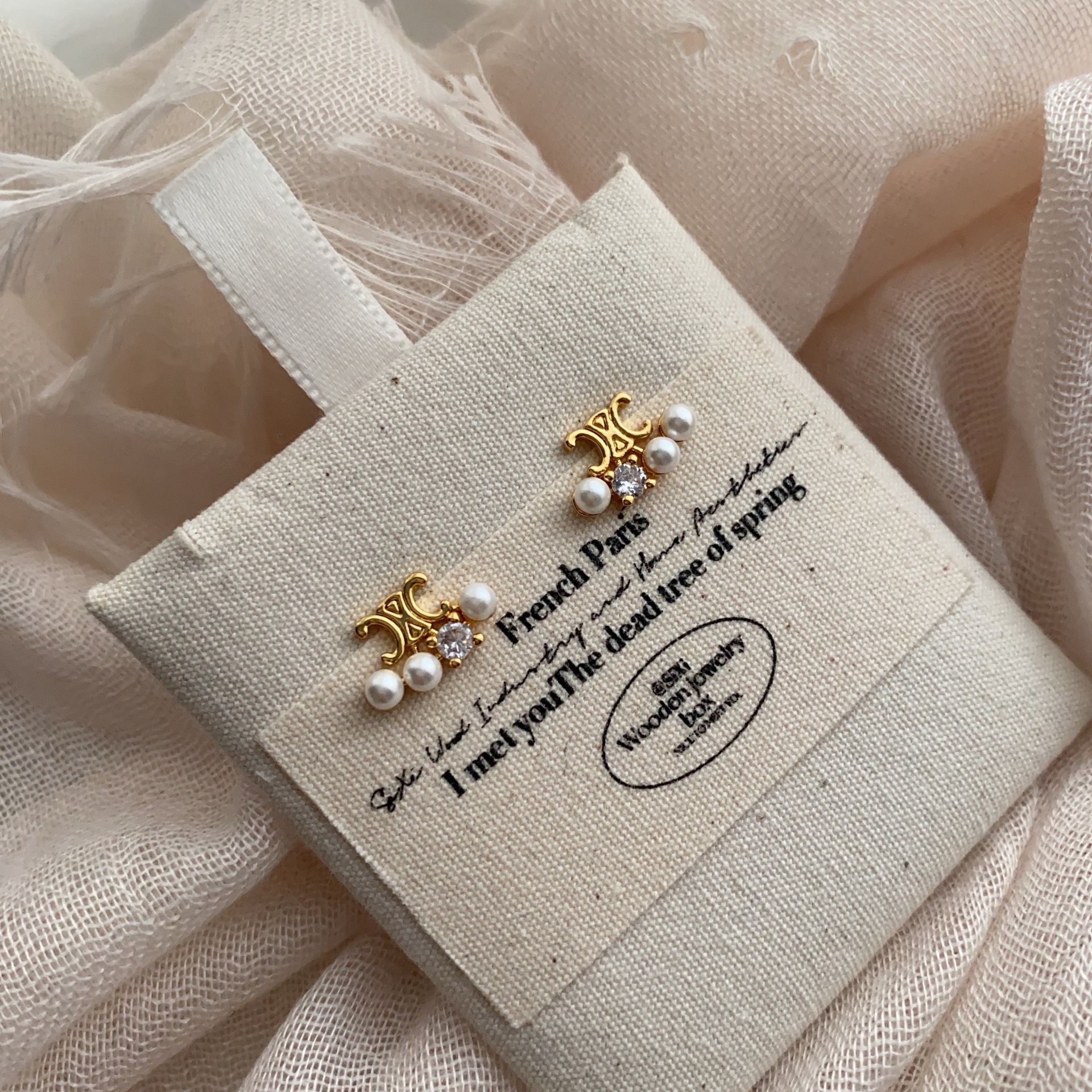 法式复古个性独特珍珠镶钻耳钉欧美时尚百搭小众设计高级感耳环女