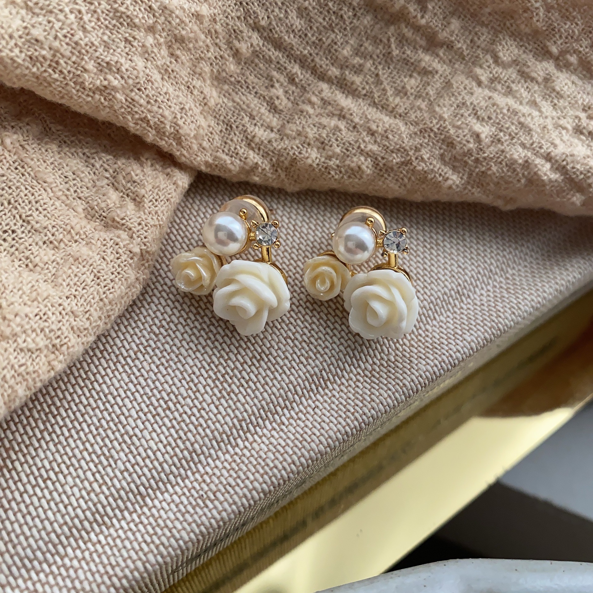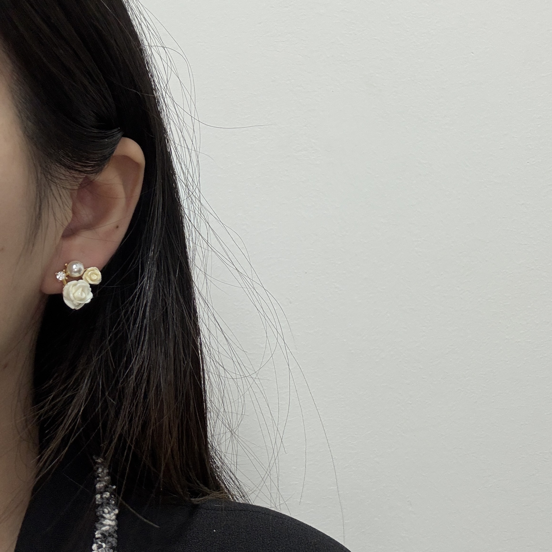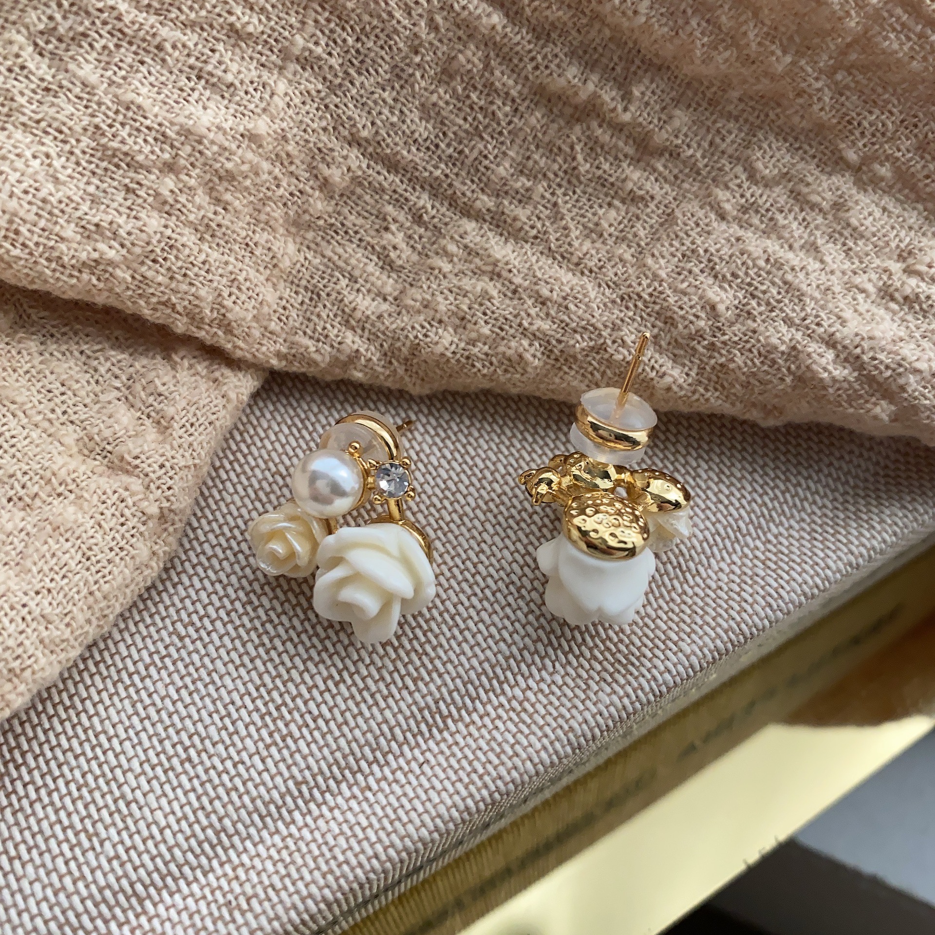 珍珠花朵耳钉甜美法式白色山茶花清新独特复古小众高级感温36起订