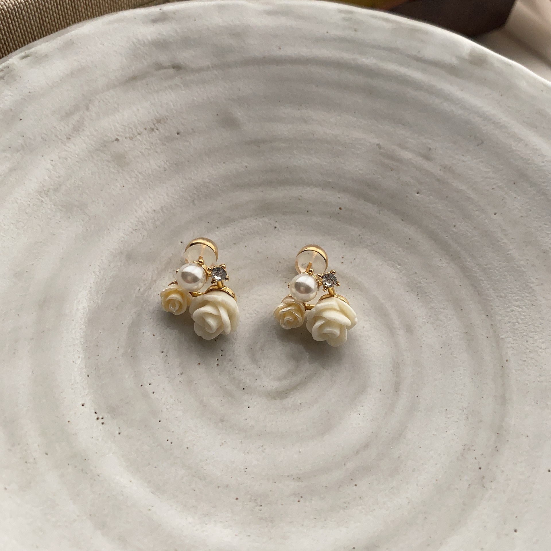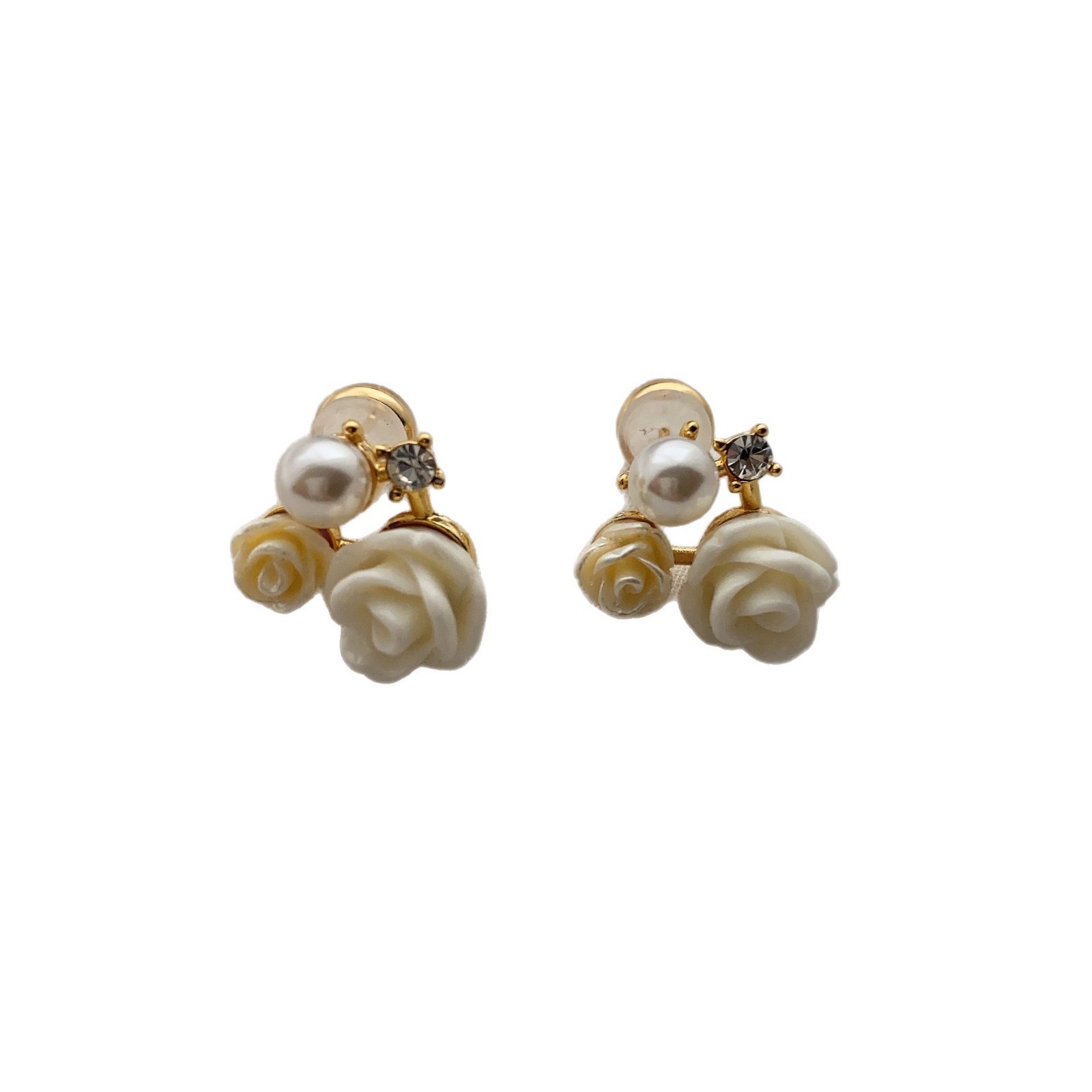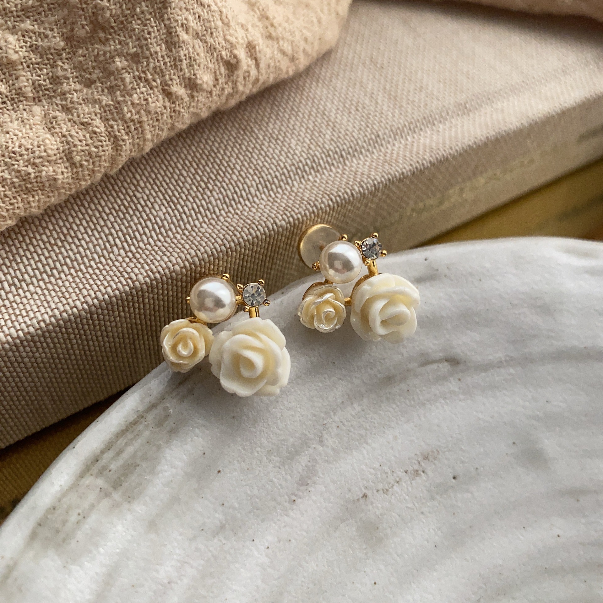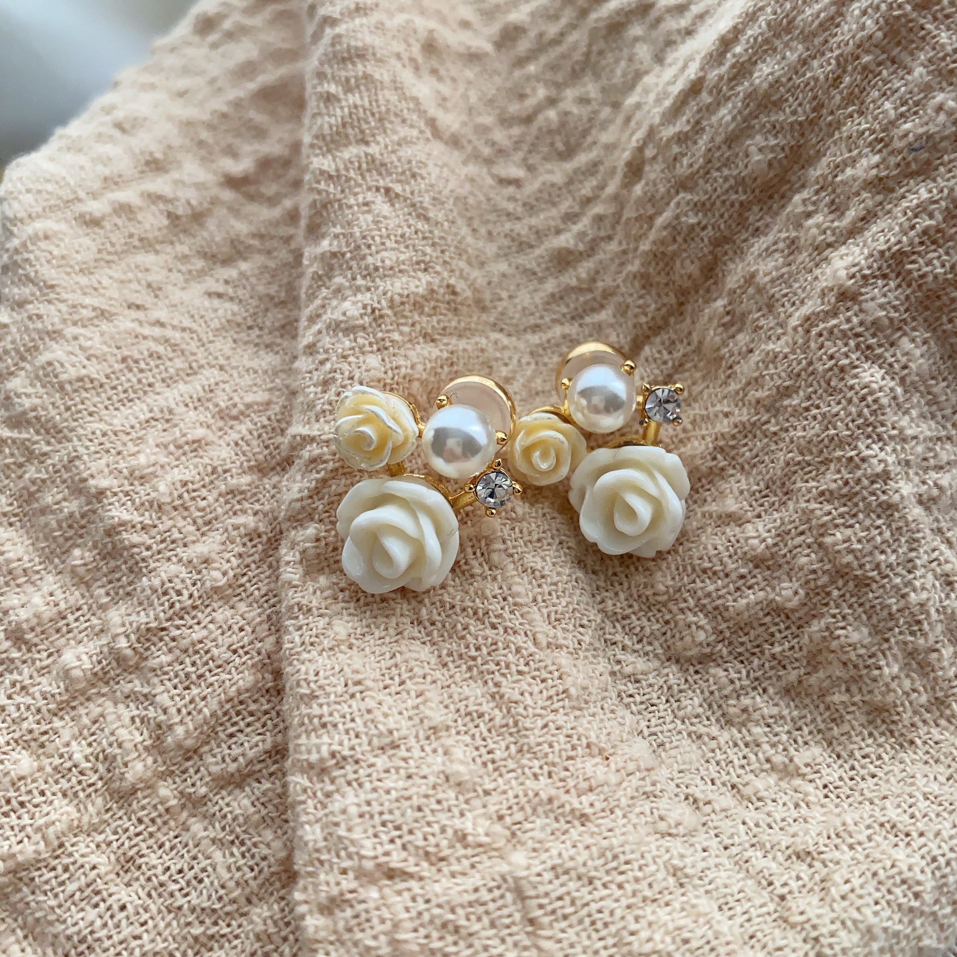 珍珠花朵耳钉甜美法式白色山茶花清新独特复古小众高级感温36起订