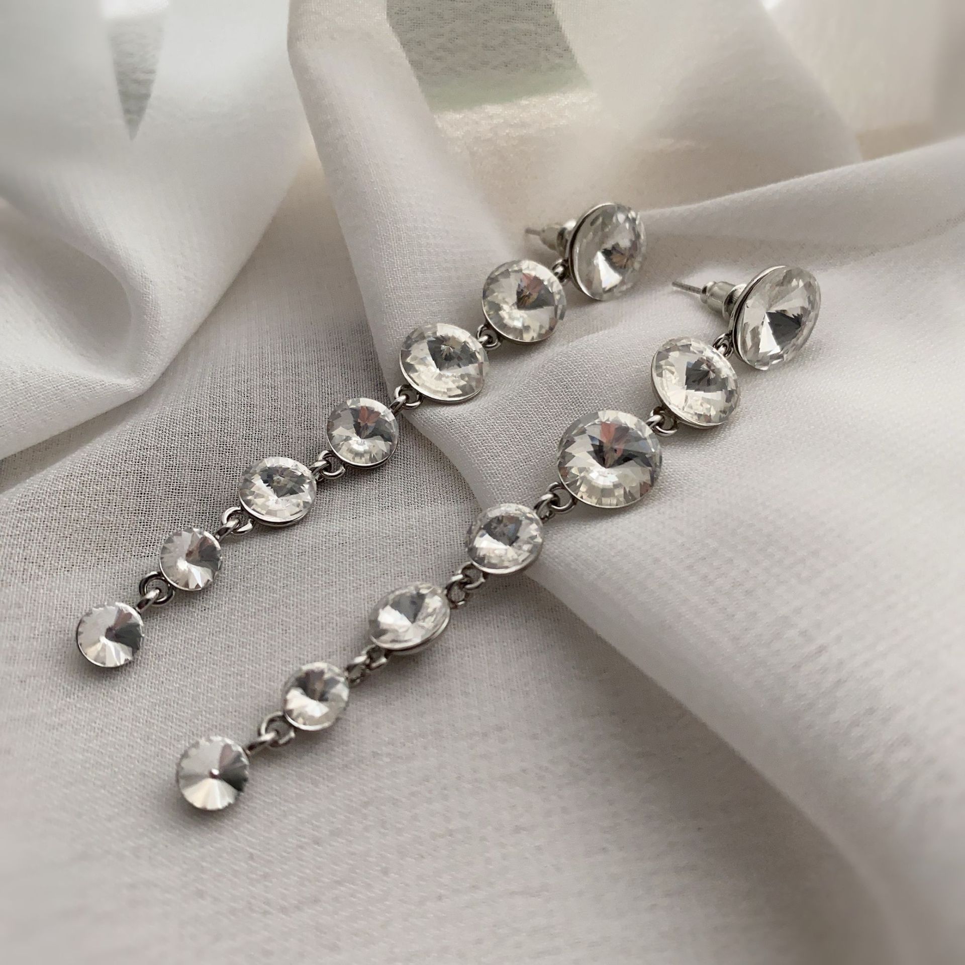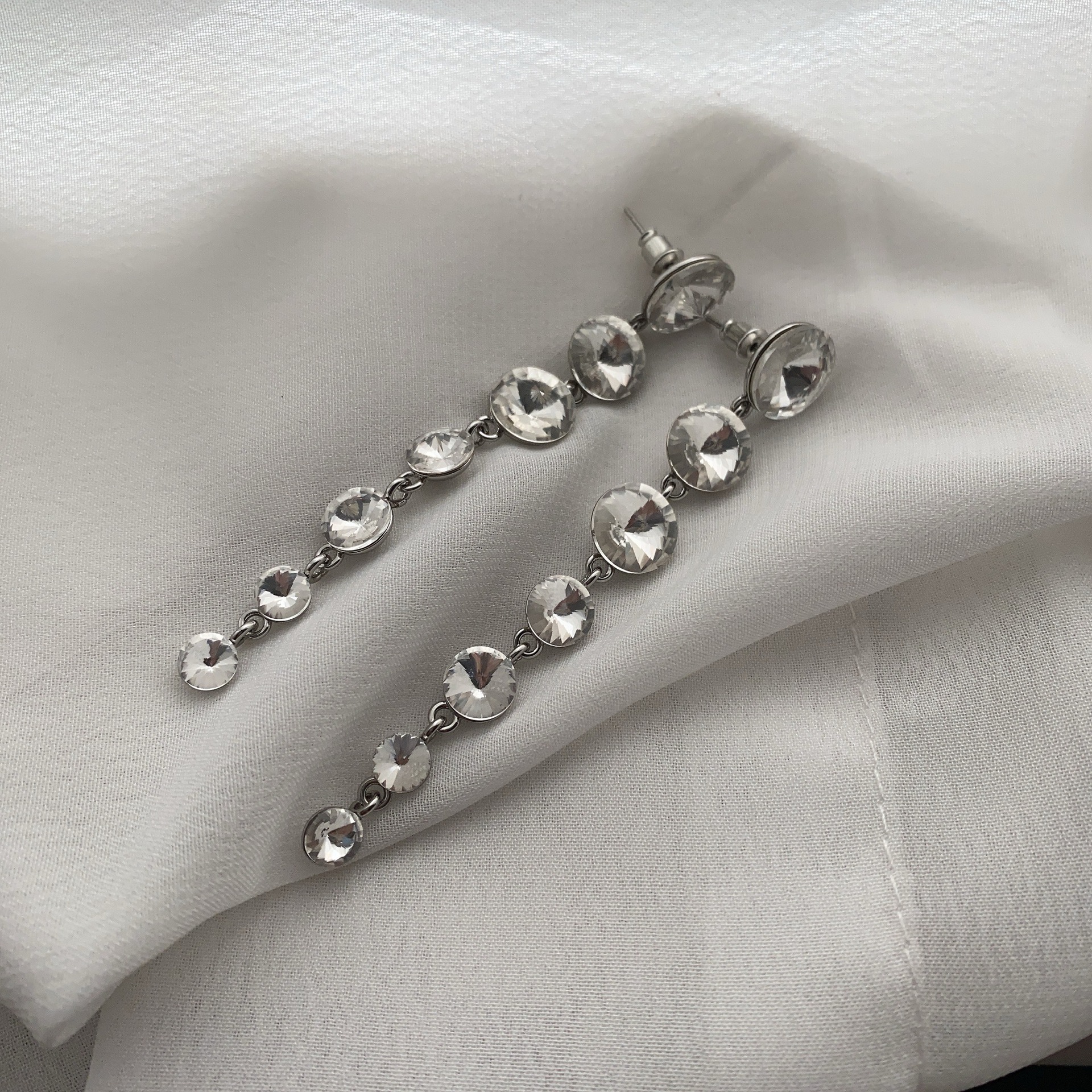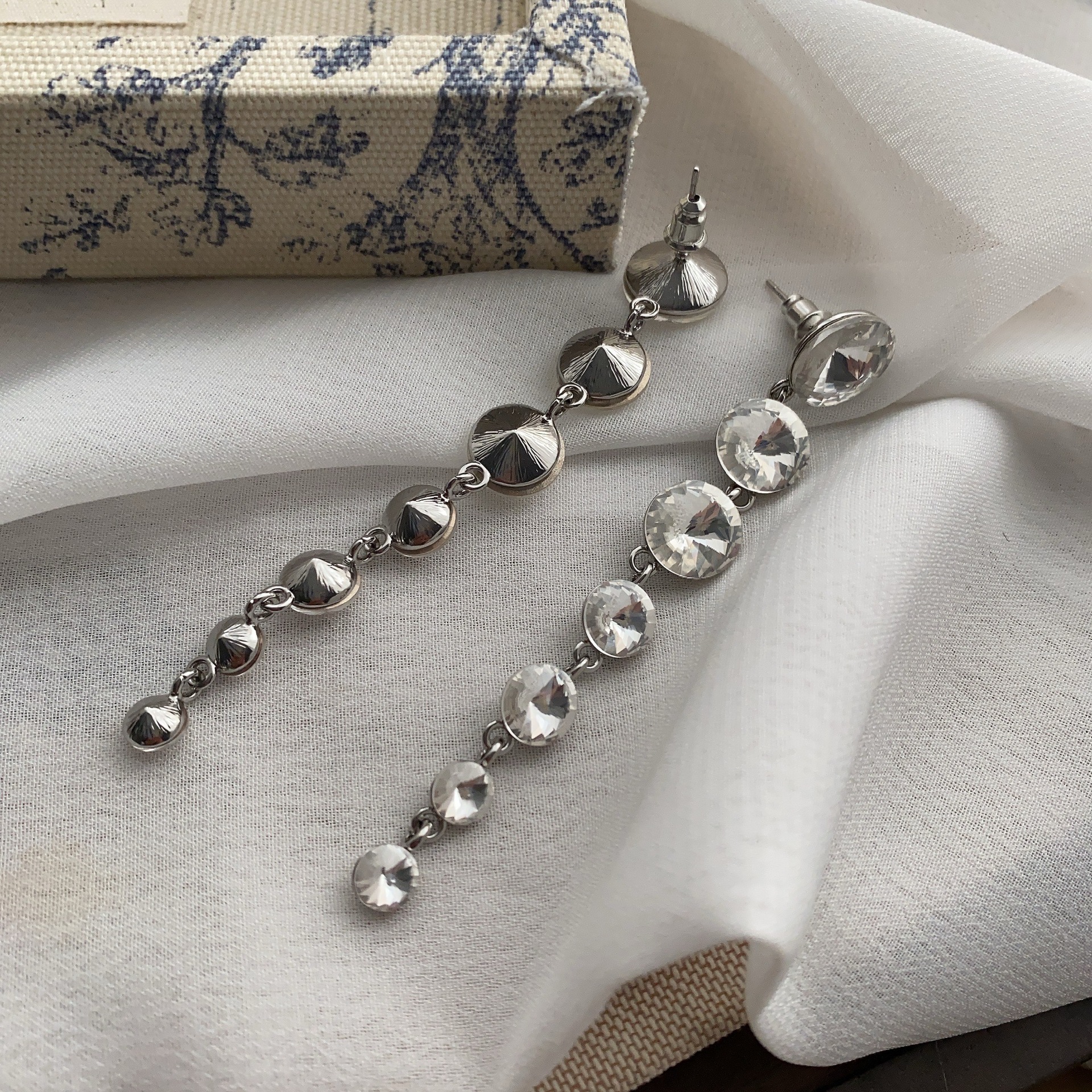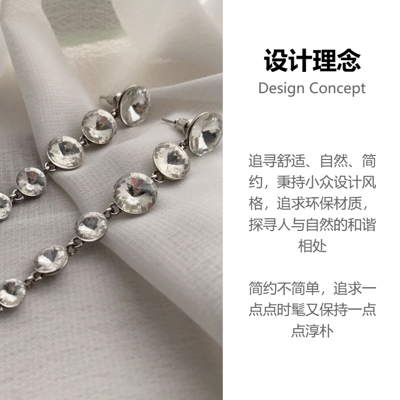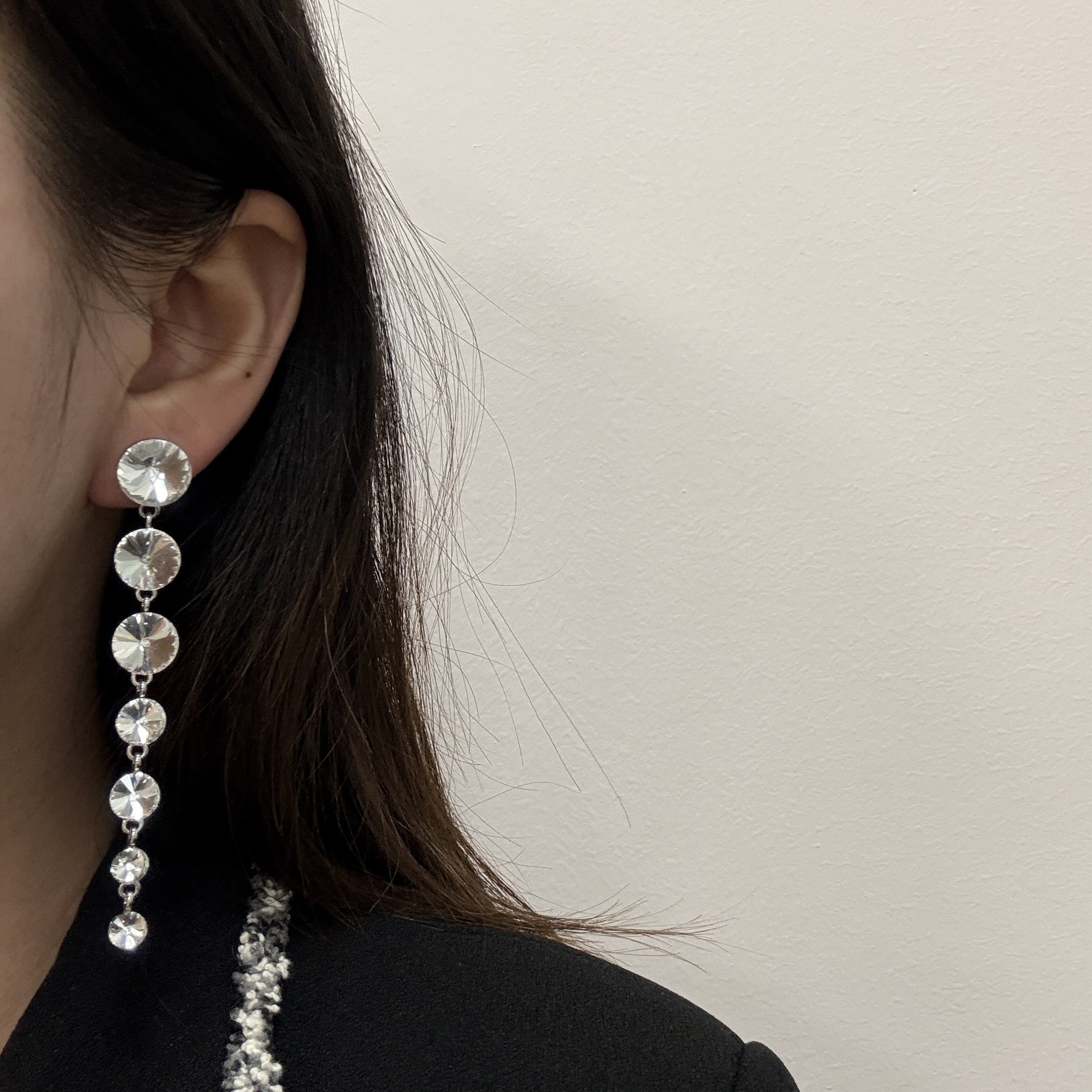 韩国长款圆钻耳坠耳环网红潮人大气耳钉女简约气质百搭显脸瘦耳饰