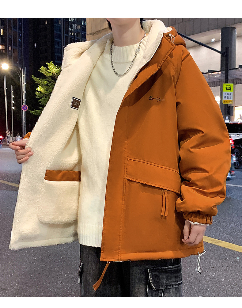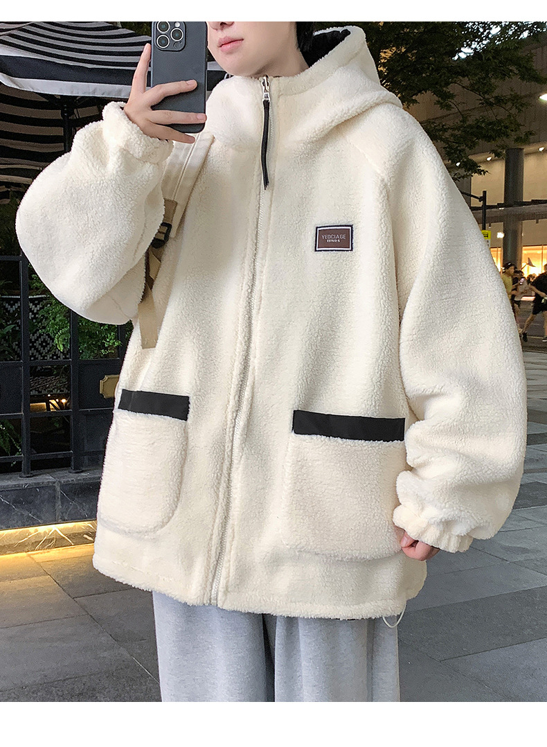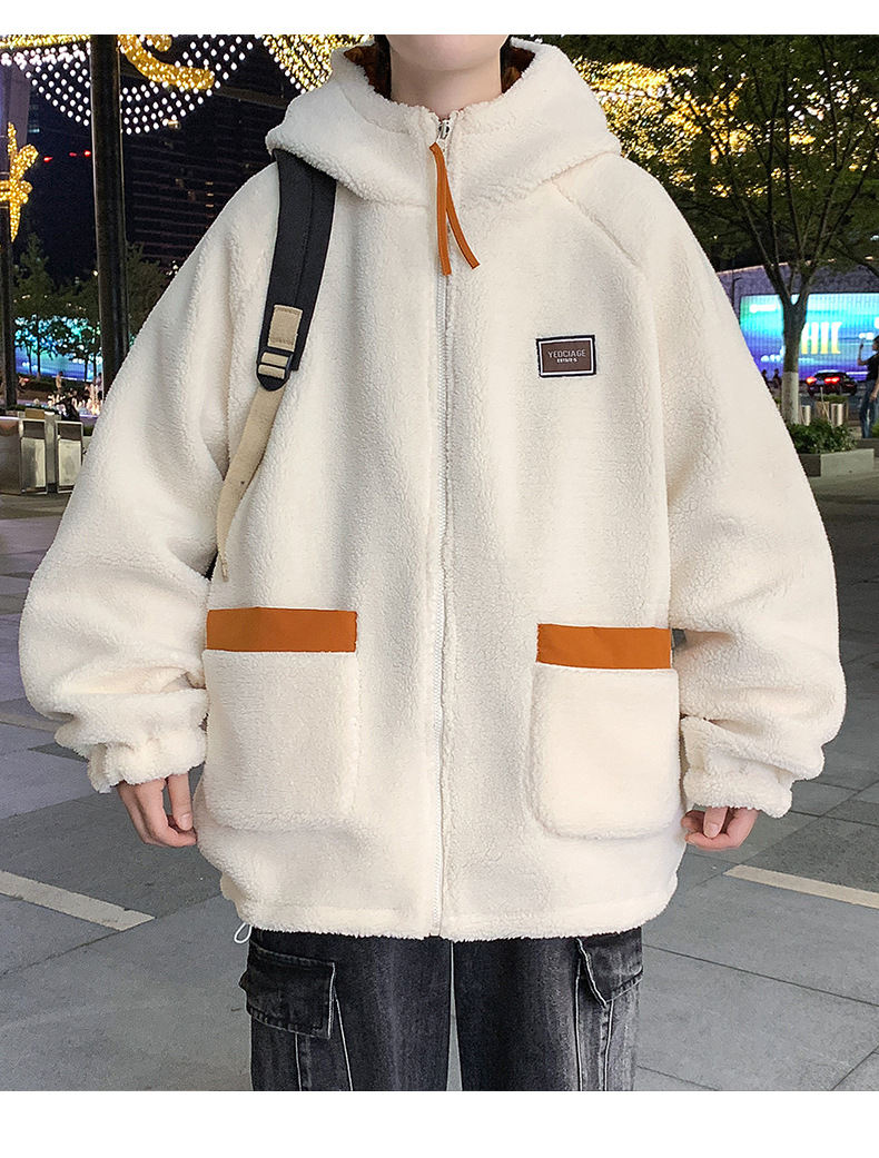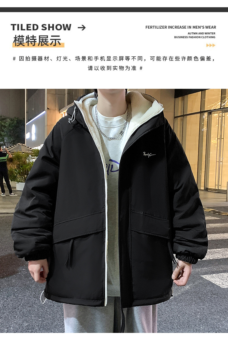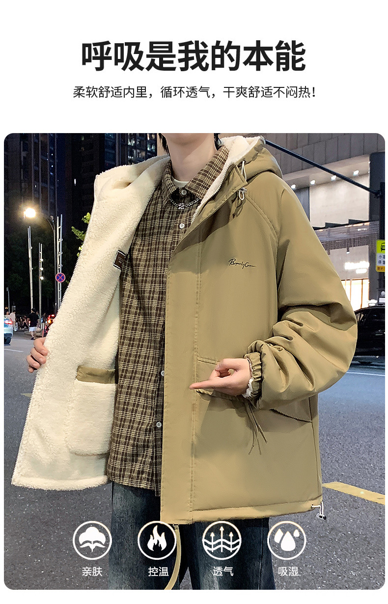 羊羔绒外套男秋冬季加绒加厚休闲宽松连帽夹克男生双面穿冬装棉衣