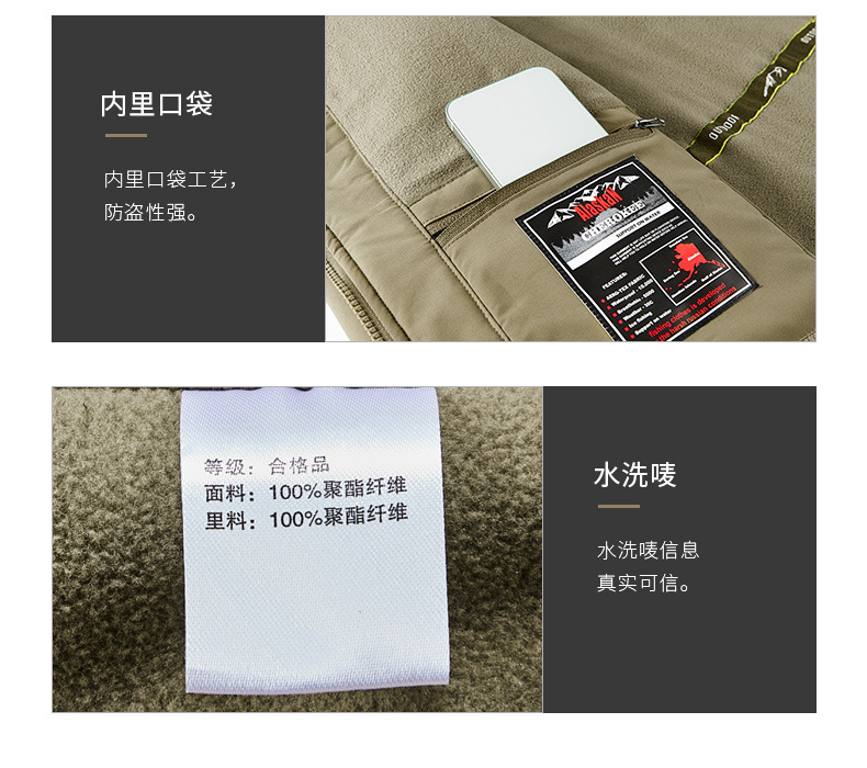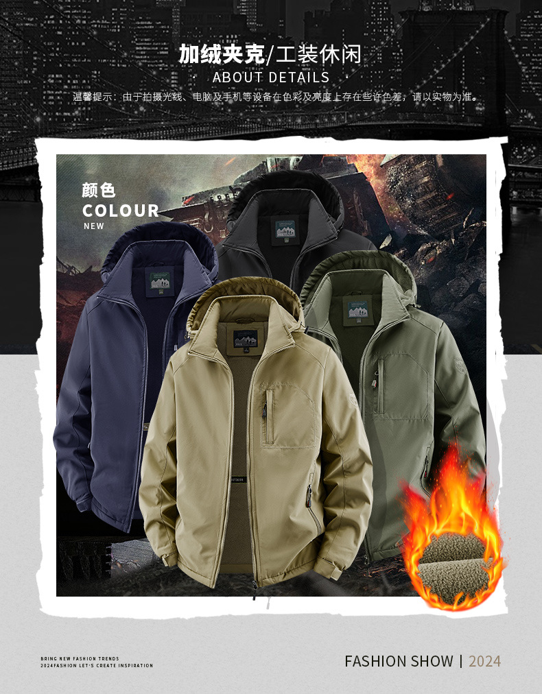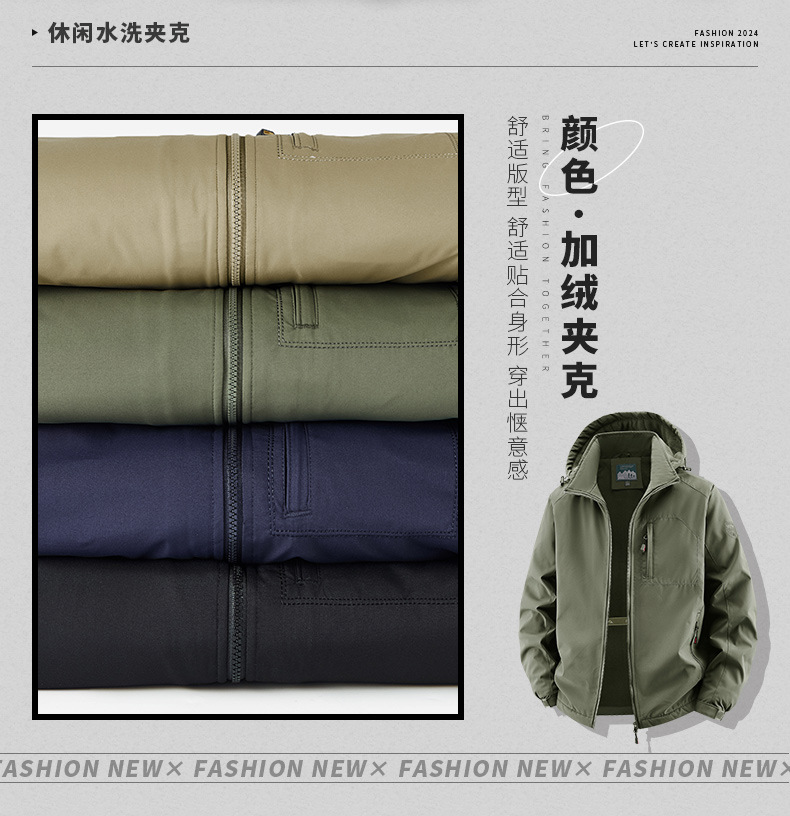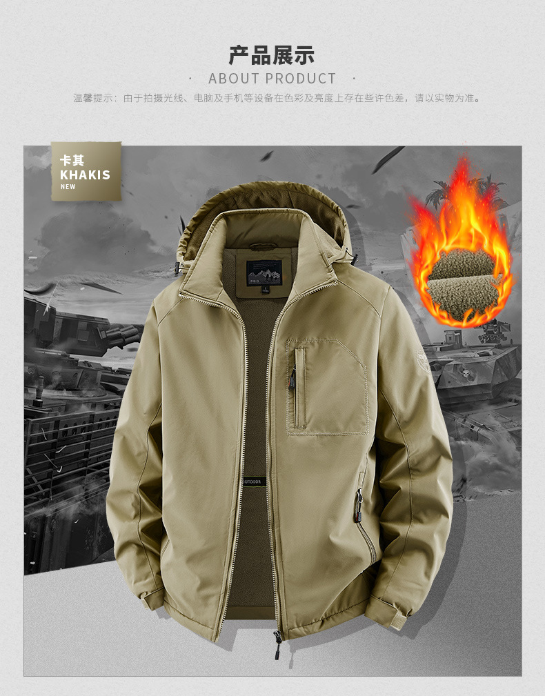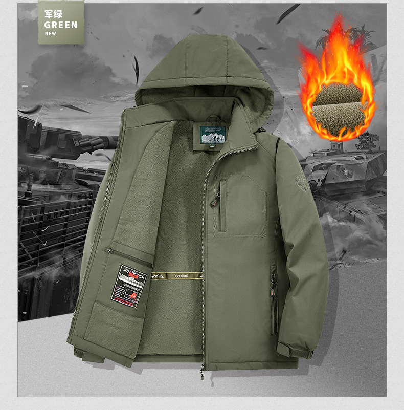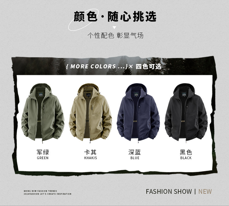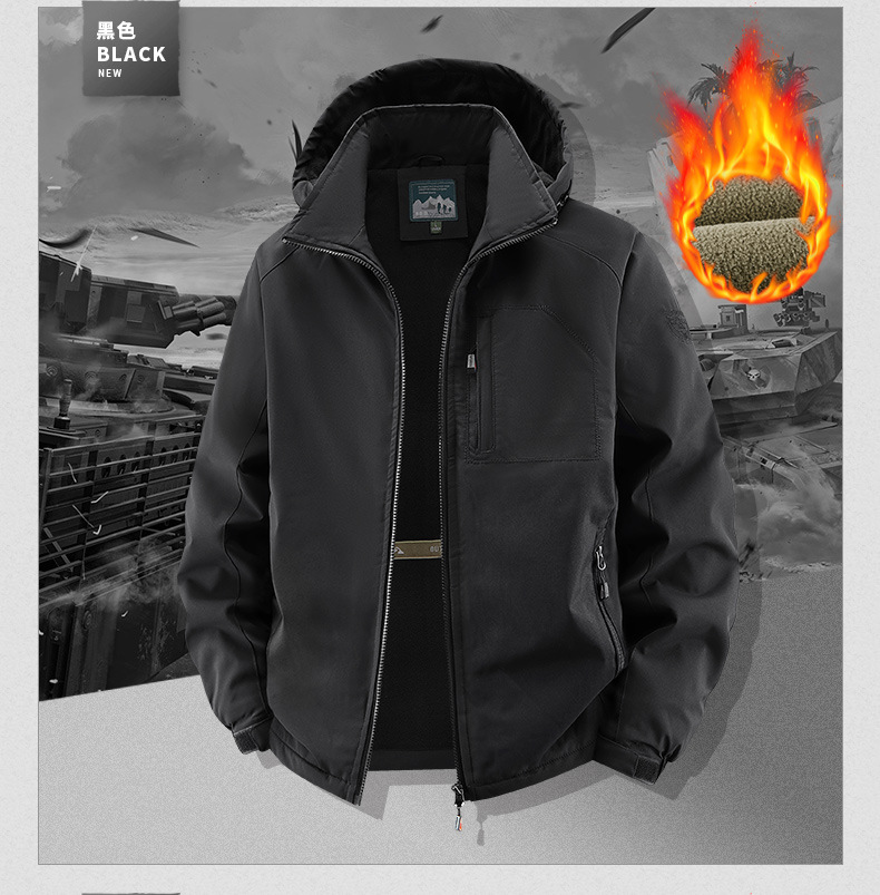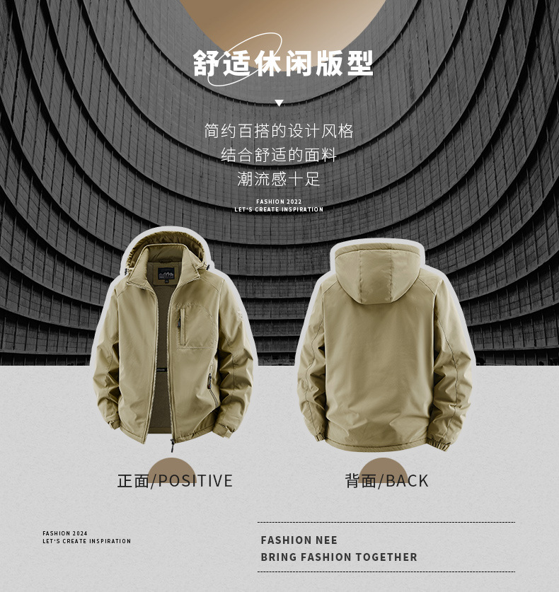 外套男秋冬加绒加厚户外冲锋衣宽松休闲百搭防风防水大码运动夹克