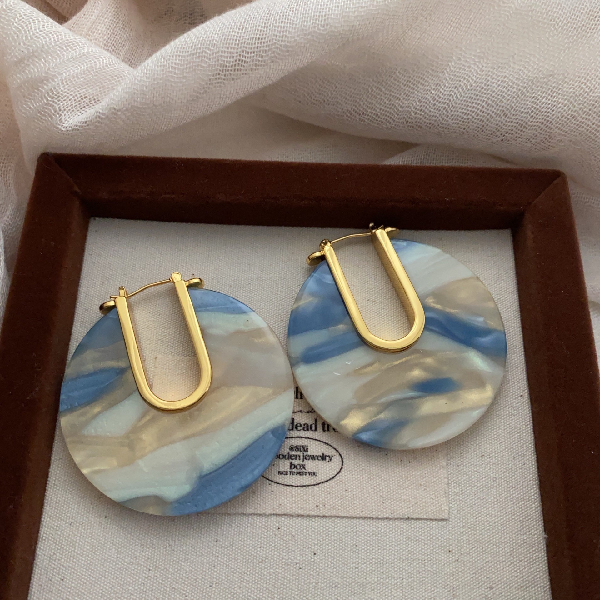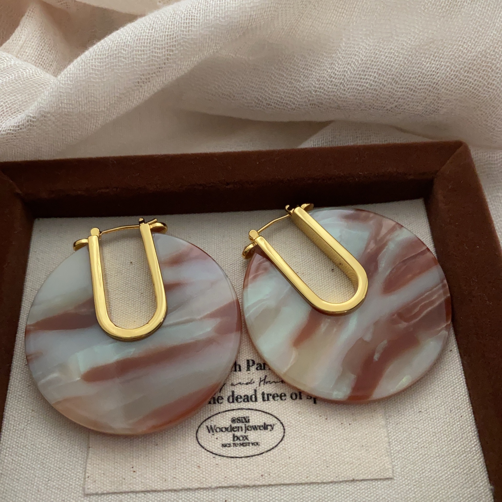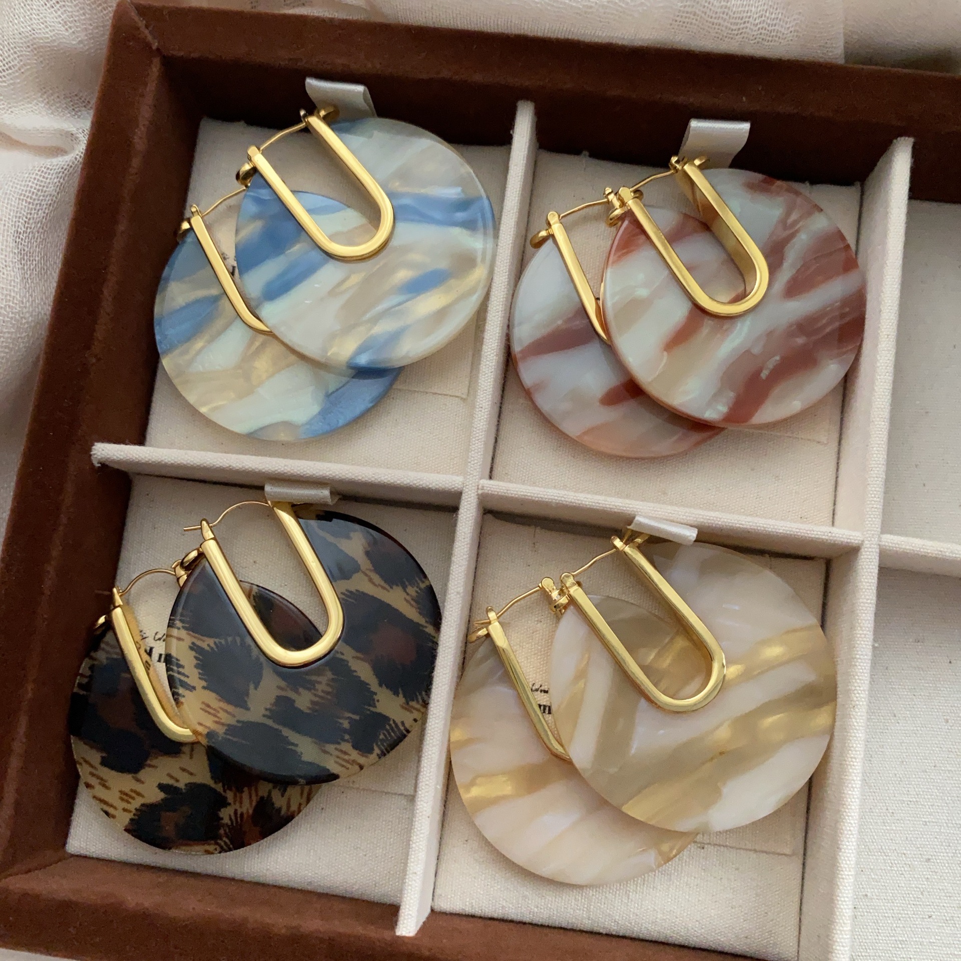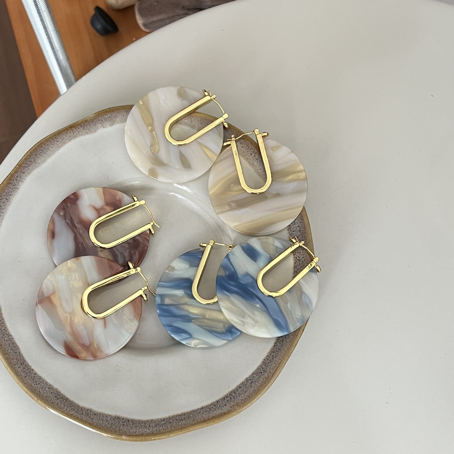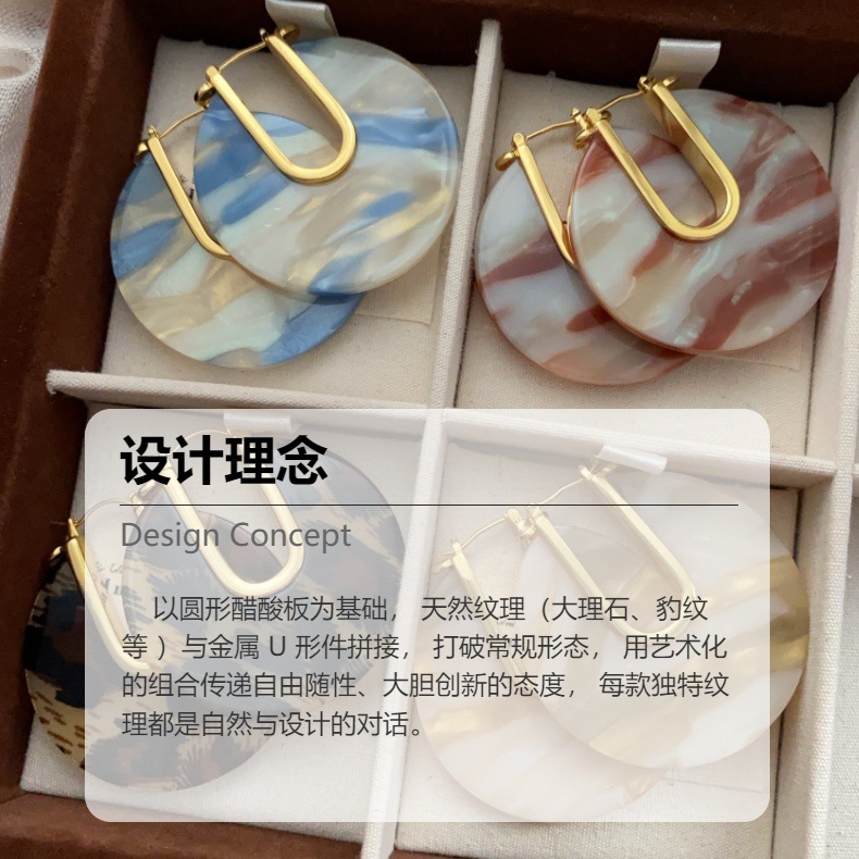 时尚圆形醋酸独特大理石纹耳钉创新气质高级简约大气个性百搭耳饰