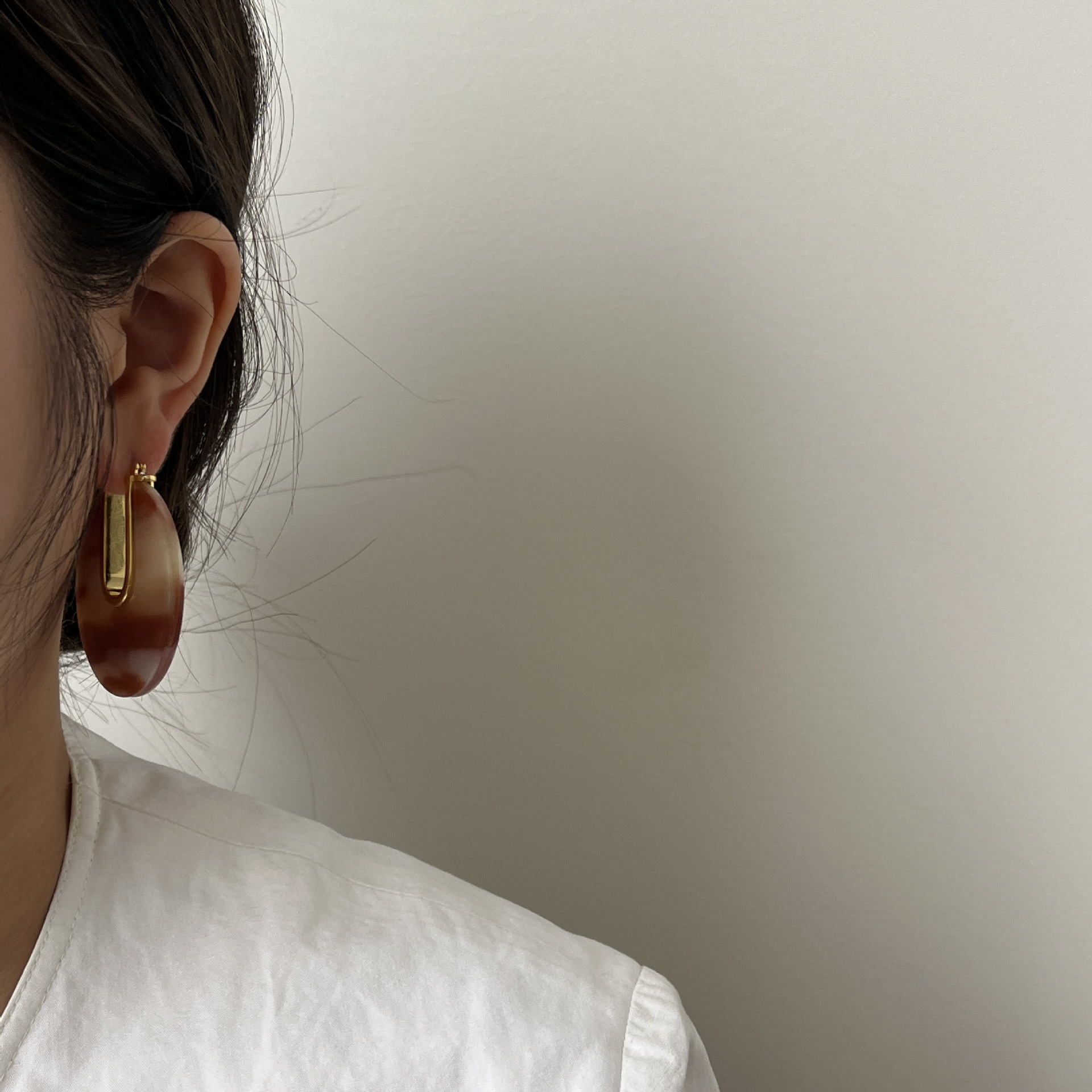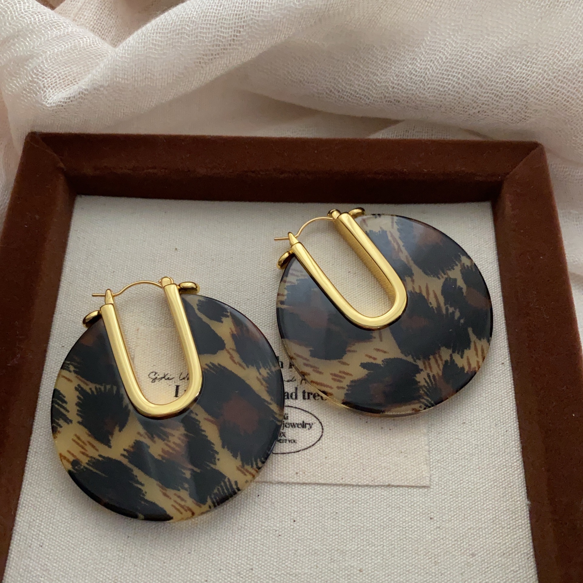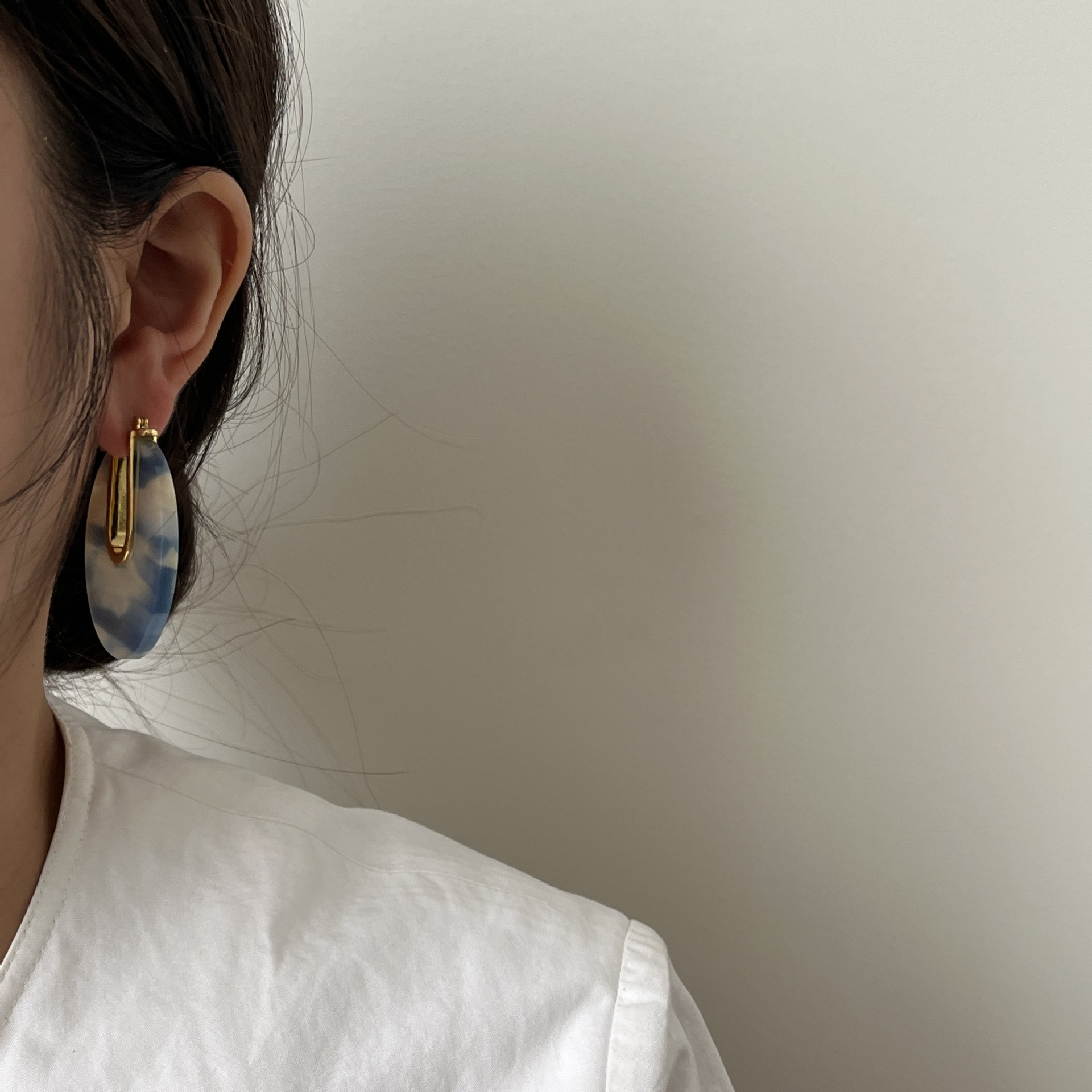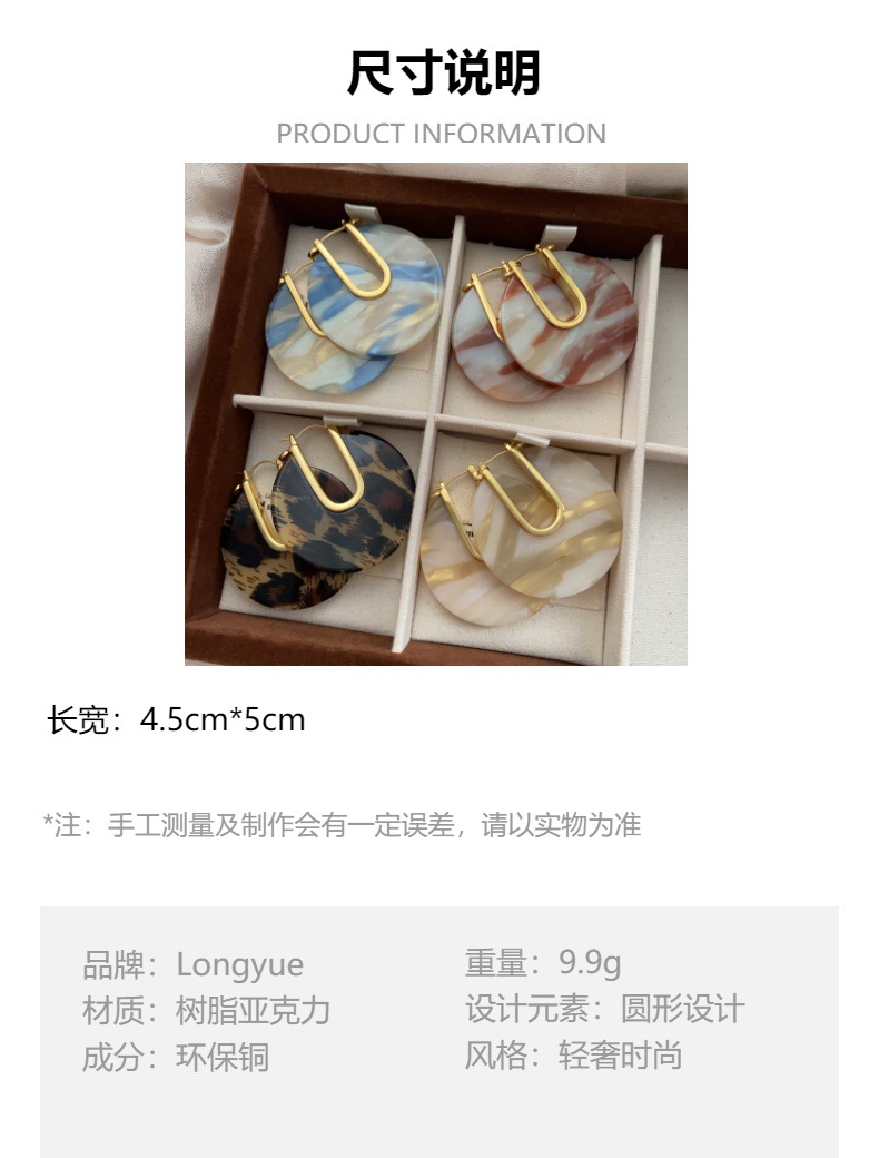 时尚圆形醋酸独特大理石纹耳钉创新气质高级简约大气个性百搭耳饰