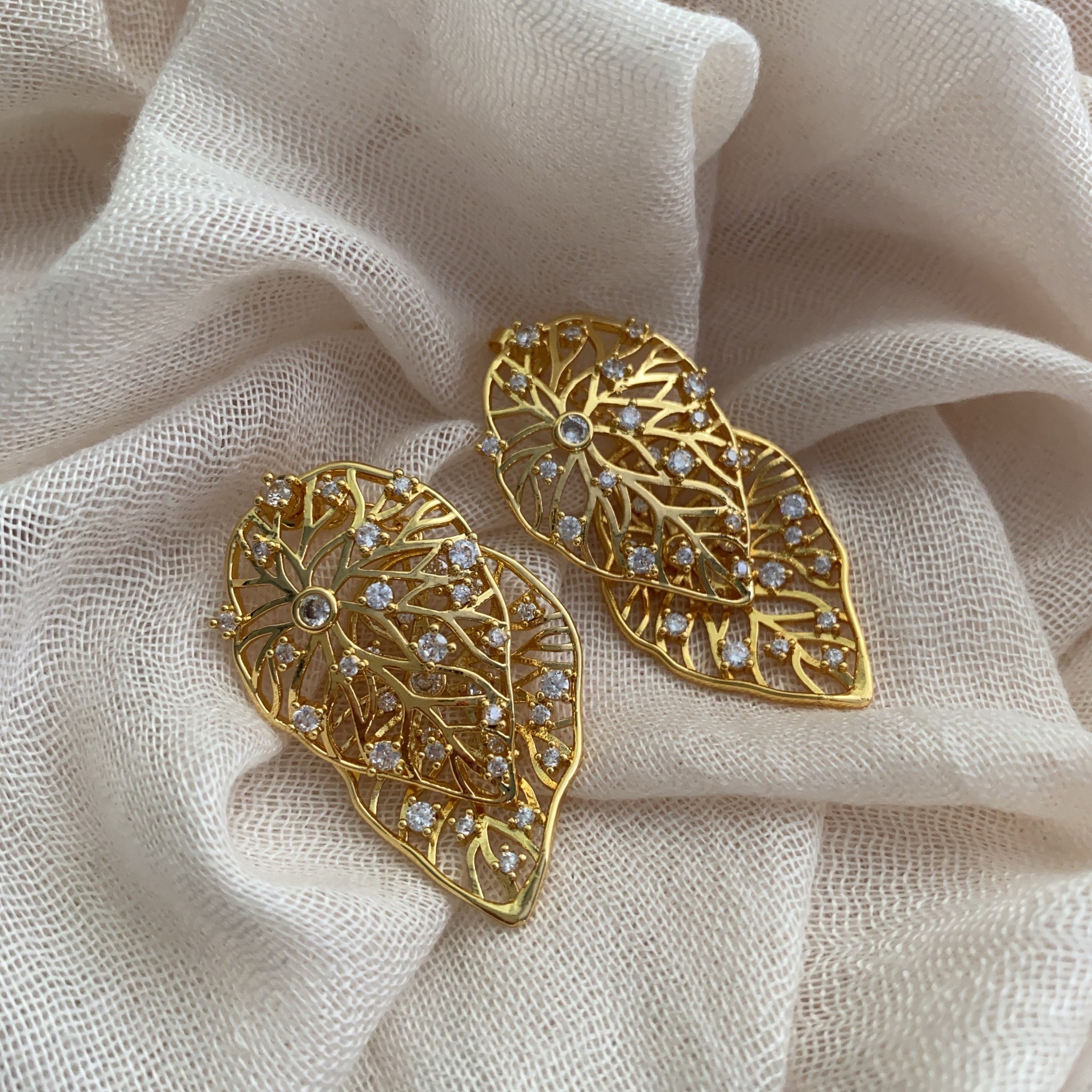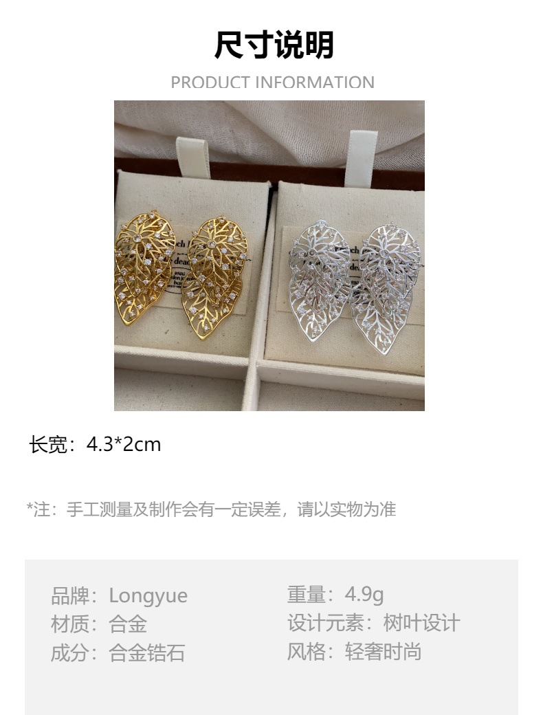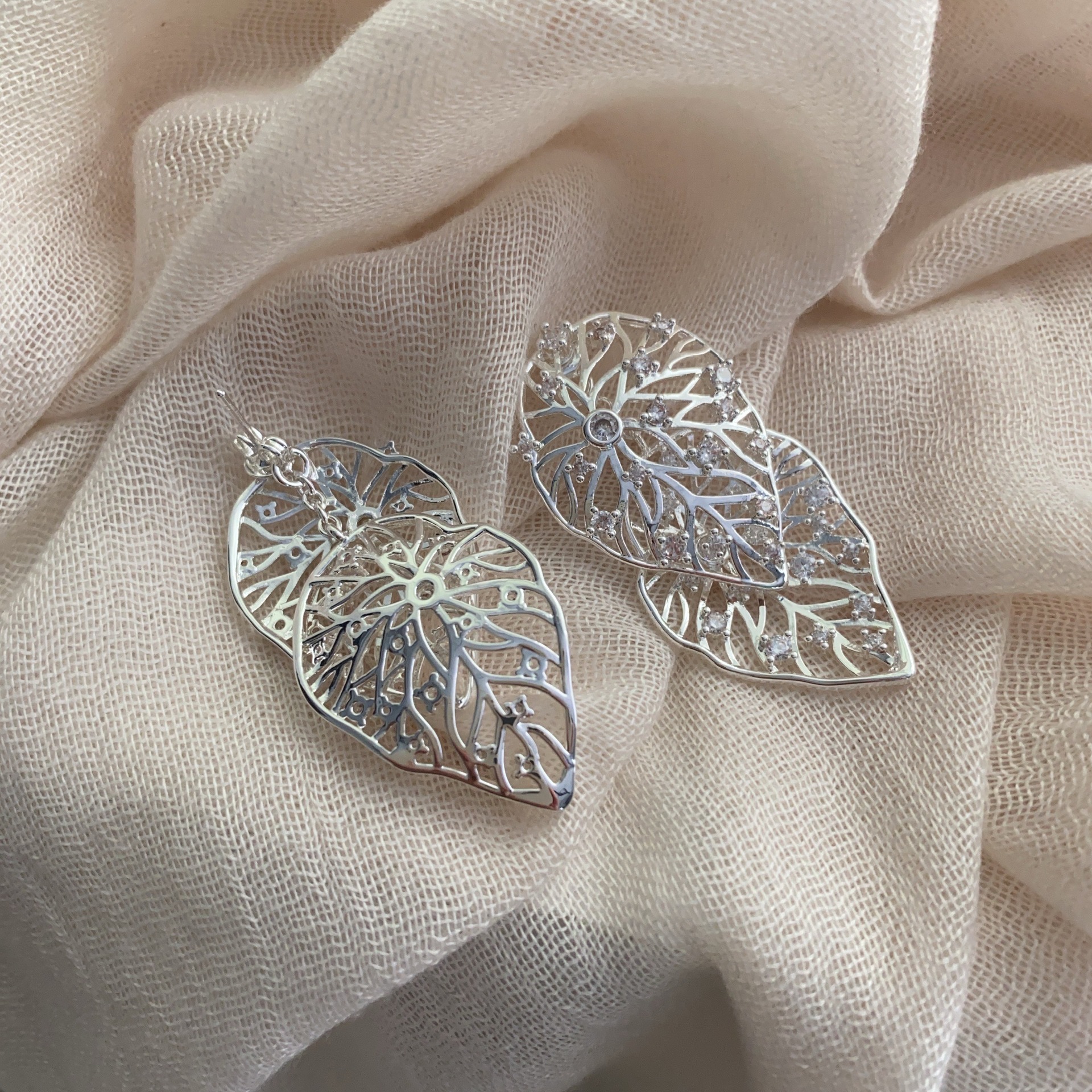 法式复古精致小众设计镂空波光粼粼叶片耳环一款两戴皓石点缀耳钉