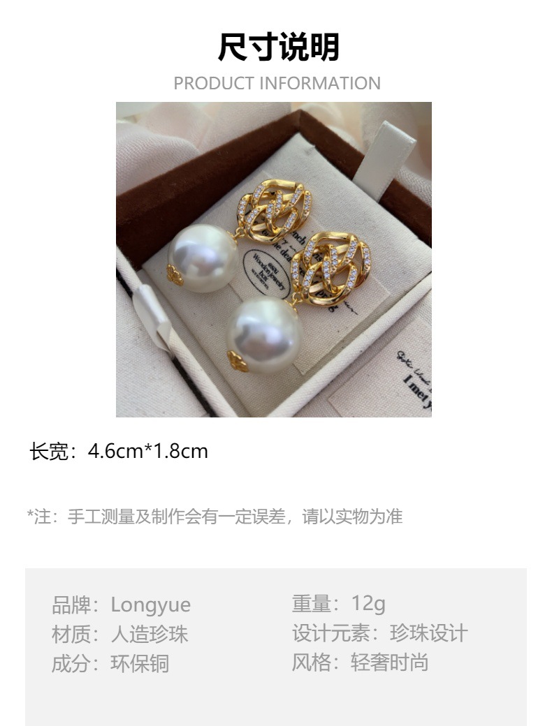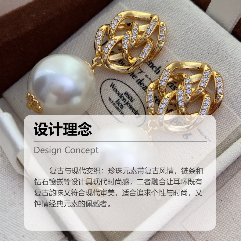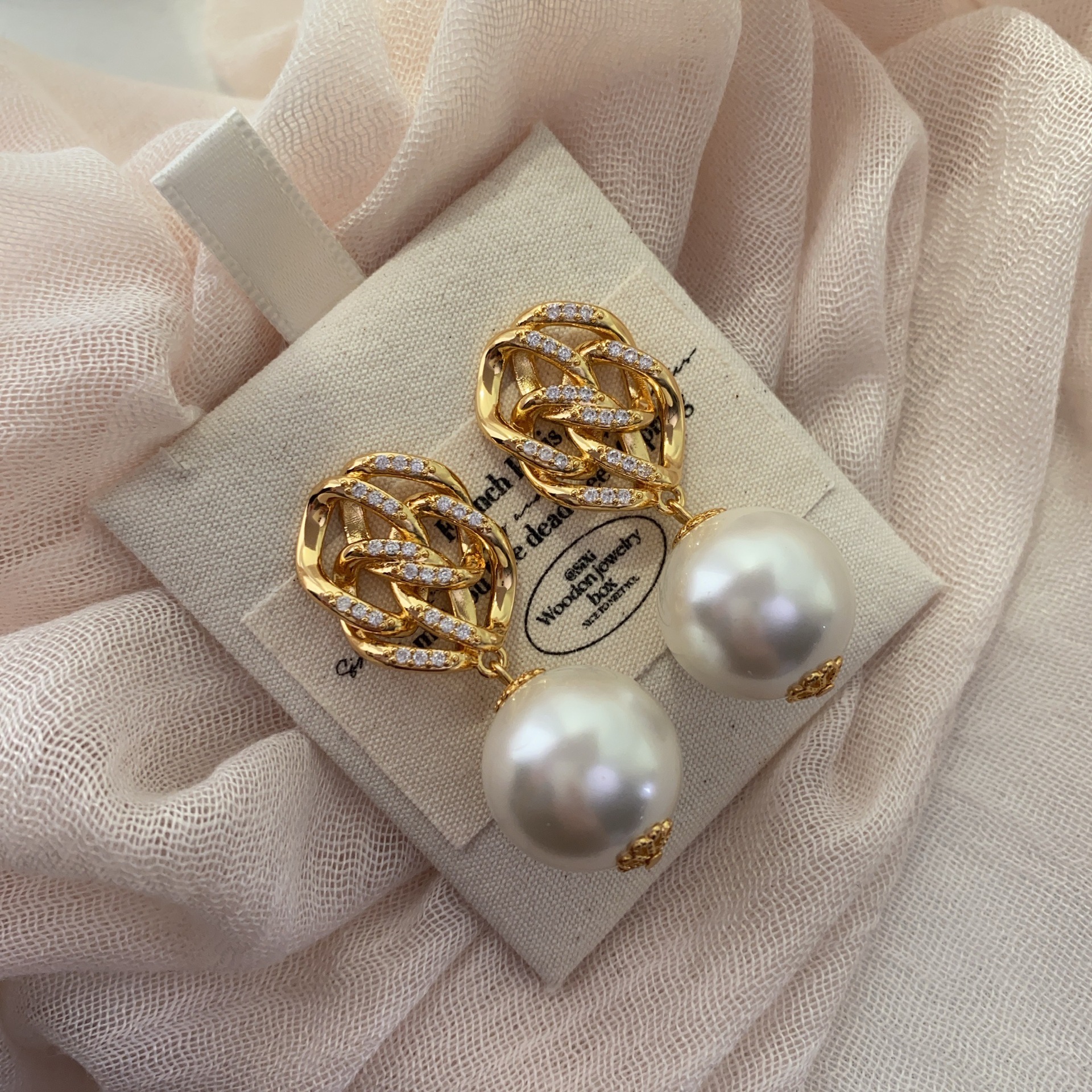 轻奢高级感气质小香风耳钉欧美夸张优雅个性大珍珠吊坠通勤耳环女