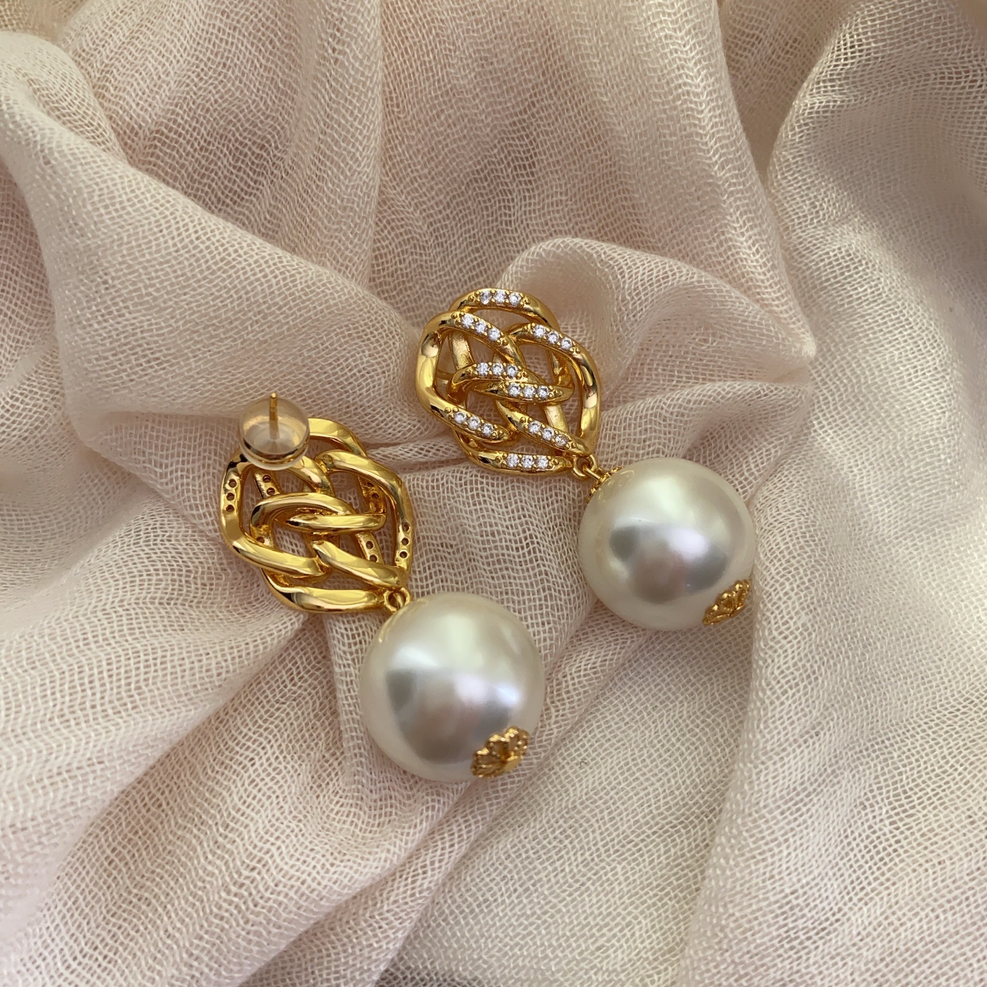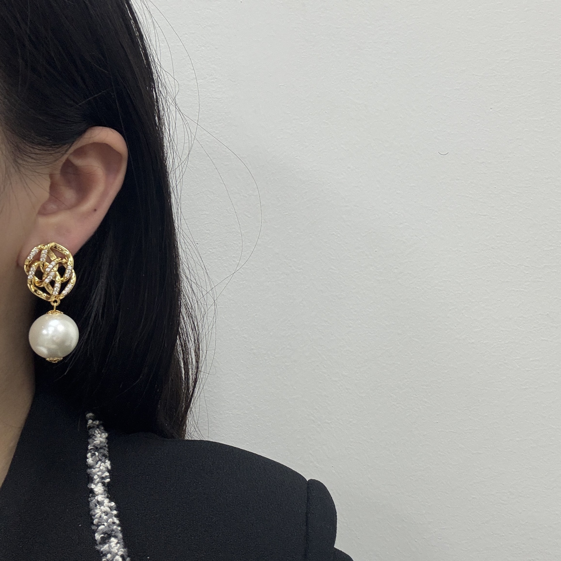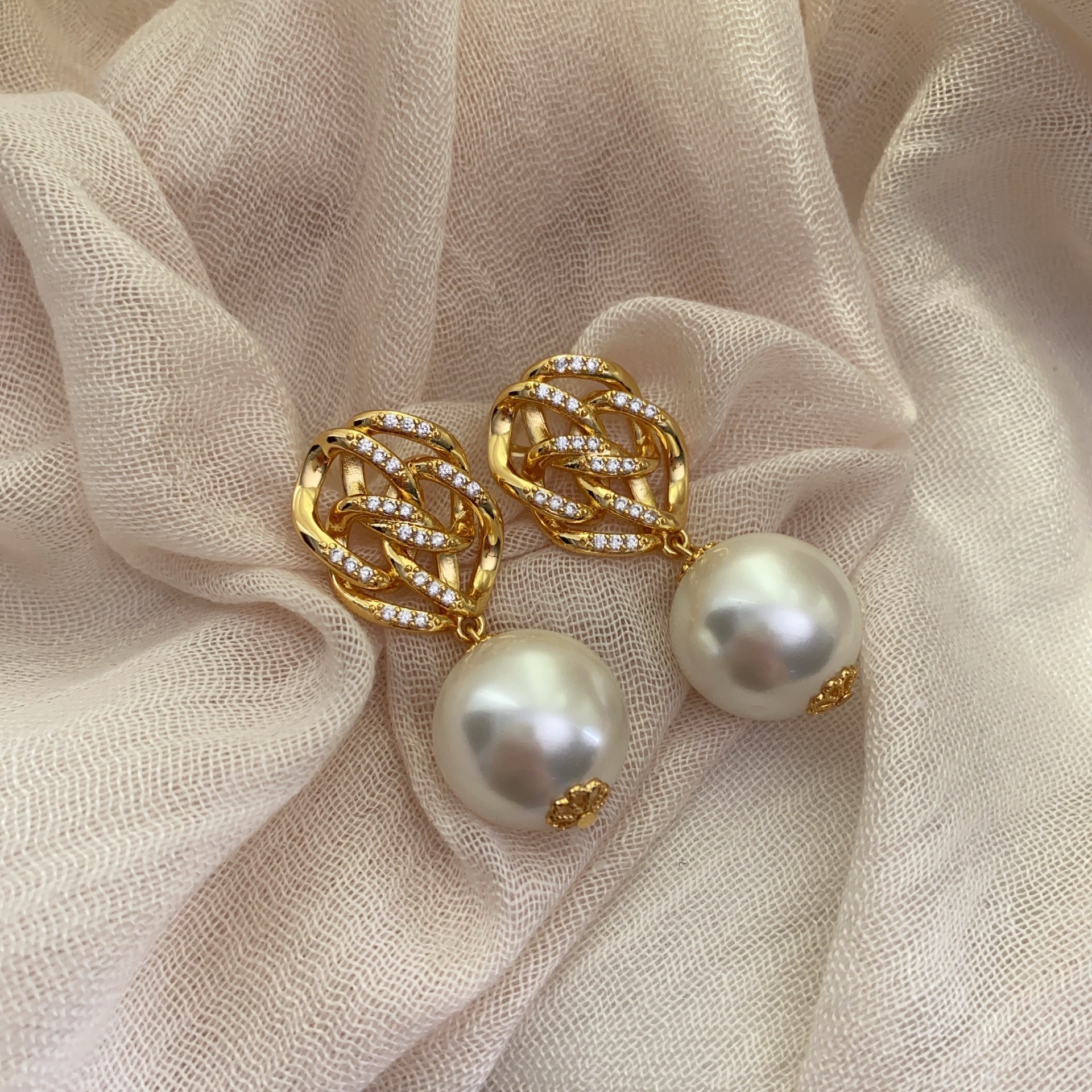 轻奢高级感气质小香风耳钉欧美夸张优雅个性大珍珠吊坠通勤耳环女