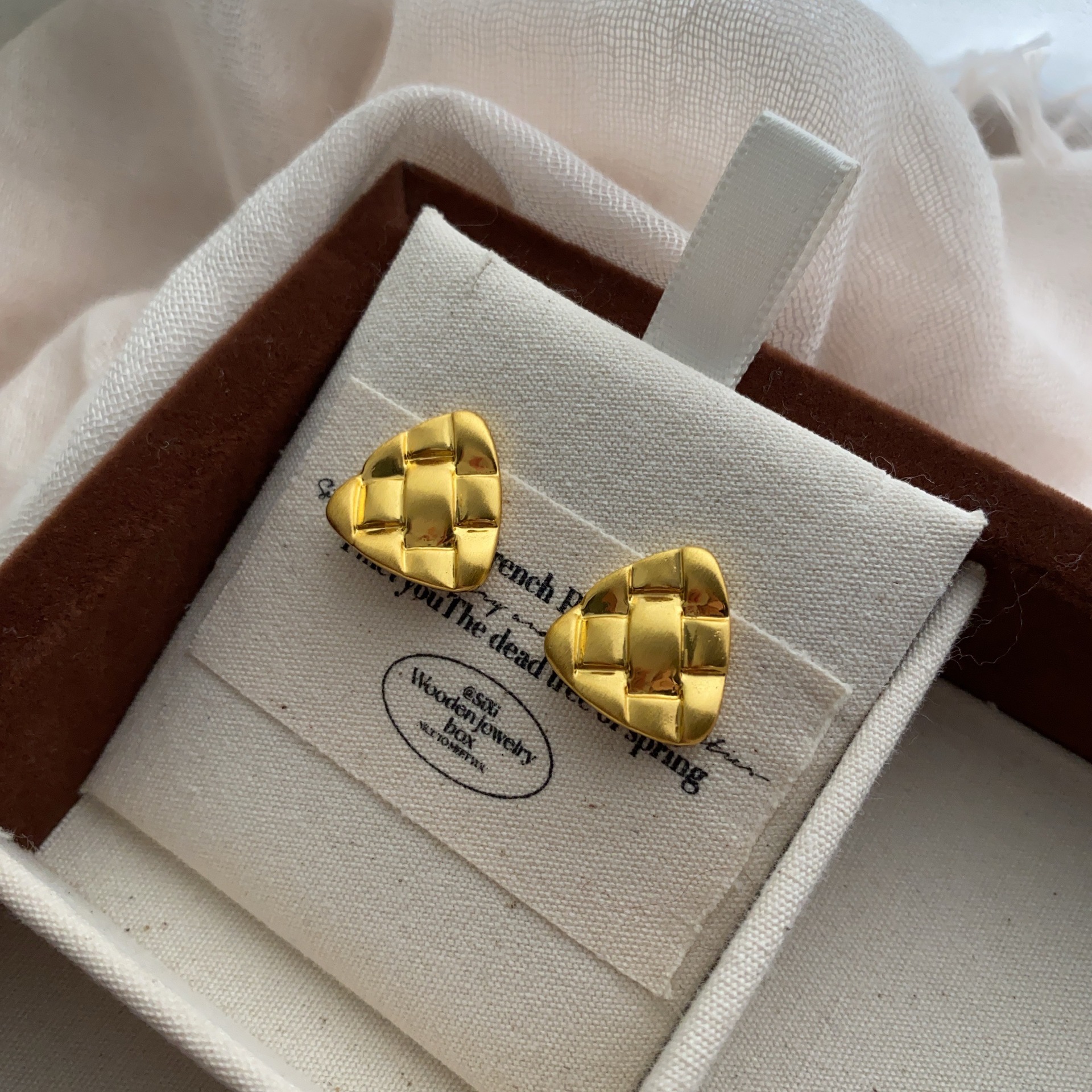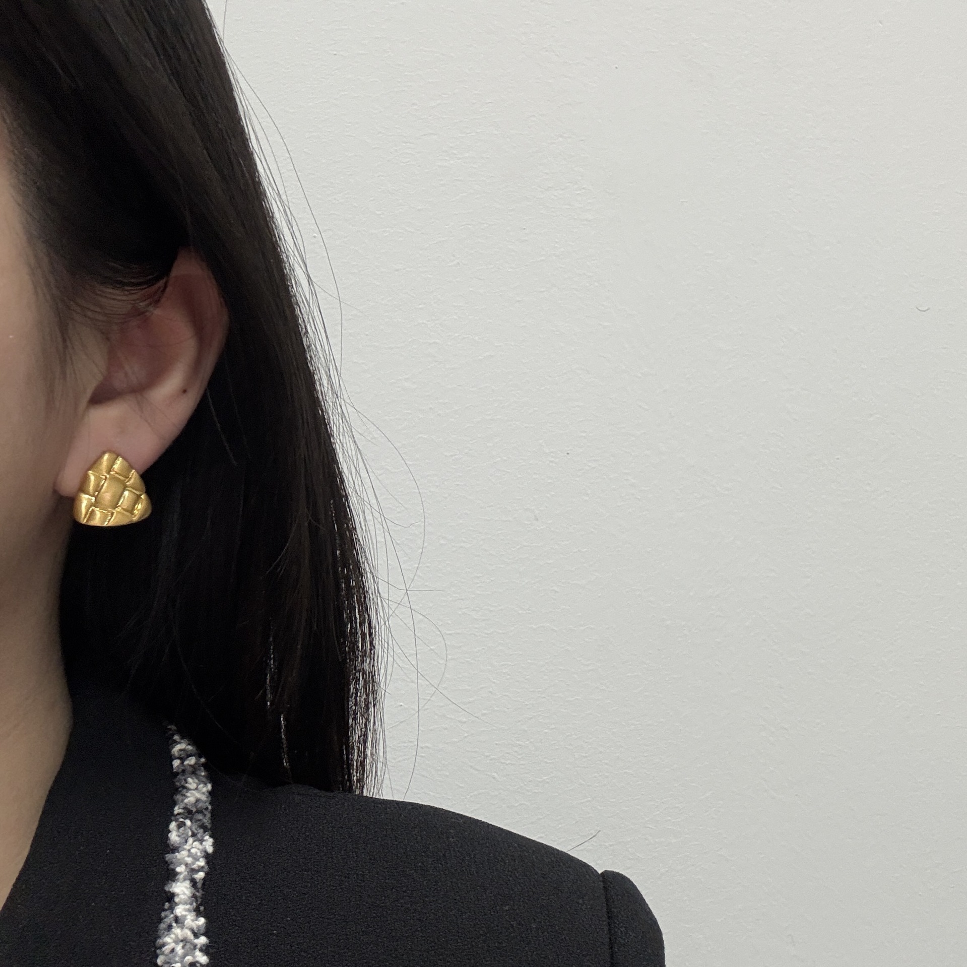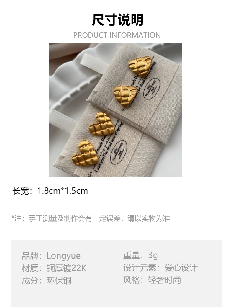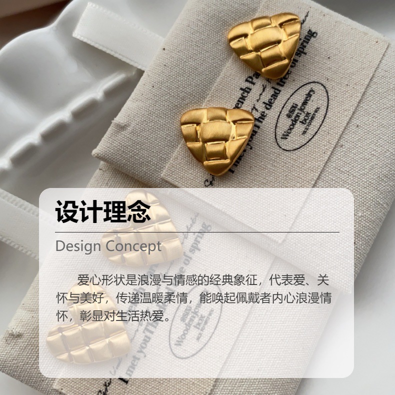 小众设计爱心款耳钉时尚气质金色菱格爱心心形个性百搭通勤耳饰女