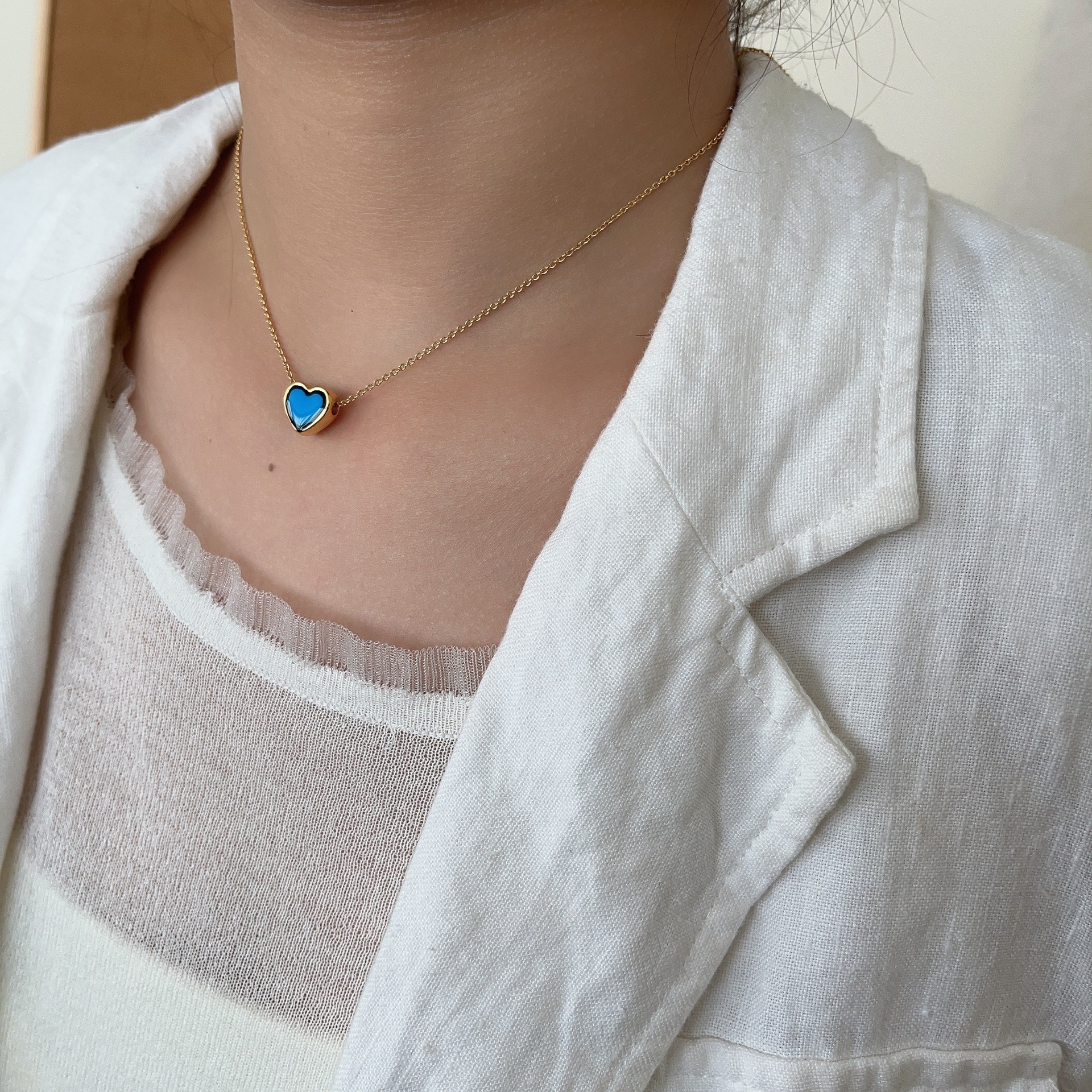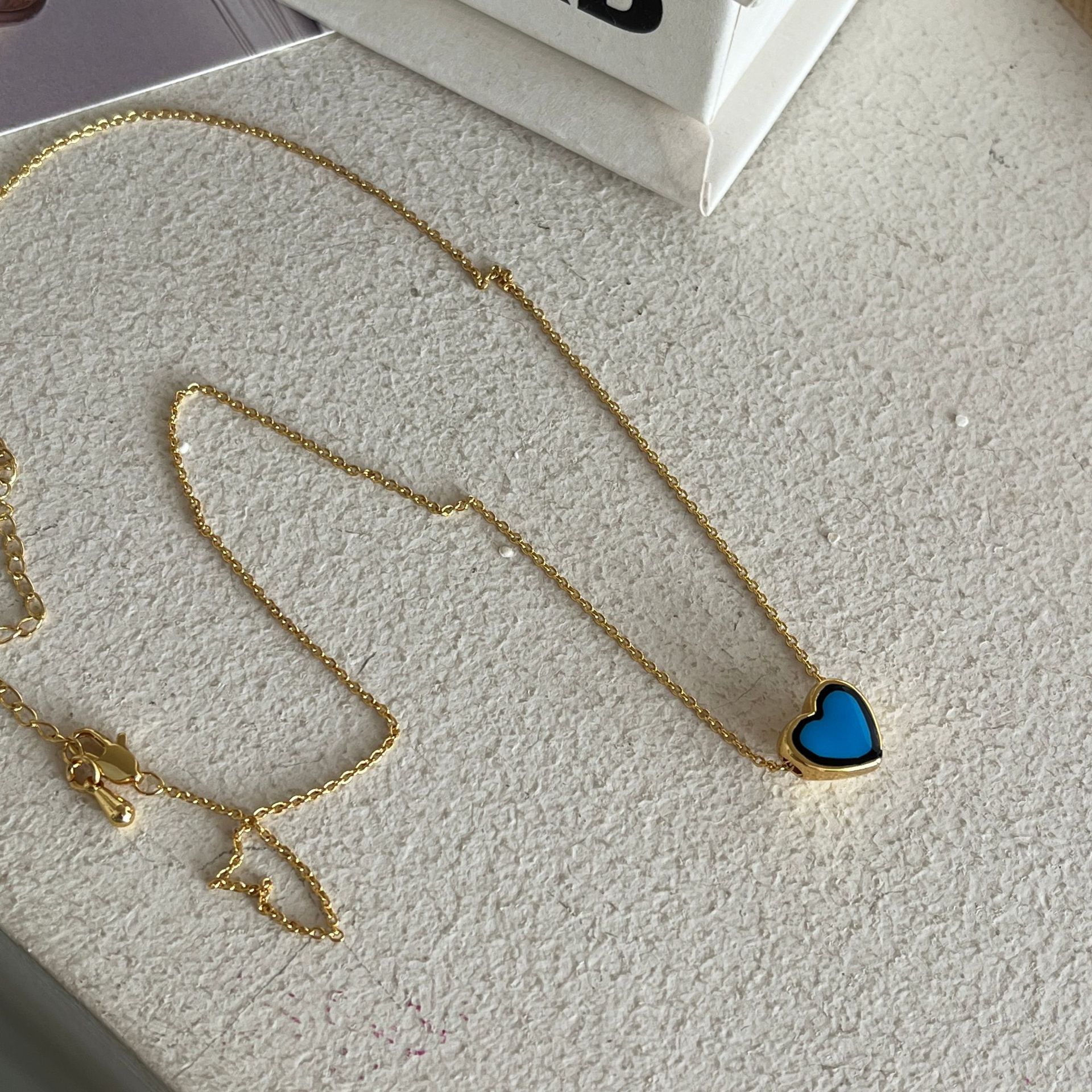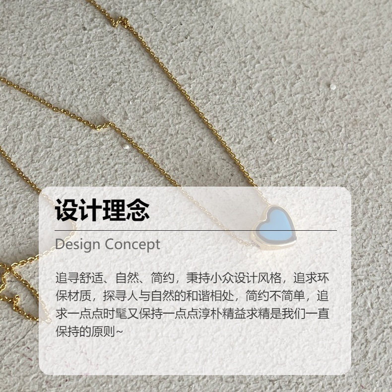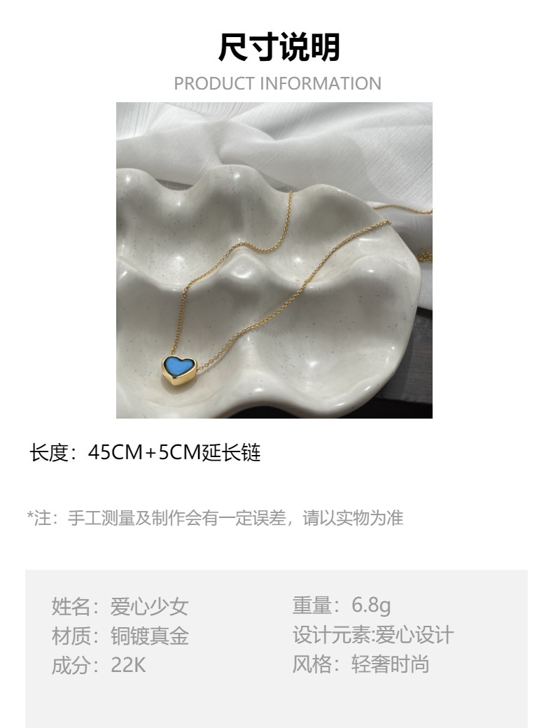 金黄色蓝石爱心可调节项链女珐琅滴釉小众简约时尚心形锁骨链百搭
