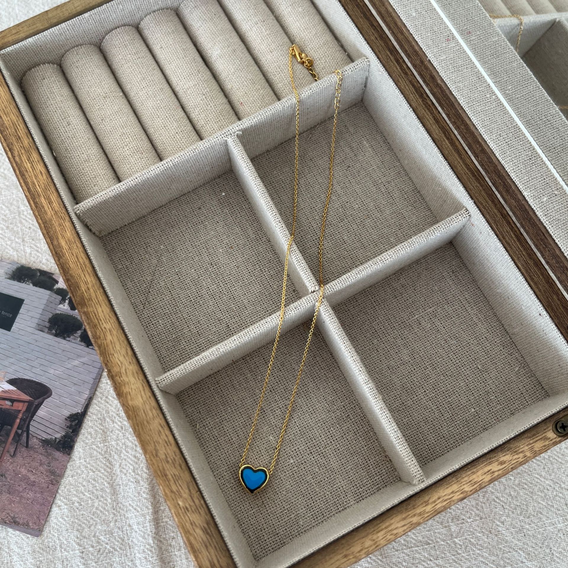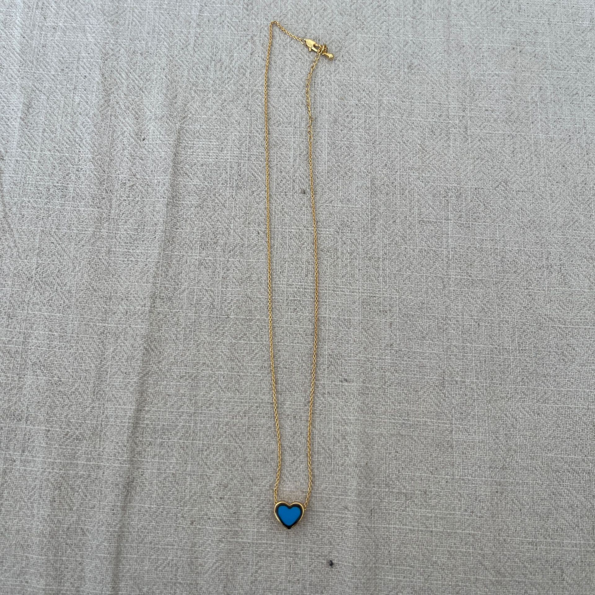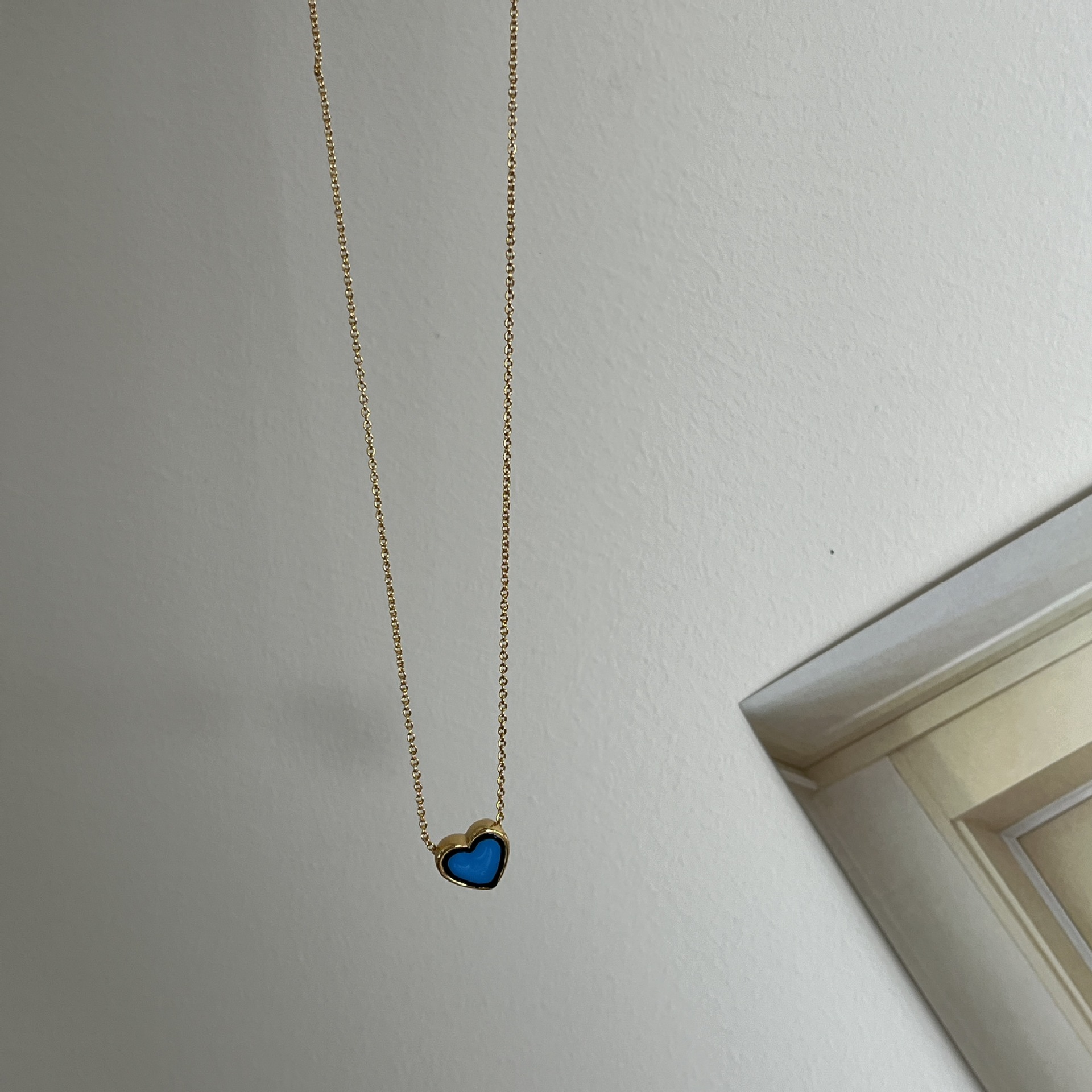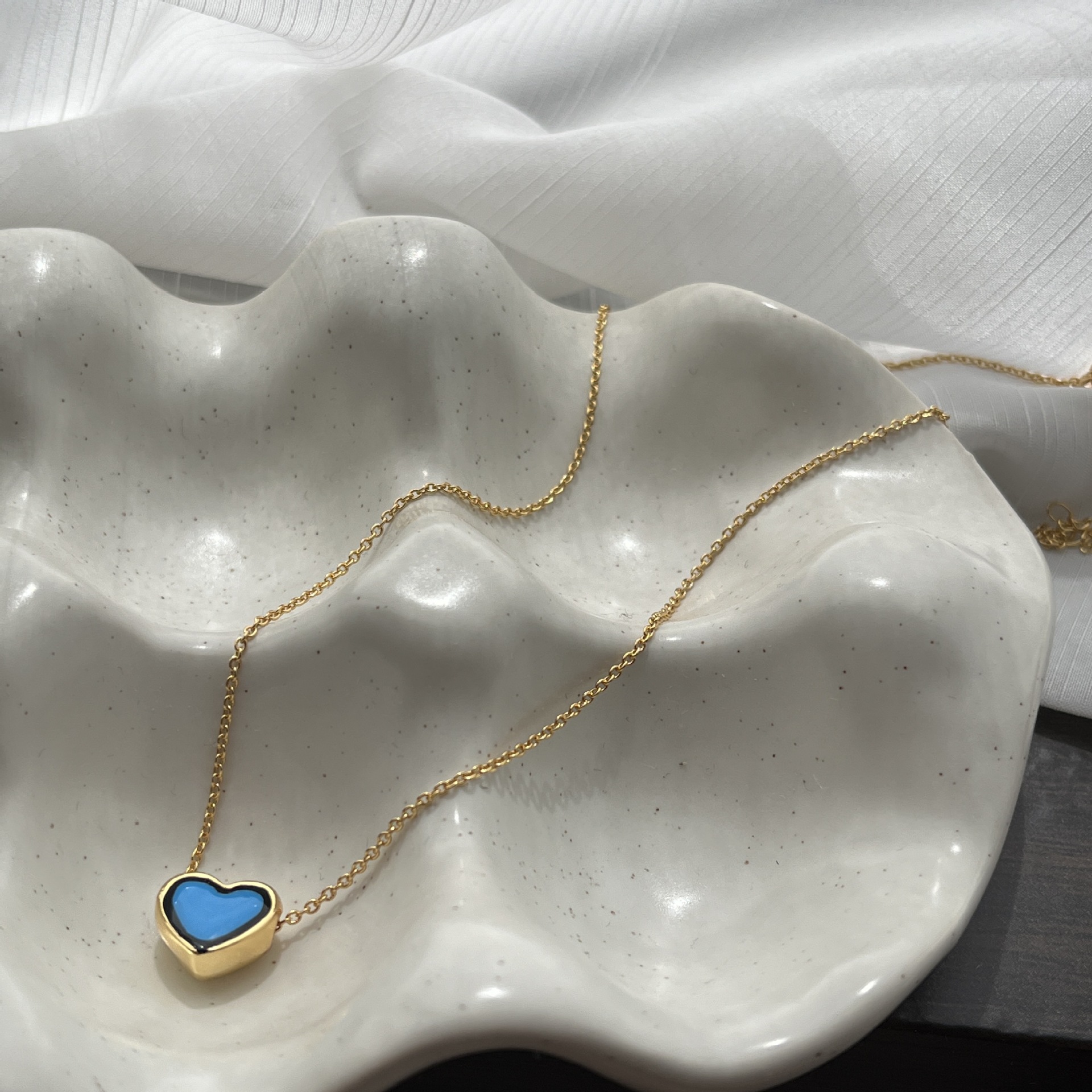 金黄色蓝石爱心可调节项链女珐琅滴釉小众简约时尚心形锁骨链百搭