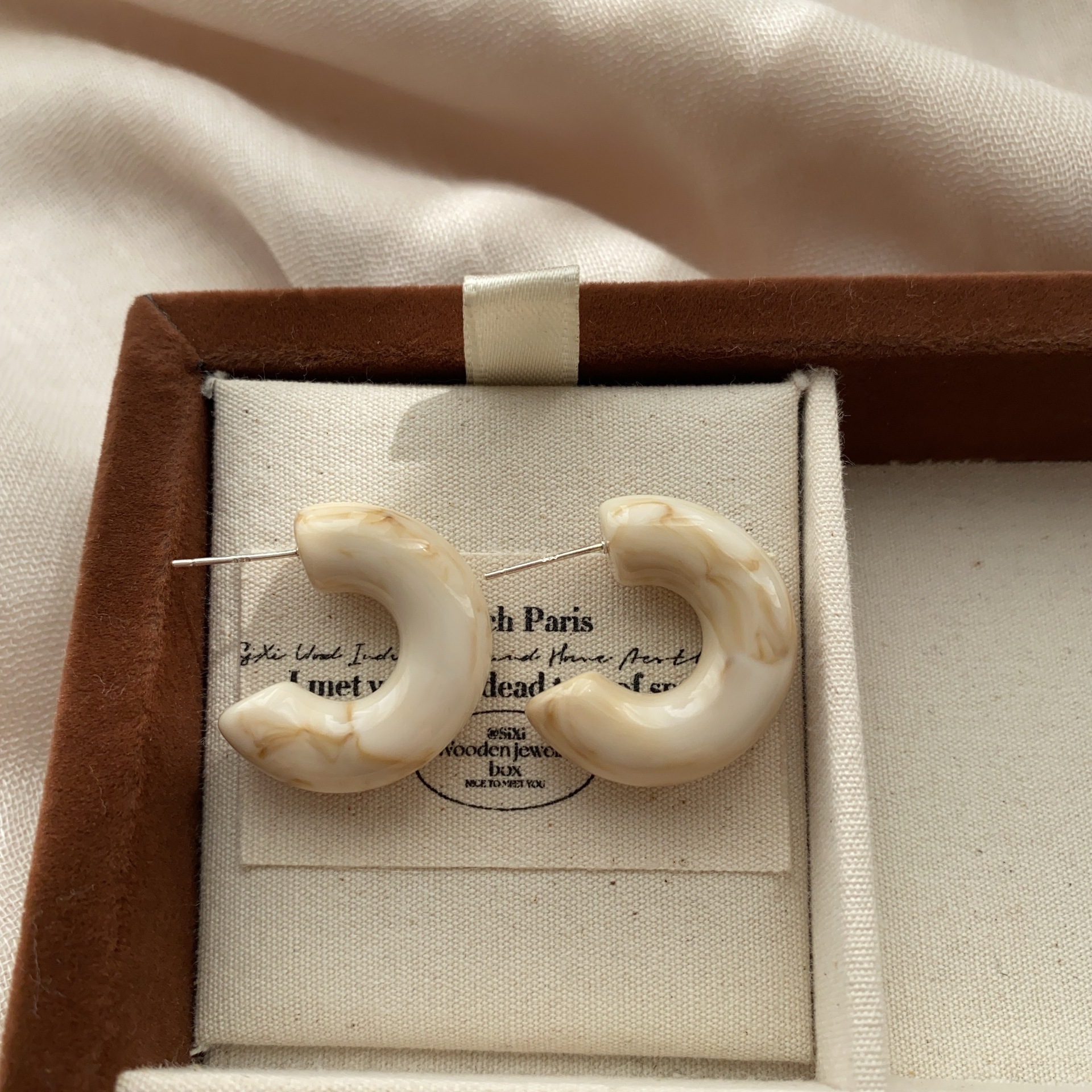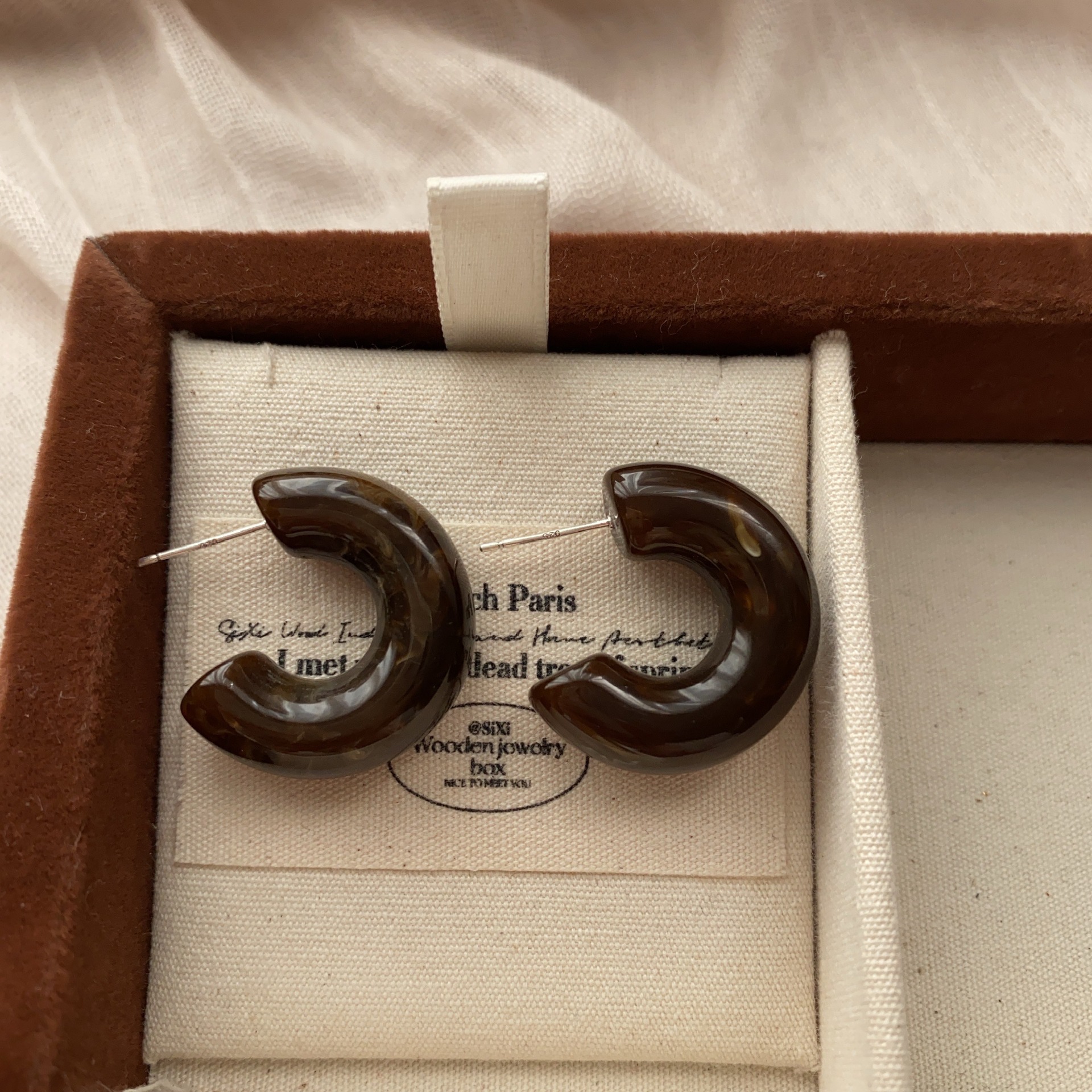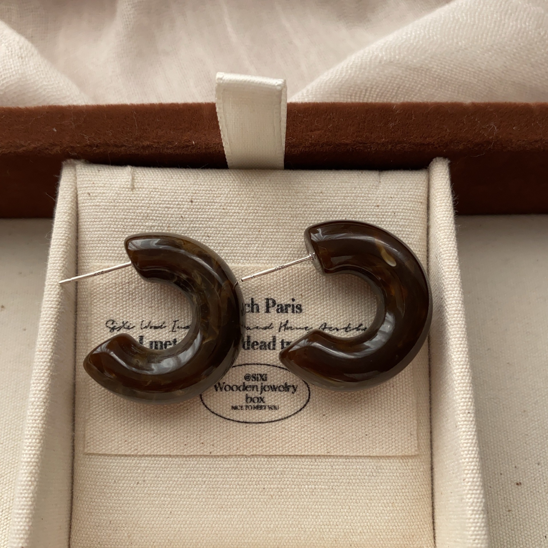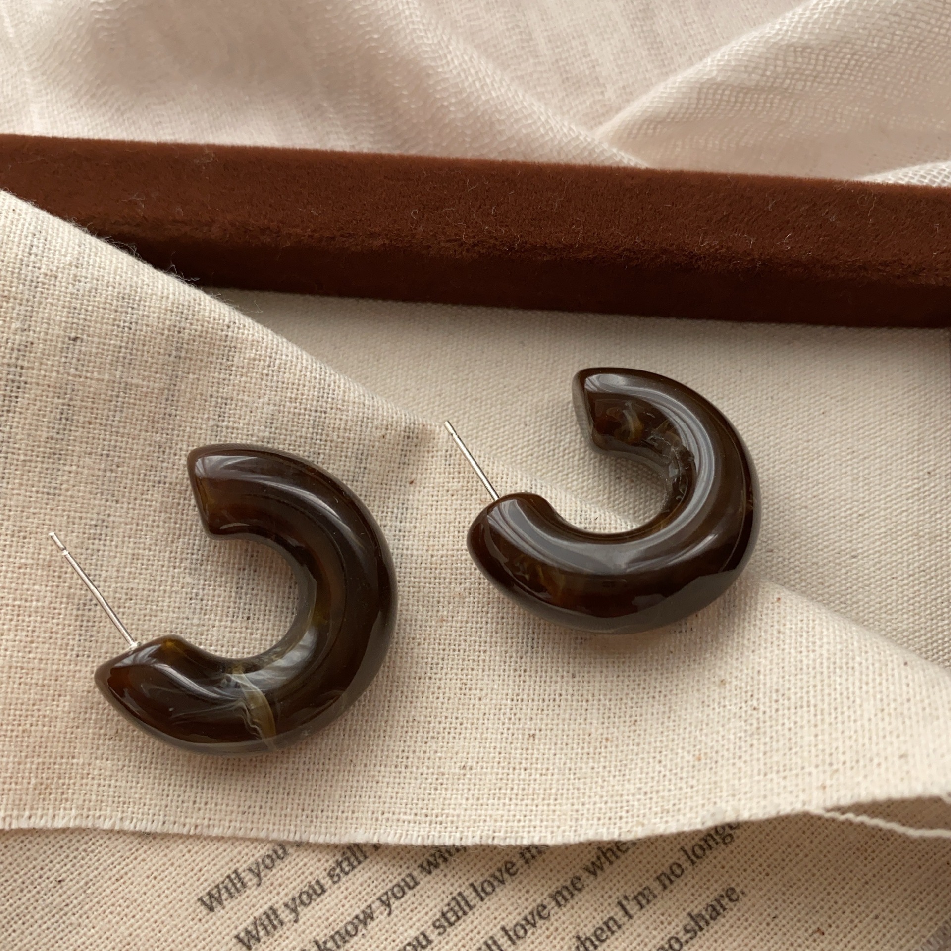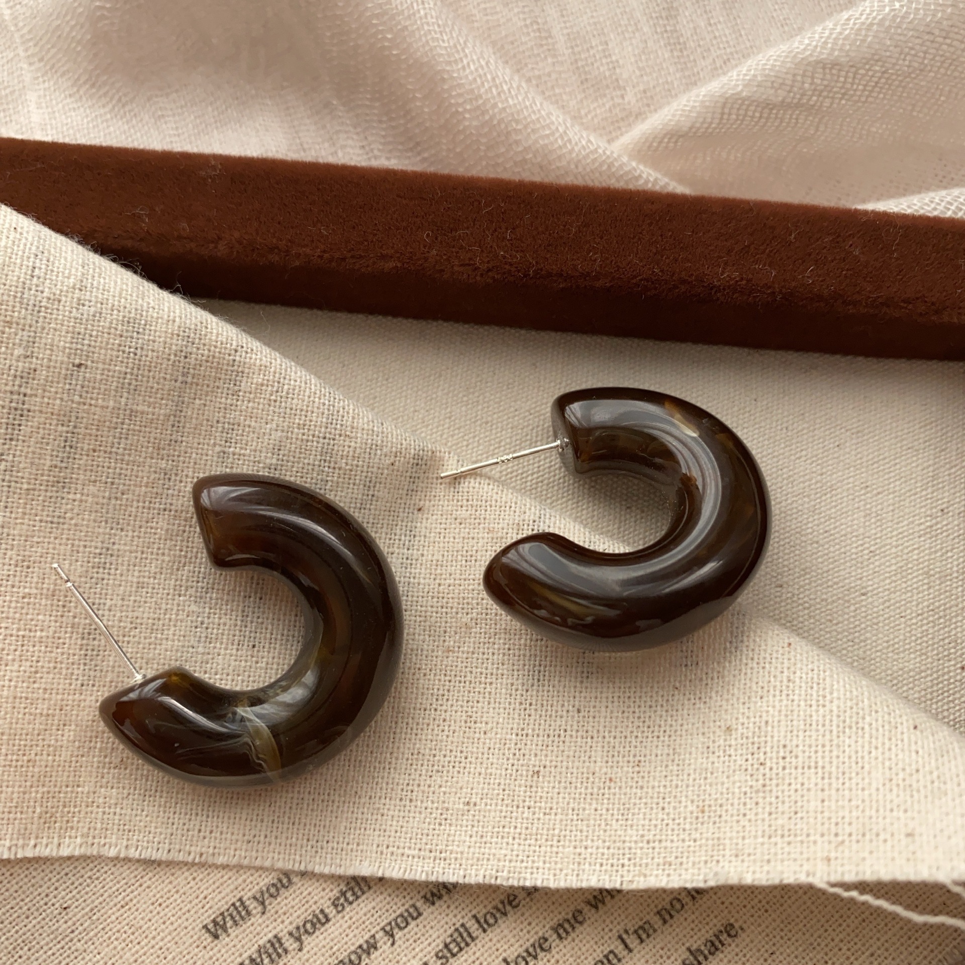 简约半圆形耳圈耳环复古树脂欧美个性小众独特设计高级感耳饰轻奢