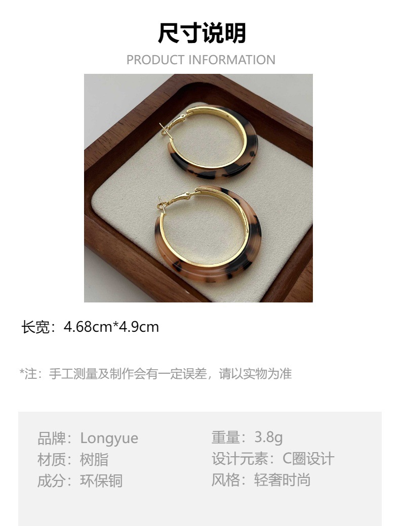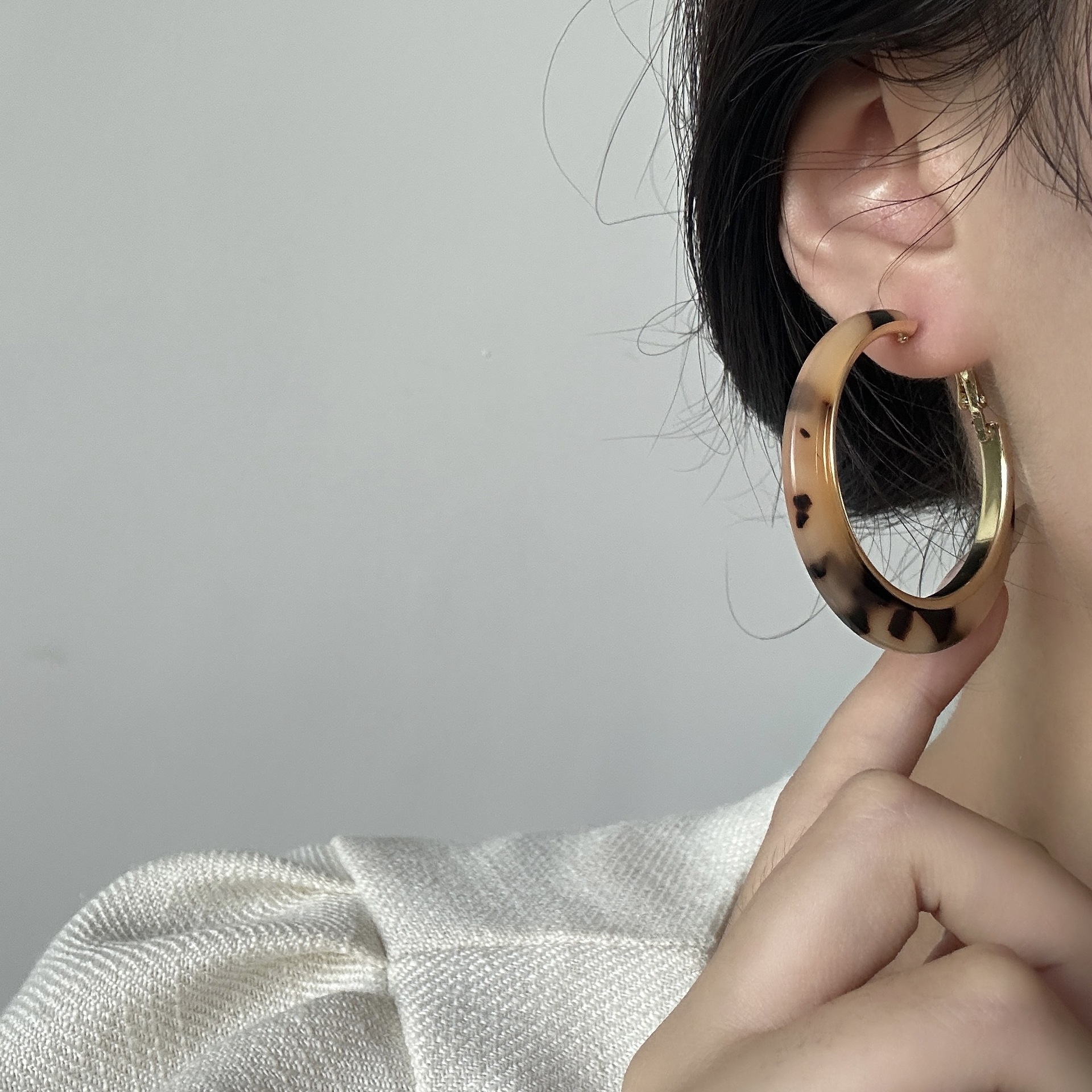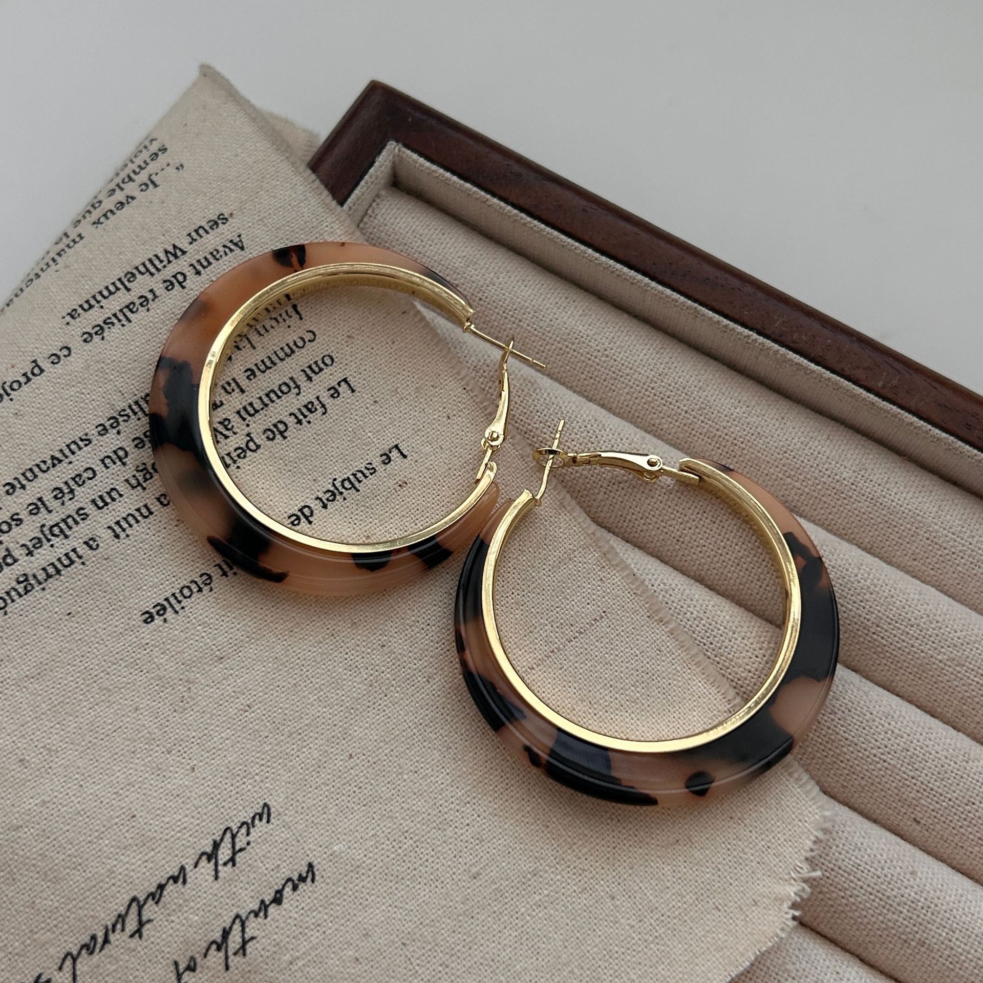 复古豹纹大耳圈耳环C型气质百搭高级时尚耳饰精致独特C圈秋冬耳饰