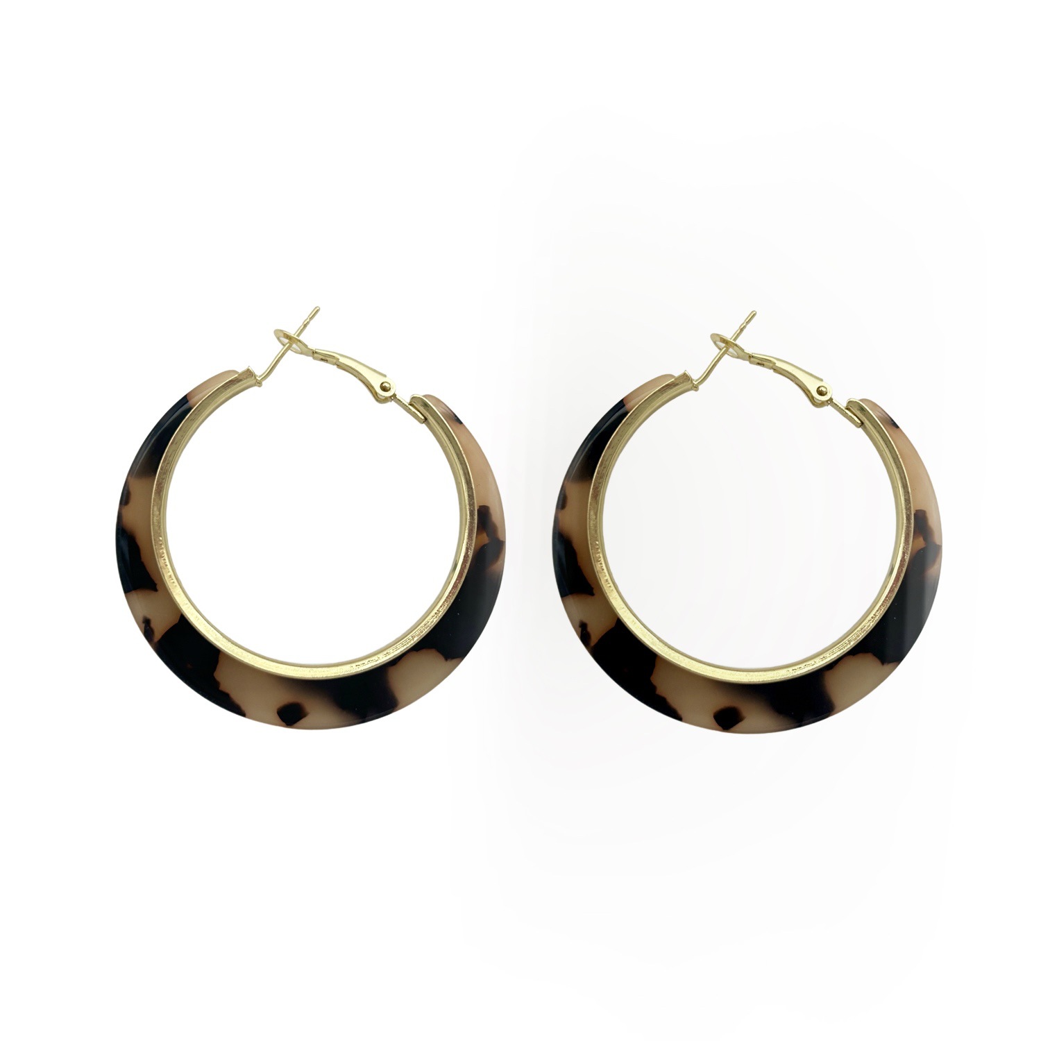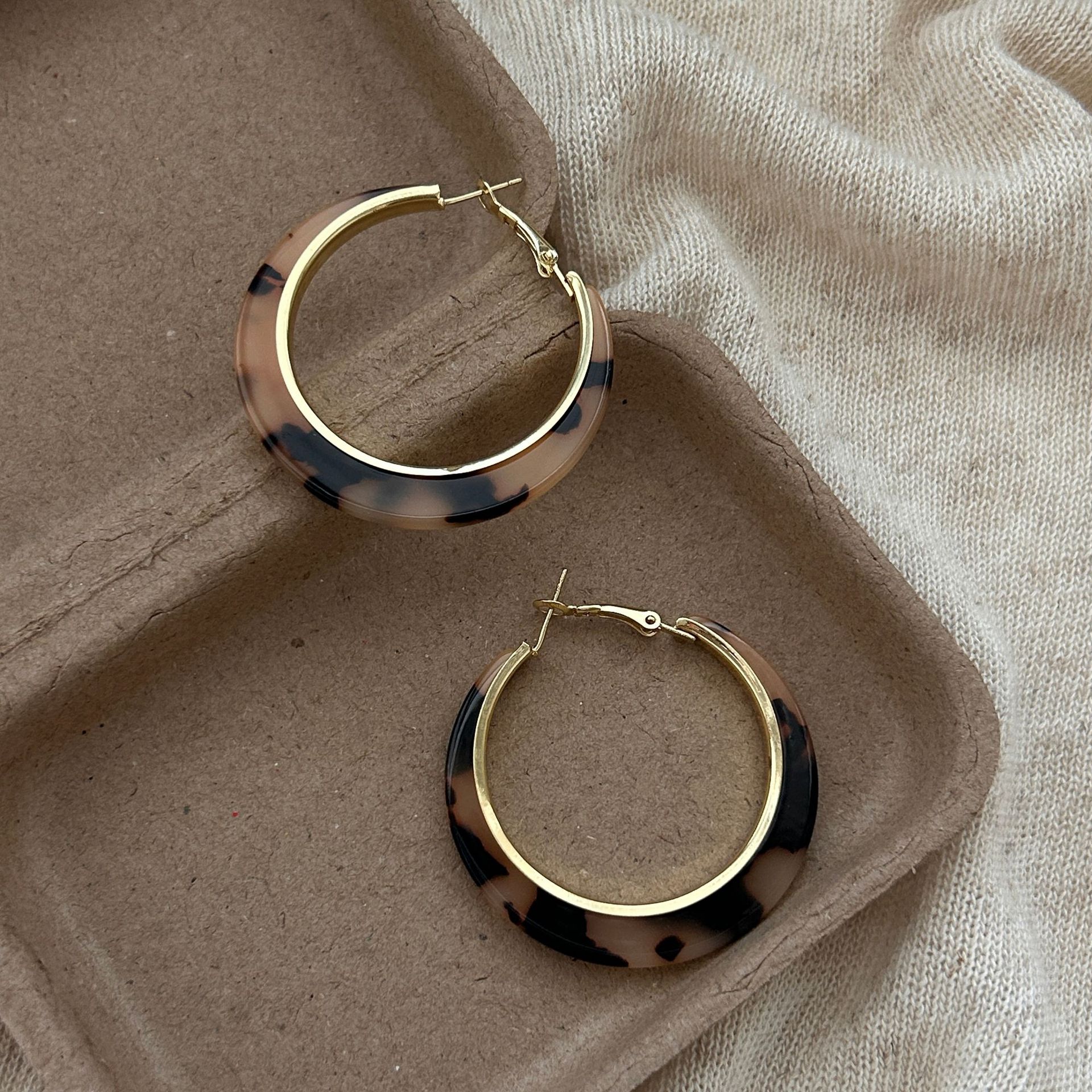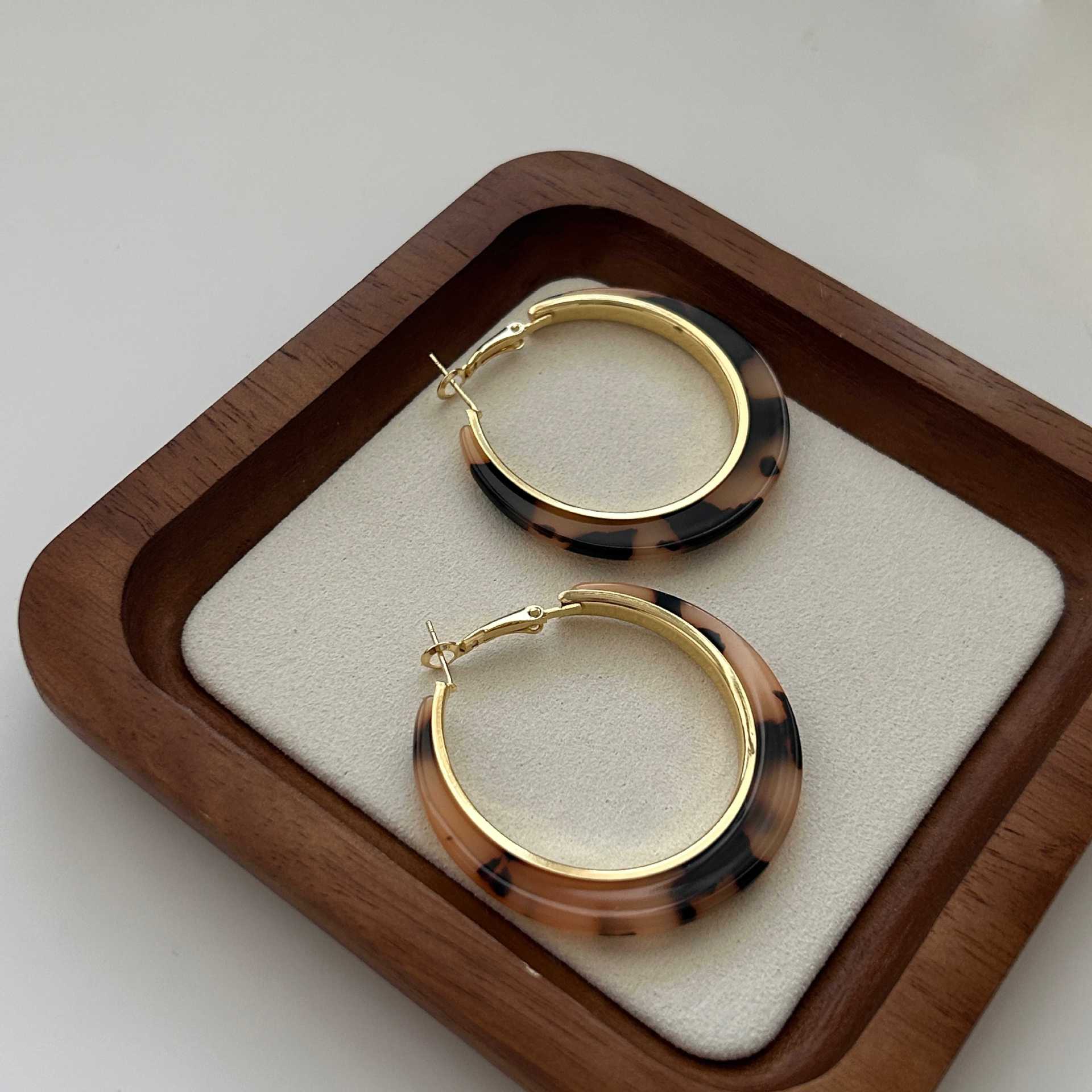复古豹纹大耳圈耳环C型气质百搭高级时尚耳饰精致独特C圈秋冬耳饰