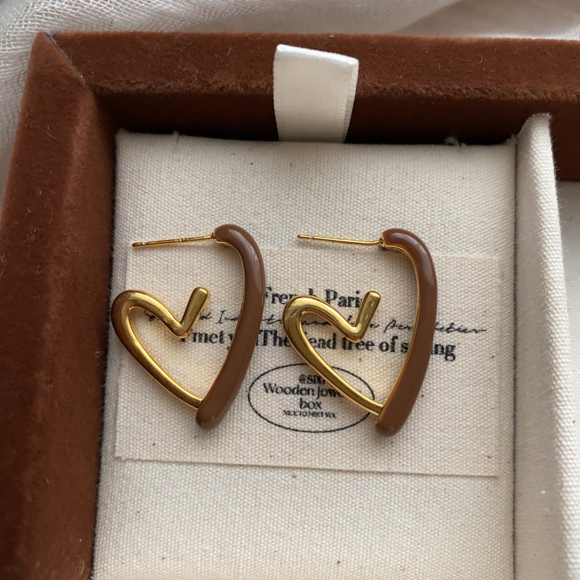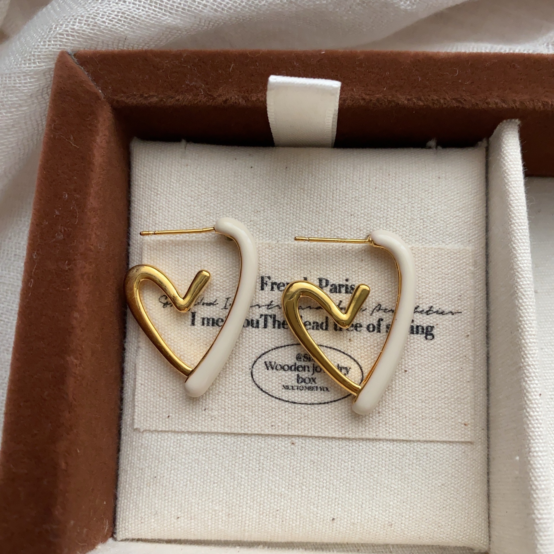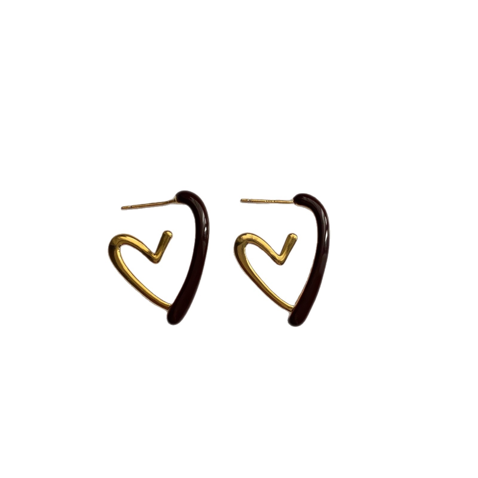 小众爱心滴油耳钉耳环2025高级时尚气质耳饰简约镂空温柔独特设计