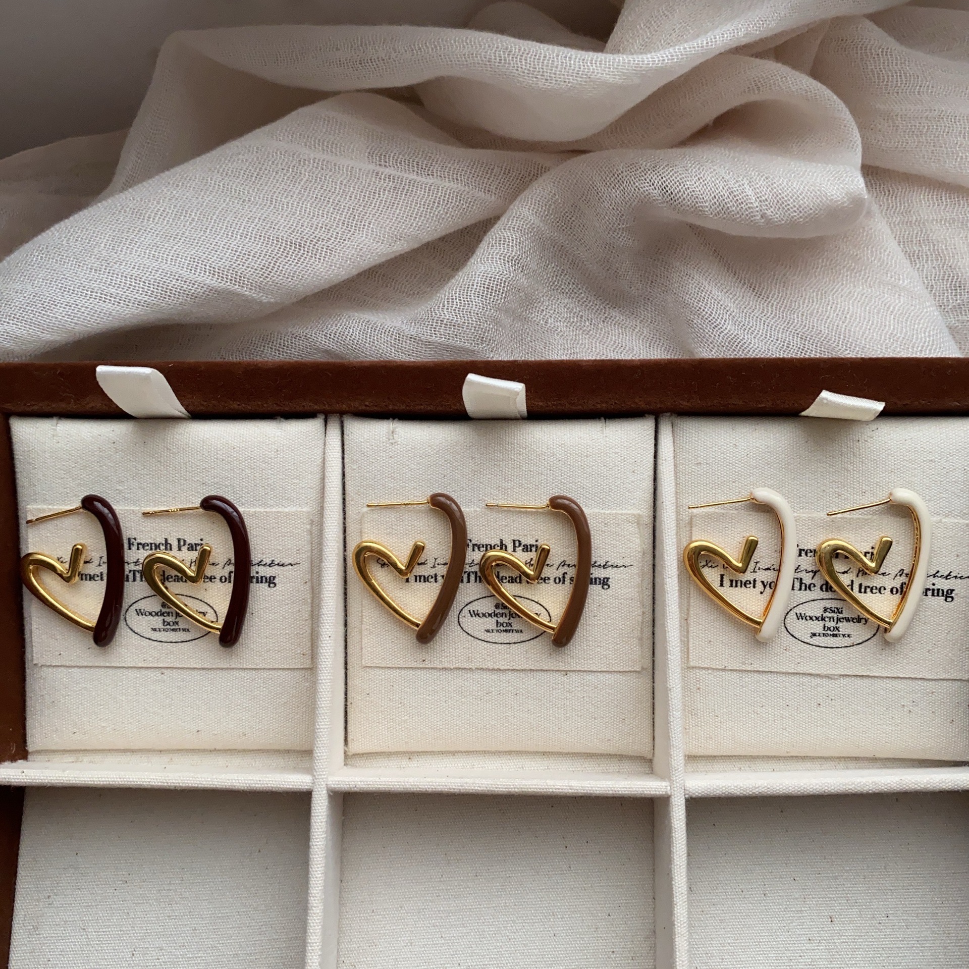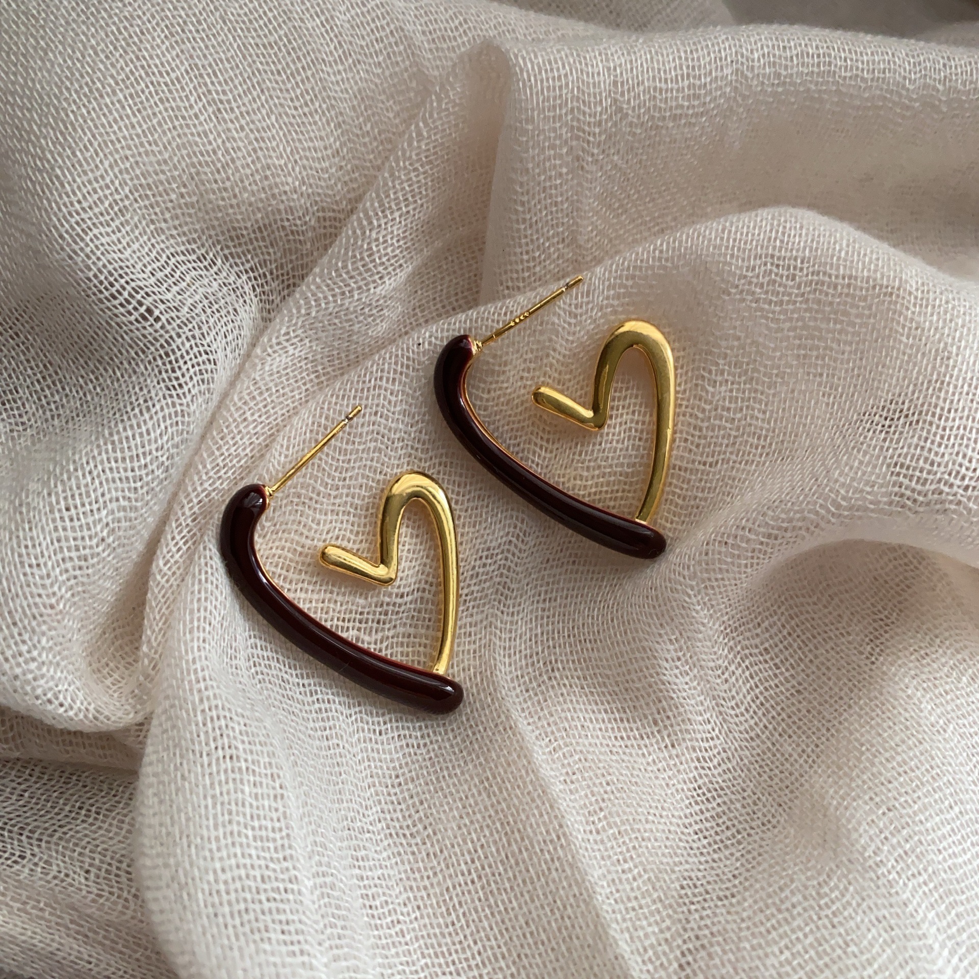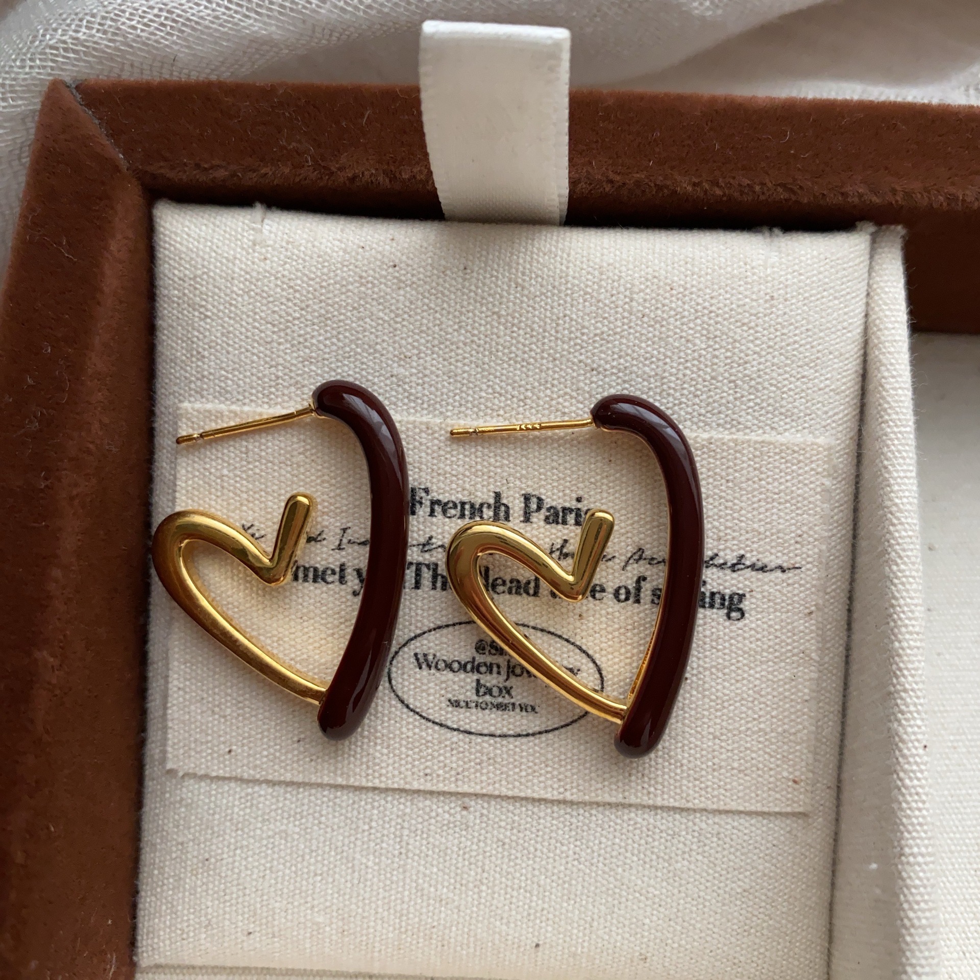 小众爱心滴油耳钉耳环2025高级时尚气质耳饰简约镂空温柔独特设计