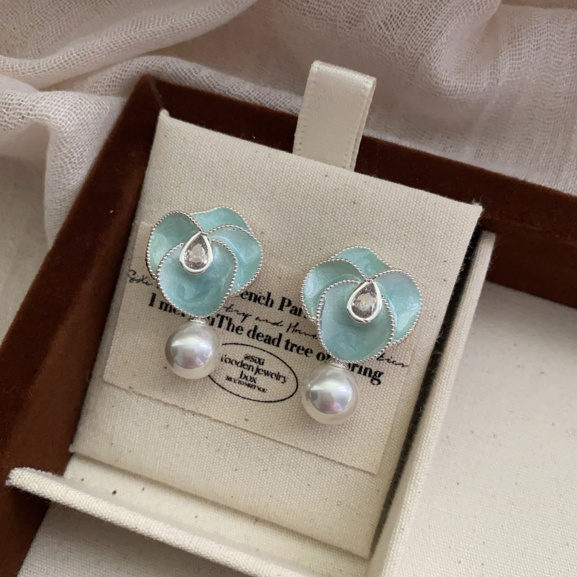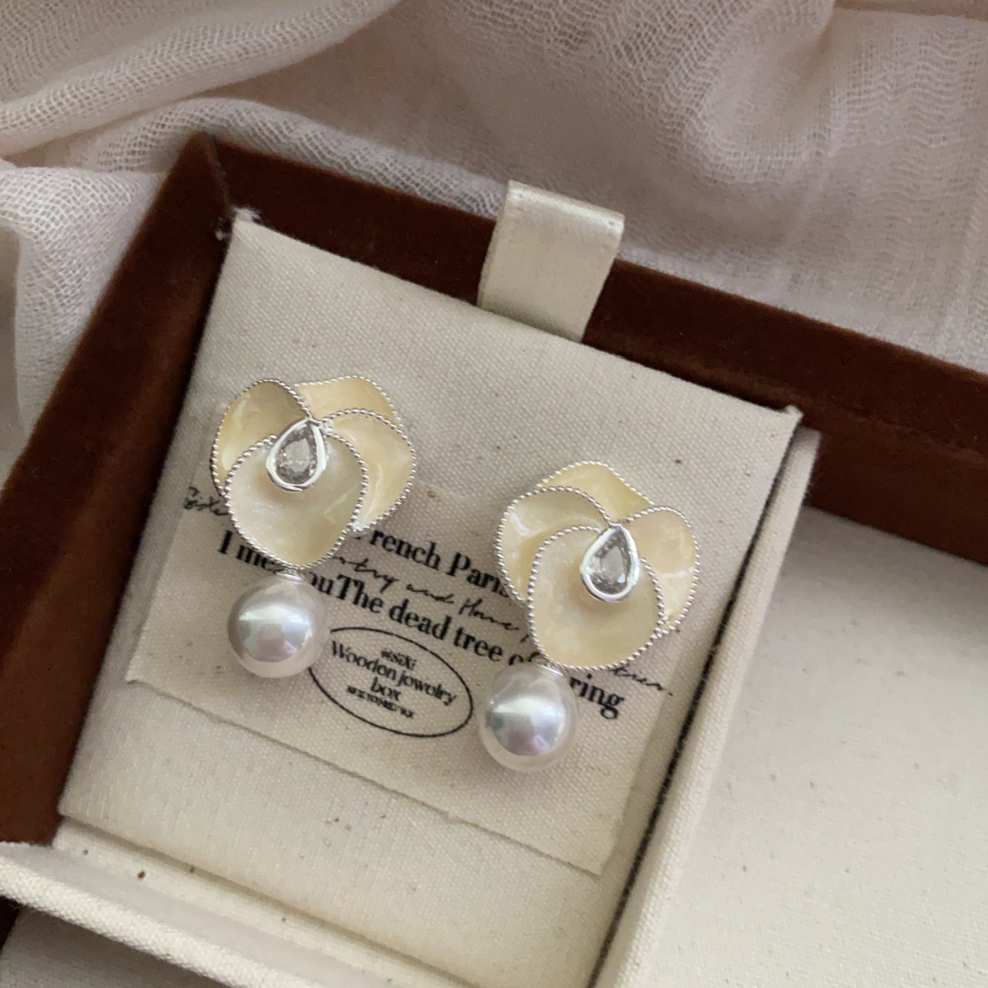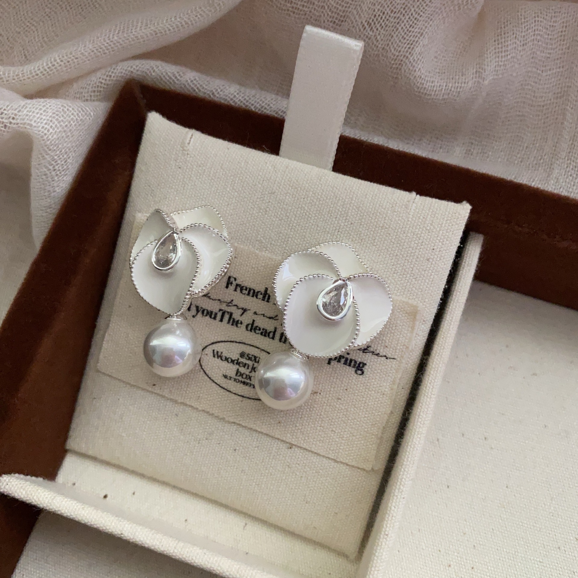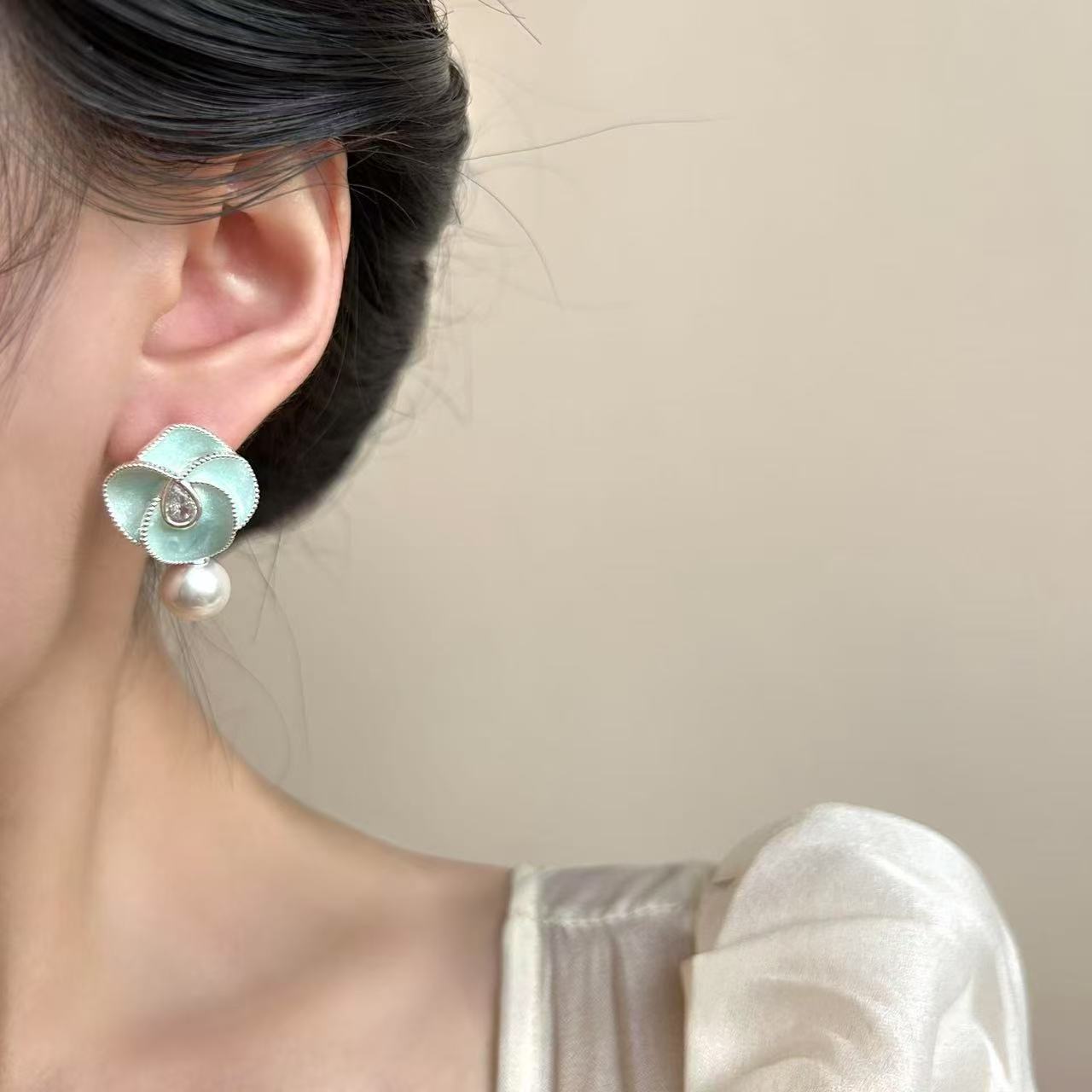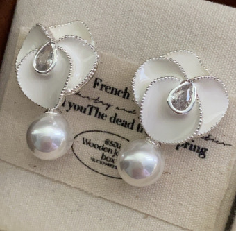 新款油画花朵珍珠耳坠小香风优雅山茶花耳环高端复古轻奢气质耳饰
