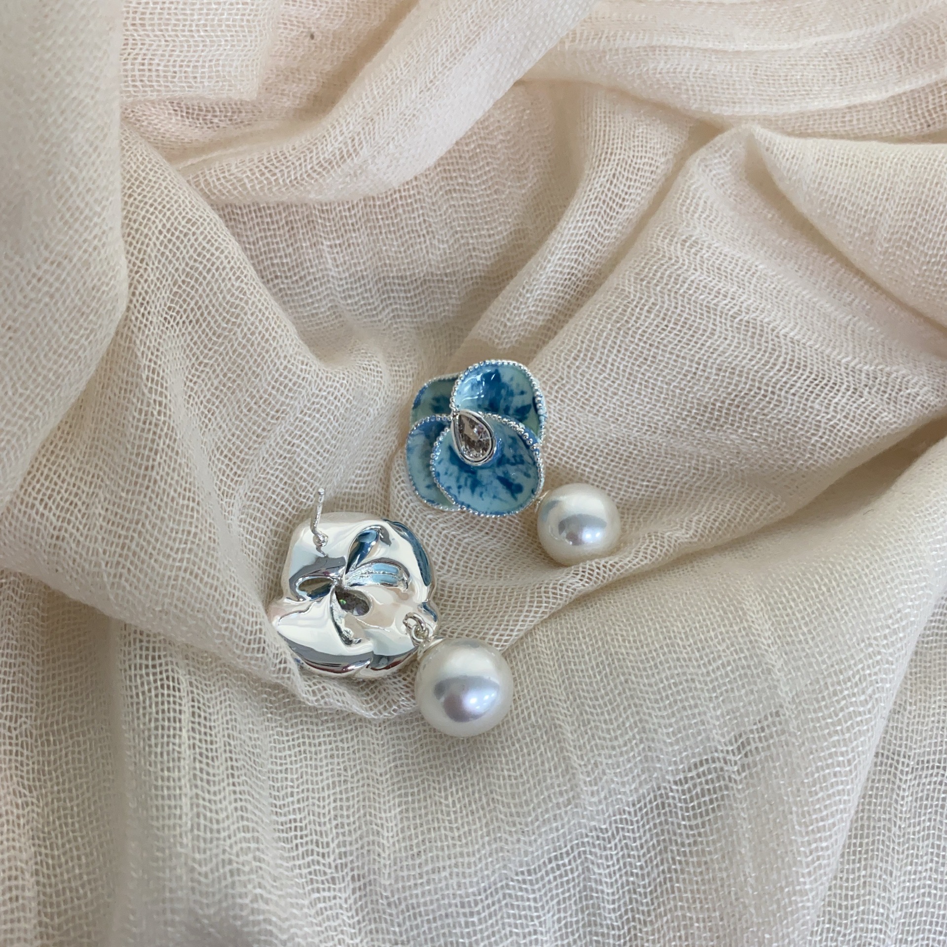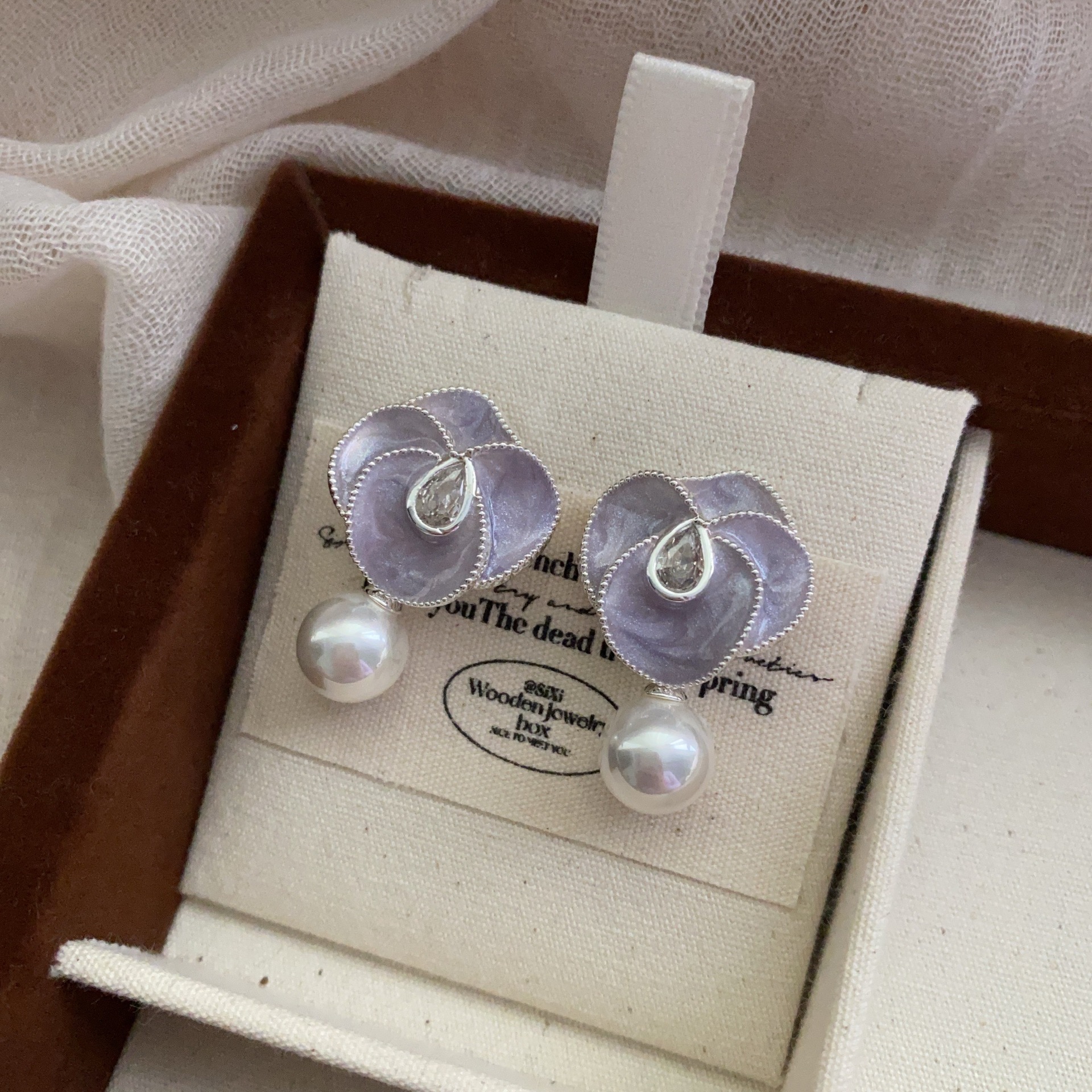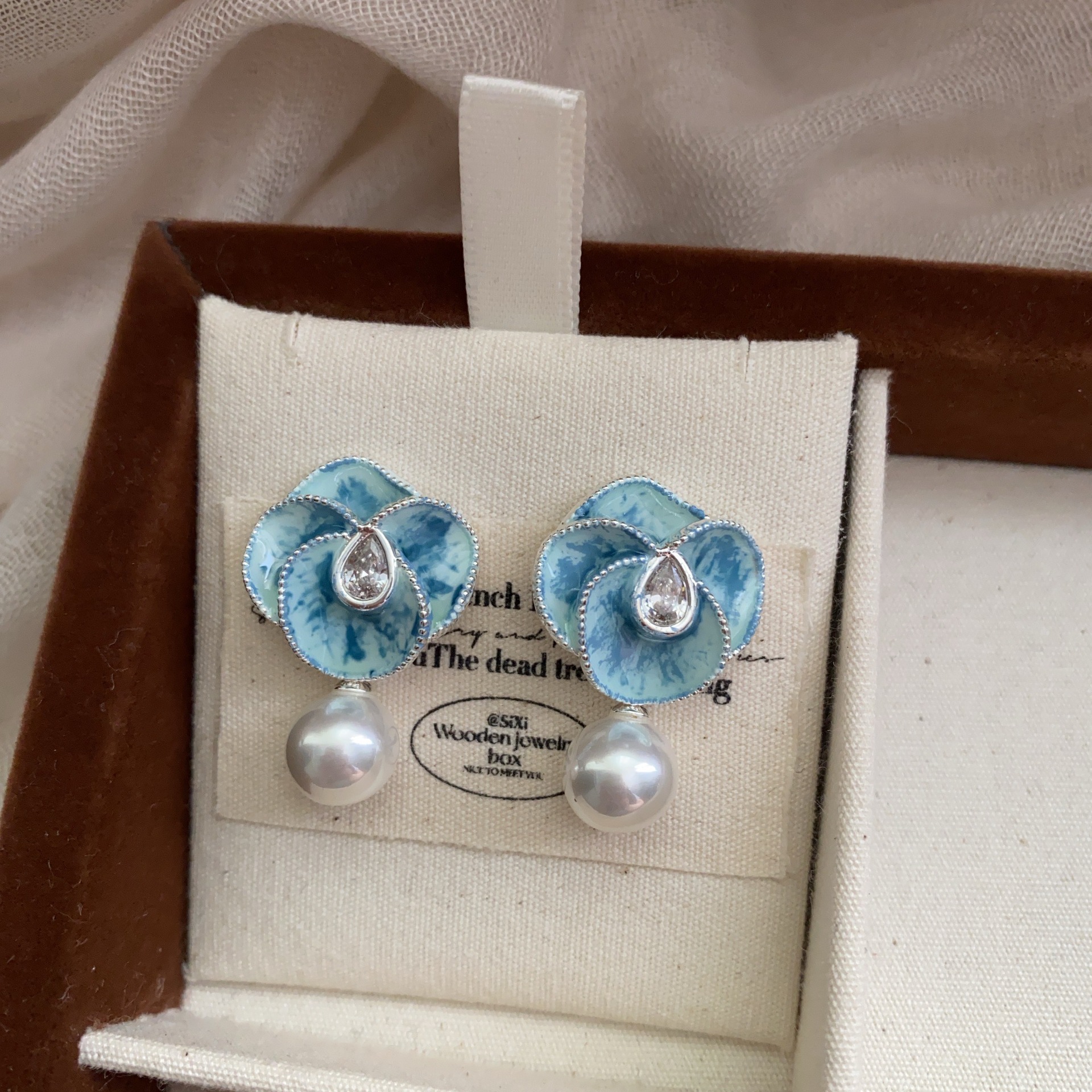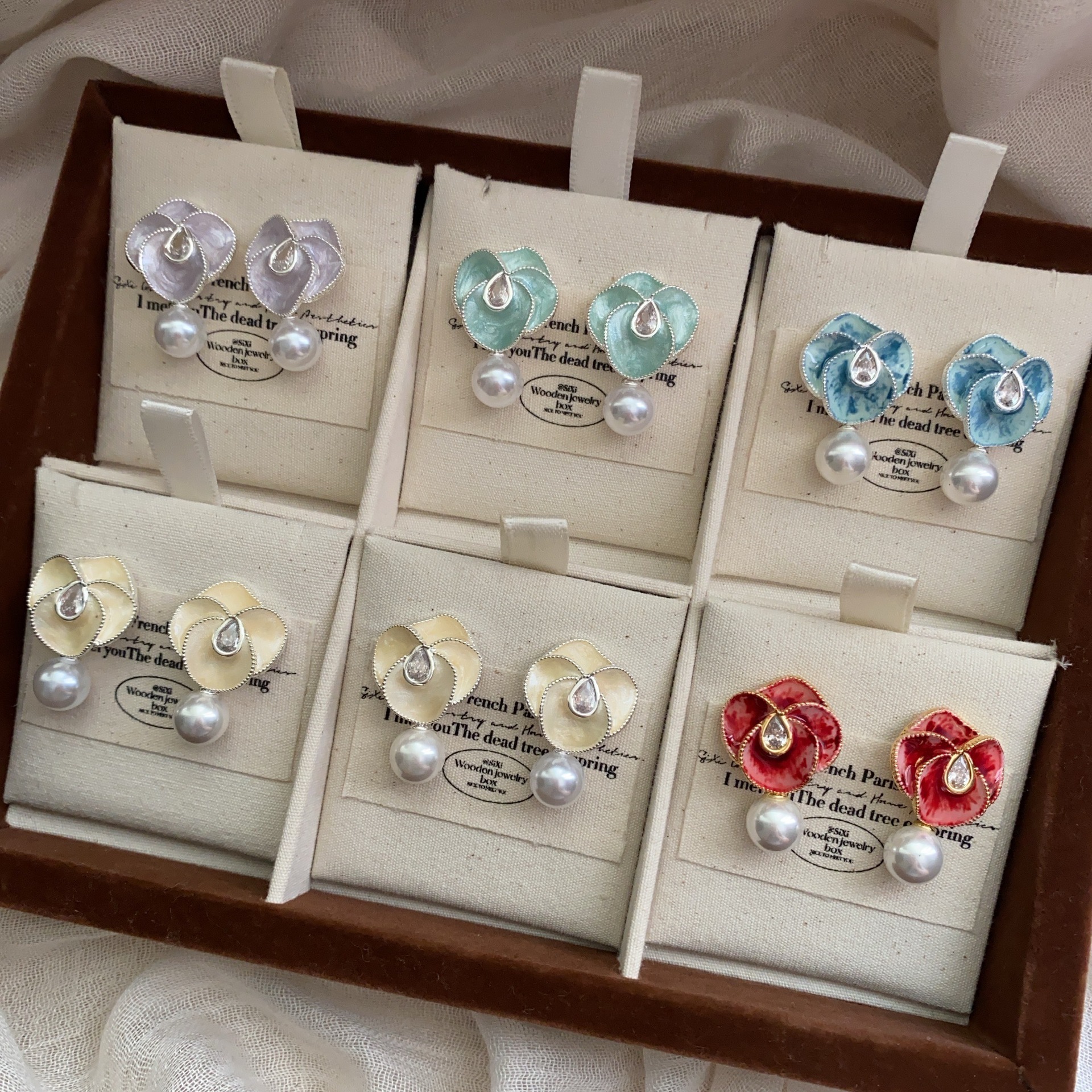 新款油画花朵珍珠耳坠小香风优雅山茶花耳环高端复古轻奢气质耳饰