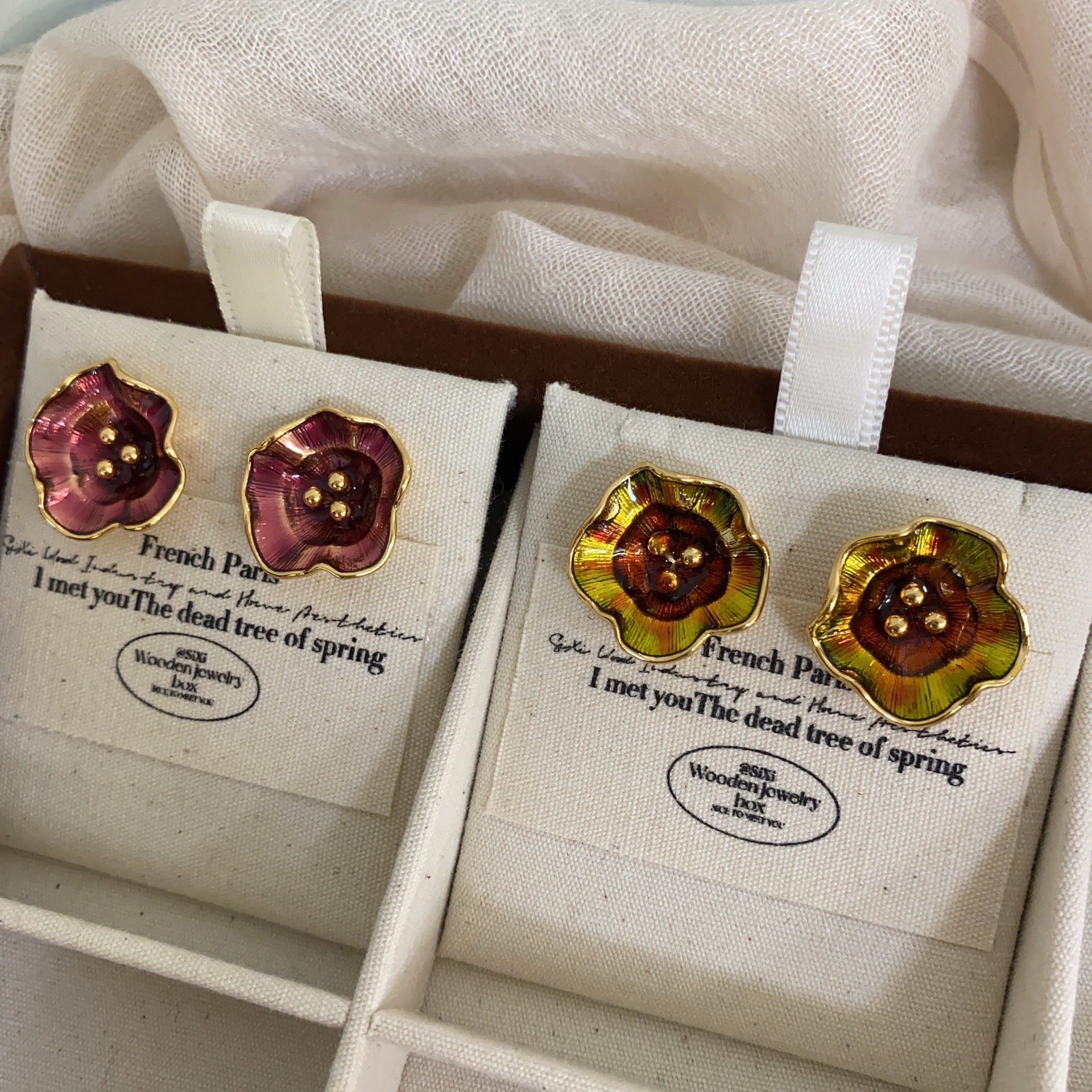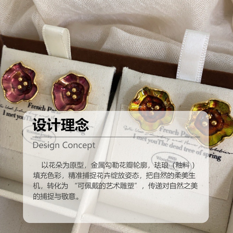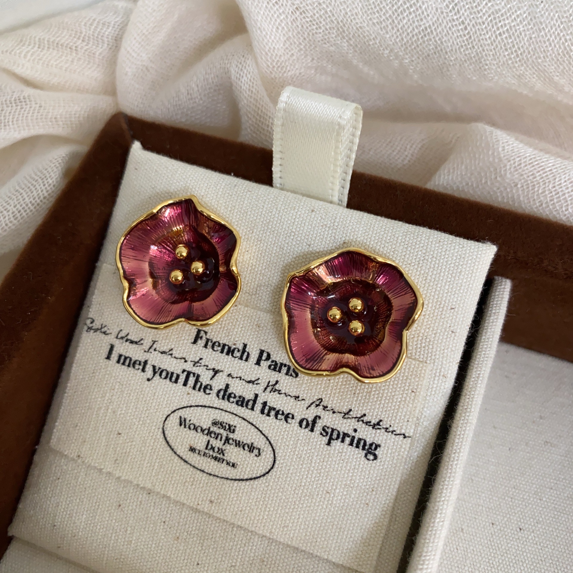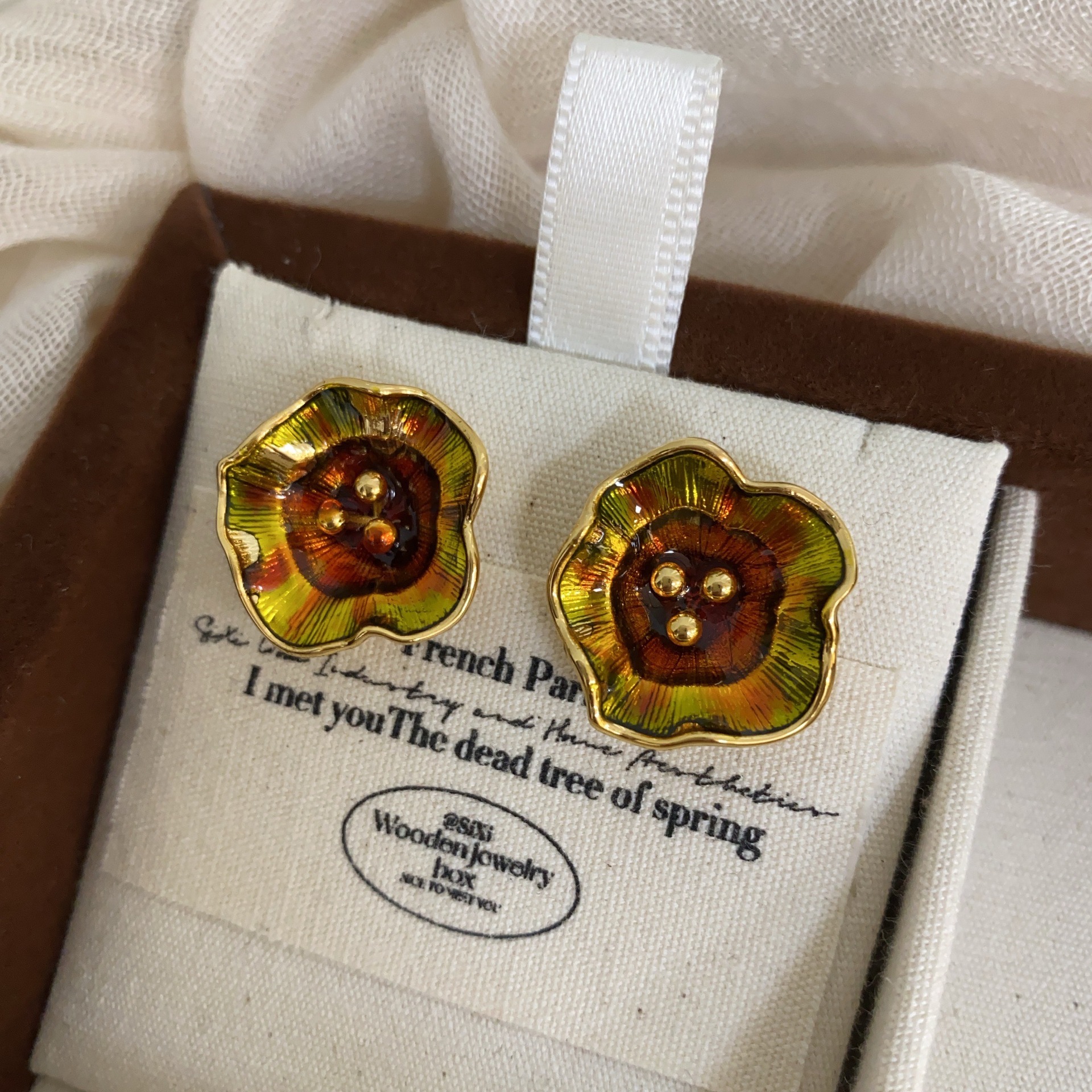 法式复古不规则巴洛克风格耳环法式复古小众轻奢滴油花朵耳钉耳饰