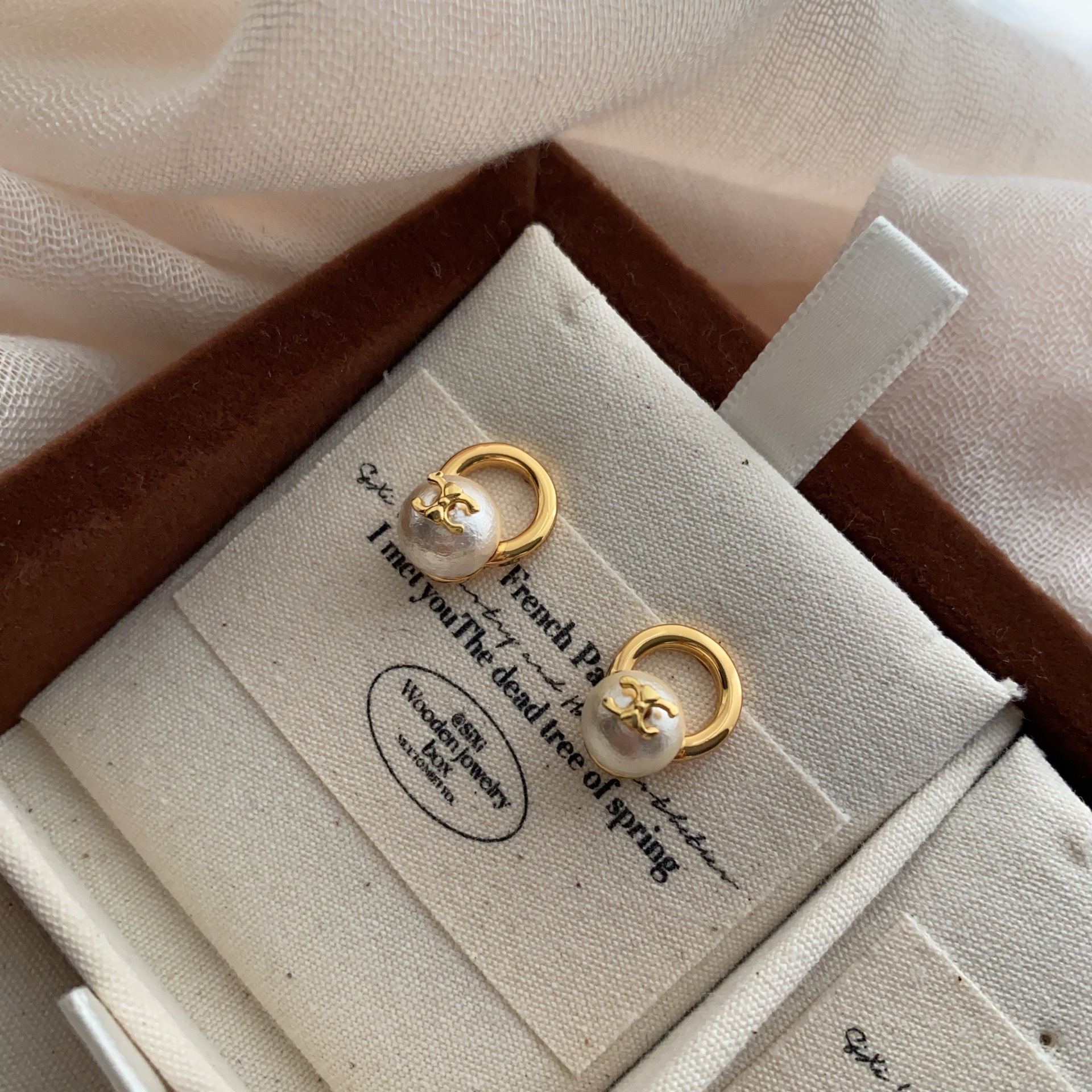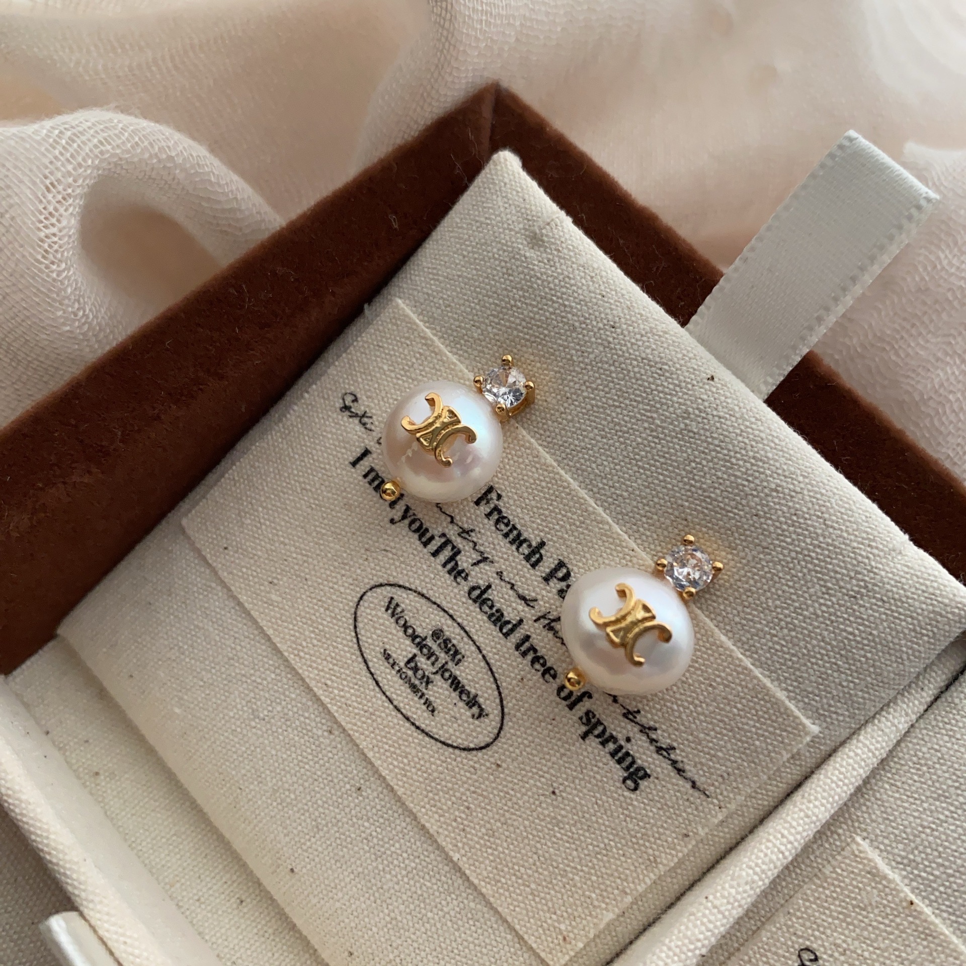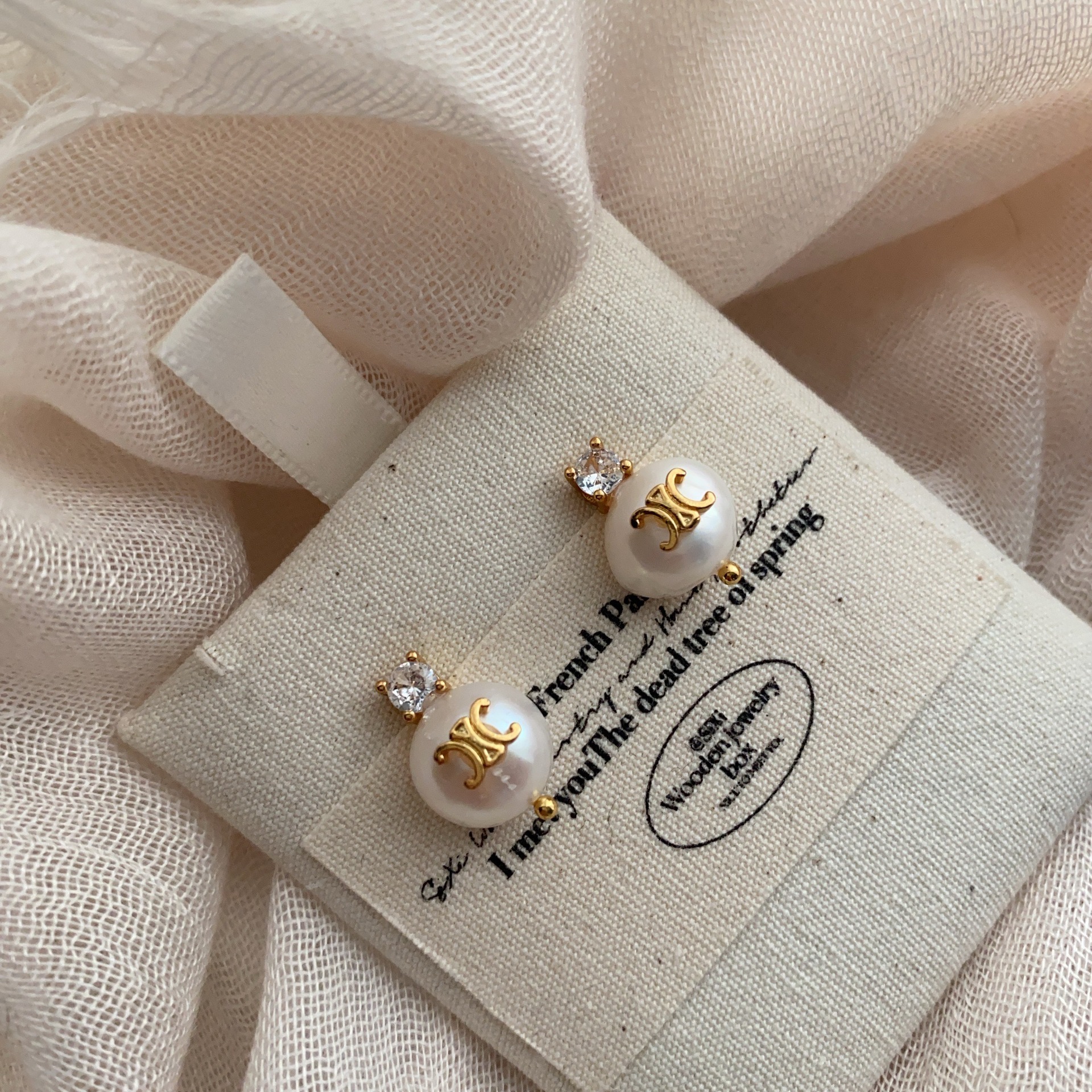 法式复古简约设计感字母耳环女气质轻奢时尚百搭网红珍珠耳钉耳饰
