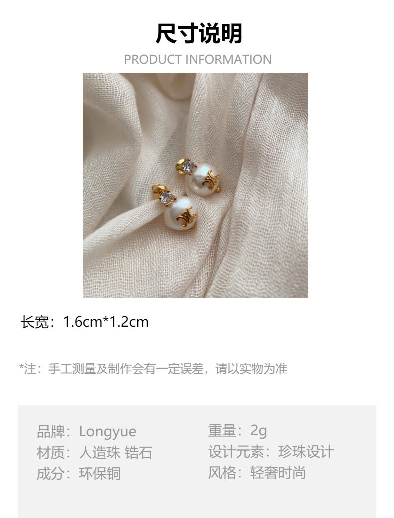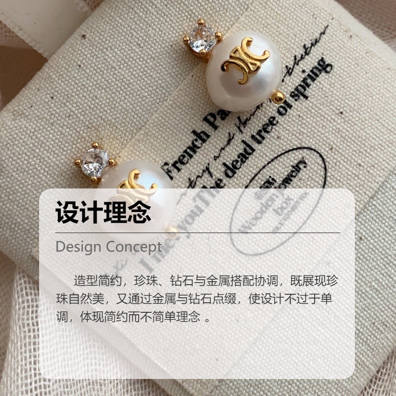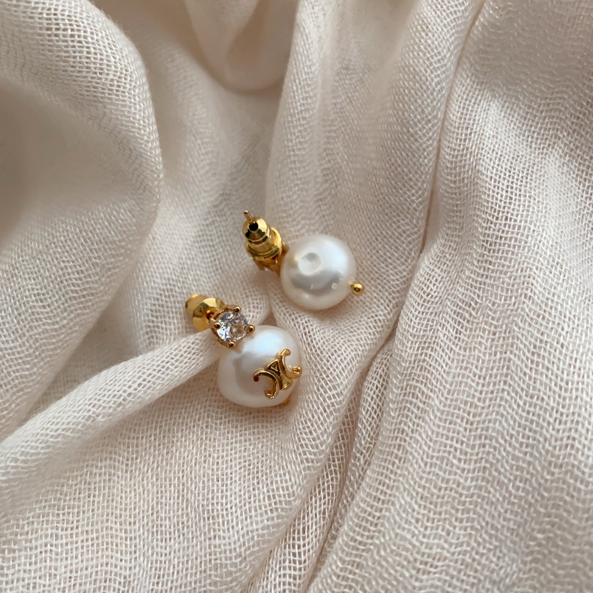 法式复古简约设计感字母耳环女气质轻奢时尚百搭网红珍珠耳钉耳饰