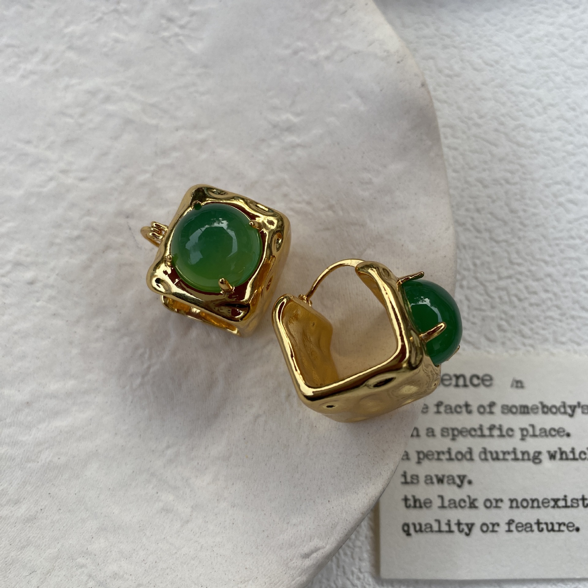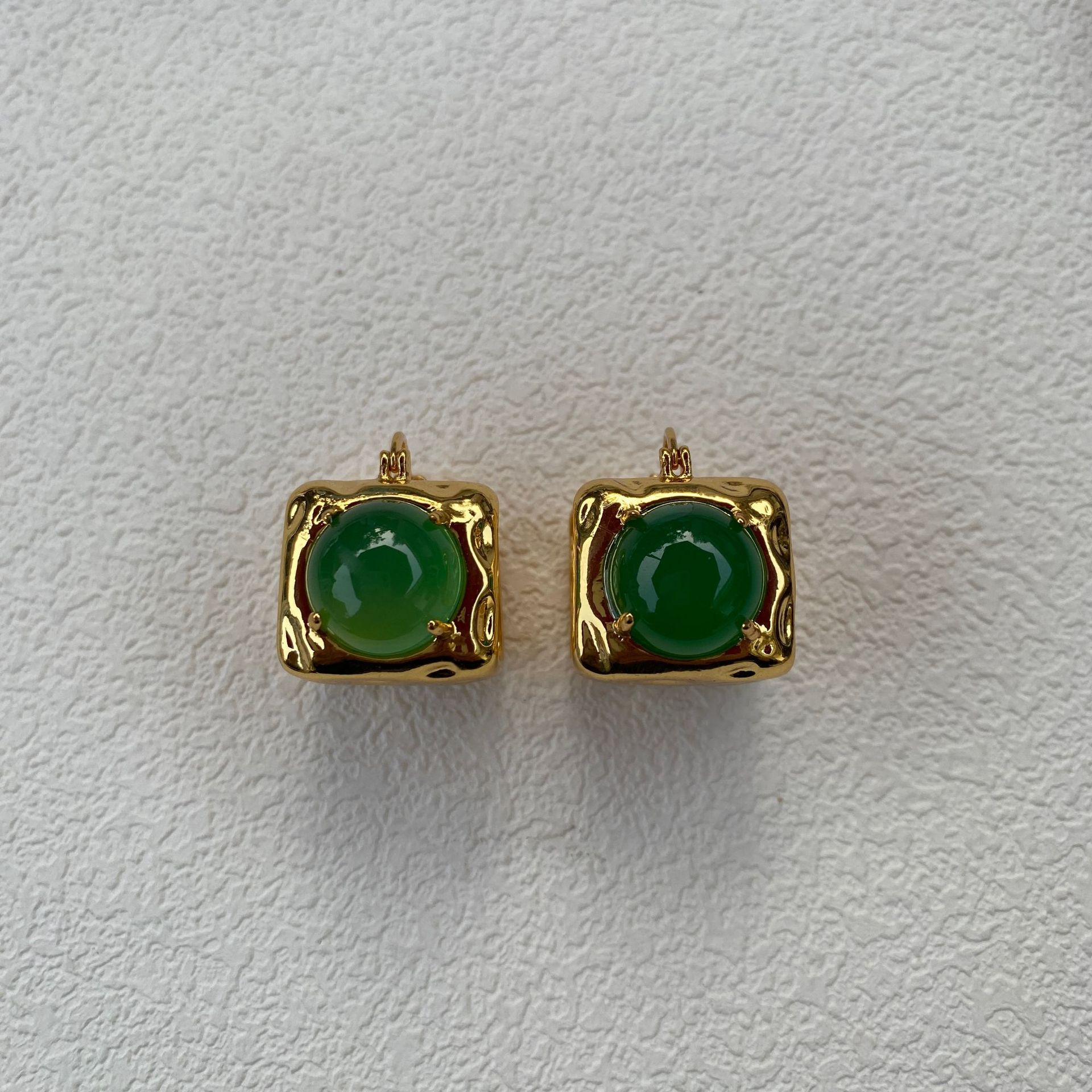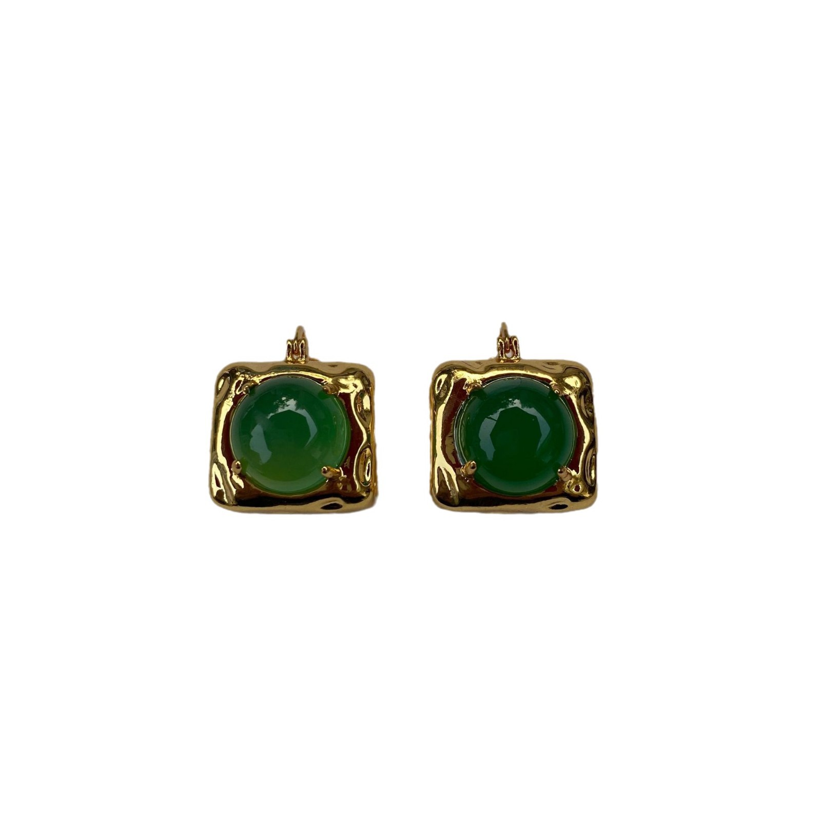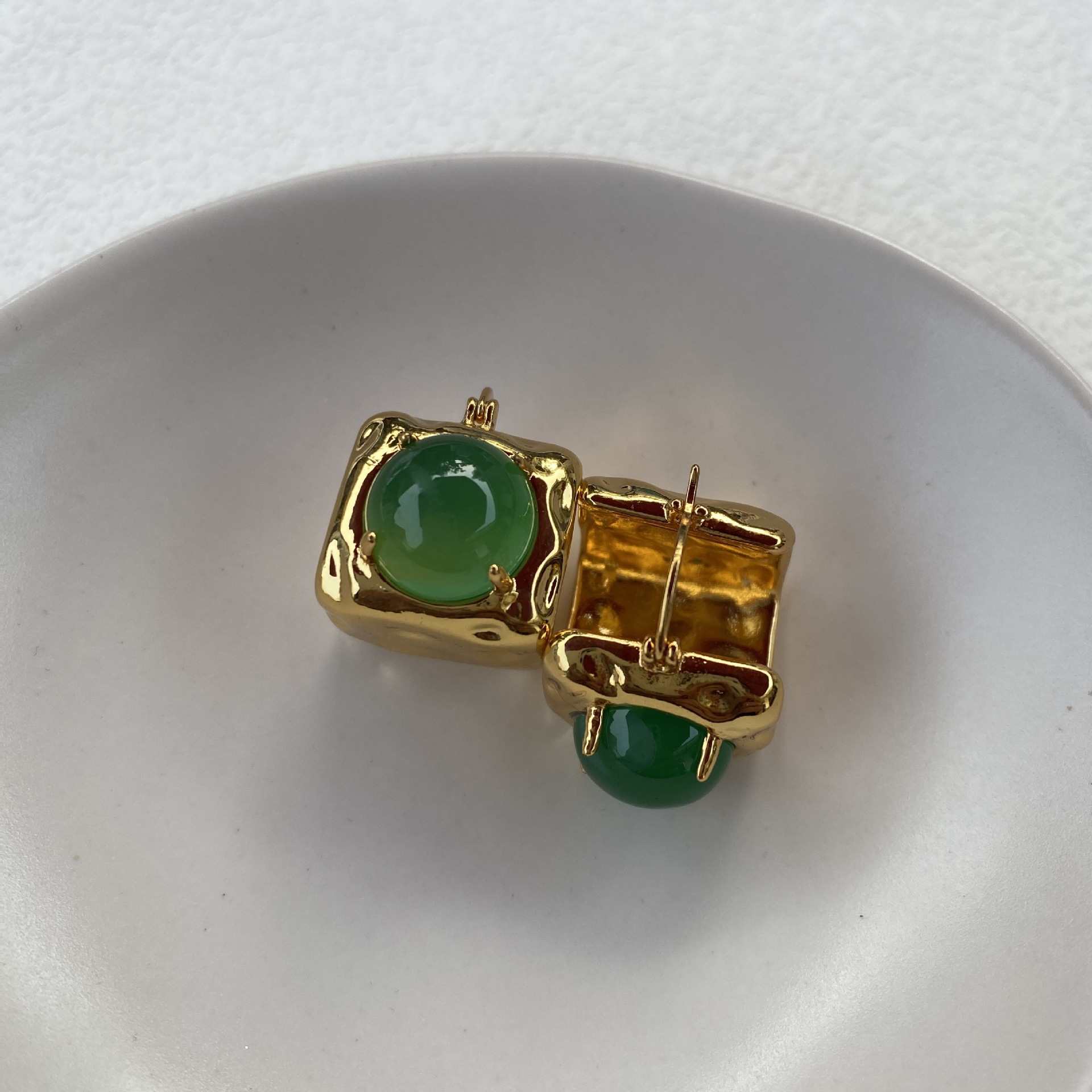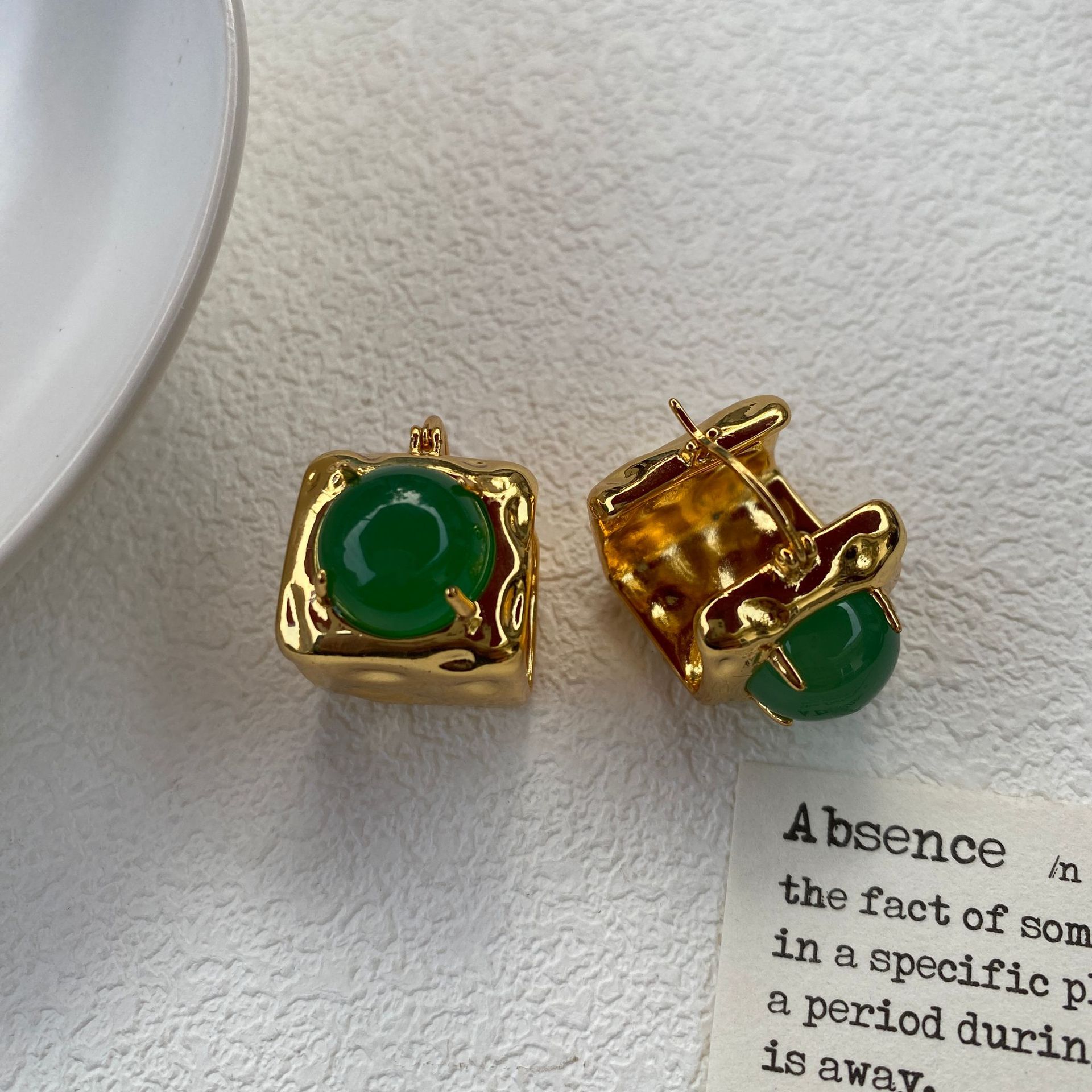 玛瑙小方块耳扣通体铜真金电镀复古高级感耳环小众新款个性耳饰女
