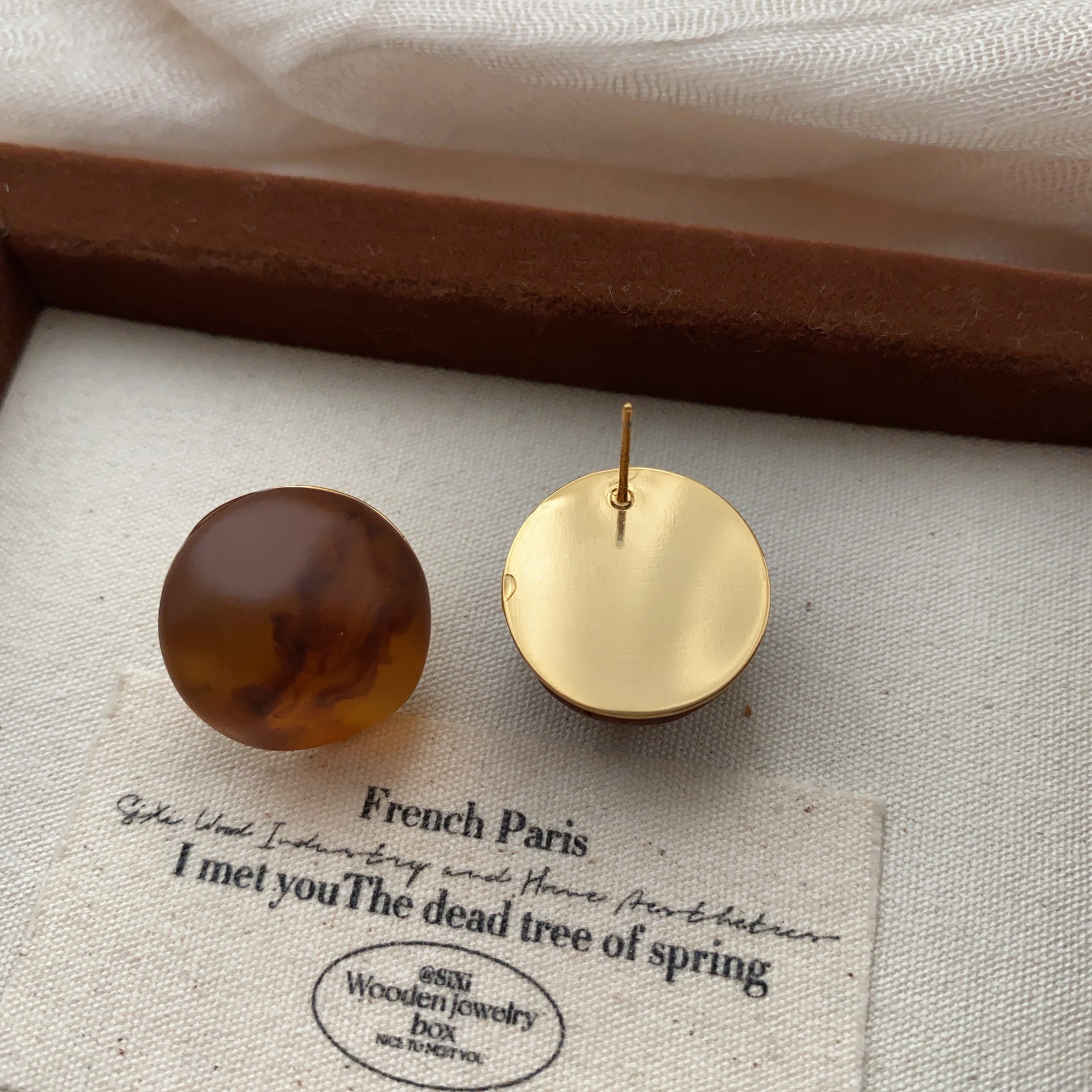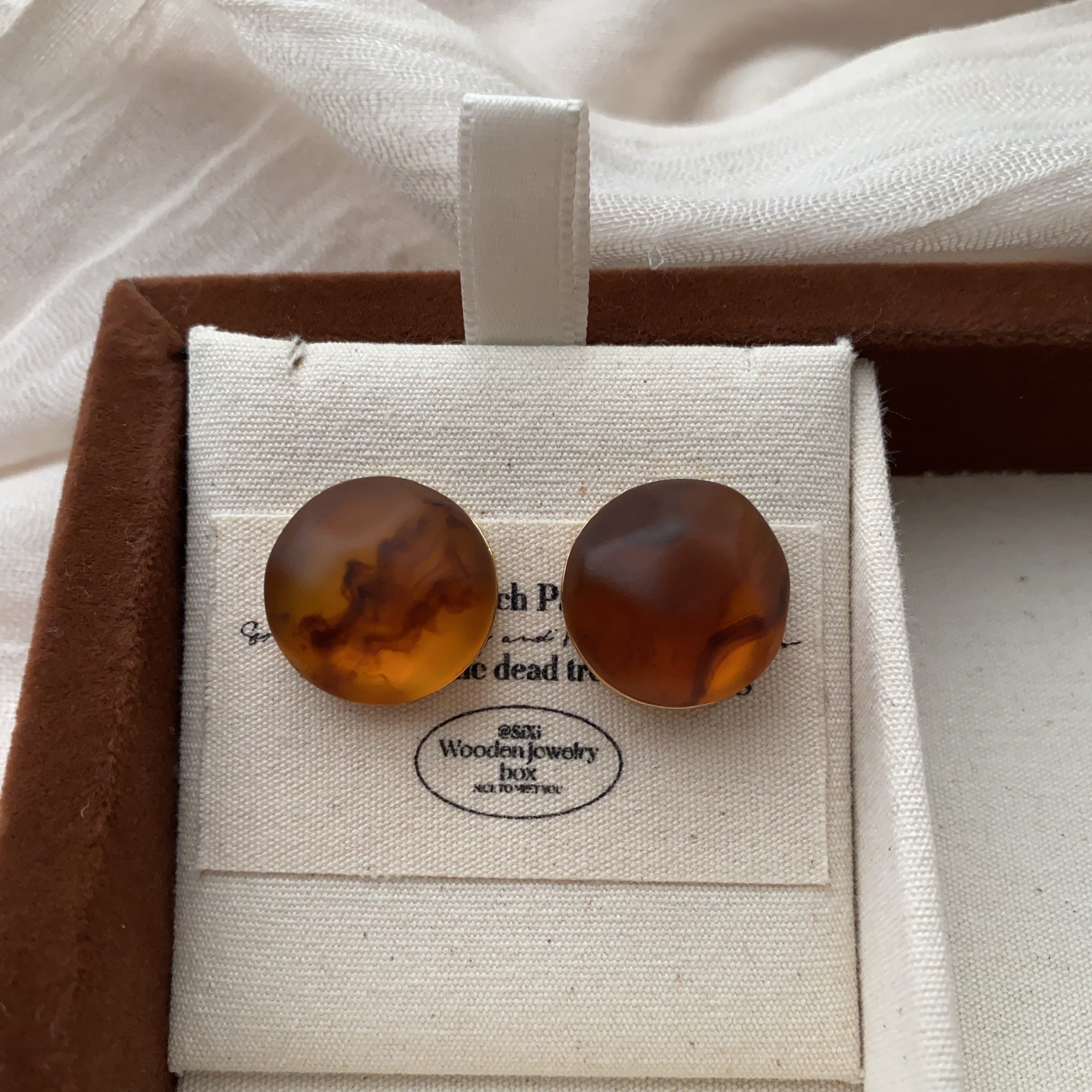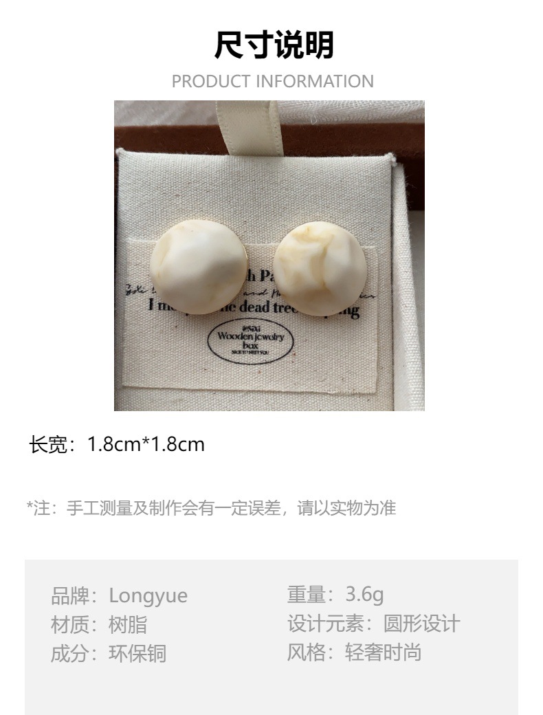 圆形复古树脂耳钉耳环立体个性优雅高级轻奢简洁百搭时尚秋冬耳饰