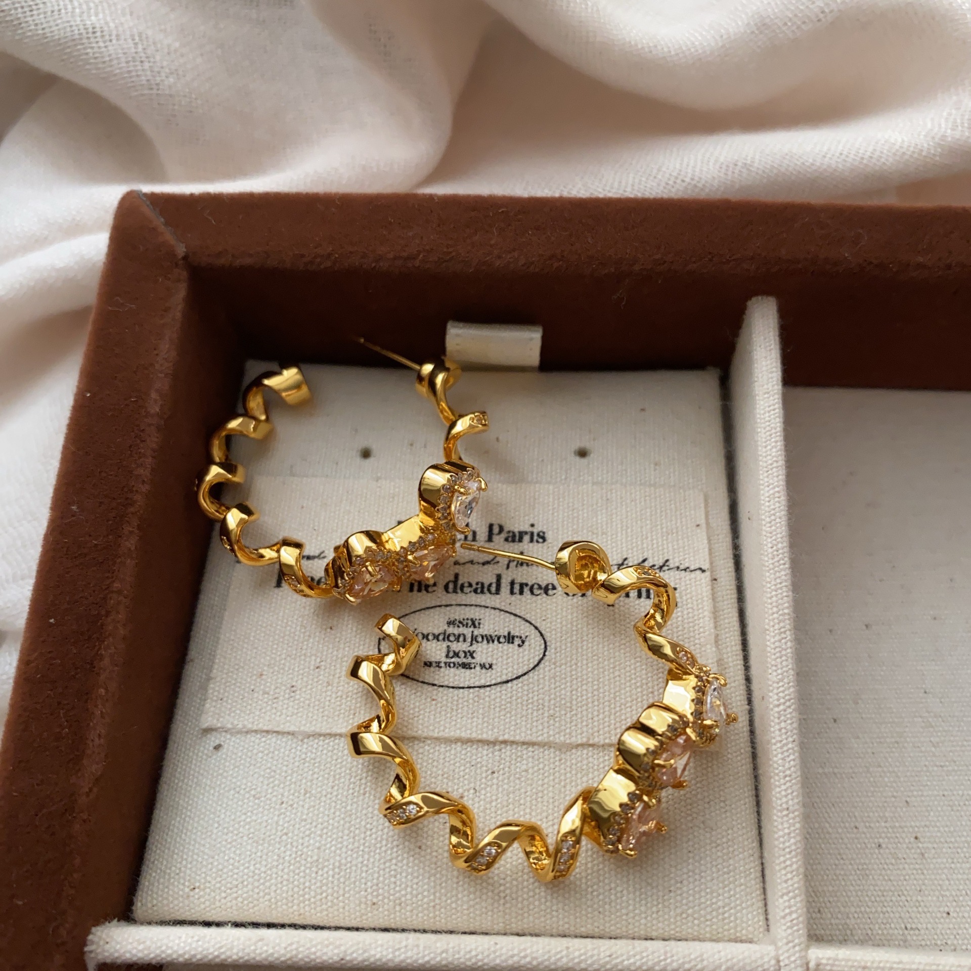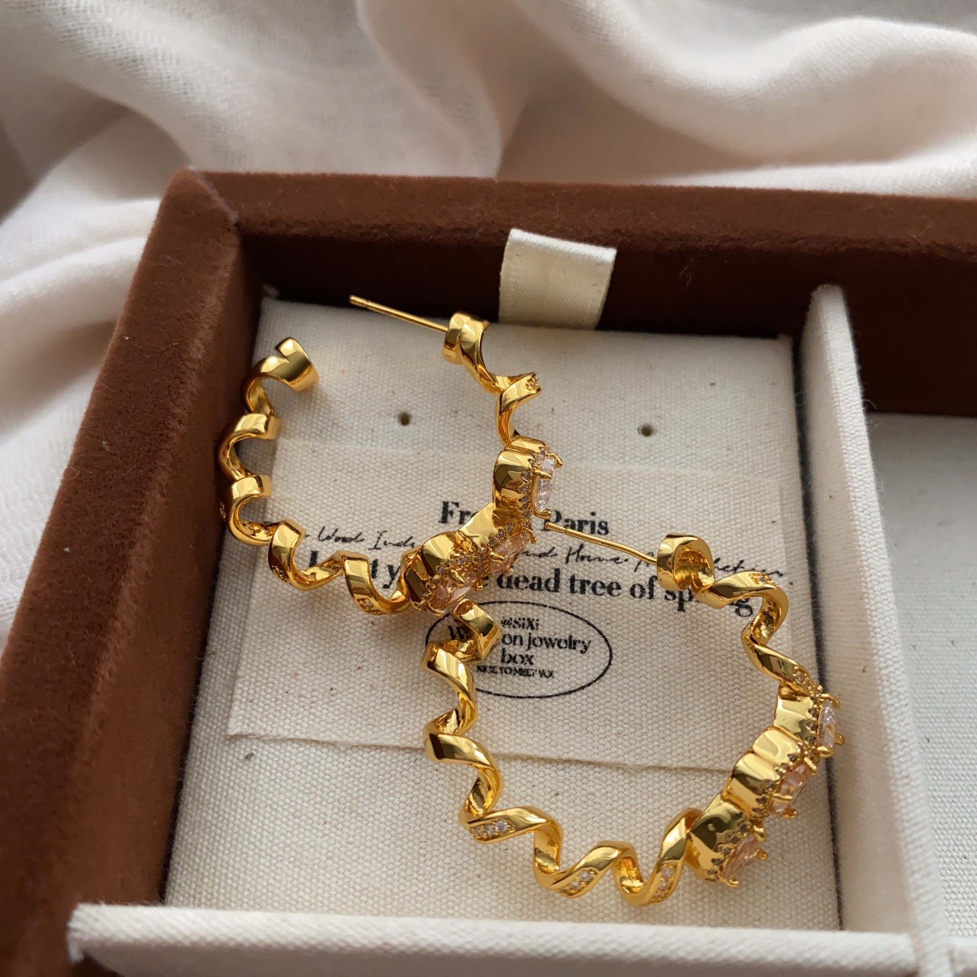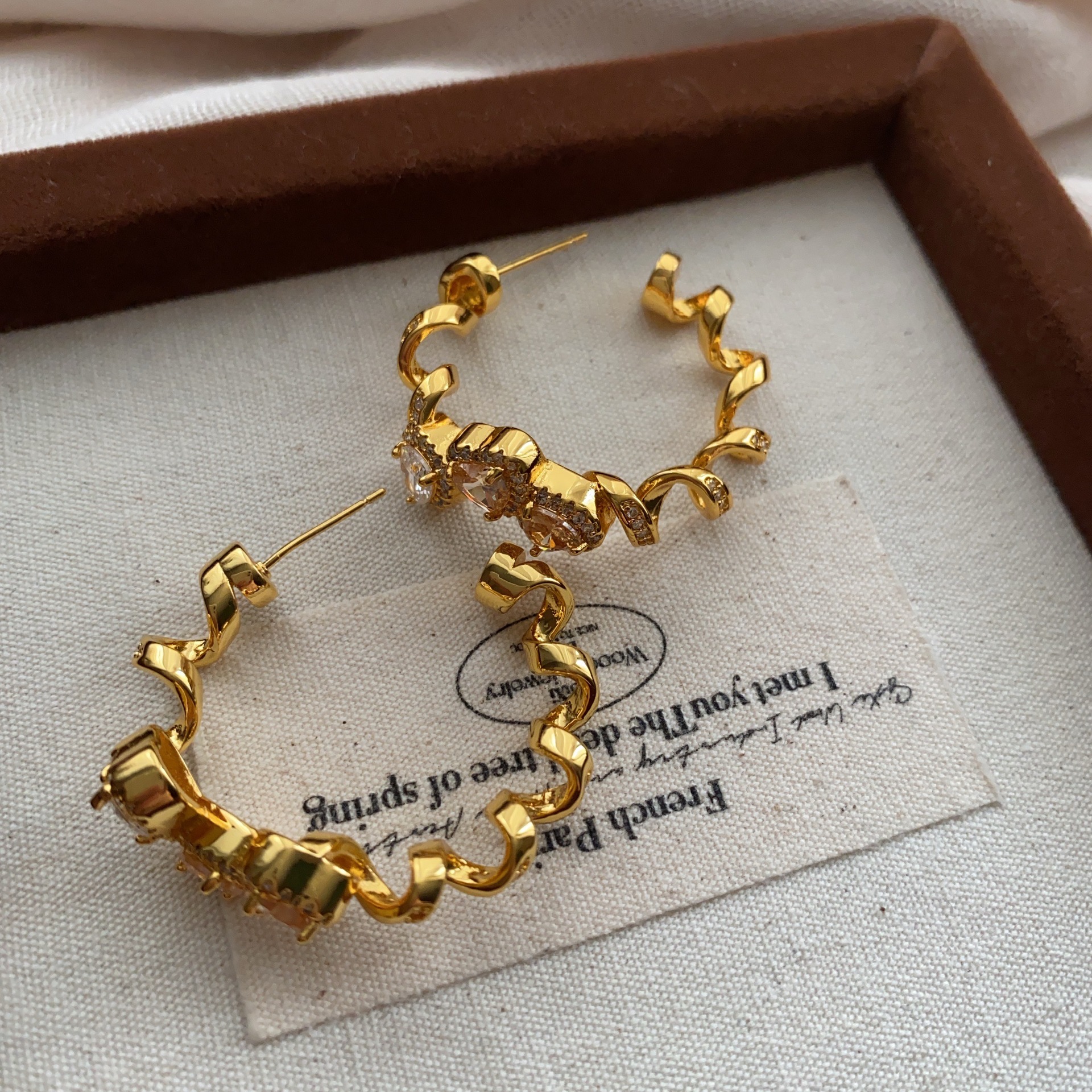 金色螺旋扭纹微镶耳圈耳环女新款冷淡风小众设计精致轻奢百搭耳饰