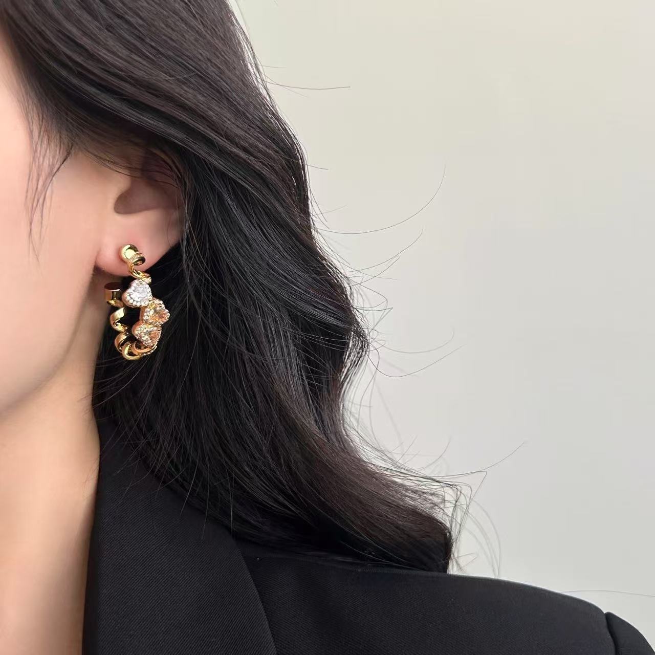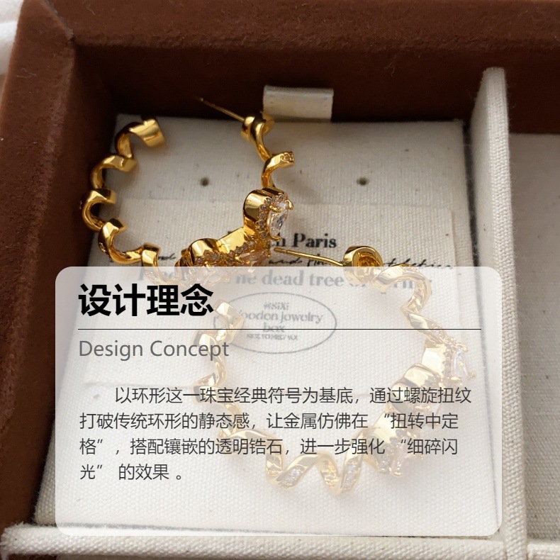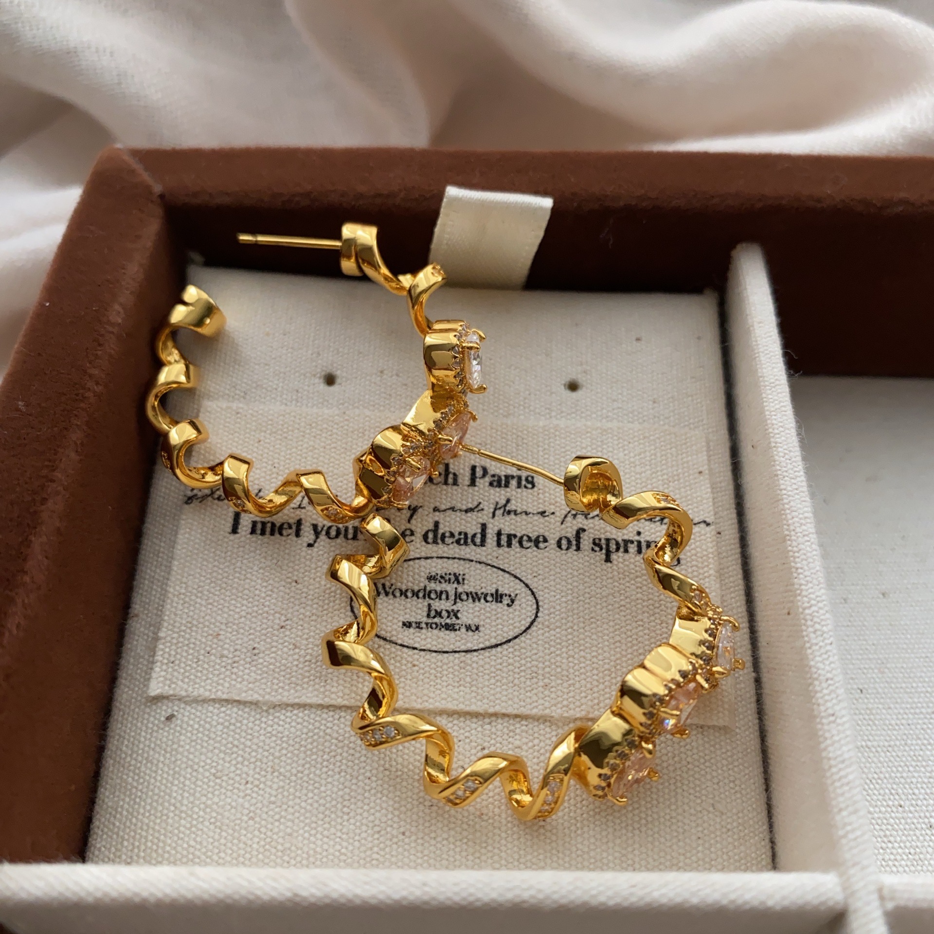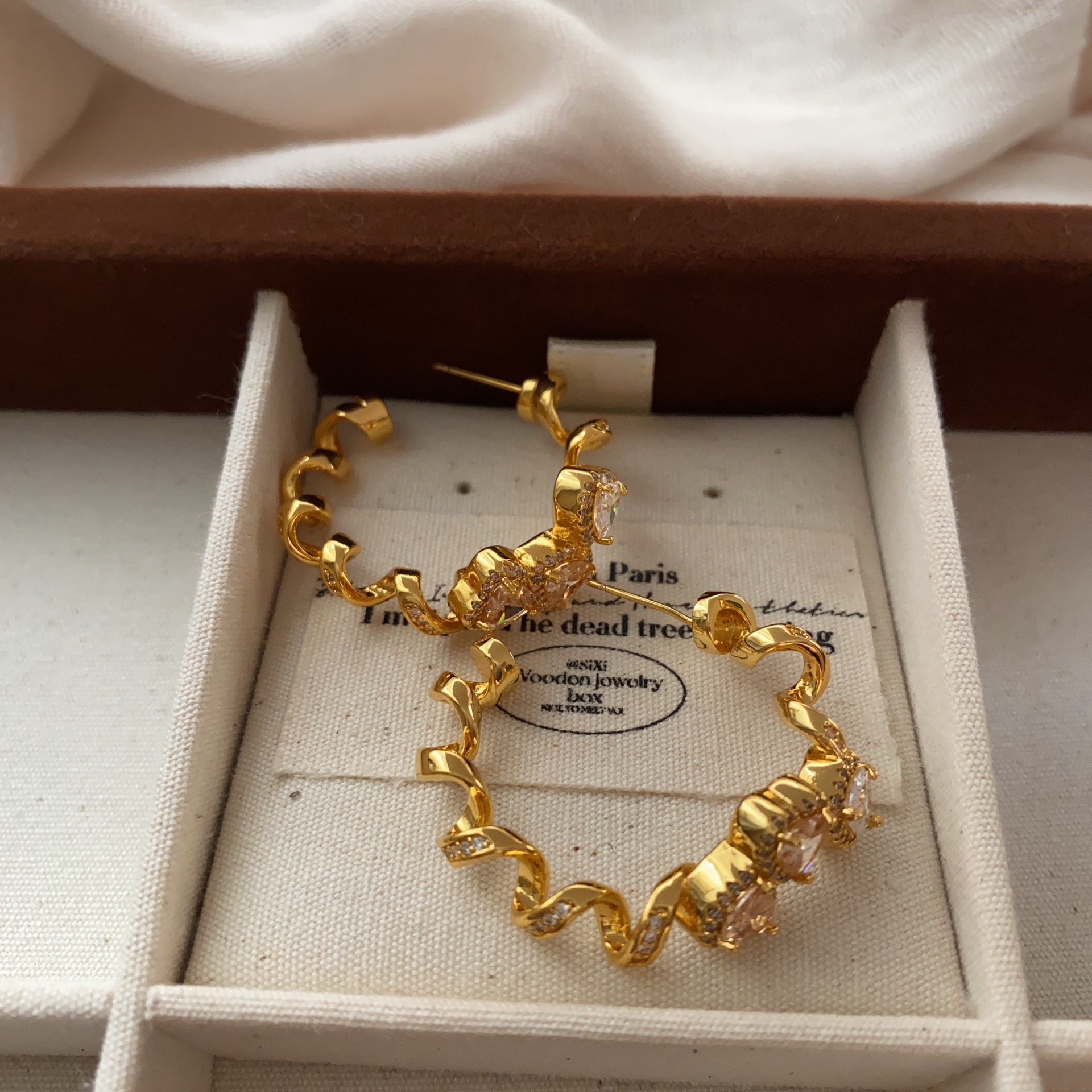 金色螺旋扭纹微镶耳圈耳环女新款冷淡风小众设计精致轻奢百搭耳饰