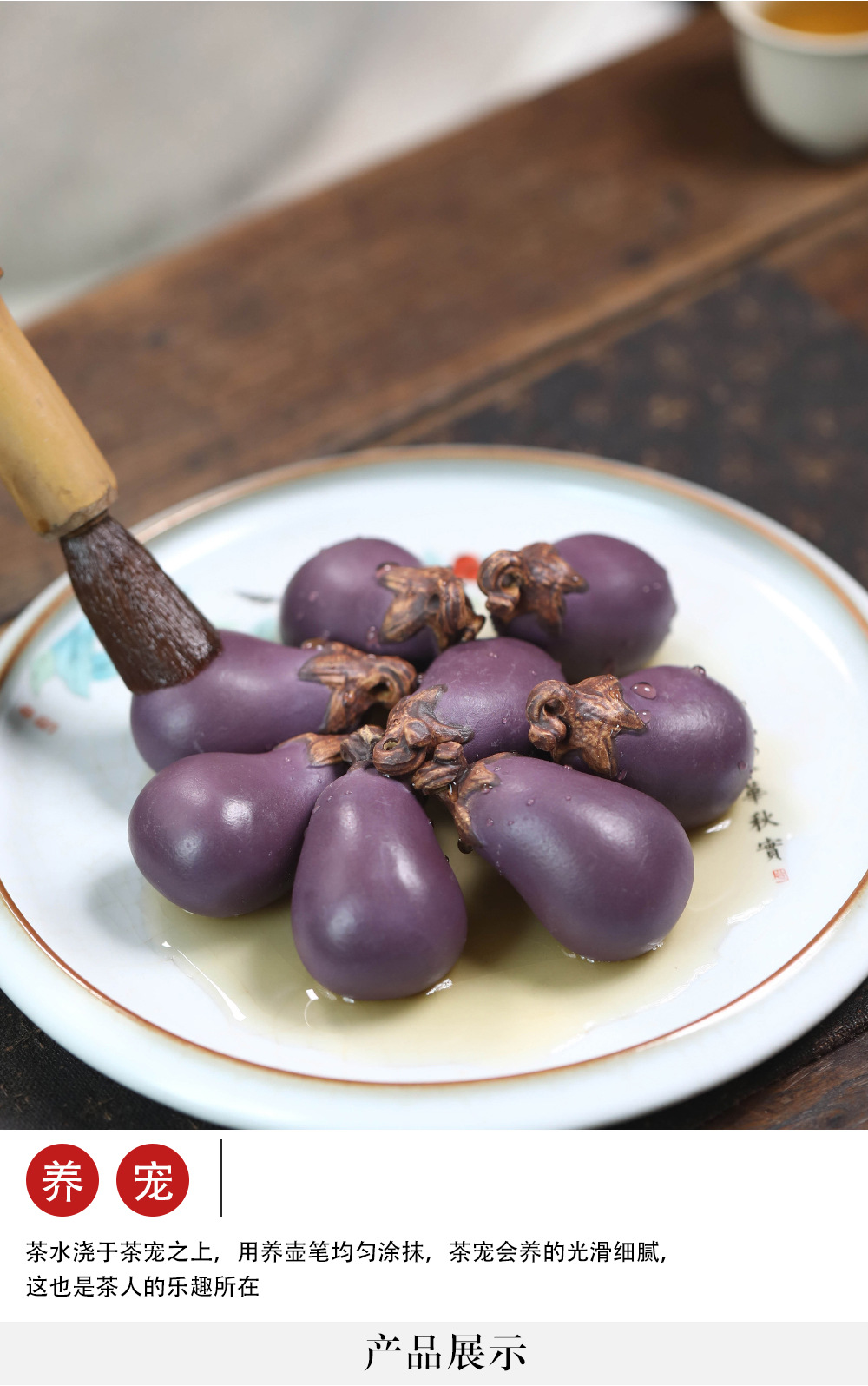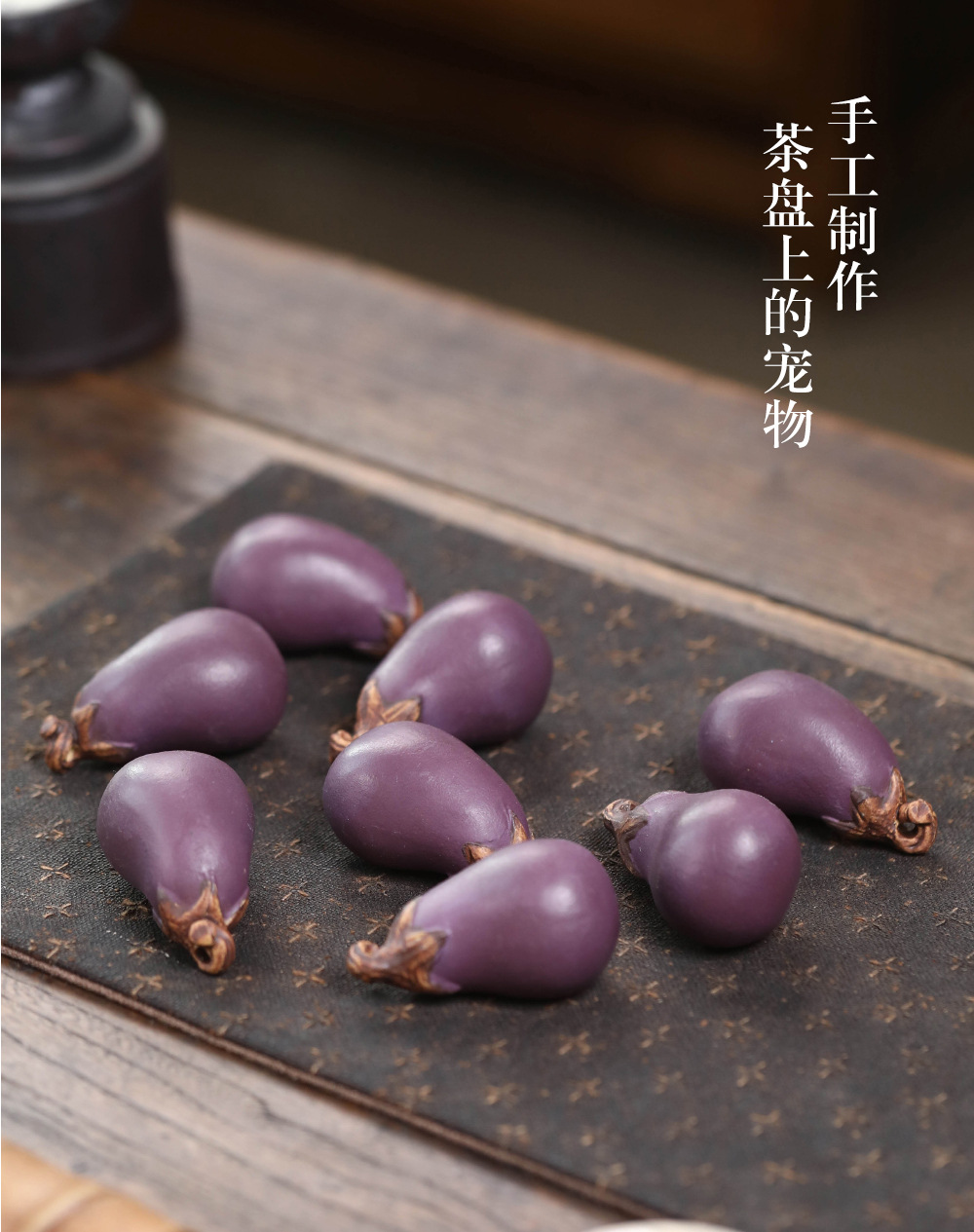宜兴紫砂茄子茶宠手工仿生植物蔬菜瓜果紫气东来茶具摆件雕塑批发