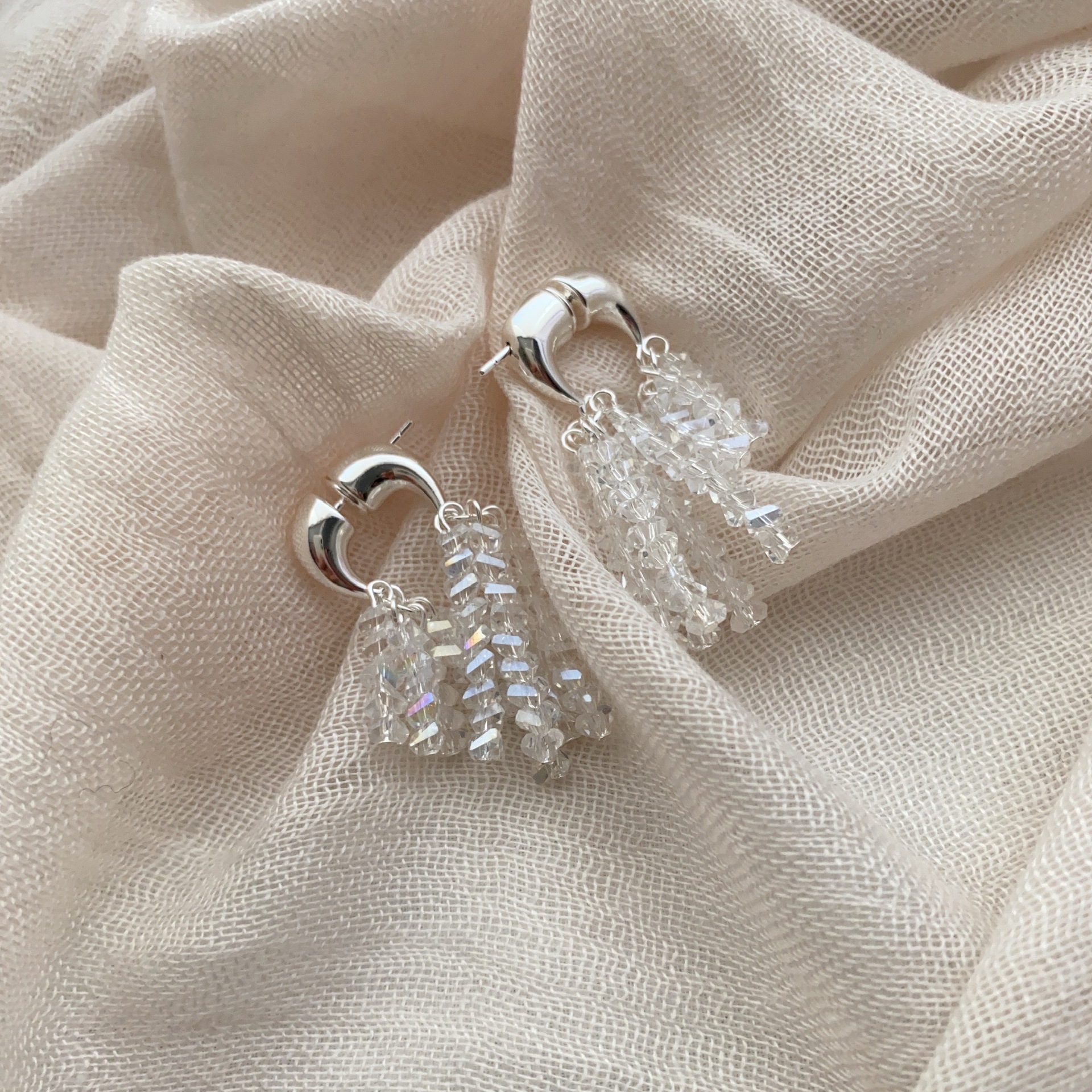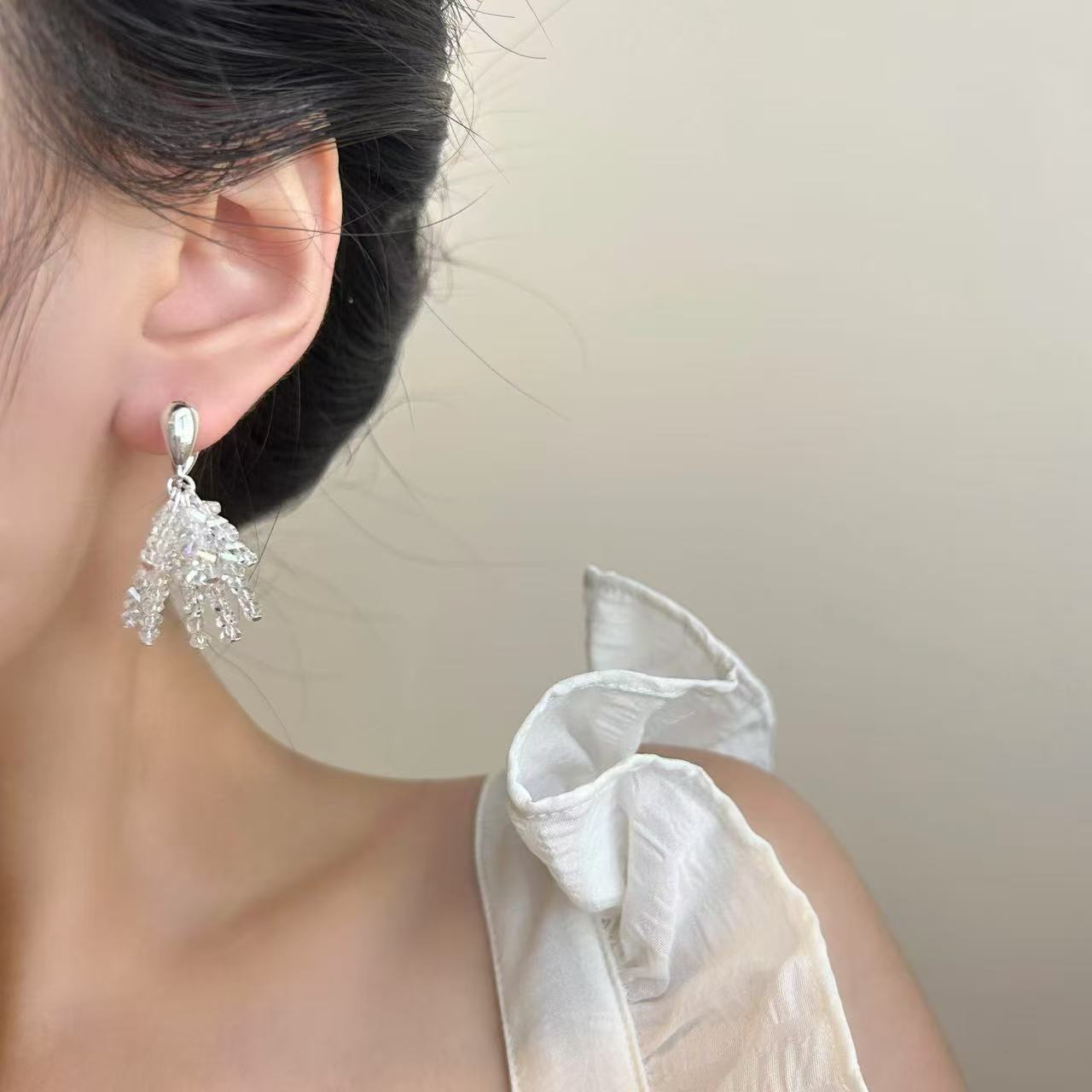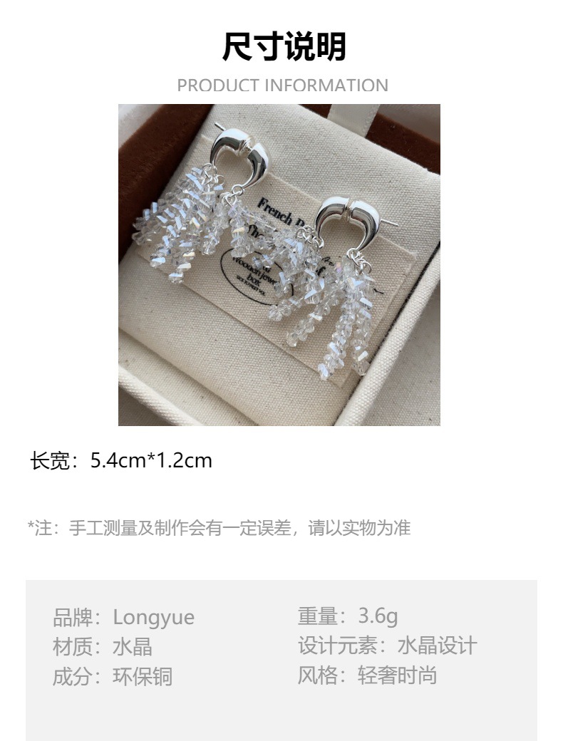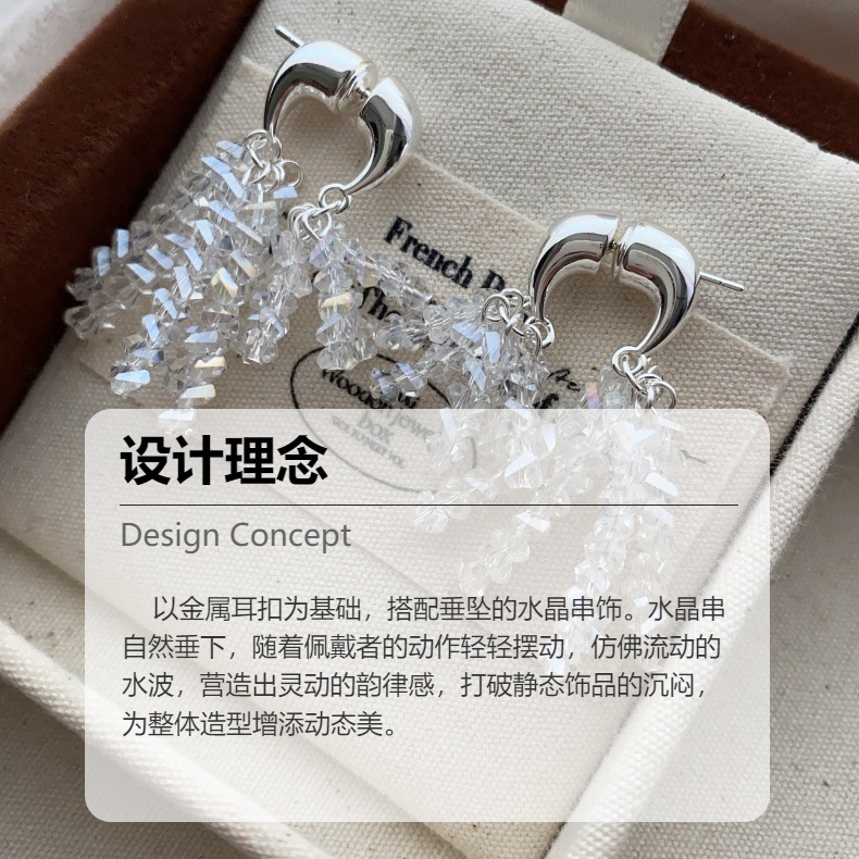 新款闪耀小众水晶流苏耳环法式串珠轻奢独特气质亮闪闪女耳饰耳钉