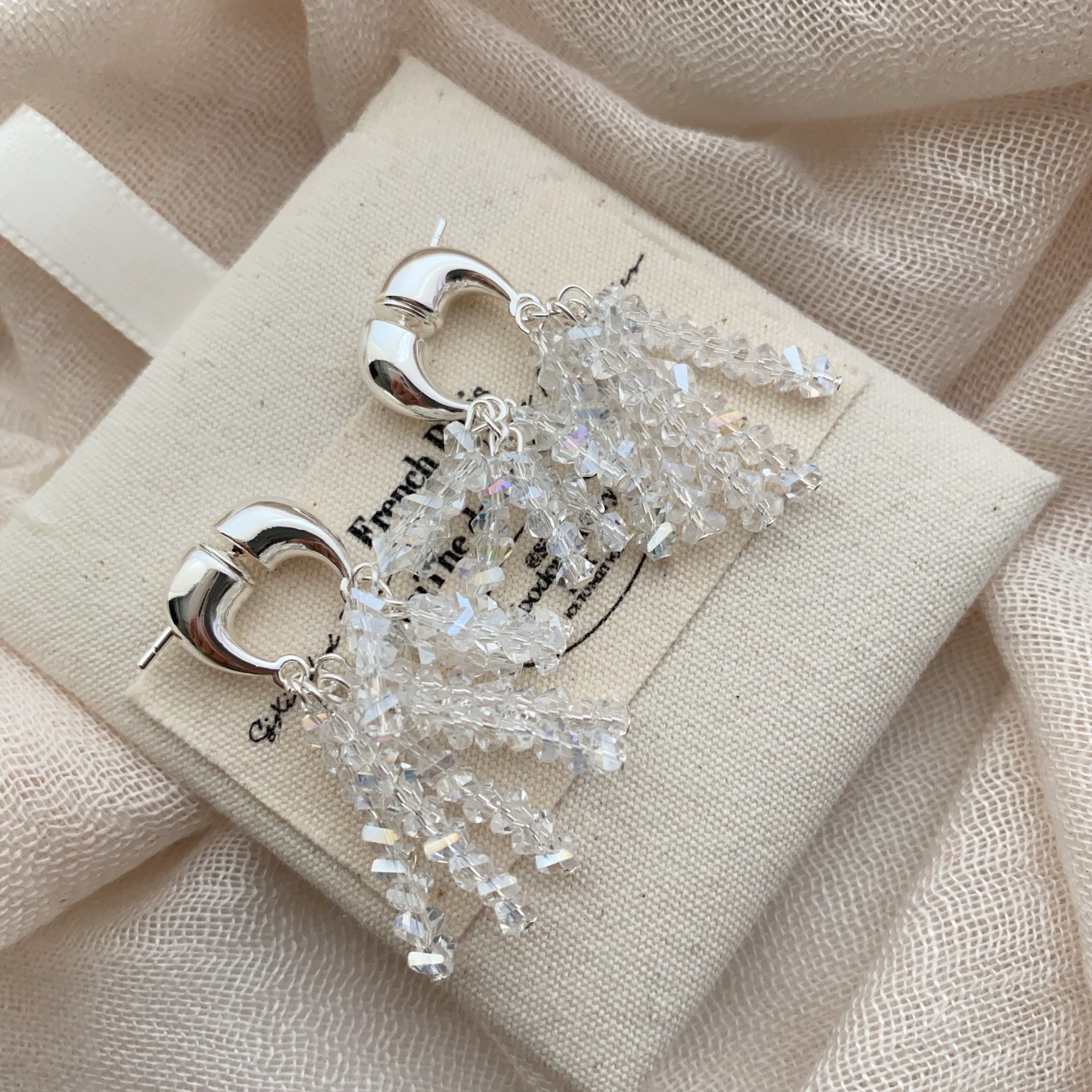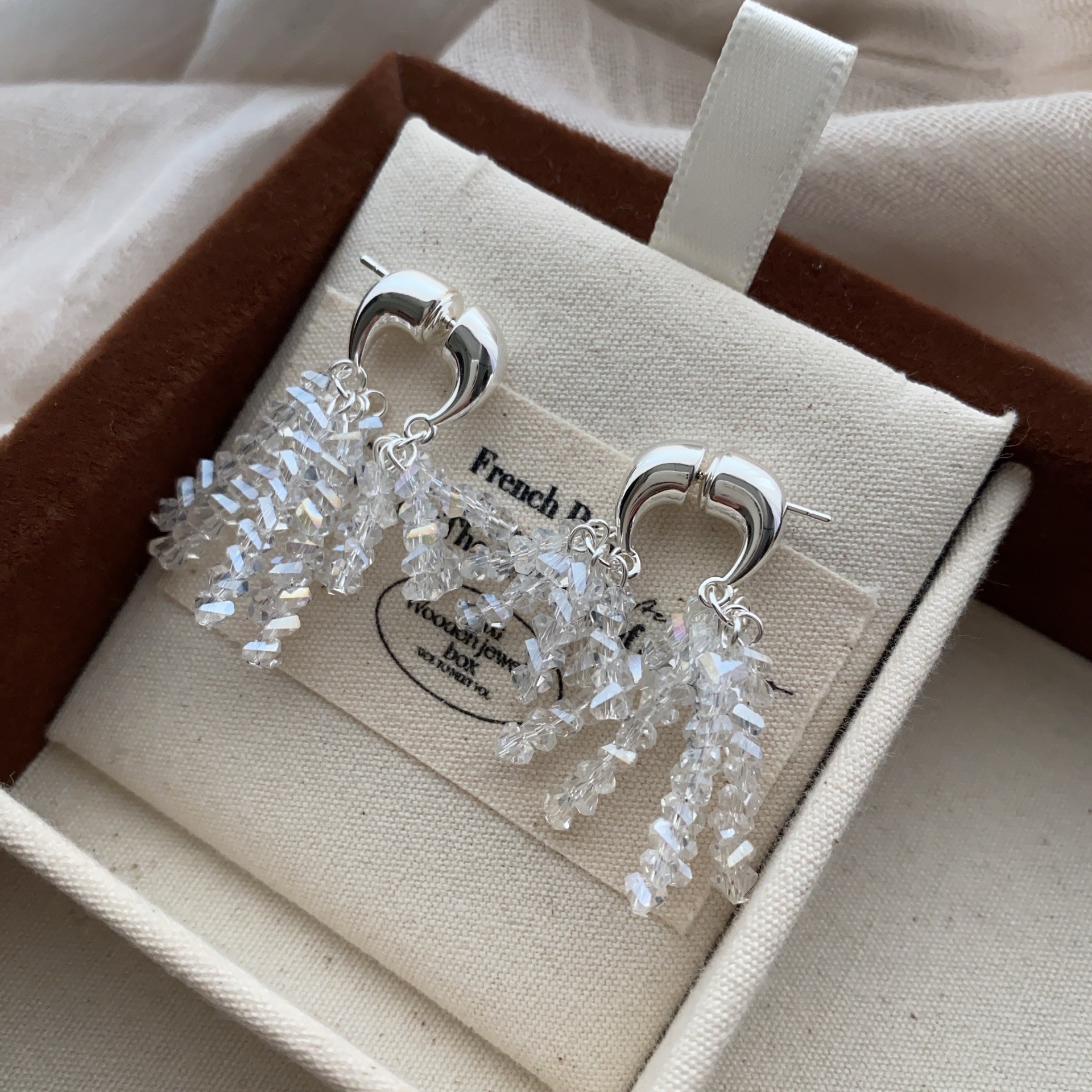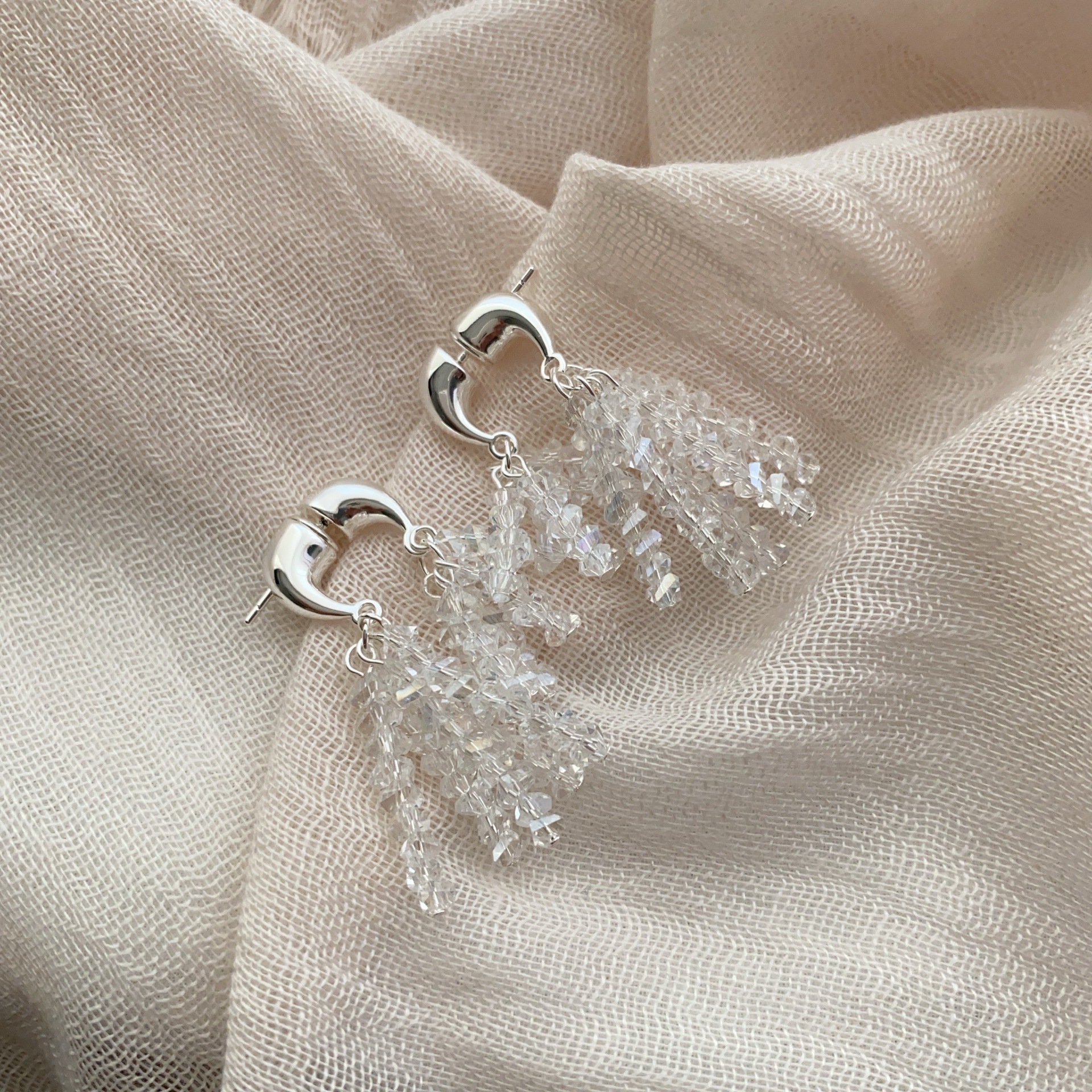 新款闪耀小众水晶流苏耳环法式串珠轻奢独特气质亮闪闪女耳饰耳钉