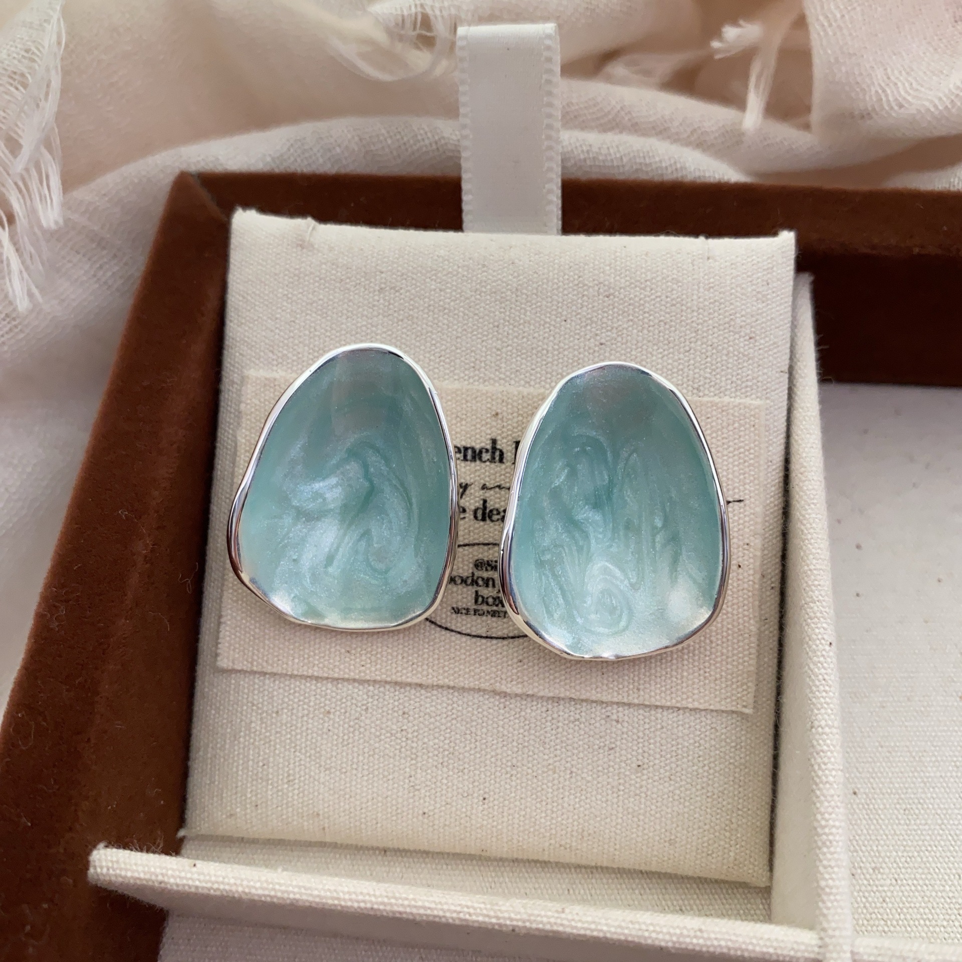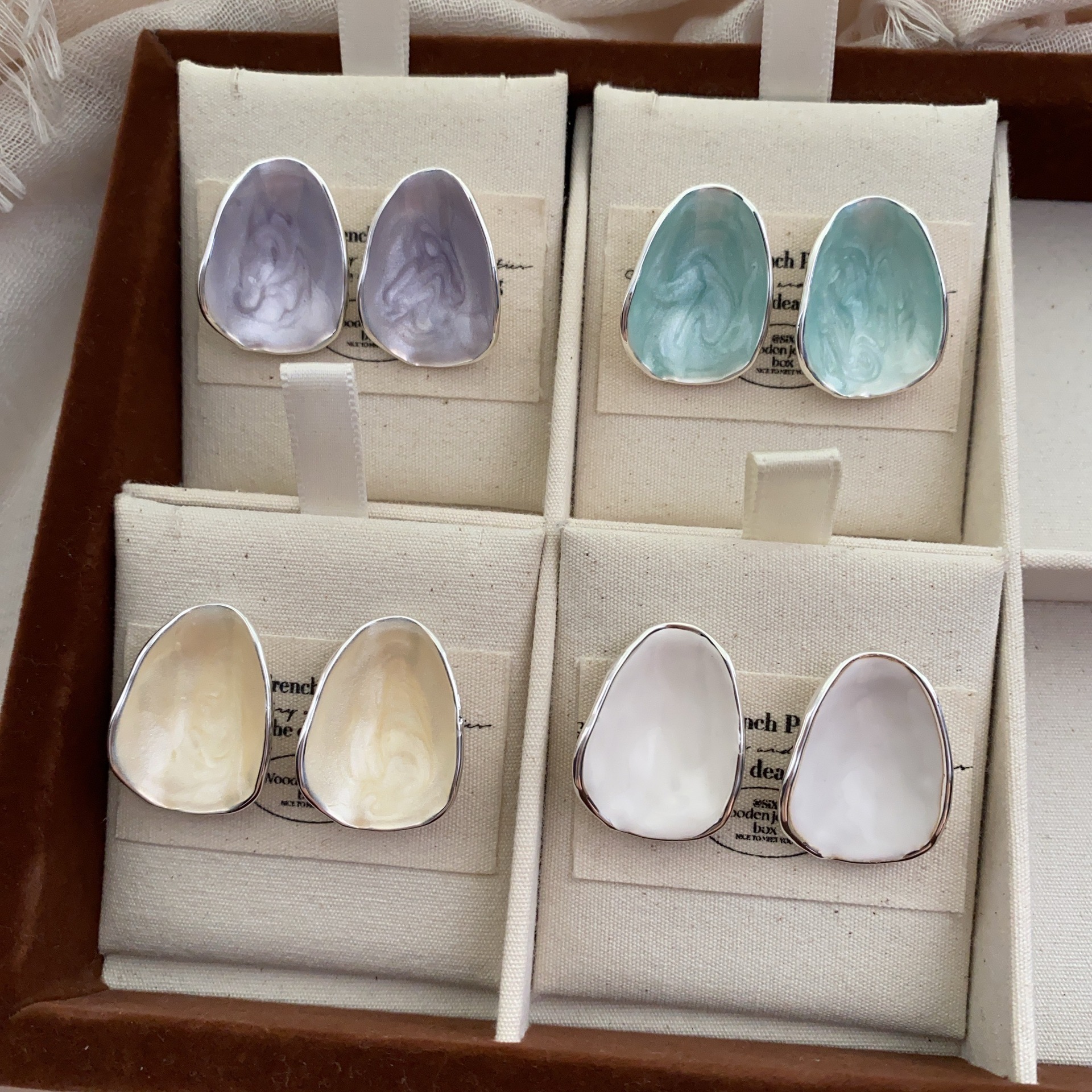 新款小清新彩色滴油几何圆形耳环少女简约时尚耳钉轻奢高级感耳饰